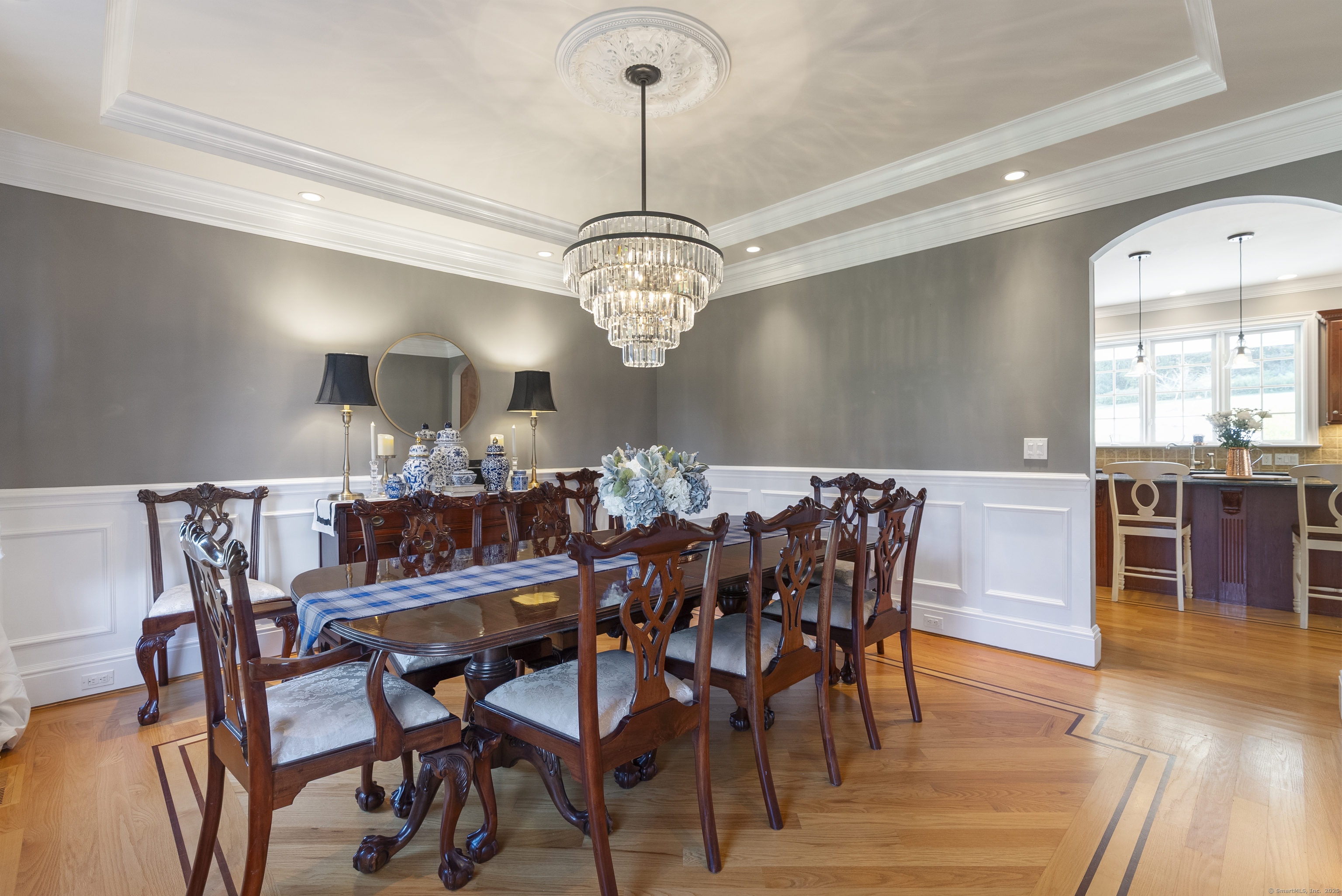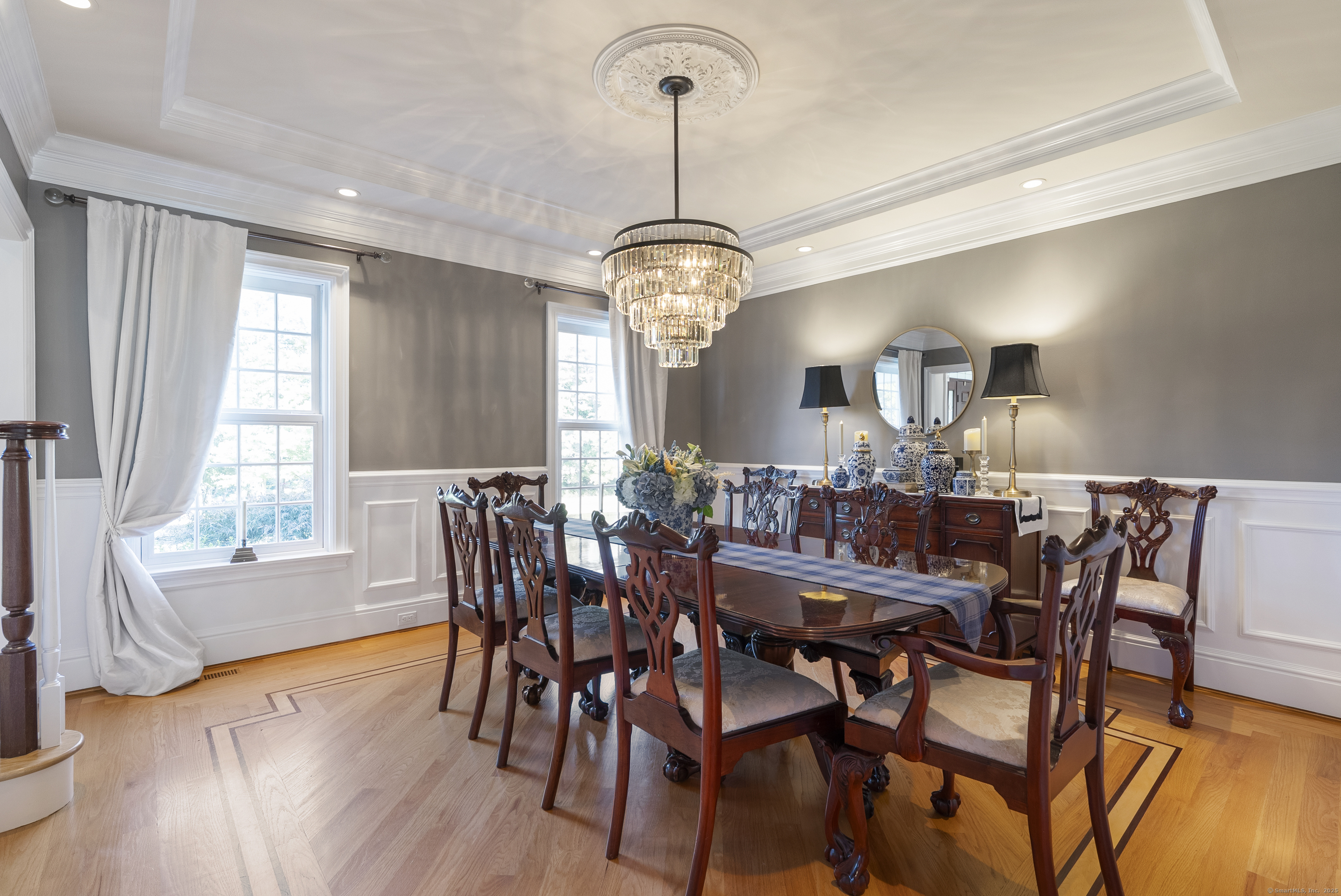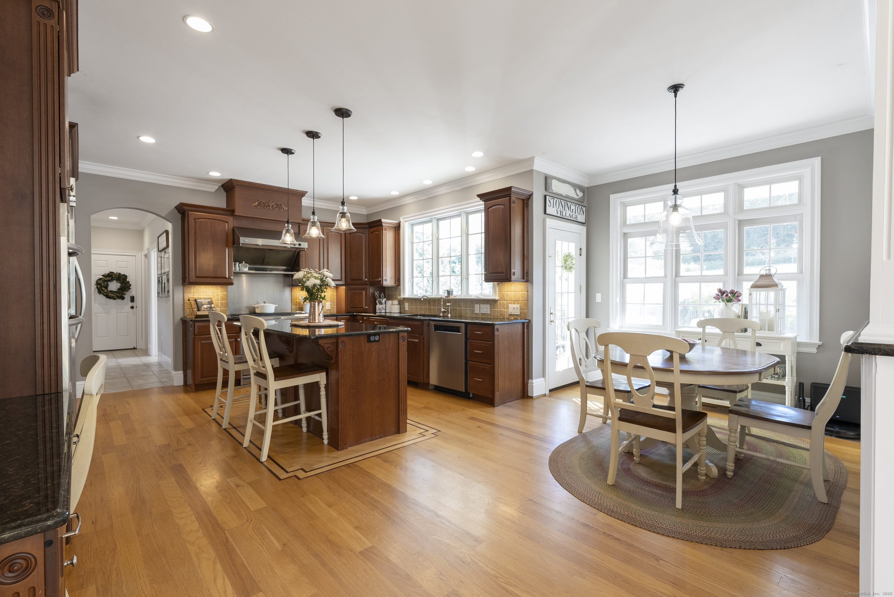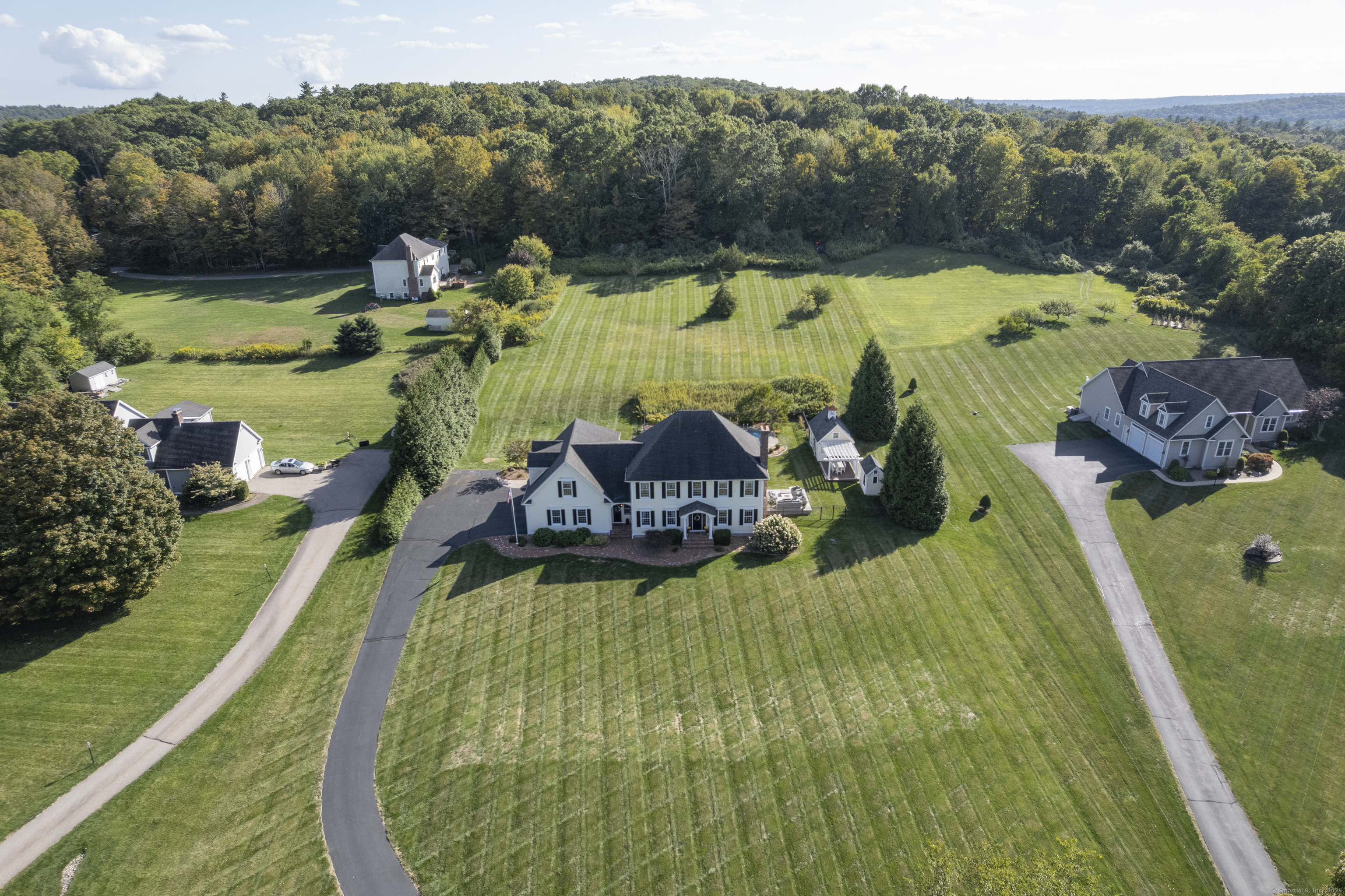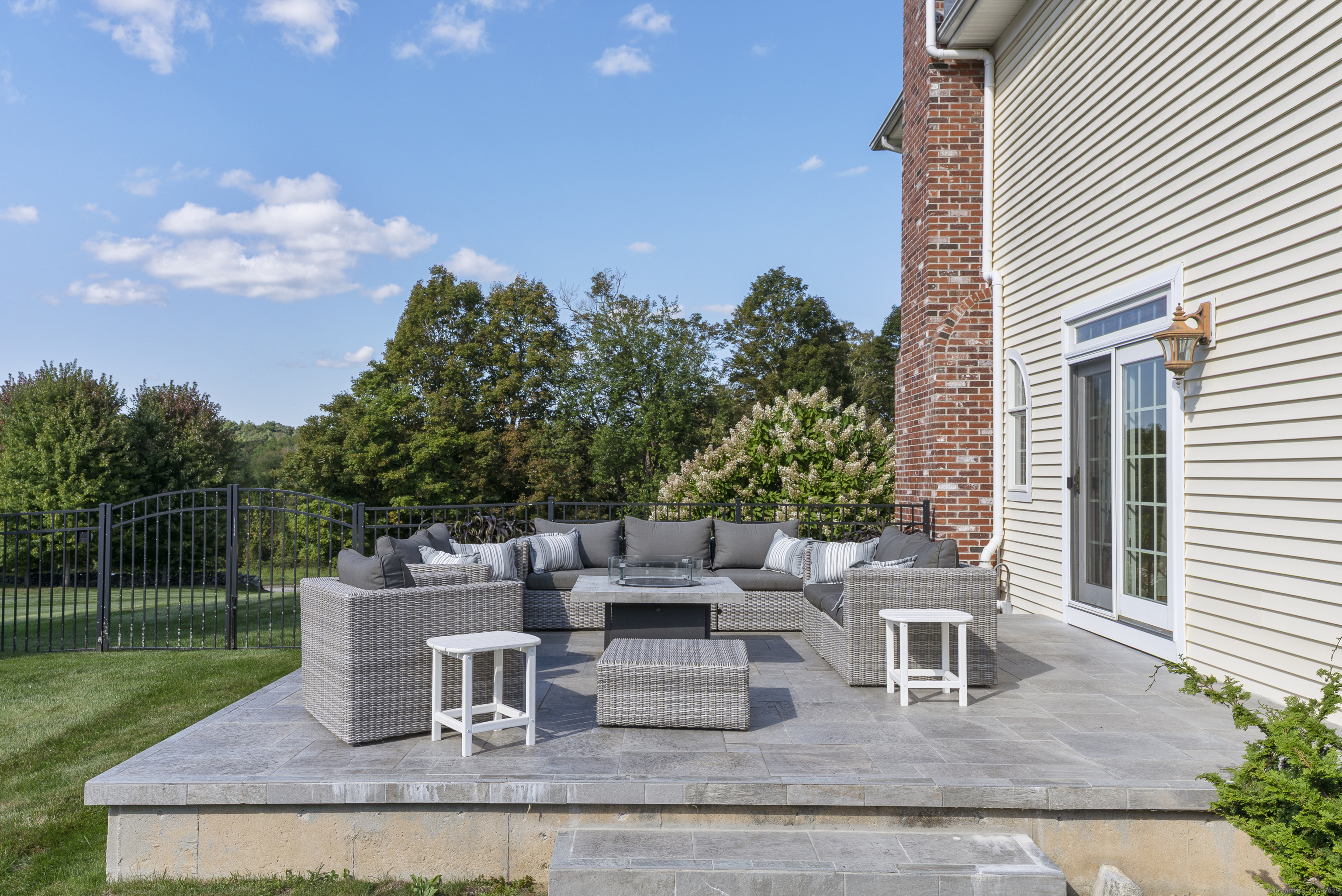 Prominently set on 2.6 acres of manicured grounds, this highly appointed Colonial exudes elegance, while offering a layout designed for everyday living. From the moment you arrive, the setting impresses-lush greenery, striking curb appeal, and an outdoor oasis designed for both relaxation and entertaining. The resort-style outdoor living is nothing short of spectacular..in-ground pool framed by two expansive patios, beautifully crafted cabana with detailed trim, and pergola-topped deck make every day feel like you are vacationing at a luxury resort. Custom designed with no details spared; the home is a showcase of unparalleled craftsmanship featuring multi-tiered crown moldings, shadow-boxing, tray ceilings, transom windows, and gleaming hardwood floors throughout. At the heart of the home, is the chef's kitchen featuring custom cabinetry, intricate millwork, professional-grade appliances, large center island, pantry. The floorplan was designed to naturally and seamlessly blend together between the kitchen, living room, dining room, family room, and extend outdoors to the resort-style pool area. The upper level offers four large bedrooms, highlighted by the luxurious primary suite. French doors lead to a spa-inspired bath with dual sinks, jetted tub, tiled shower, and spectacular walk-in closet with custom built-ins. The spacious great room with built-ins and a full bath, is the perfect game room, office, or guest suite.