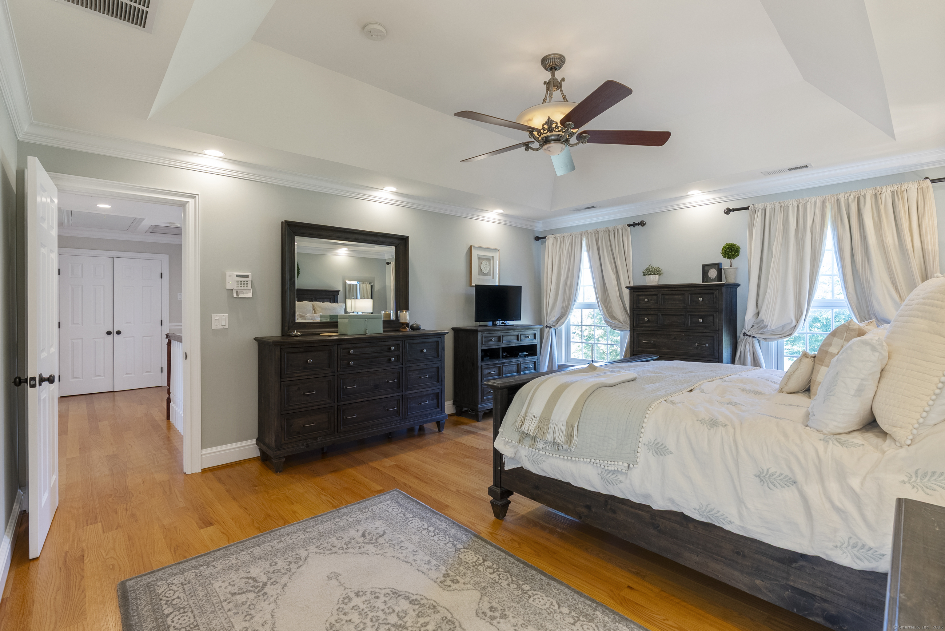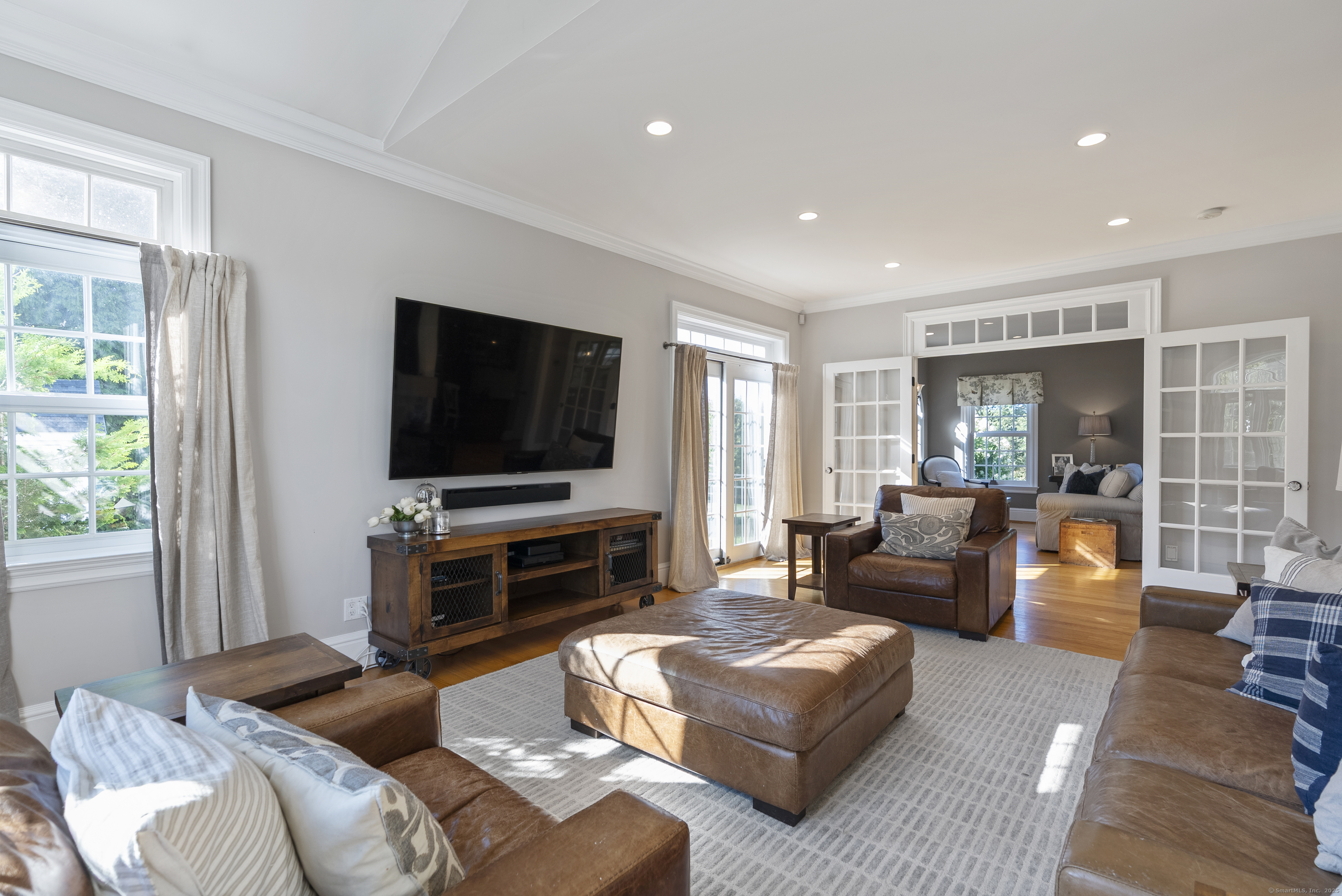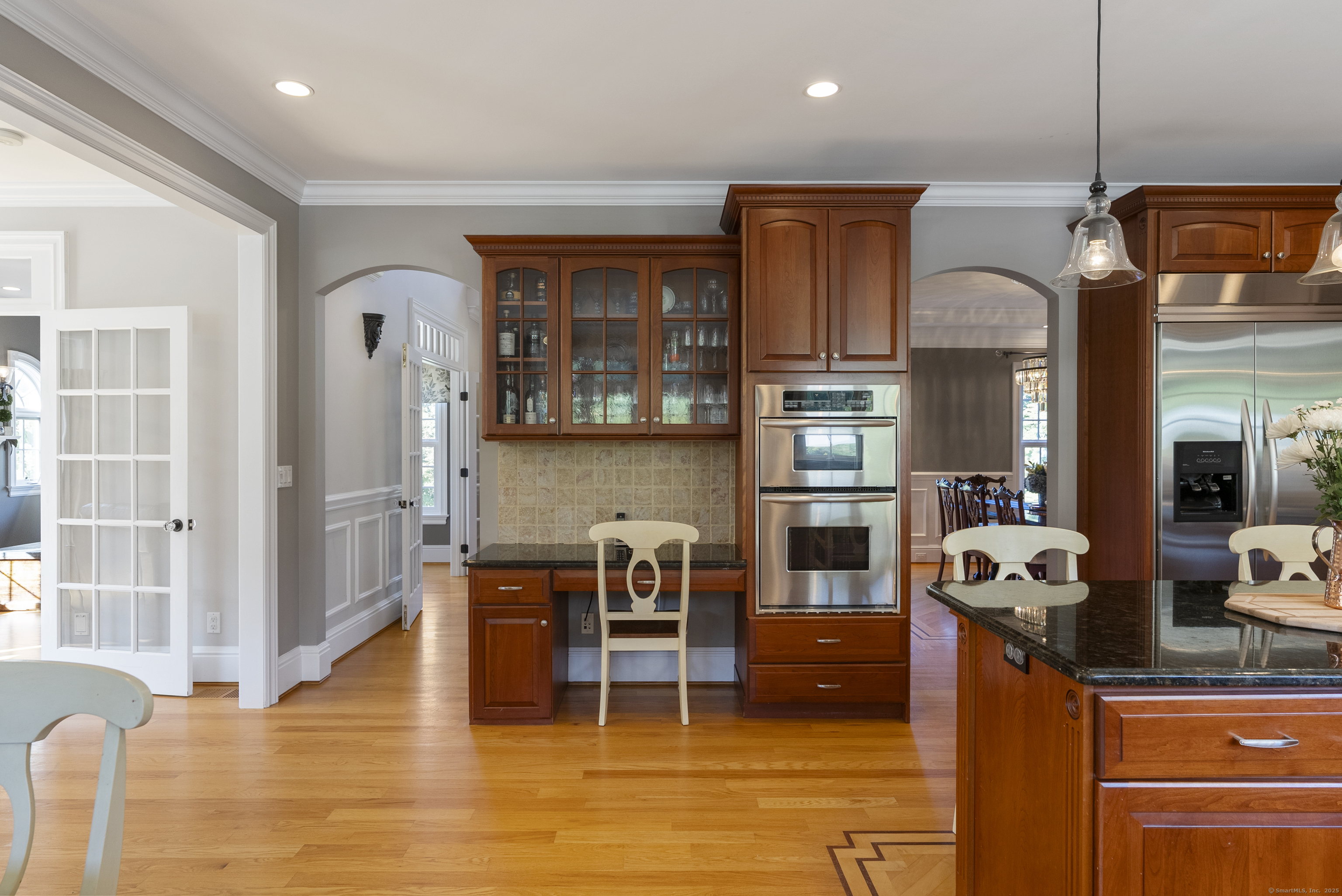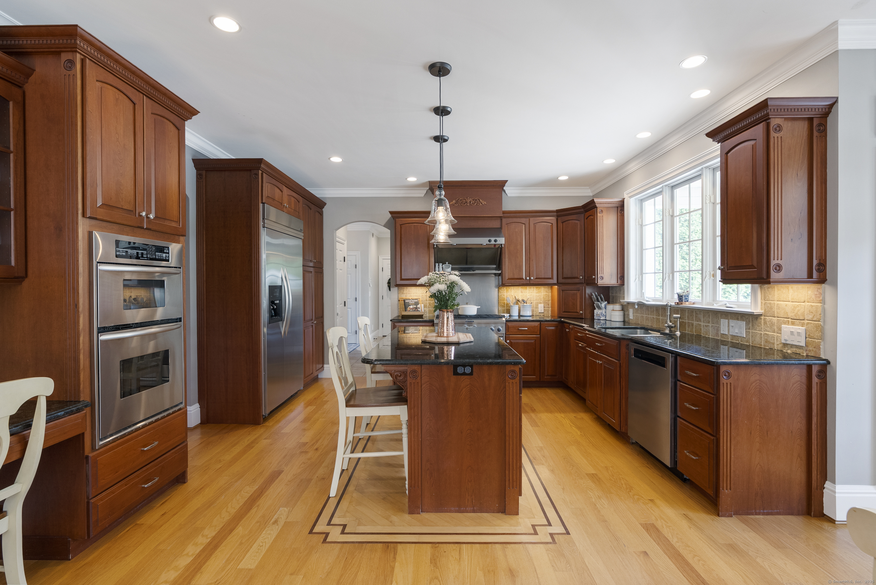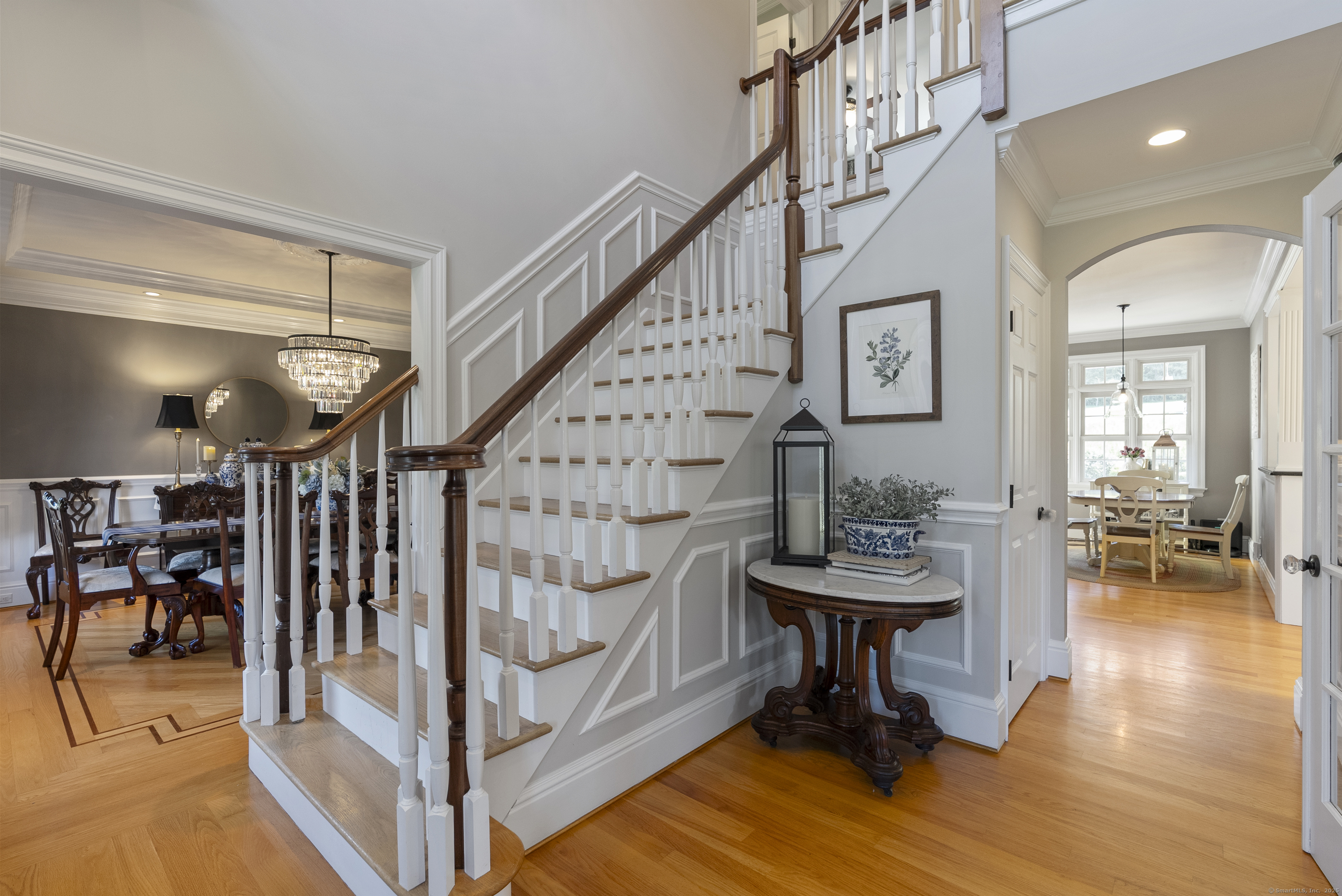 Prominently set on 2.6 acres of manicured grounds, this highly appointed Colonial exudes elegance, while offering a layout designed for everyday living. From the moment you arrive, the setting impresses-lush greenery, striking curb appeal, and an outdoor oasis designed for both relaxation and entertaining. The resort-style outdoor living is nothing short of spectacular..in-ground pool framed by two expansive patios, beautifully crafted cabana with detailed trim, and pergola-topped deck make every day feel like you are vacationing at a luxury resort. Custom designed with no details spared; the home is a showcase of unparalleled craftsmanship featuring multi-tiered crown moldings, shadow-boxing, tray ceilings, transom windows, and gleaming hardwood floors throughout. At the heart of the home, is the chef's kitchen featuring custom cabinetry, intricate millwork, professional-grade appliances, large center island, pantry. The floorplan was designed to naturally and seamlessly blend together between the kitchen, living room, dining room, family room, and extend outdoors to the resort-style pool area. The upper level offers four large bedrooms, highlighted by the luxurious primary suite. French doors lead to a spa-inspired bath with dual sinks, jetted tub, tiled shower, and spectacular walk-in closet with custom built-ins. The spacious great room with built-ins and a full bath, is the perfect game room, office, or guest suite.