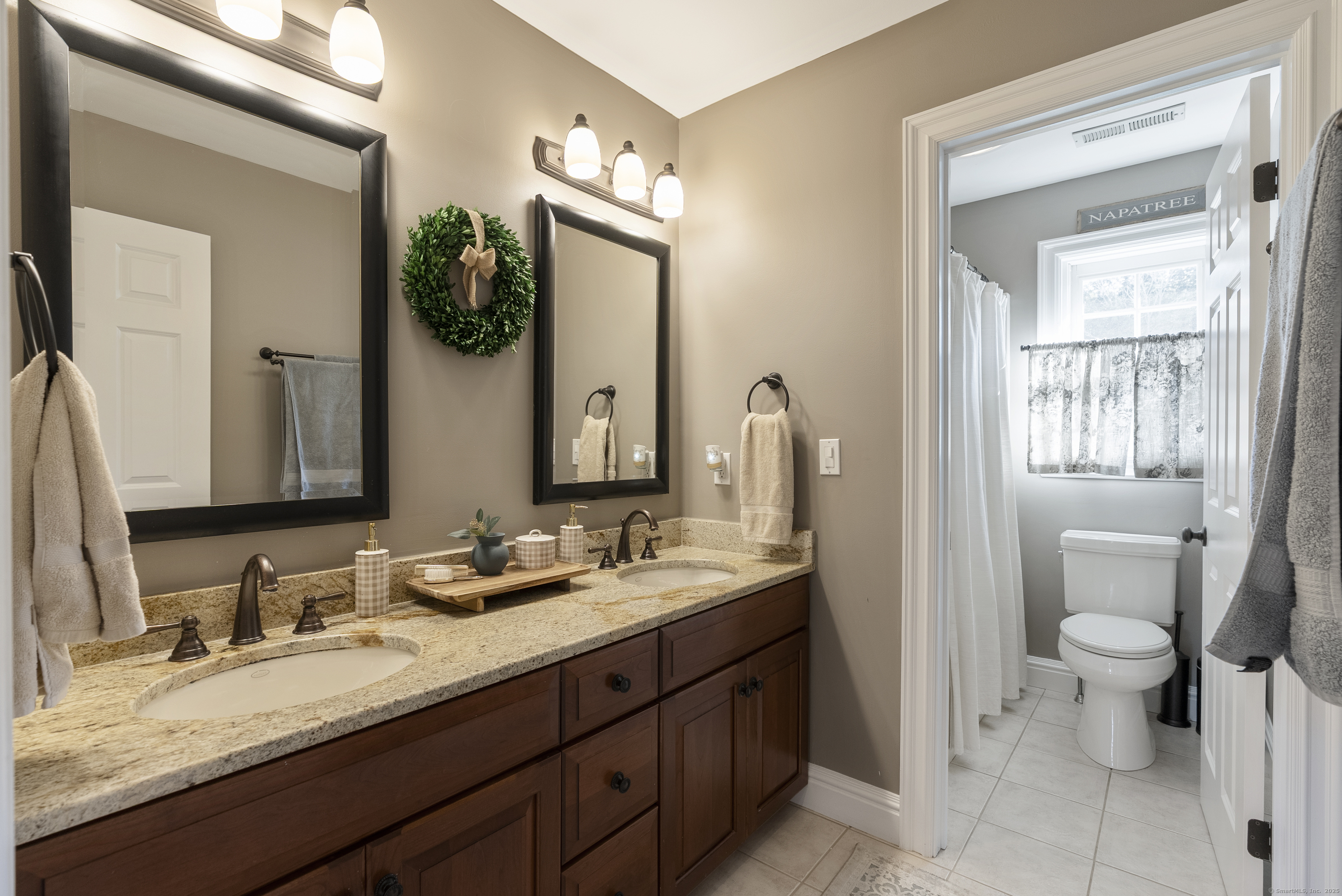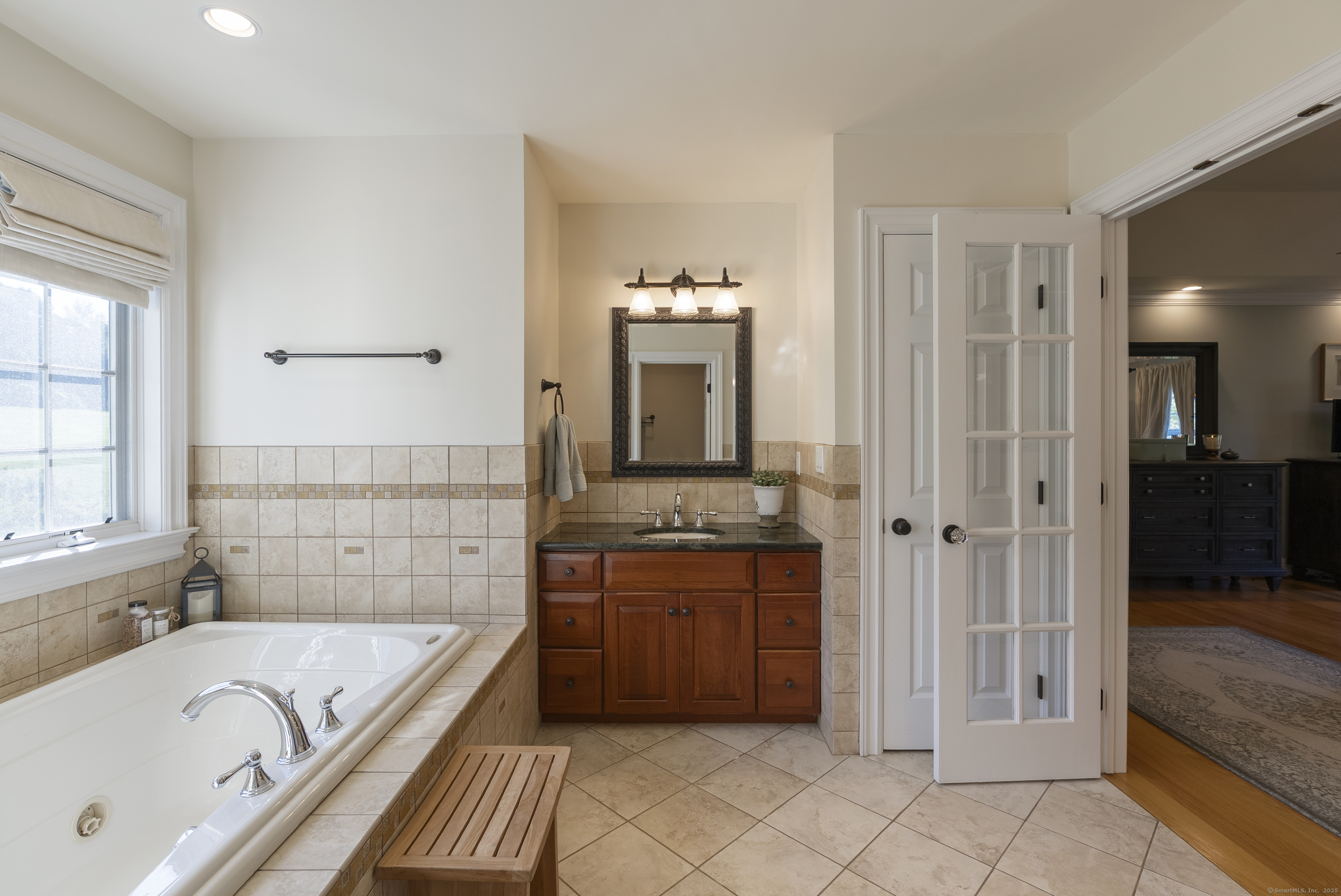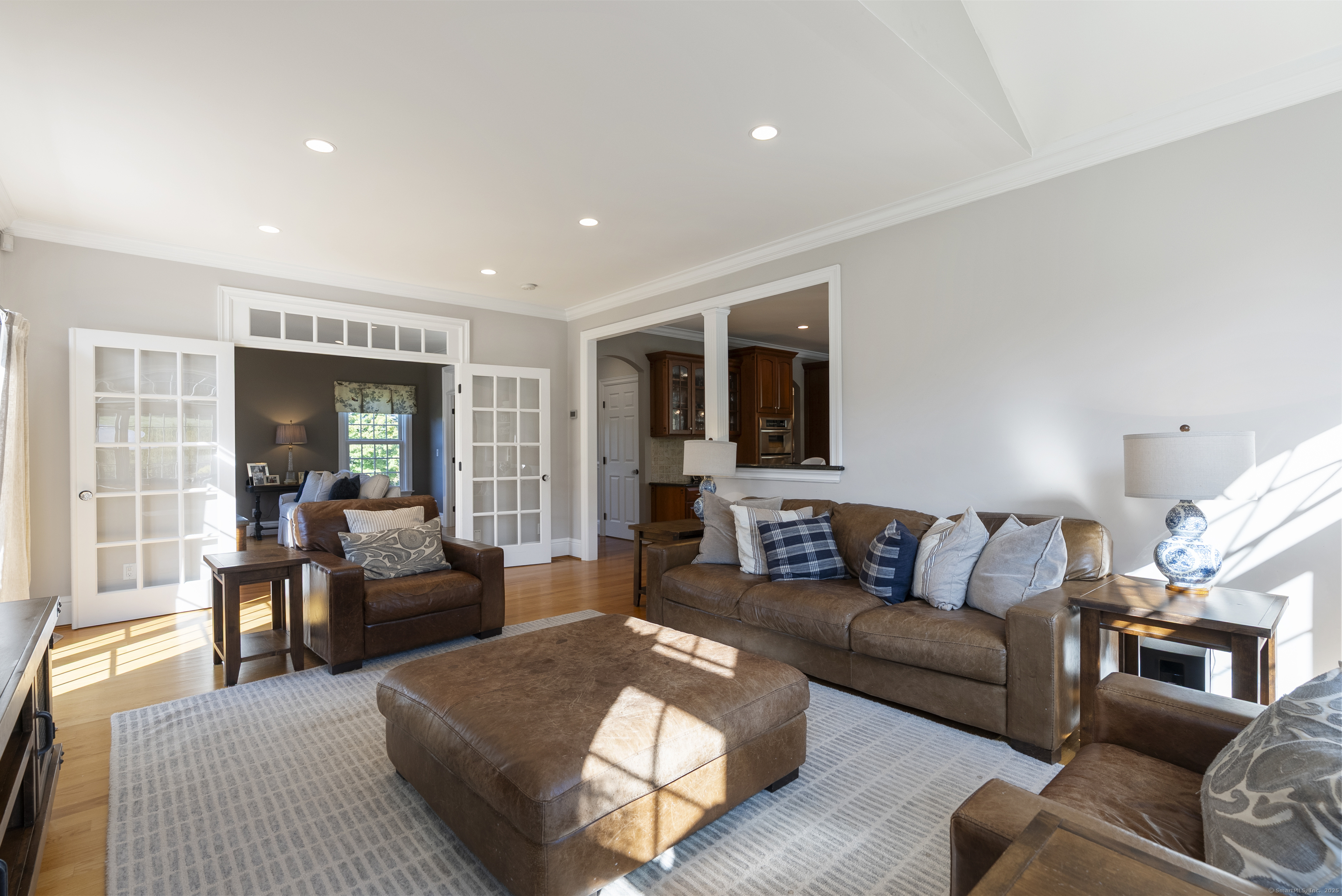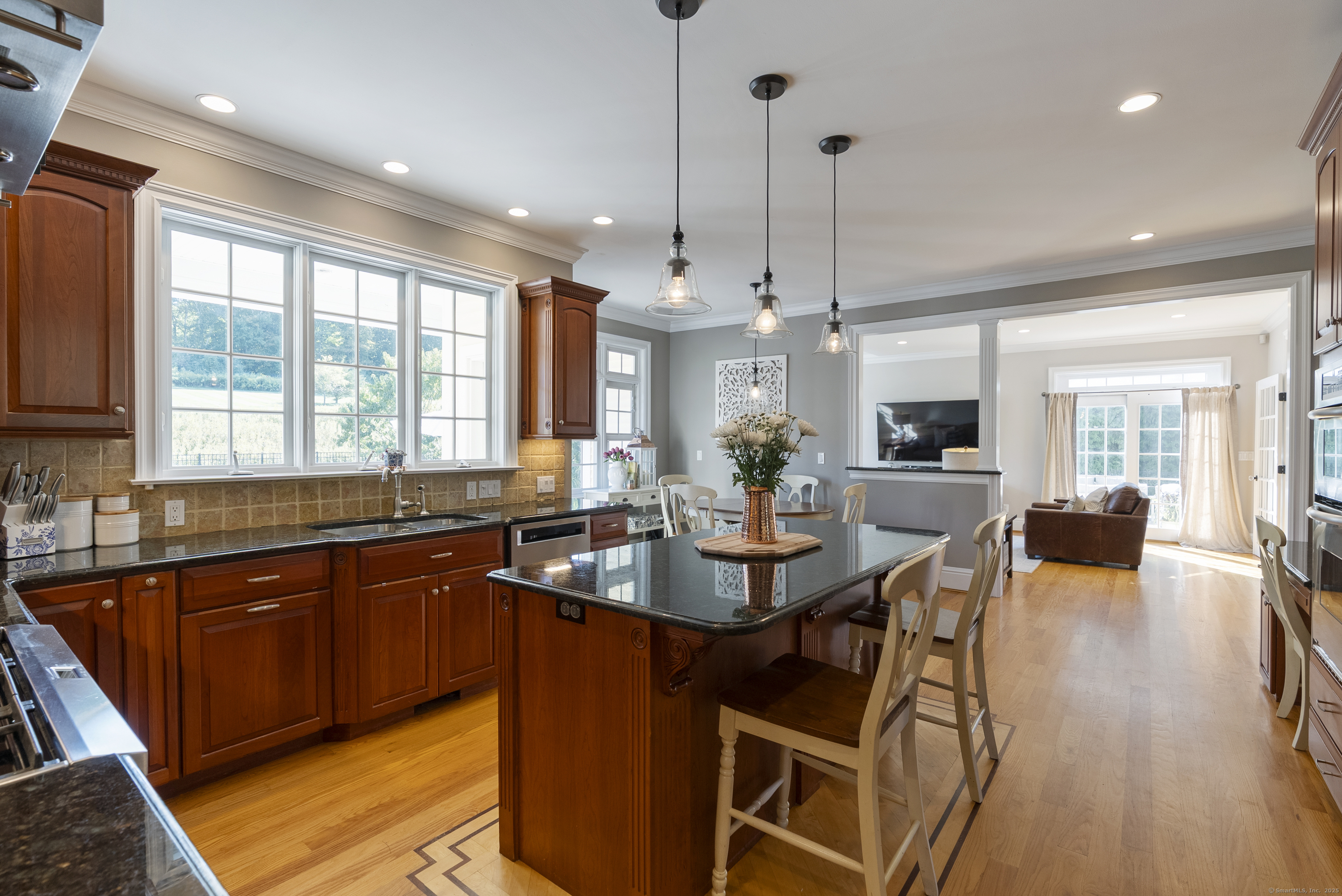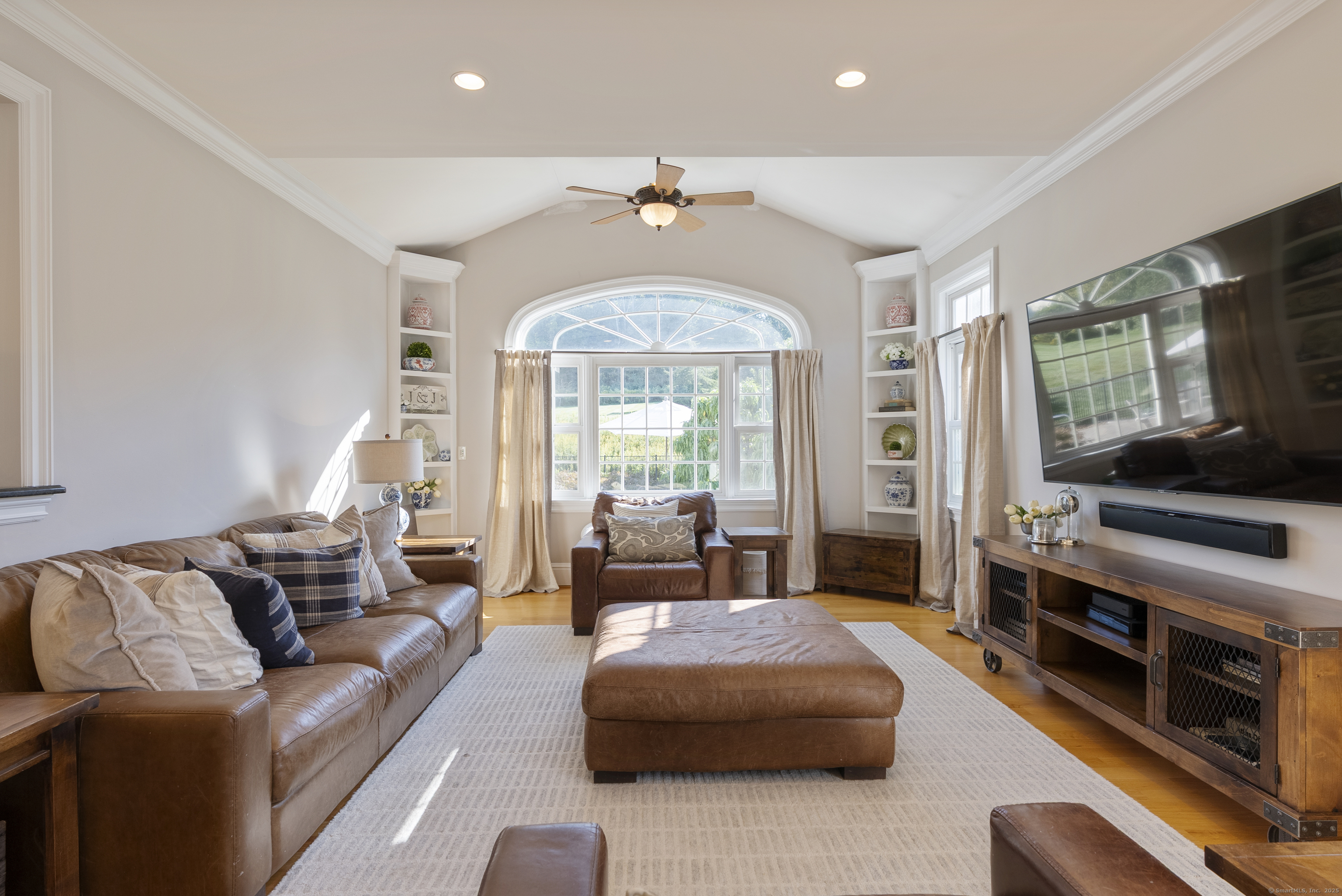 Prominently set on 2.6 acres of manicured grounds, this highly appointed Colonial exudes elegance, while offering a layout designed for everyday living. From the moment you arrive, the setting impresses-lush greenery, striking curb appeal, and an outdoor oasis designed for both relaxation and entertaining. The resort-style outdoor living is nothing short of spectacular..in-ground pool framed by two expansive patios, beautifully crafted cabana with detailed trim, and pergola-topped deck make every day feel like you are vacationing at a luxury resort. Custom designed with no details spared; the home is a showcase of unparalleled craftsmanship featuring multi-tiered crown moldings, shadow-boxing, tray ceilings, transom windows, and gleaming hardwood floors throughout. At the heart of the home, is the chef's kitchen featuring custom cabinetry, intricate millwork, professional-grade appliances, large center island, pantry. The floorplan was designed to naturally and seamlessly blend together between the kitchen, living room, dining room, family room, and extend outdoors to the resort-style pool area. The upper level offers four large bedrooms, highlighted by the luxurious primary suite. French doors lead to a spa-inspired bath with dual sinks, jetted tub, tiled shower, and spectacular walk-in closet with custom built-ins. The spacious great room with built-ins and a full bath, is the perfect game room, office, or guest suite.