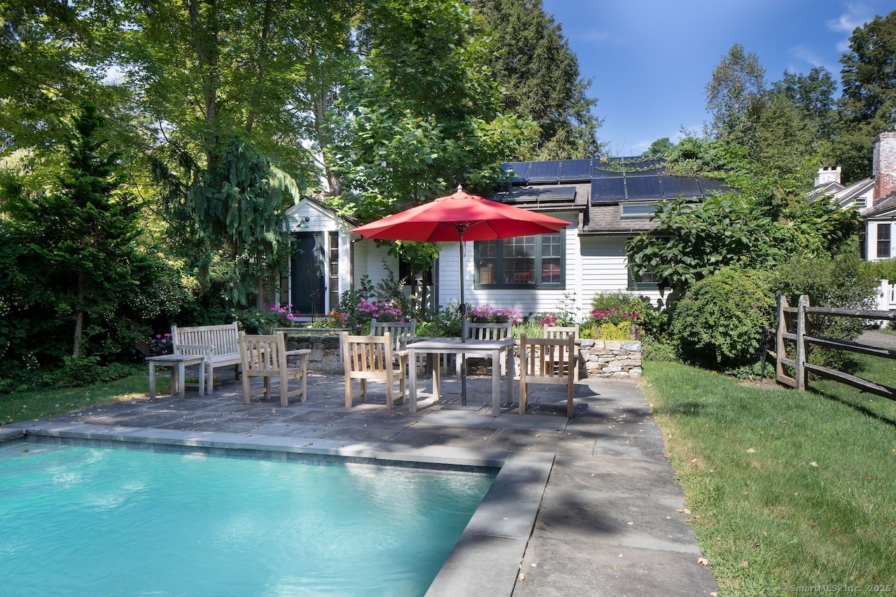 This 1807 New England home stands prominently in Salisbury's Historic District, gracing 1.4 pristine acres. The main residence exemplifies timeless architecture with five working fireplaces and seamless updates that honor its historic integrity, including a newly renovated kitchen with custom cabinetry and sleek countertops. A comprehensive heating and cooling system ensures year-round comfort, enhanced by radiant floor heating in the primary bathroom. The thoughtfully designed main house flows beautifully to the remarkable 1810 carriage house, now transformed into additional living space with two bedrooms. The property's crown jewel is the heated gunite pool with an automatic cover, creating an elegant outdoor entertainment space. Both structures showcase meticulous craftsmanship with cedar shake roofs, copper gutters, and refined details like the radiant-heated exterior staircase for snow and ice management. The paved driveway features distinctive cobblestone edging, elevating the property's classic appeal. Set in the heart of Litchfield County, this historic retreat seamlessly combines village convenience with private sanctuary. The grounds include a serene private garden and direct access to the scenic rail trail, offering the perfect balance of accessibility and seclusion in Northwest Connecticut's most sought-after town.