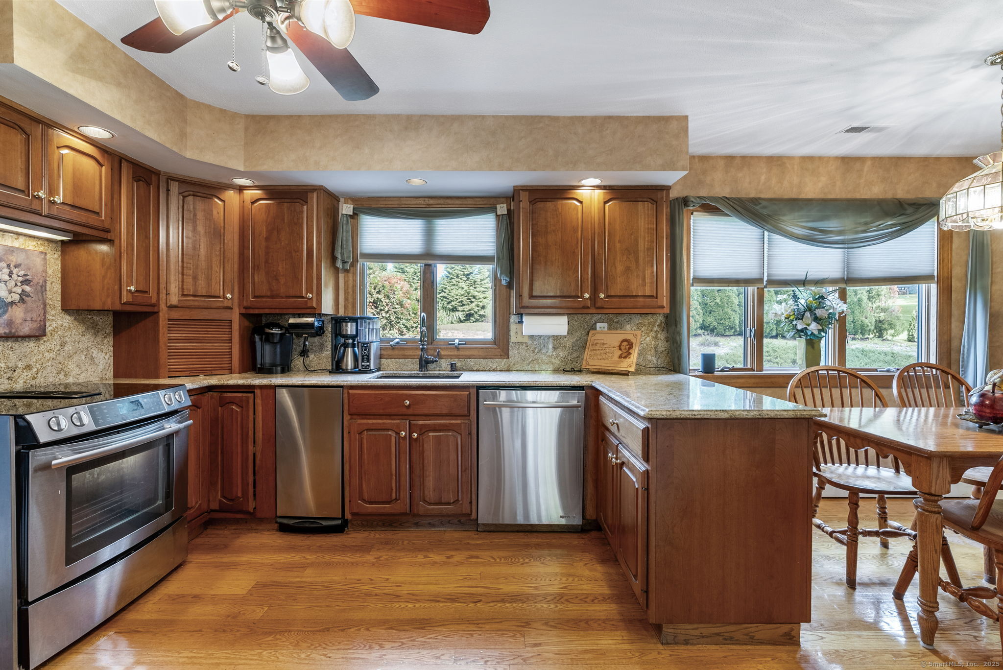 Nestled on a quiet cul-de-sac, this beautiful 4-bedroom, 2.1-bath ranch offers over 2,300 sq. ft. of stylish living space. The sunken living room is a true showstopper, featuring dramatic floor-to-ceiling windows that flood the space with natural light. A spacious dining room overlooks the living area, creating an open and inviting layout perfect for gatherings. The master suite and family room provide direct access to a large deck great for entertaining or simply enjoying peaceful outdoor moments. The home's exterior is maintenance free and features brick and Hardy boy siding.The home's private, meticulously manicured yard enhances its sense of retreat while still being conveniently located. This property combines generous space, architectural character, and a serene setting, making it a rare find. Note: There is Natural Gas available on the street. The home has central vac and a security system.