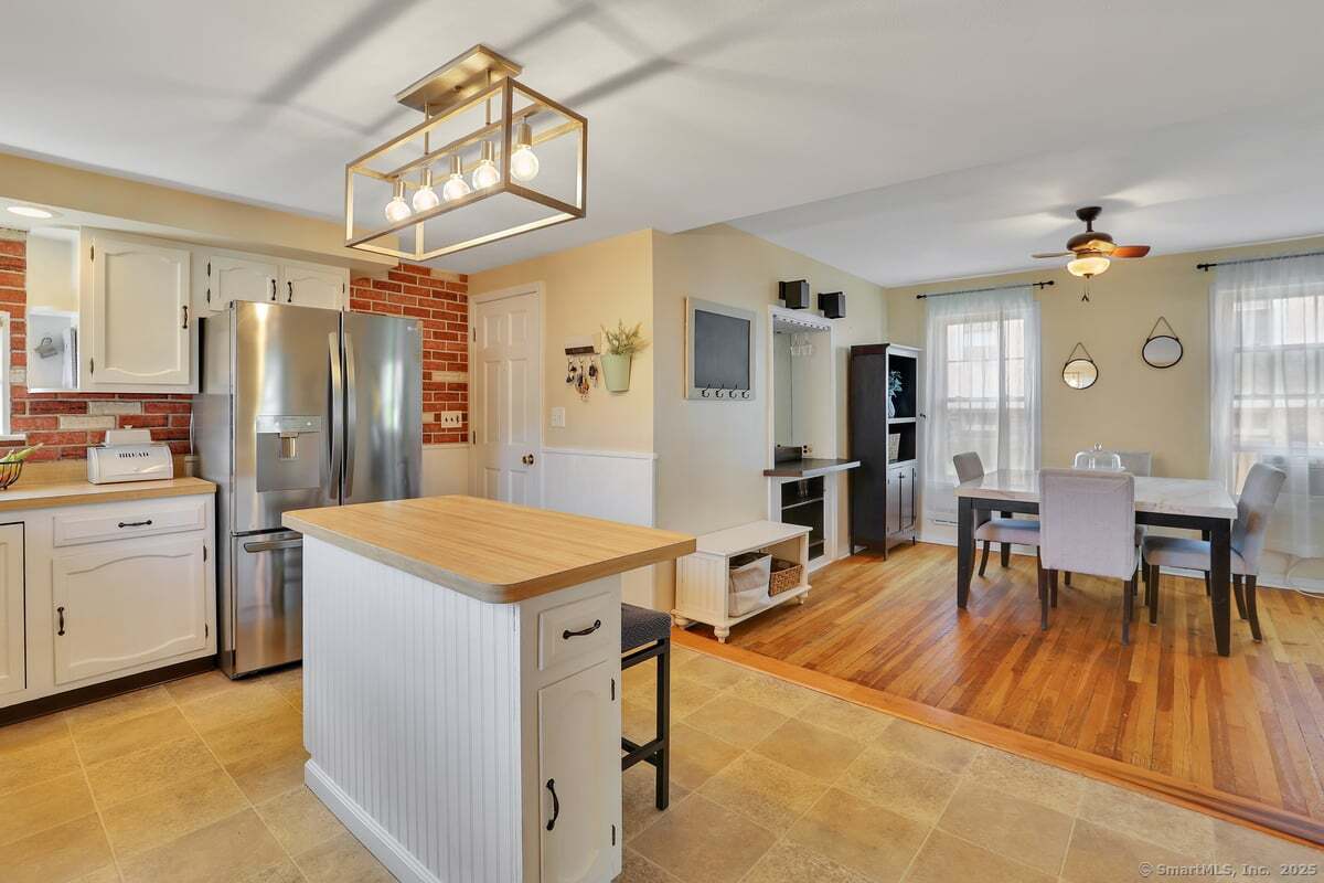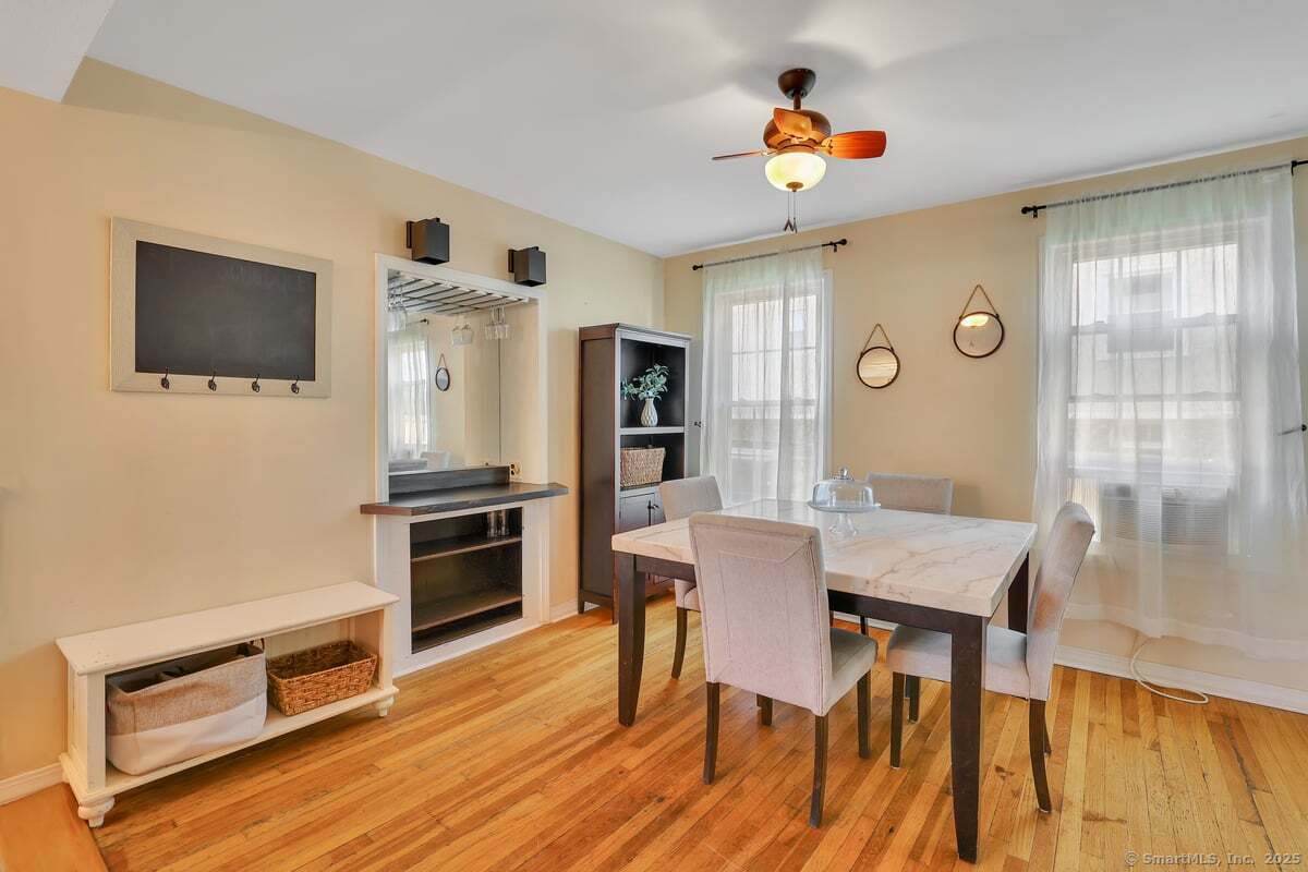 Welcome home to this beautifully maintained 2-bedroom, 1-bath Bungalow that perfectly blends character, comfort, modern updates and a great flow! The sun-filled living room features large windows that flood the space with natural light and highlight the gleaming wood floors. Flow seamlessly into the dining room, complete with a built-in cabinet, before entering the open, well-designed kitchen offering ample cabinets, generous counter space, and a center island with seating. On the second floor you'll find the two bedrooms. One with double closets, and the other with additional spaces to utilize for extra space, storage, or to utilize as office space, a reading room, play room and more. Also on the second level is the updated bathroom that has been thoughtfully renovated with stylish shiplap paneling, tile floor, modern vanity and light fixtures, giving it a fresh, designer feel. Enjoy warm summer days relaxing on the inviting front porch, or host weekend barbecues on the back patio overlooking the level, private backyard. Situated in a prime location and in one of Meriden's most established neighborhoods, you'll appreciate the easy access to schools, shopping, restaurants, and major highways, making commuting a breeze. Don't miss your chance to own this adorable home with modern updates and timeless charm!