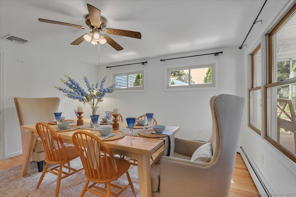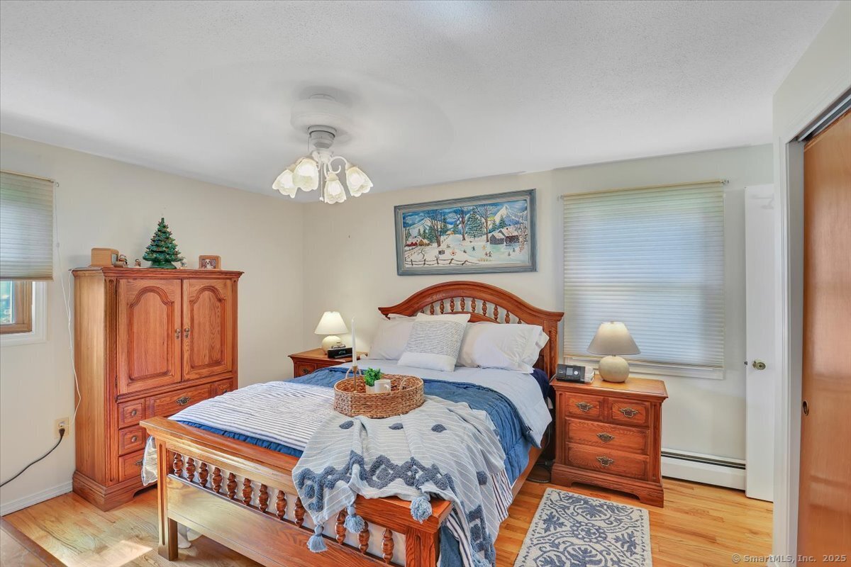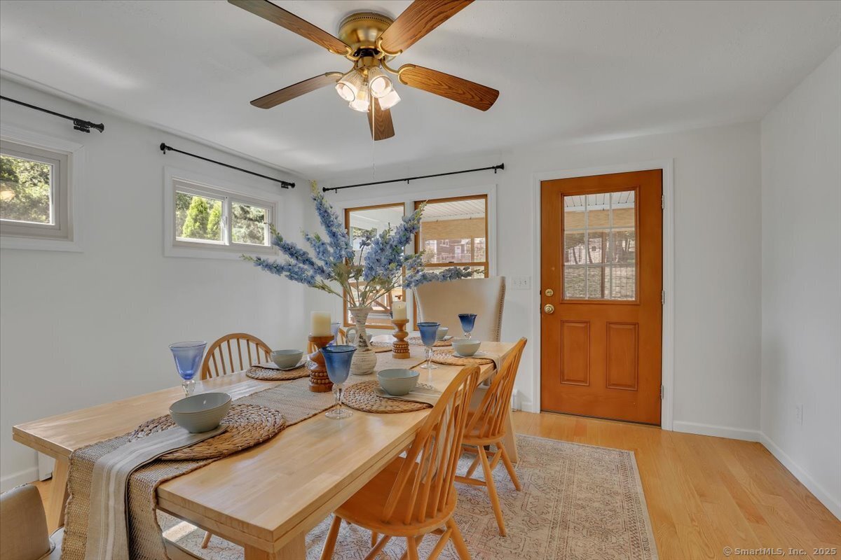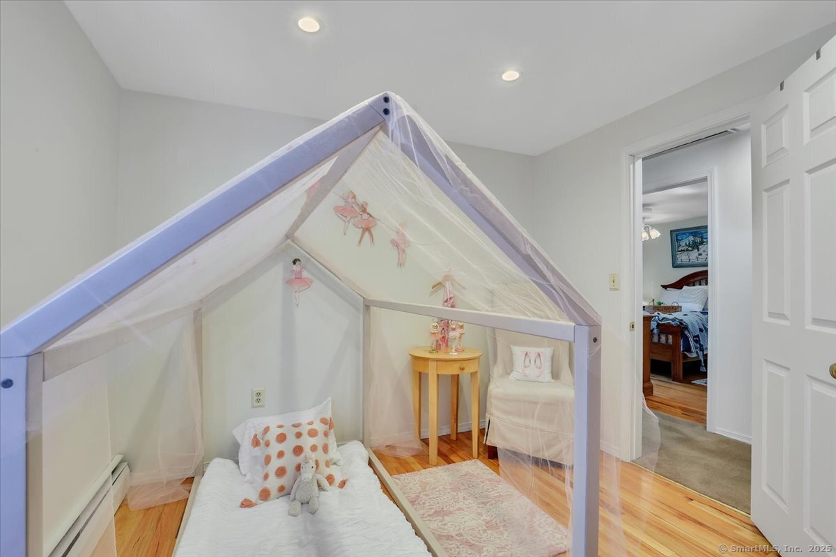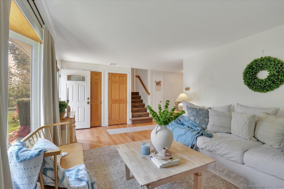Ideally located just 10 minutes from downtown Wallingford with easy access to the highways, this raised ranch pairs everyday convenience with welcoming, inviting spaces. The beautifully landscaped front lawn with its sprinkler system and walkway lead you into a home with refreshed walls and hardwood floors throughout. Listed as a 3 BR, there is a possibility of a 4th BR or let your imagination take hold when you view the back room on the main level, currently being used as an office. The recently remodeled kitchen, flooded with natural light from 2 skylights has gleaming quartz countertops, soft closed cabinets, stainless steel appliances and a generous pantry and a half. Enjoy your morning beverage of choice in the 3 season sunroom that leads out to a beautifully landscaped patio. The lower level adds 288 extra square feet, perfect for an entertainment center. Did I forget to mention the architectural metal roof? That's right, installed 12 years ago with a useful life of 50 years! And there is ample off street parking, the oversized driveway can park 6 vehicles. Book your showing now!!