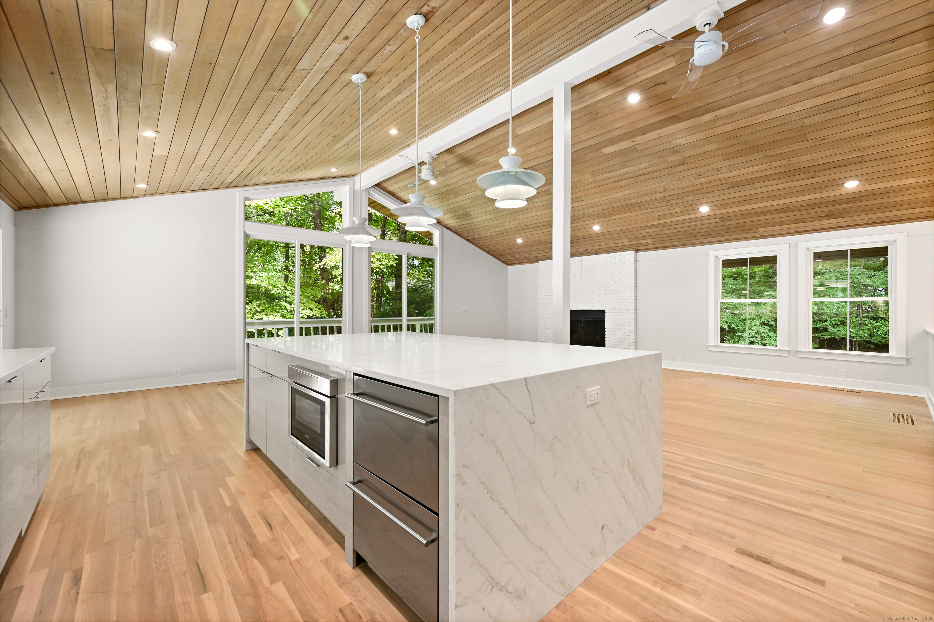 SOPHISTICATED CONTEMPORARY RETREAT - CLOVER LANE Exciting opportunity to own a beautifully reimagined Contemporary home on an expansive 1.27 acres at the end of a peaceful Westport cul-de-sac. This thoughtfully renovated 3000 square-foot residence features open concept living areas with streaming natural light and captivating views of mature lush greenery. A sleek, designer kitchen serves as the heart of the home with contemporary cabinetry, premium countertops, and curated finishes. Seamless indoor-outdoor flow creates an ideal environment for both intimate gatherings and group entertaining. Highlights include: * Dramatic floor-to-ceiling windows framing natural beauty * Soaring ceilings enhancing spaciousness * Thoughtfully renovated bathrooms with modern fixtures * Multiple access points to outdoor terraces and patios * Clean architectural lines celebrating mid-century heritage with contemporary sophistication * The generous, private grounds offer endless possibilities while recent updates ensure modern comfort and efficiency. City water, Natural Gas and City Sewer complete this unique residence. Enjoy tranquil living surrounded by nature's beauty with ultimate privacy, plus prime location minutes from Westport's beaches, top schools, vibrant downtown, and Metro North train service. A rare opportunity to embrace sophisticated contemporary living on substantial acreage in coveted Westport.