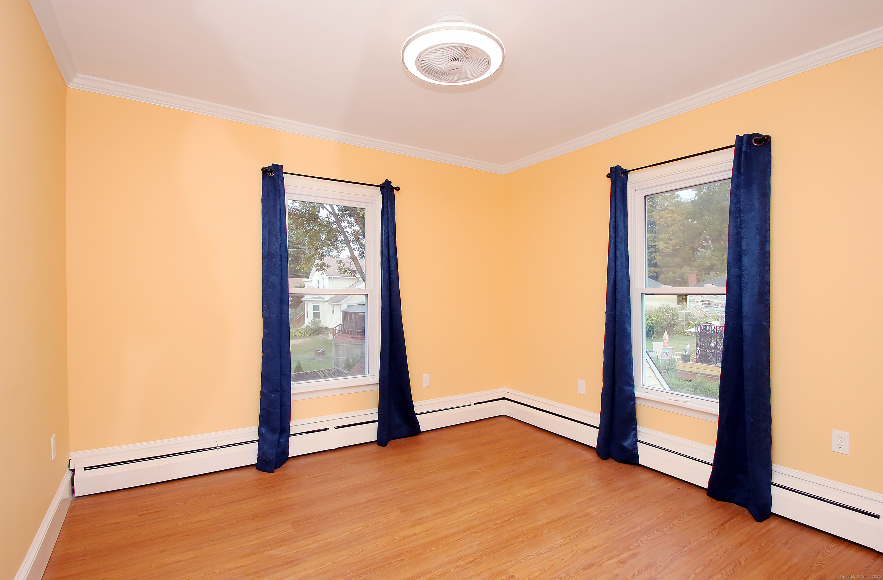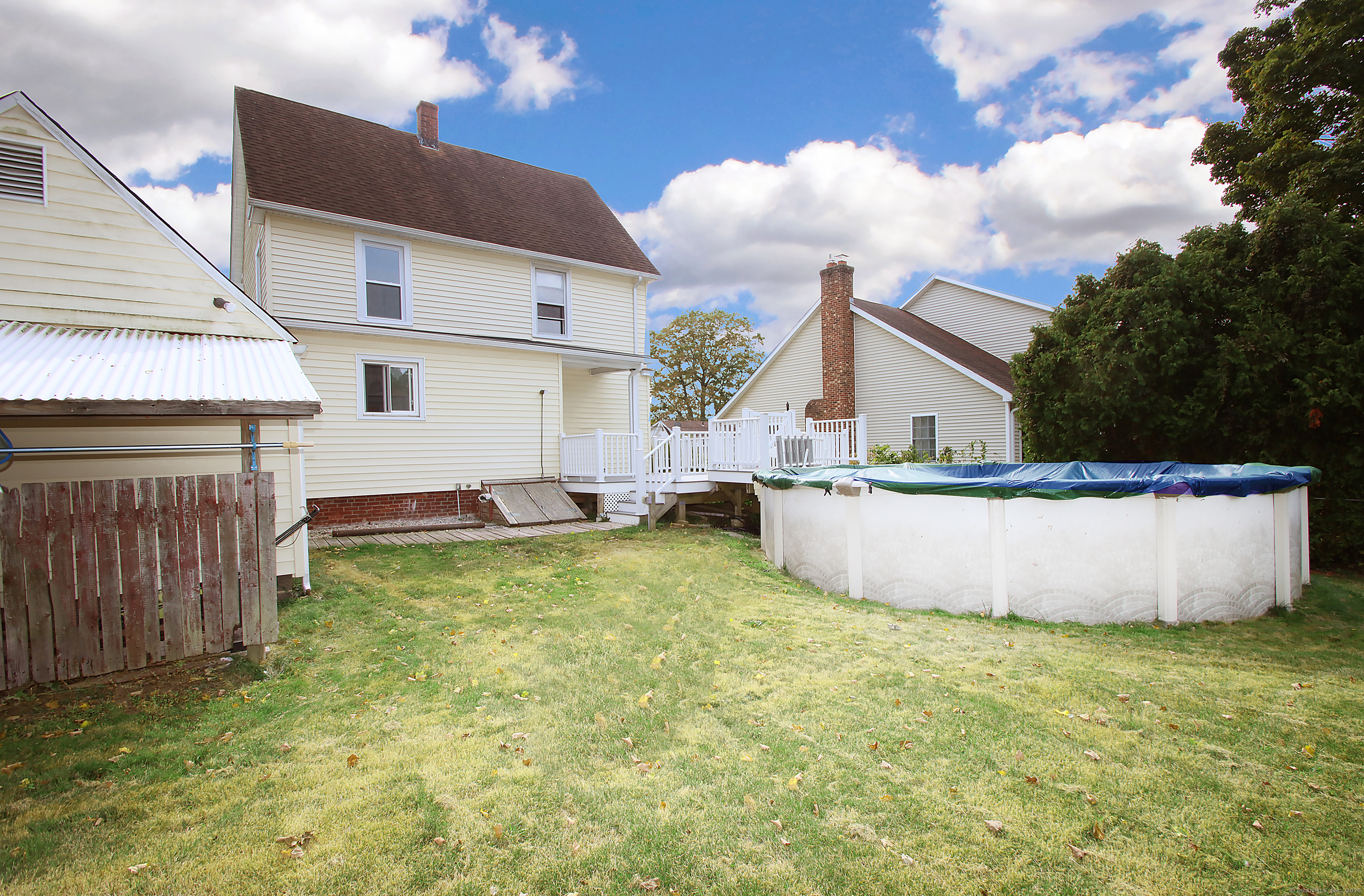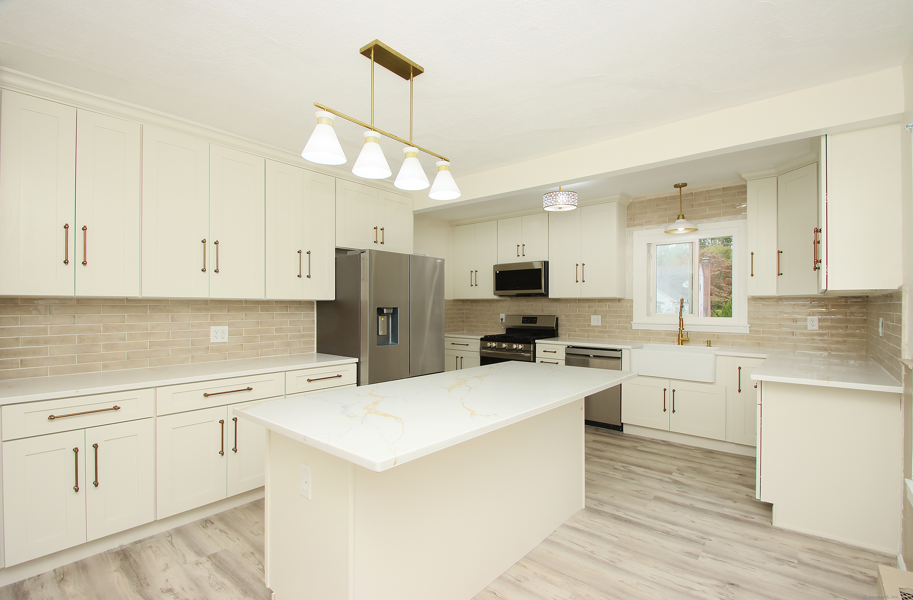 Walk through the front door of this classic colonial and enjoy the beautiful updates. The kitchen has been beautifully updated with white soft close cabinets, trimmed with satin brass handles that complement the quartz countertops. The large center island is an amazing space for preparing food and entertaining. The back splash is an Italian tile that extends beautifully to the ceiling. Stainless steel appliances featuring a gas stove, built in microwave, dishwasher and a refrigerator with French doors. The living room features a gas stove for cozy, comfort on cold winter days. Three bedrooms are located on the 2nd floor and there is access to an expansive walk up attic with great potential for additional living space or just additional storage. The enclose front porch is a perfect space to use as a mud room or a sunny space to relax. The kitchen walks out to a spacious composite deck accessing an above ground pool and fully fenced in yard. Conveniently located in South Meriden close to parks, schools, shopping, and easy access to highways.