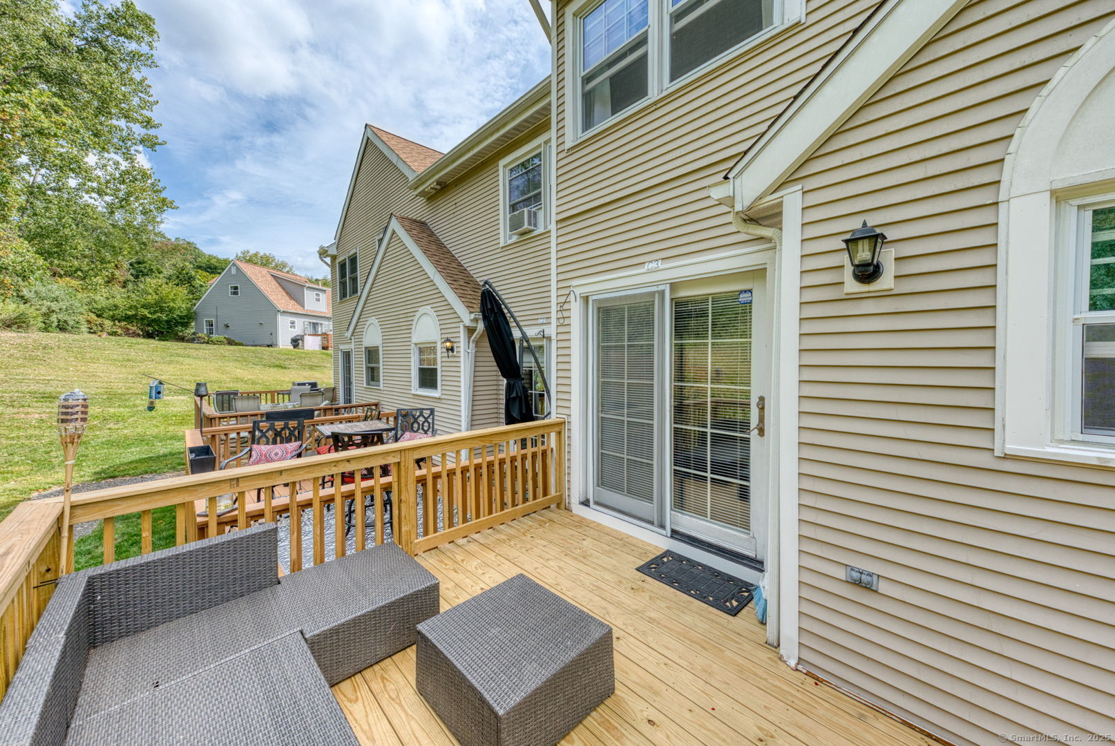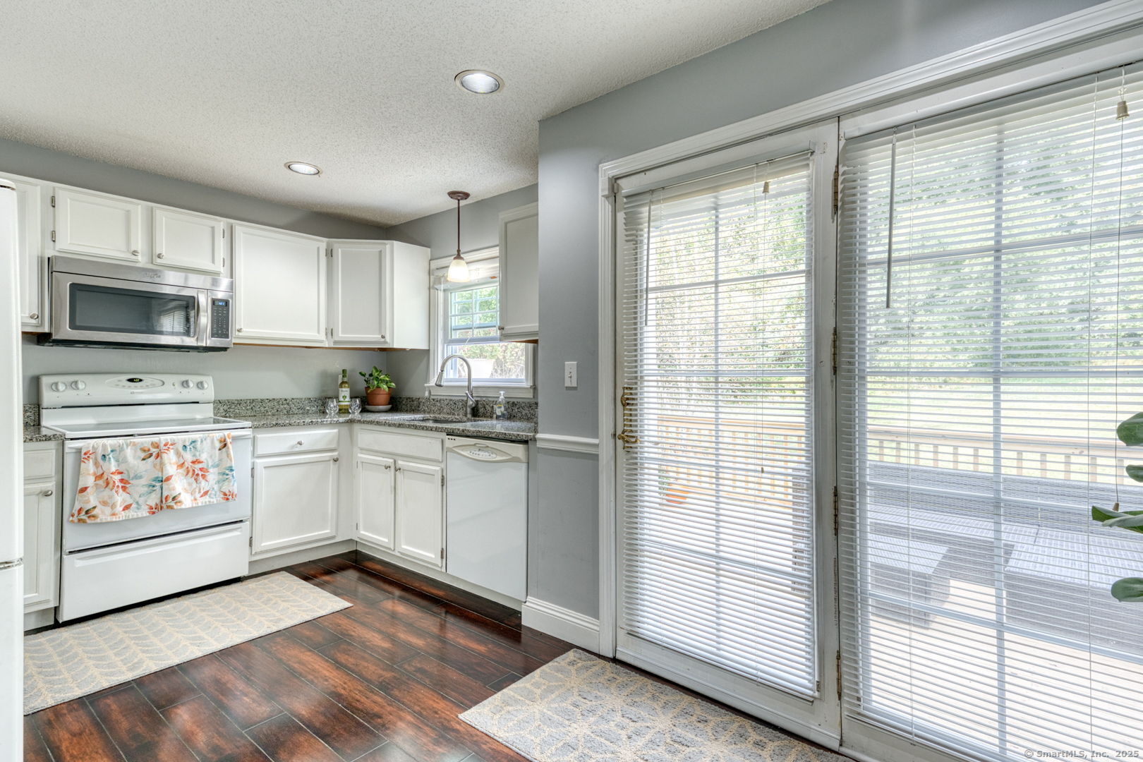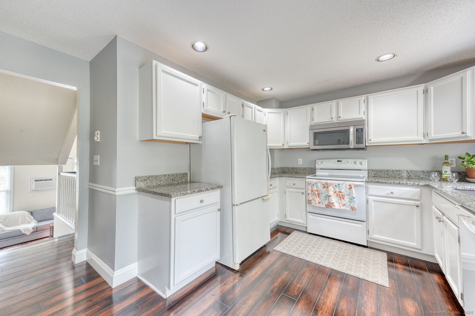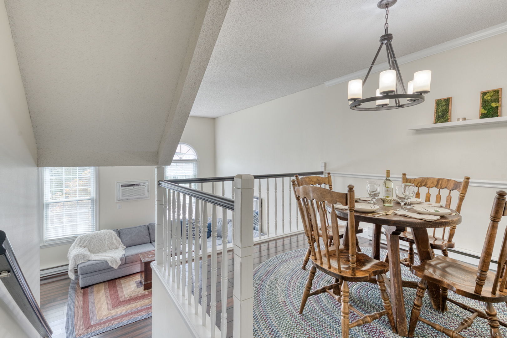 Elegant Westside Woods Split Level Townhouse, completely Renovated in 2022. This 2-bedroom home offers flexibility for a 3rd bedroom, home office or den. Features include formal dining area, gleaming chocolate brown floors, plush carpeted bedrooms, granite countertops, tiled bathrooms and a cathedral-ceiling living room to let in lots of natural light. Sliders in the kitchen open to a brand-new deck, perfect for entertaining. Attached garage and sought-after community complete this move-in ready gem.