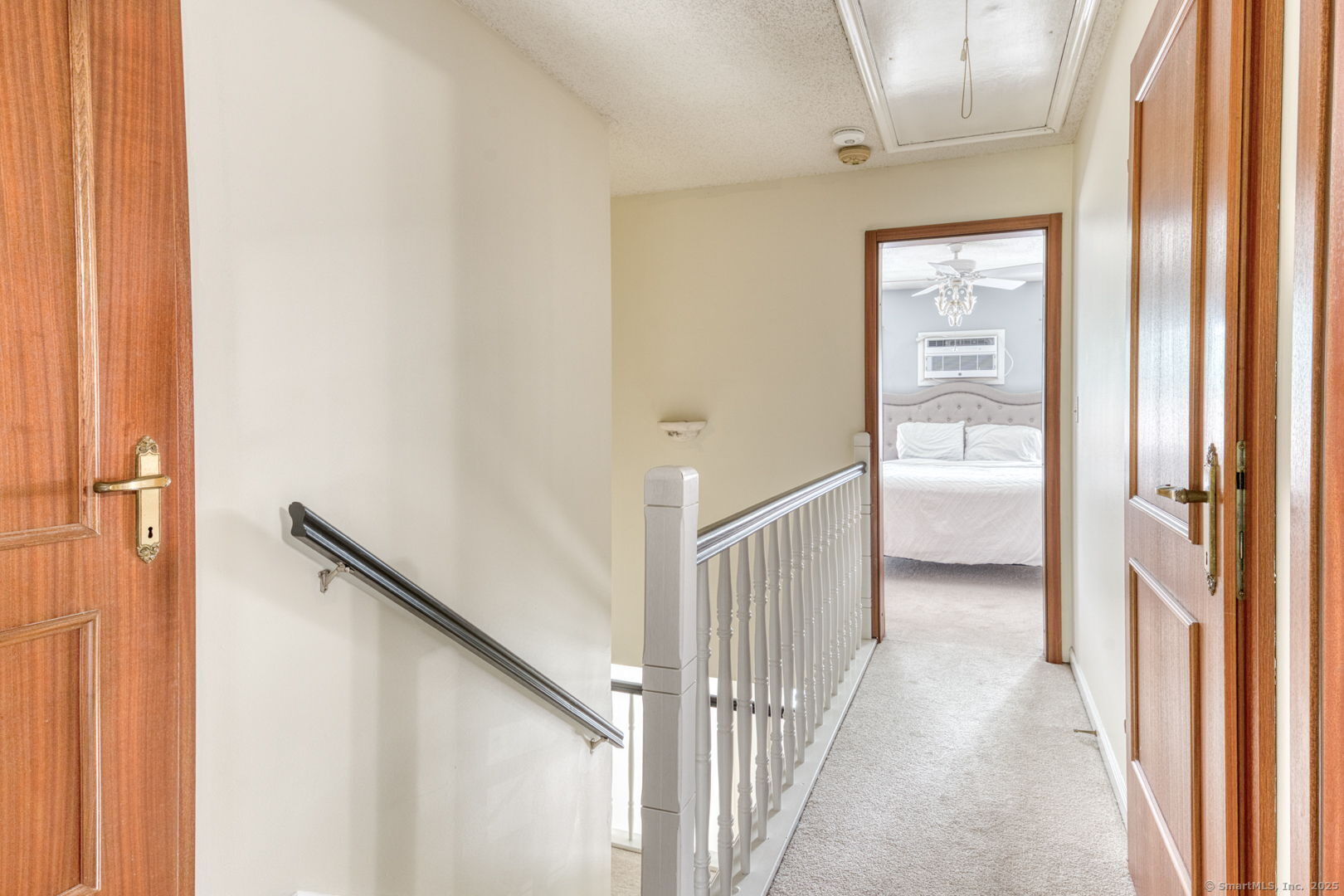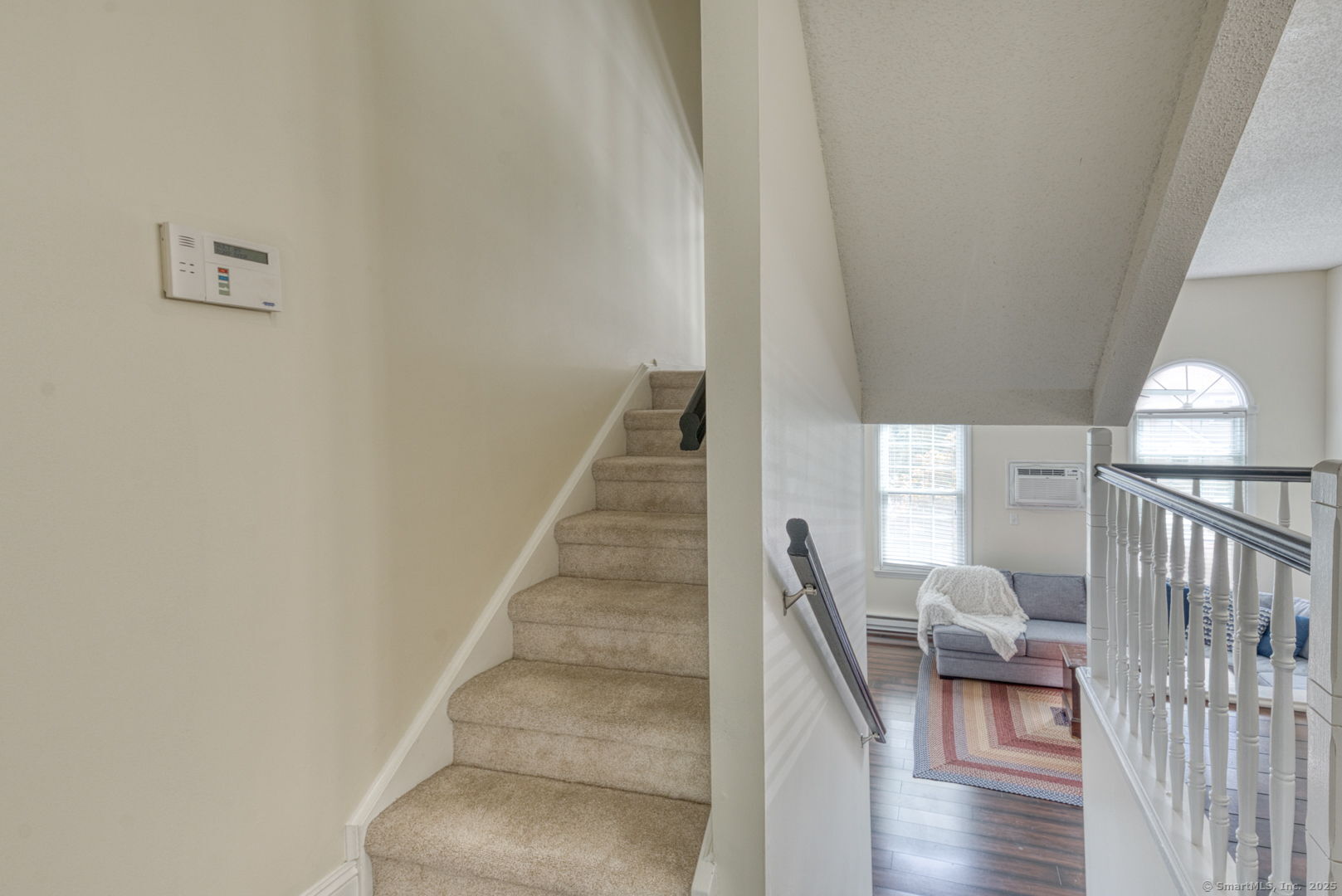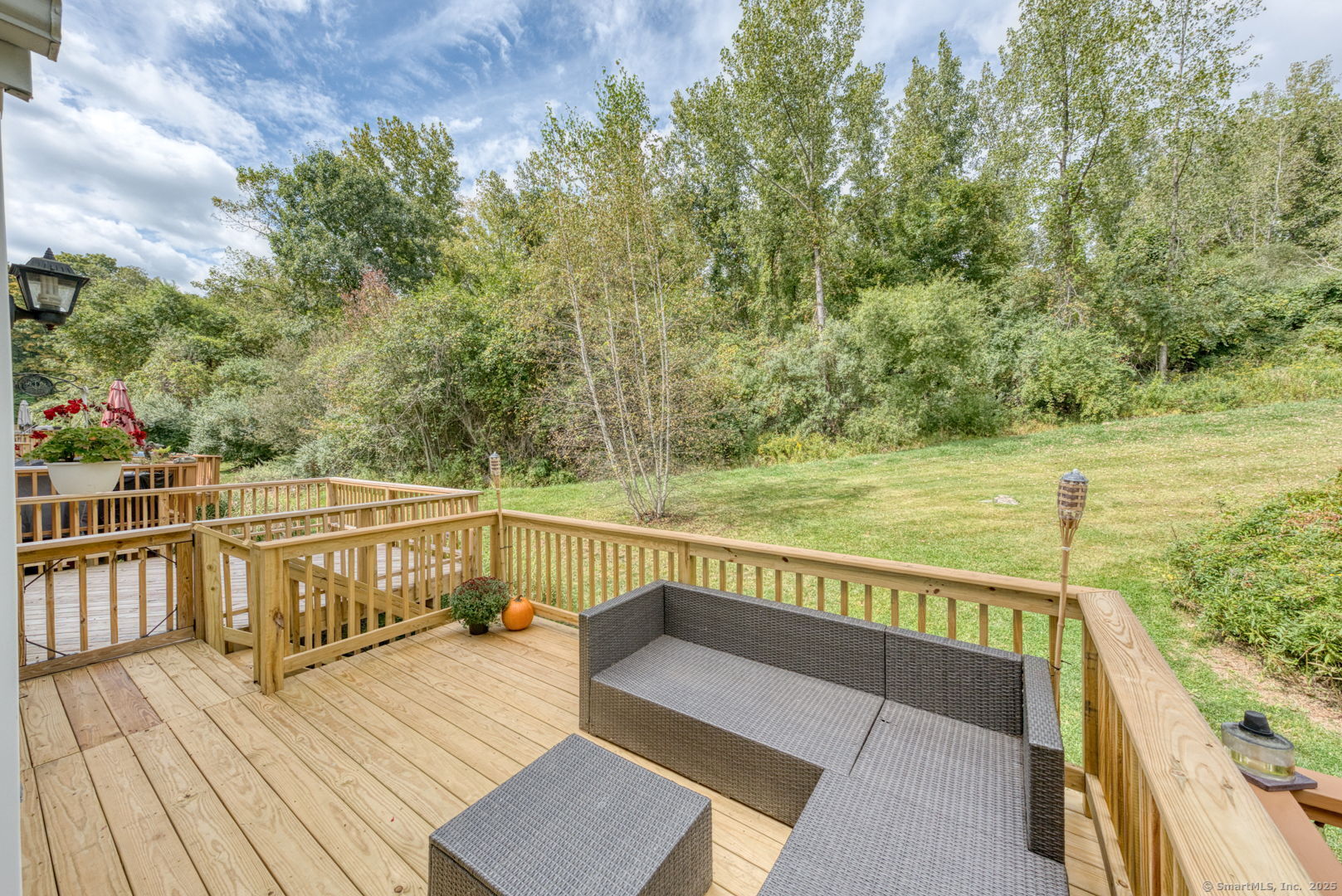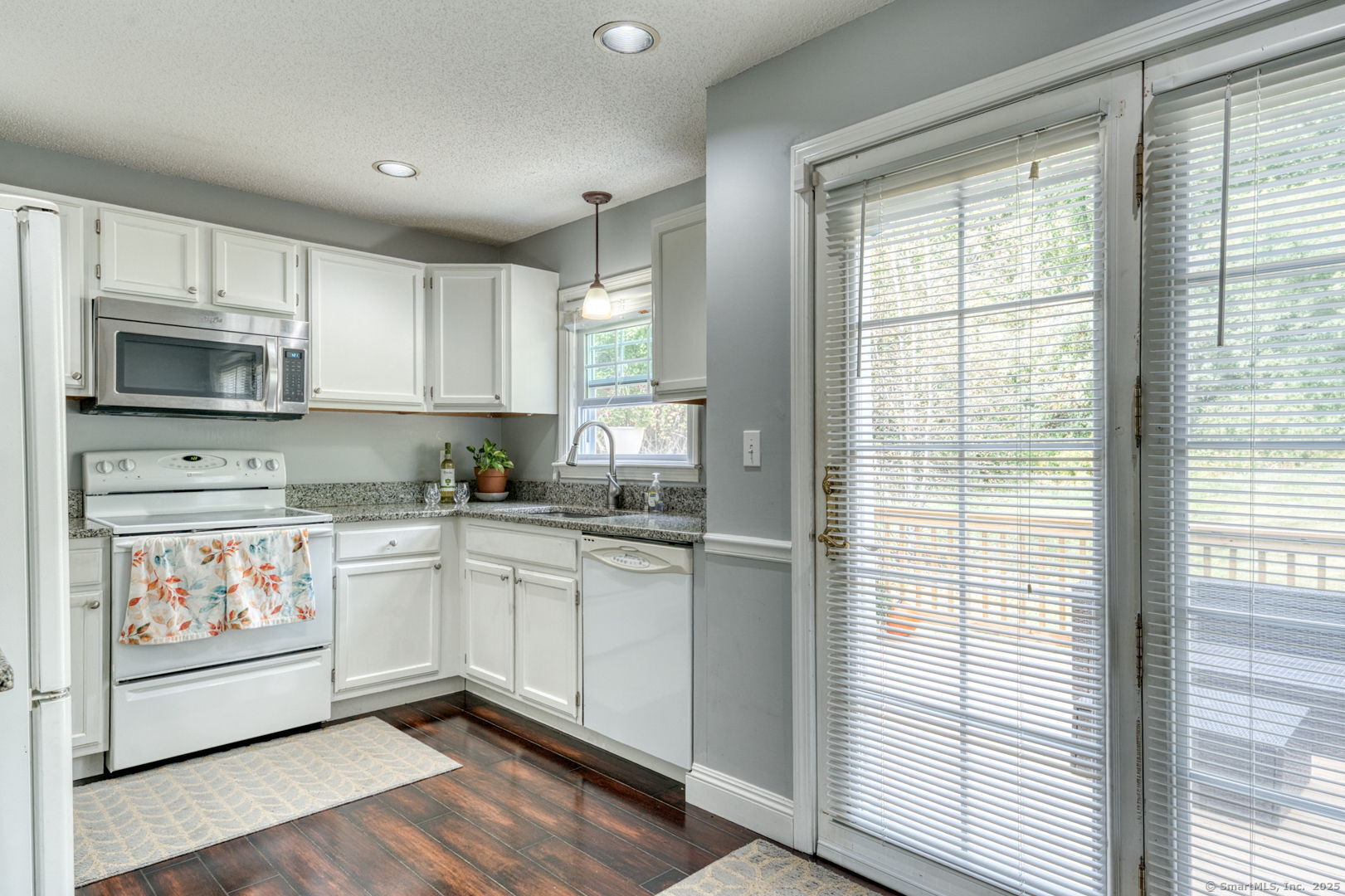 Elegant Westside Woods Split Level Townhouse, completely Renovated in 2022. This 2-bedroom home offers flexibility for a 3rd bedroom, home office or den. Features include formal dining area, gleaming chocolate brown floors, plush carpeted bedrooms, granite countertops, tiled bathrooms and a cathedral-ceiling living room to let in lots of natural light. Sliders in the kitchen open to a brand-new deck, perfect for entertaining. Attached garage and sought-after community complete this move-in ready gem.