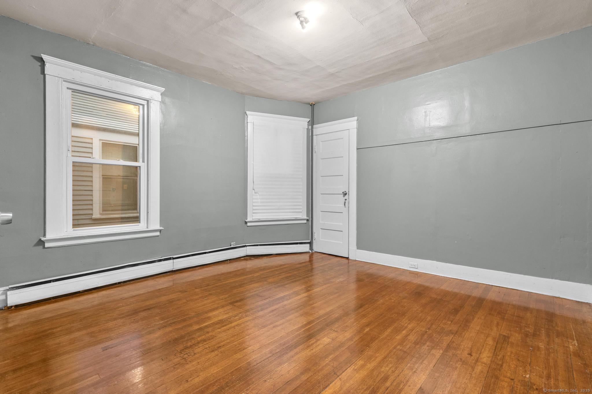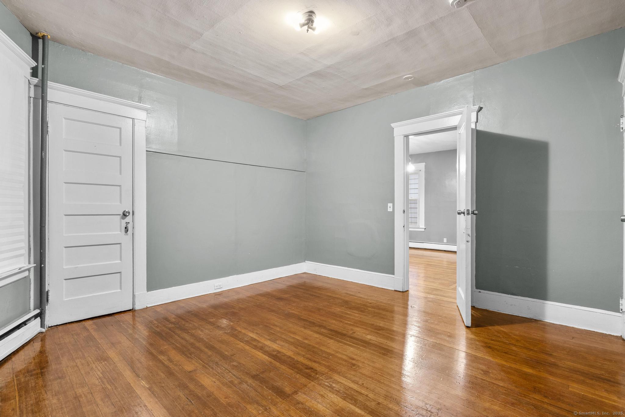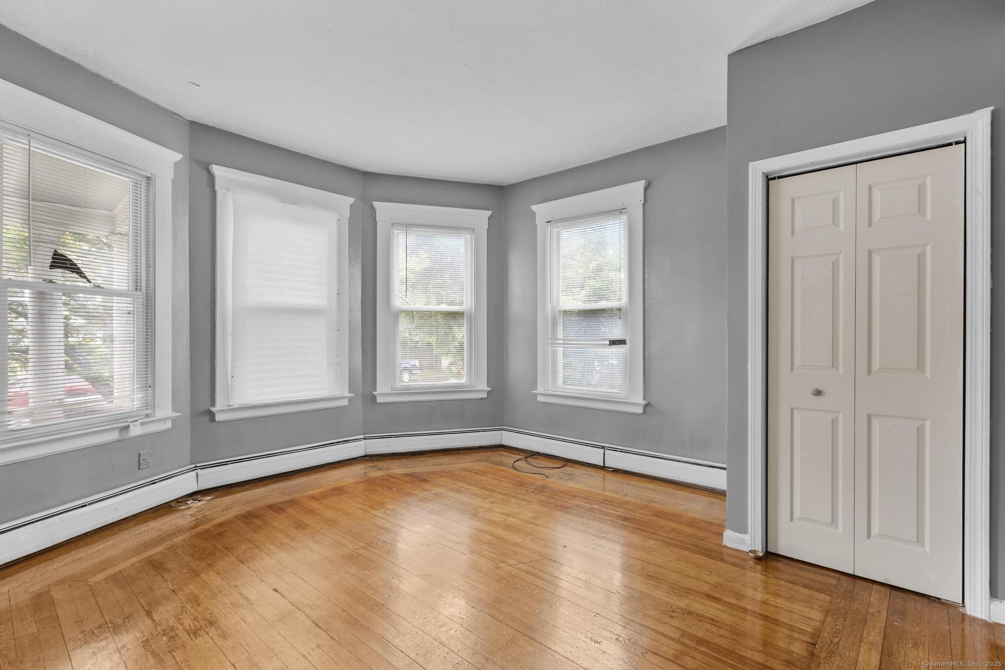 Generous first-floor unit in a charming three-family home. Features three sizable bedrooms plus an extra room adjacent to the kitchen-perfect for a home office or dining nook. Bright and airy interior with high ceilings, freshly refinished hardwood floors, and fresh paint throughout. Ready for immediate move-in! Credit screening required. Prime location near Yale and downtown New Haven. Enjoy the convenience of off-street parking in the private driveway, shared laundry in the basement, and a fenced backyard for outdoor space.