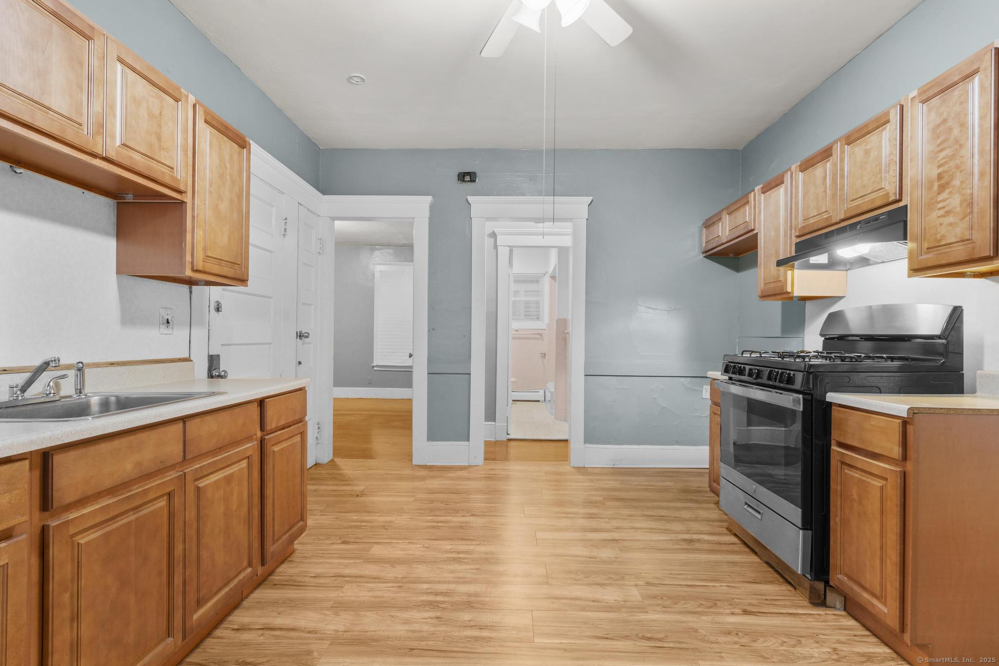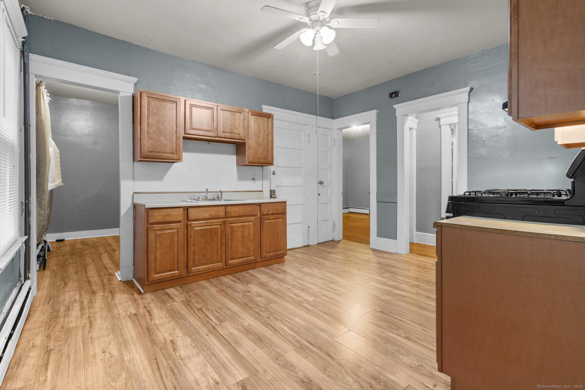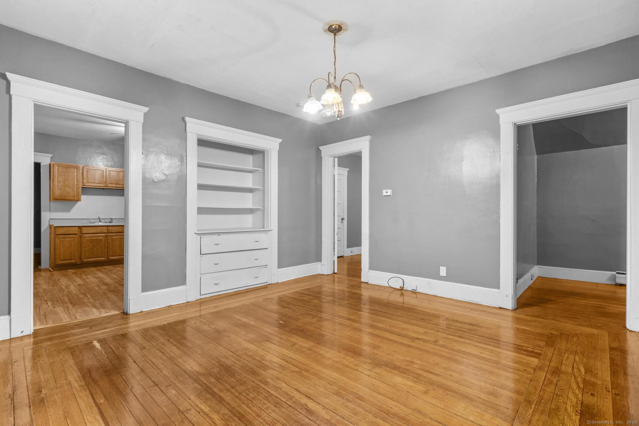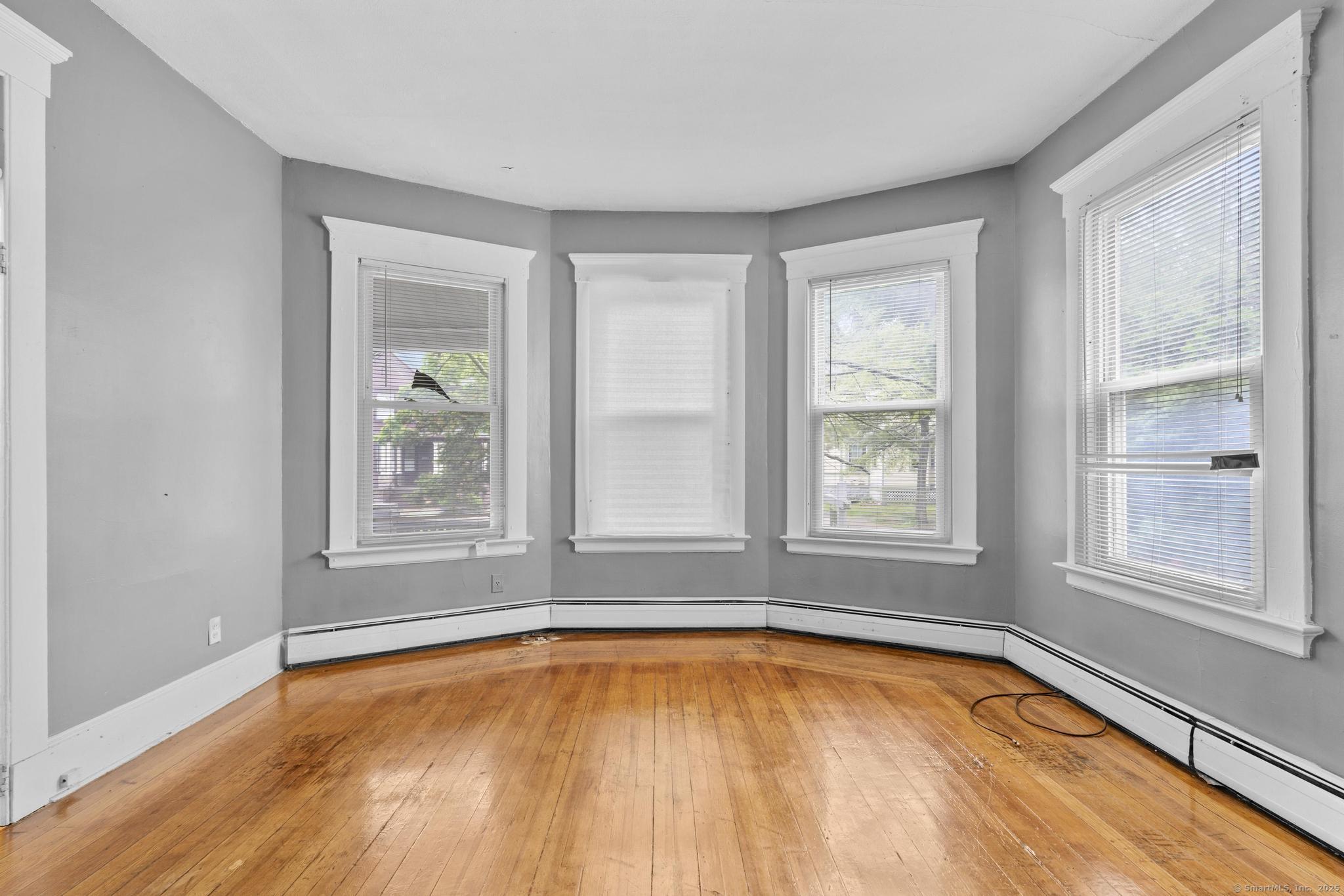 Generous first-floor unit in a charming three-family home. Features three sizable bedrooms plus an extra room adjacent to the kitchen-perfect for a home office or dining nook. Bright and airy interior with high ceilings, freshly refinished hardwood floors, and fresh paint throughout. Ready for immediate move-in! Credit screening required. Prime location near Yale and downtown New Haven. Enjoy the convenience of off-street parking in the private driveway, shared laundry in the basement, and a fenced backyard for outdoor space.
