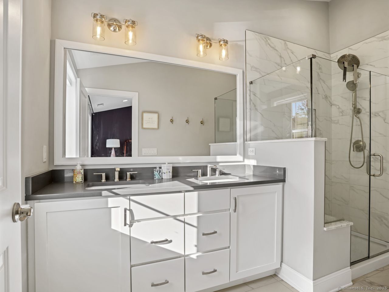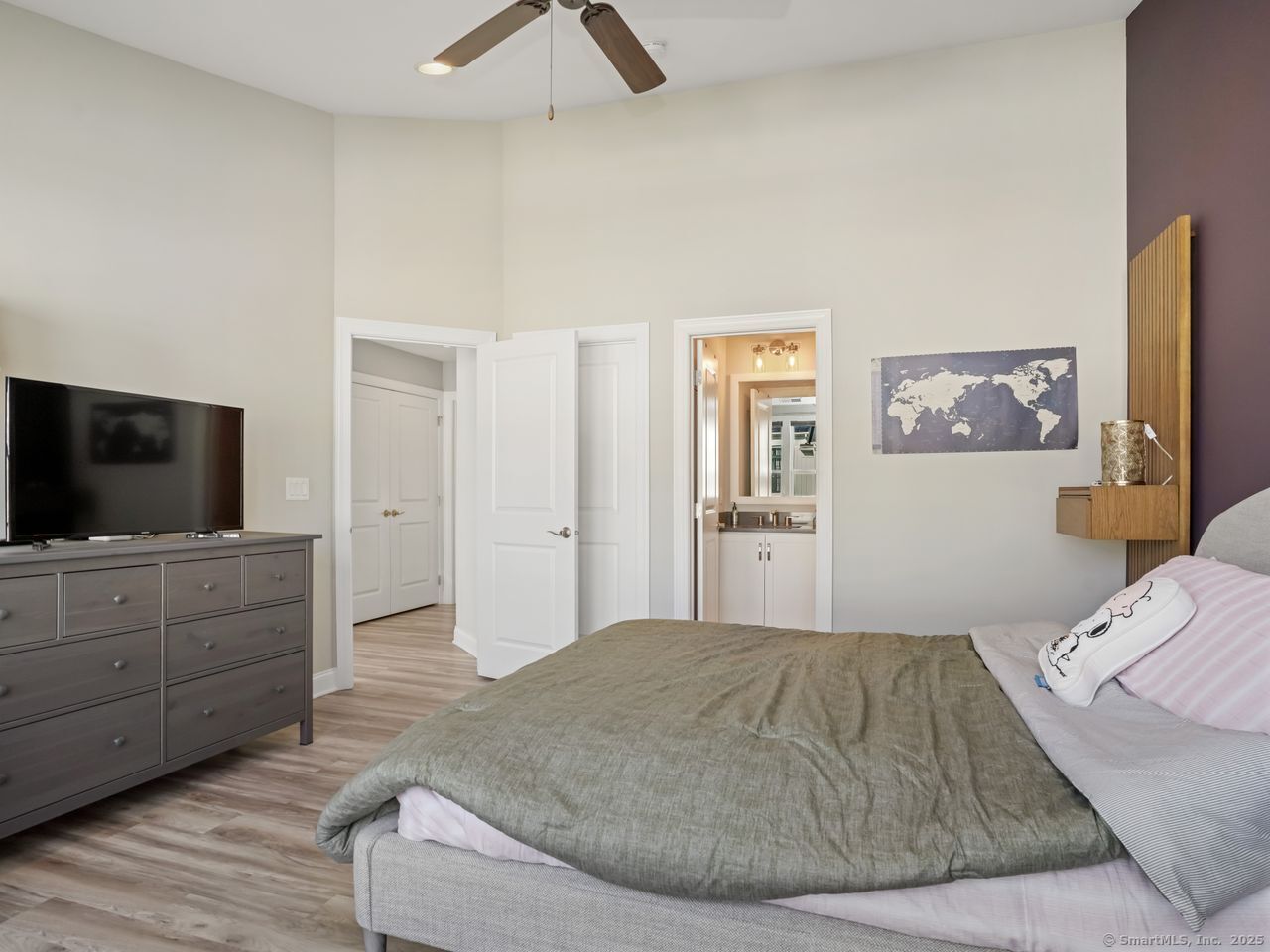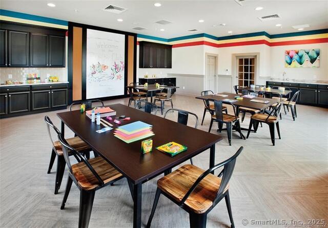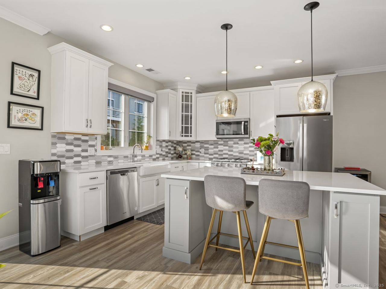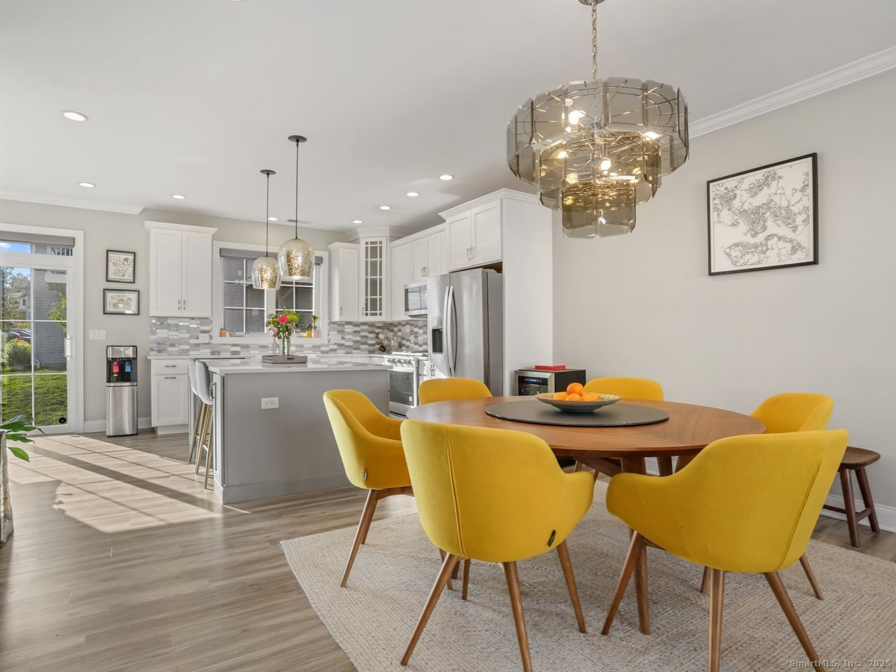 Welcome to The Rivington, where resort style amenities meet modern luxury. This bright and spacious end unit townhouse offers an exceptional living experience, perfect for both relaxation and entertaining. Updated light fixtures throughout the home. Enjoy the beautiful kitchen featuring stainless steel appliances, quartz countertops, center island, large pantry, and slider leading to the outdoor patio. Crown molding and hardwood floors flow throughout the main level, with an open floor plan connecting the living room and dining area-perfect for entertaining. Oversized windows allow for an abundance of light. Upper level continues to impress with vaulted ceilings in both bedrooms. The primary bedroom features a full bathroom with double sink vanity and walk-in-closet. The lower level includes direct access to the two-car tandem garage. Rivington amenities include pickleball and tennis courts, two outdoor swimming pools, indoor lap pool, state of the art gym, aerobics room, sauna, locker rooms, movie theater, billiards, walking trails, basketball, bocce, firepits with outdoor TVs, and playground. Candlewood Lake, Danbury Mall, outstanding restaurants and shops nearby. Minutes to I84 for easy commute to NY and Fairfield County.