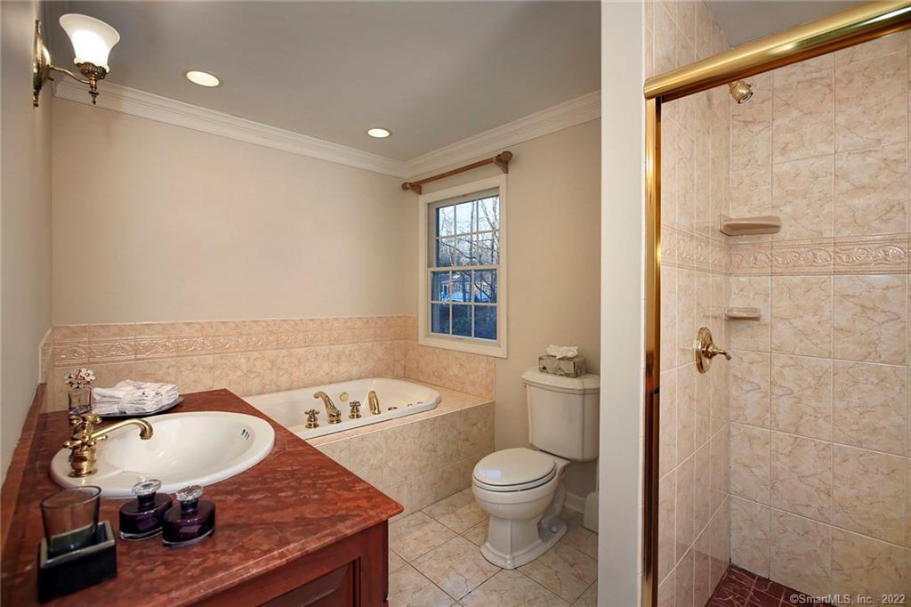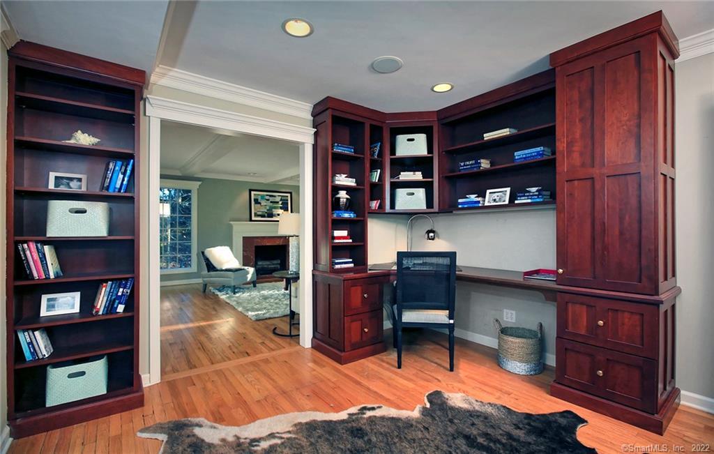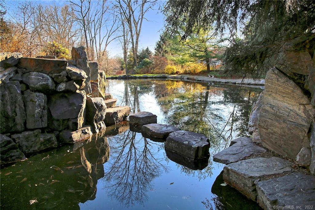 Venture through stone pillars, nestled at the end of a private lane sits this beautiful 4-bedroom colonial harmoniously sited on a breath-taking, aw-inspiring parkland of cascading waterfalls, coi-pond for kayaking, zen gardens, botanicals & meandering stone paths. The large sun-drench rooms w/hardwood floors flow seamlessly from front-to-back living room w/gas fireplace, dining rm, large family rm plus sep. private office, all offering beautiful vistas for gracious & casual entertaining. The expansive chef's kitchen features ss sub-zero frig, 6 burner gas wolf stove with 2 ovens, bosch dishwasher & granite breakfast bar connecting to breakfast solarium w/vaulted ceiling & access to expansive deck for morning coffee, BBQ & al fresco dining.The kitchen also opens to the family rm w/2nd frpl & gorgeous views overlooking the pond providing year-round bird watching & syncopation of colors through all seasons! The primary en-suite features jacuzzi tub, glass walk-in shower, granite, walk-in closet & sep. cedar closet. Fin. lower level has newer carpet, built-ins, room for gym, media/rec options & plenty of extra storage. Additional benefits are full-house generator, privacy & only minutes to schools, shopping, train/commuting; yet you'll be totally transported into an oasis of dramatic & enchanting tranquility! Previously showcased on Westport Garden Tour. A truly rare & unique opportunity! Agent related. Photos from previous listing.