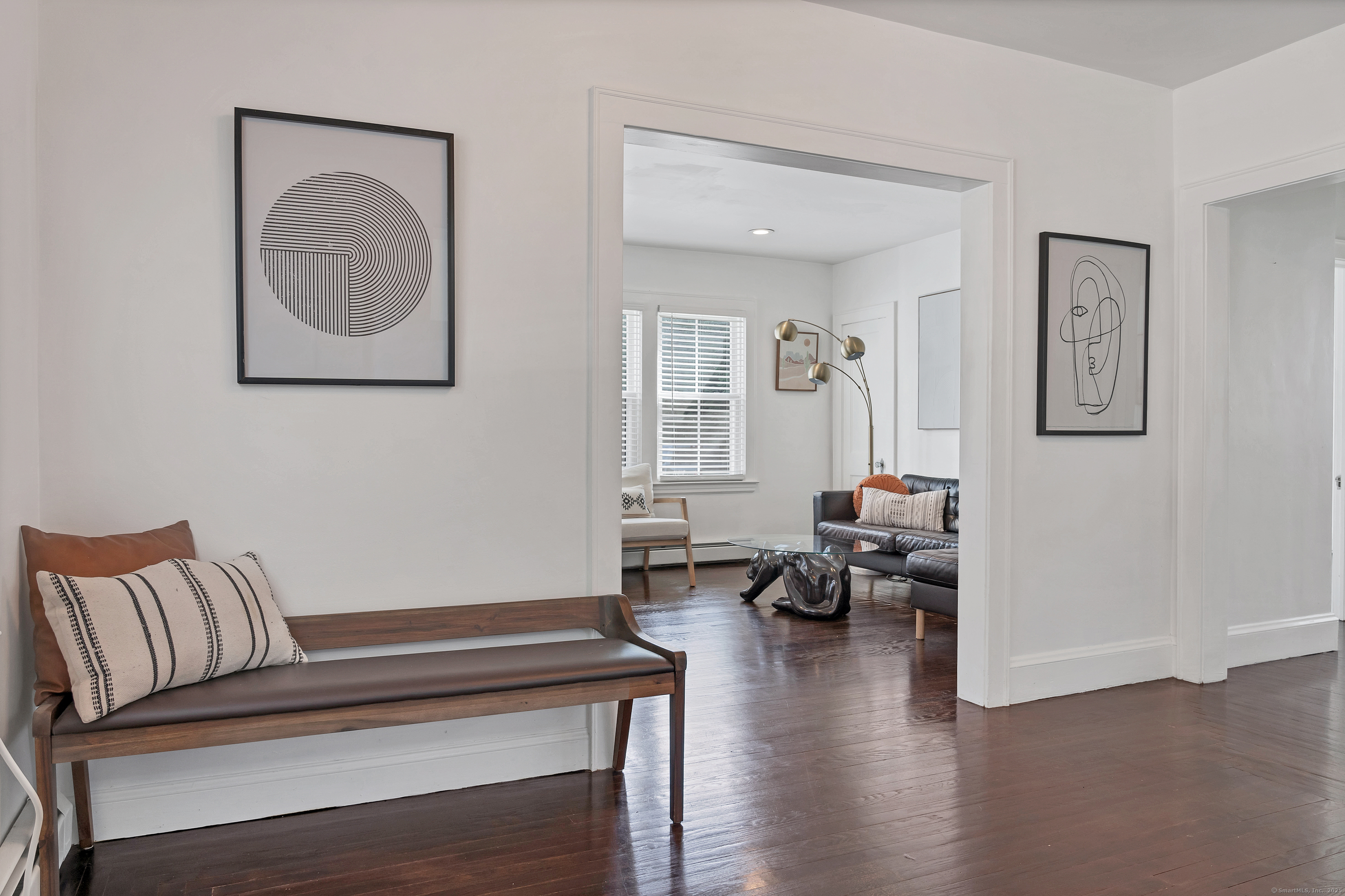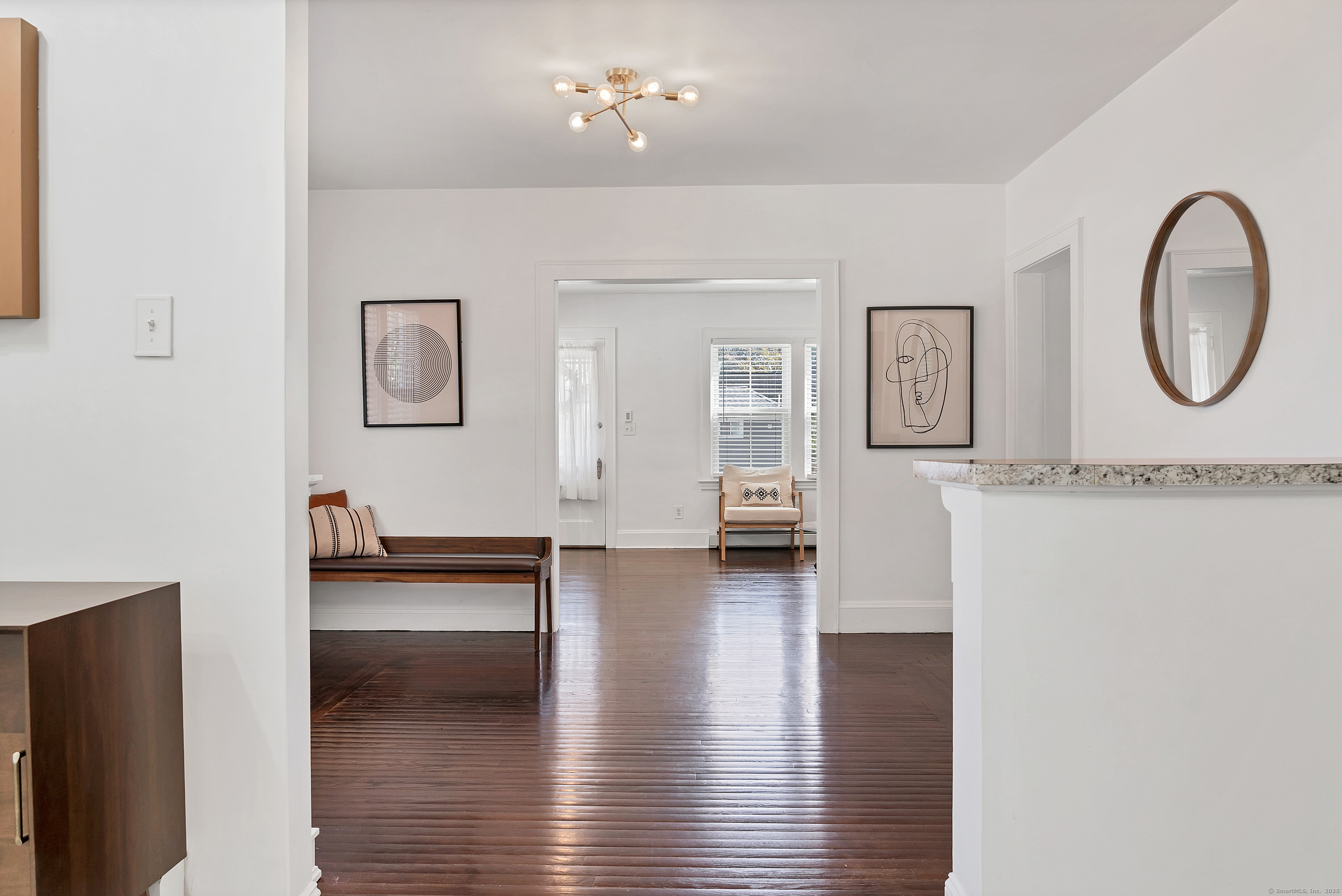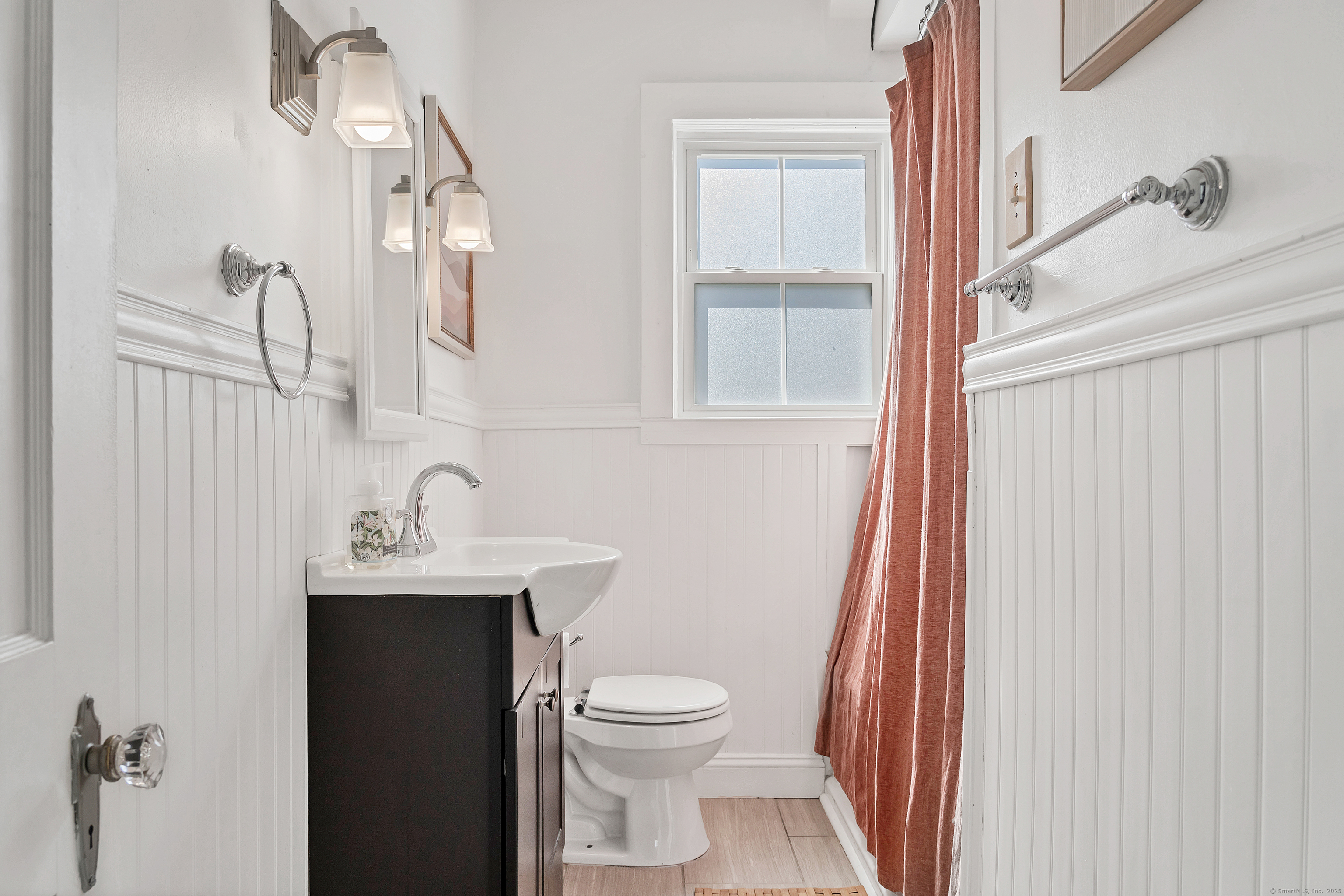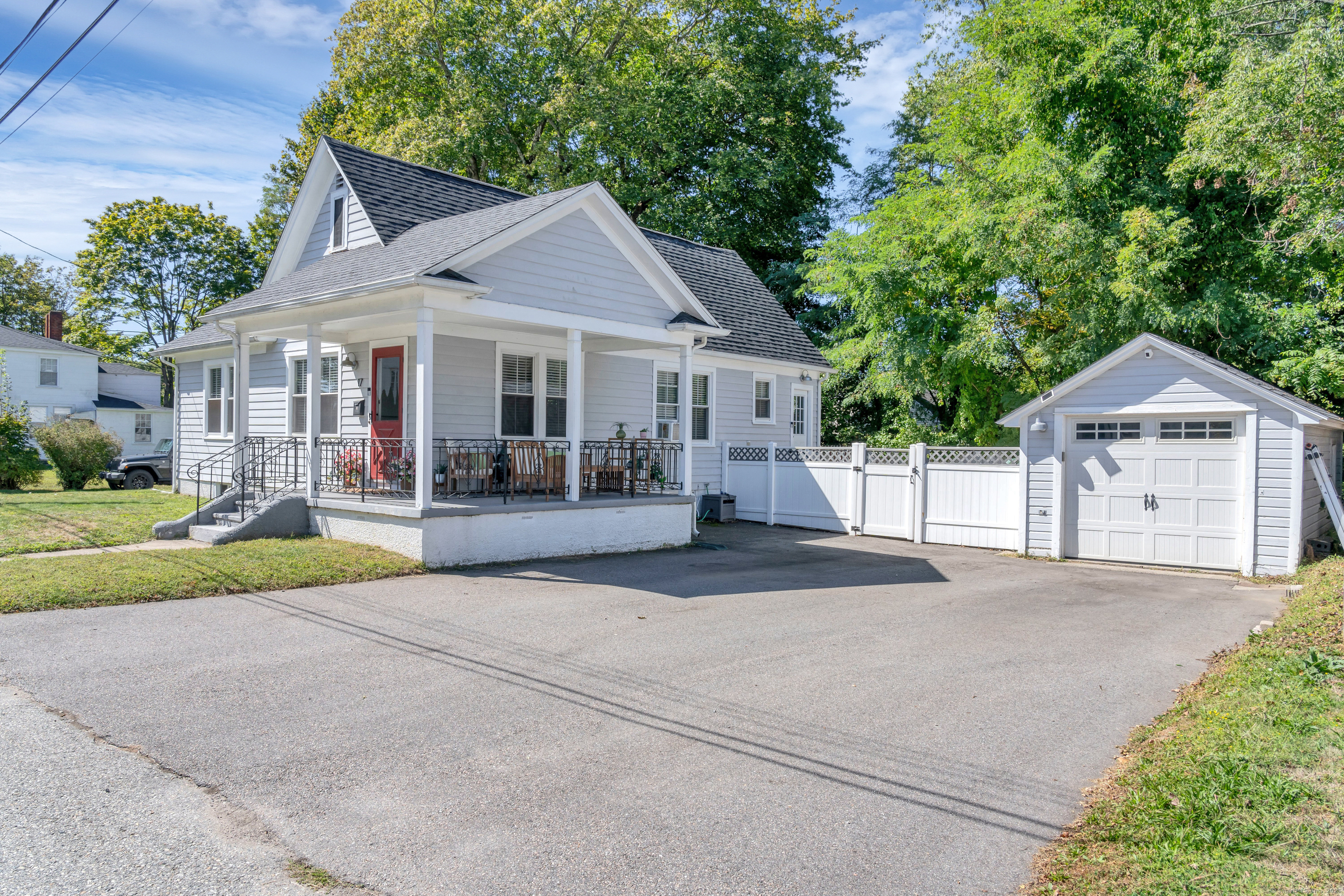 This charming cape cod home with wrap around porch on a quiet cul-de-sac is lovingly cared for and ready for its next owners. Completely renovated in 2014 with a new roof, windows and paint as well as interior features such as a new kitchen w/stainless appl. (new dishwasher in 2022) Updated bath, hardwood floors and a new gas boiler. New hardwood flooring on the second floor and stairs was installed in 2022. Basement is in excellent shape and a wide-open space to transform into your heart's desire. Nearby destinations are Foxwoods and Mohegan Sun, Mohegan Park, Downtown Mystic, Electric Boat, Pfizer, Naval Base and Coast Guard Academy and the train to New York or Boston. With an enclosed backyard for privacy and a detached one car garage with a generously sized paved driveway large enough for 4 cars, this home is exactly what you've been looking for! Turn key-must see!