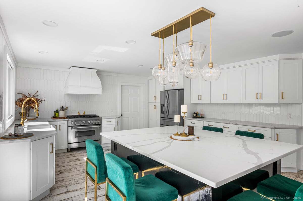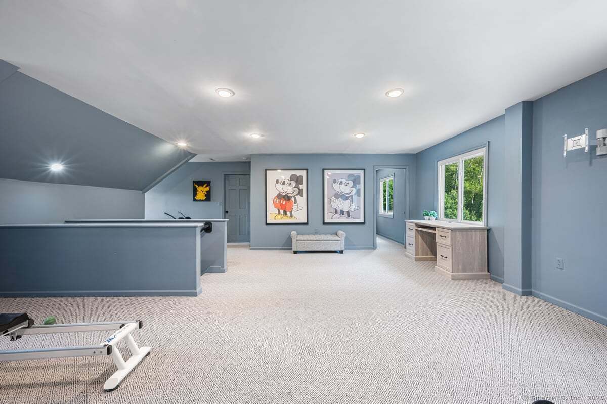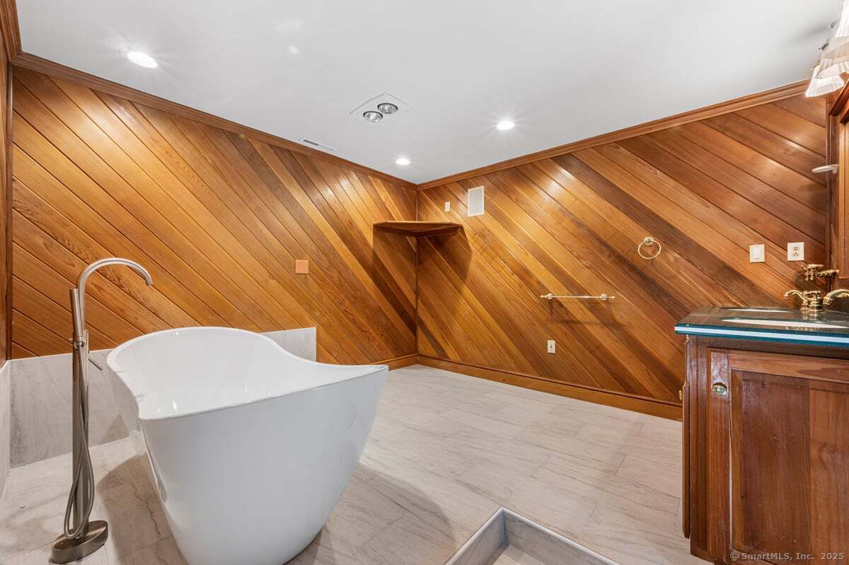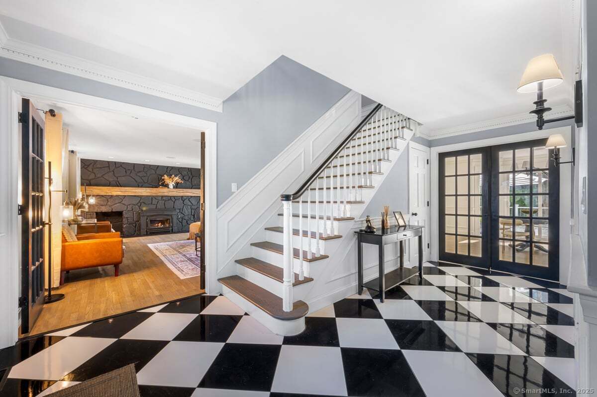 Step inside to 11 Wicklow Turn in Ledyard and be captivated by elegance, artistic design, and modern upgrades! As you open the front door, you will be greeted by a striking two-story foyer with custom wainscoting, a fresh tile entry, and elegant French doors that set the tone for the home's classic charm and modern upgrades. The main level showcases professionally stained wood floors throughout the formal dining area, living room, family room and a fully renovated kitchen that flaunts quartz countertops. The second level features three outsized bedrooms with and three full bathrooms. The luxuriously sized primary suite is a haven all in its own. Unwind in the ensuite's soaking tub, beautifully framed with warm cedar walls that create a spa-like sense of peace and tranquility. Relax or gather in the one-of-a-kind lounge, complete custom design and artistic flair. Flex your lifestyle with the full apartment above the garage - complete with its own kitchen, living room, bedroom, and bath - perfect for in-laws, guests, or multi-generational living. This home has been meticulously maintained with many recent upgrades which includes a new furnace, water heater, generator, three wood-burning stoves, chimney liners, and stoned exterior chimneys. A new roof with full ice shield wrap, a newly paved driveway, new water tank, water pump with sediment filter, and replacement of 43 out of 55 windows provide peace of mind for years to come.