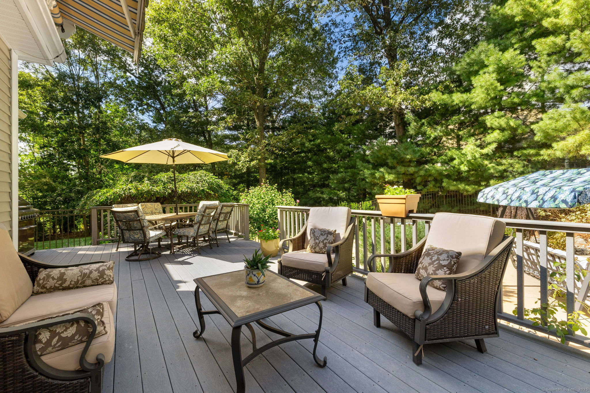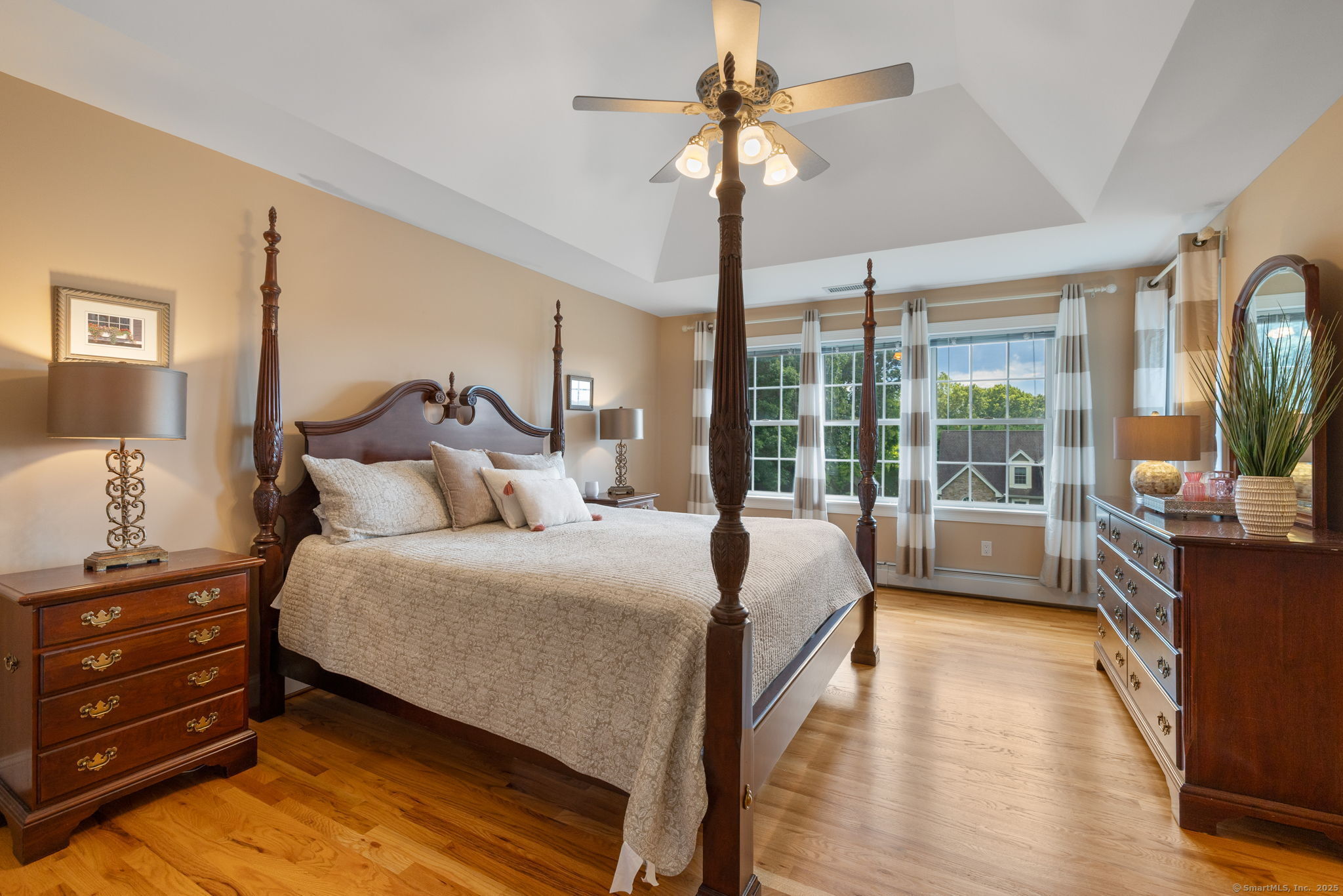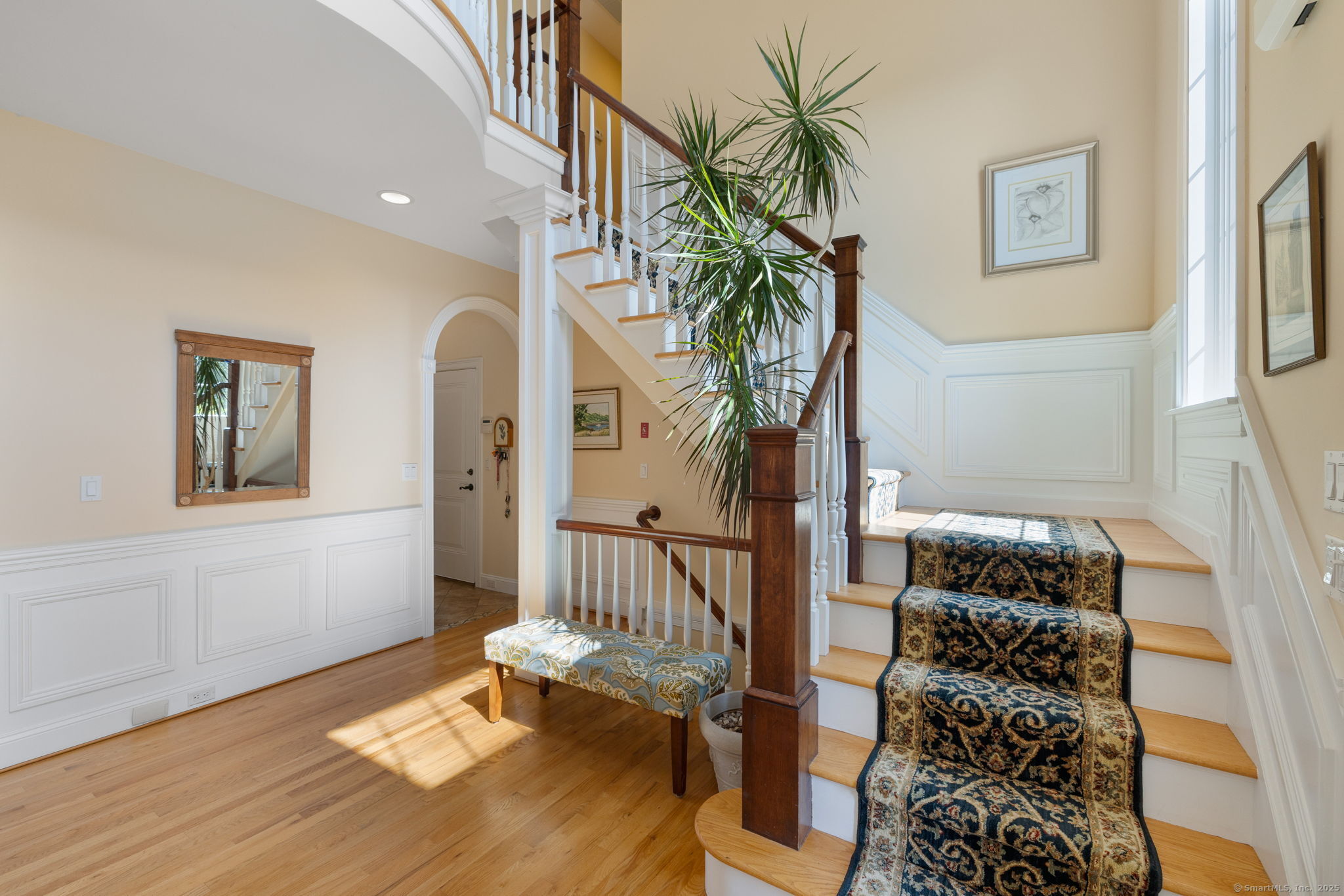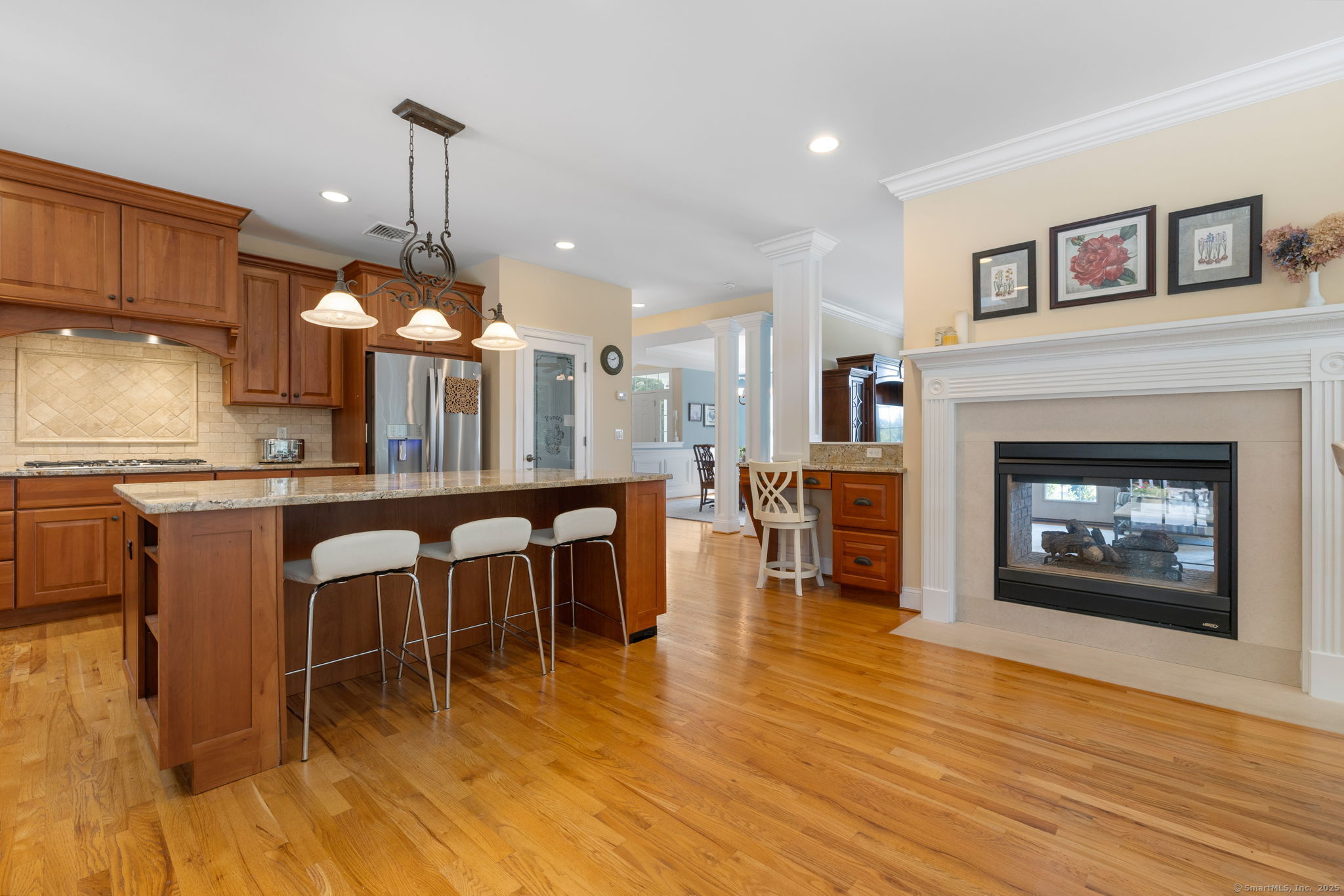 Indulge in timeless elegance, classic craftsmanship, and refined design in this distinguished Santini-built Colonial with a wrap-around porch, set on a 3-home subdivision. Built in 2009, this 3,344 sq. ft. residence showcases 4 BDRMS, 3.1 baths, with a harmonious blend of sophistication and comfort. Inside, dramatic architectural elements abound: a grand two-story foyer with a motorized chandelier, an elegant formal DR ideal for hosting, a private office framed by French doors accented with a coffered ceiling. The gourmet eat-in kitchen is a chef's dream, featuring rich cherry cabinetry, granite counters a generous center island, gas cooktop, double wall ovens and a pantry closet. A double-sided gas FP creates an inviting ambiance, seamlessly connecting the kitchen and FR. Step outside to your private resort like sanctuary, complete with an in-ground heated pool, expansive deck with a retractable awning, a stone trimmed patio with a built in firepit - perfect for entertaining or relaxing in style. The upper level is the home to the lavish primary suite offering a cozy sitting area, a spa inspired bath with a walk-in tiled shower, soaking tub, dual sink vanity and a w/in closet. A 2nd ensuite BDRM with its own w/in closet and f/bath provides an additional retreat while 2 bedrooms share a well-appointed Jack & Jill bath. Nestled within walking distance to Windermere Elementary School and Ellington Ridge Country Club, this exceptional home can be yours, don't delay!
