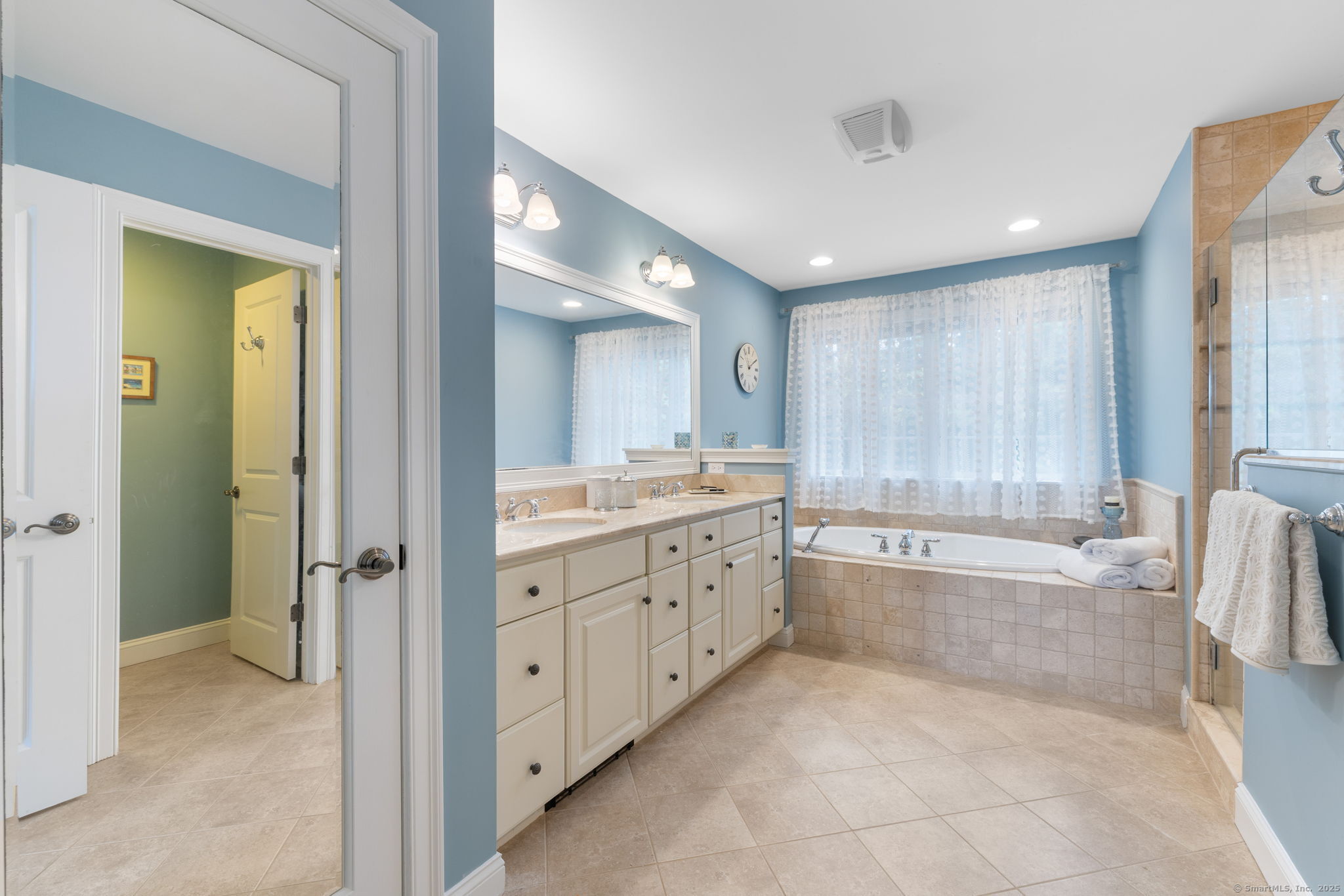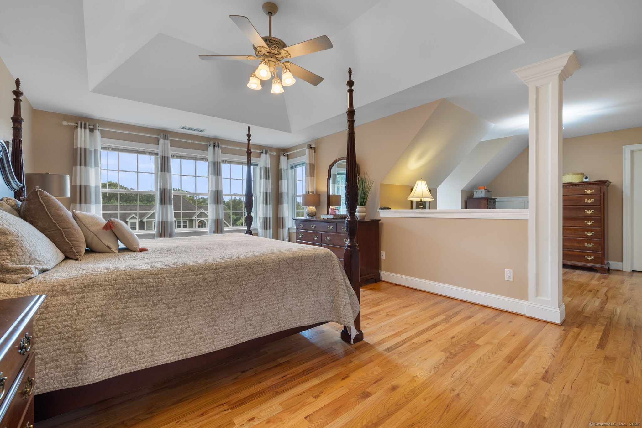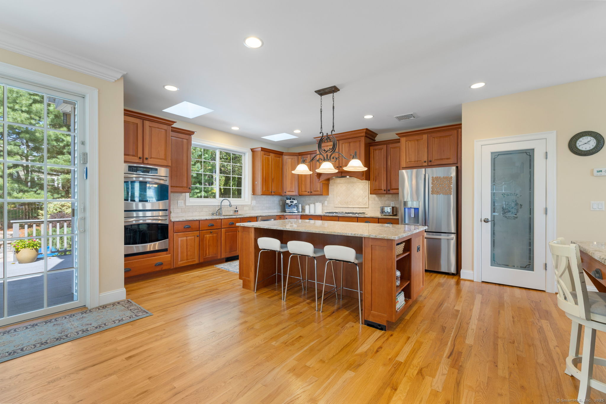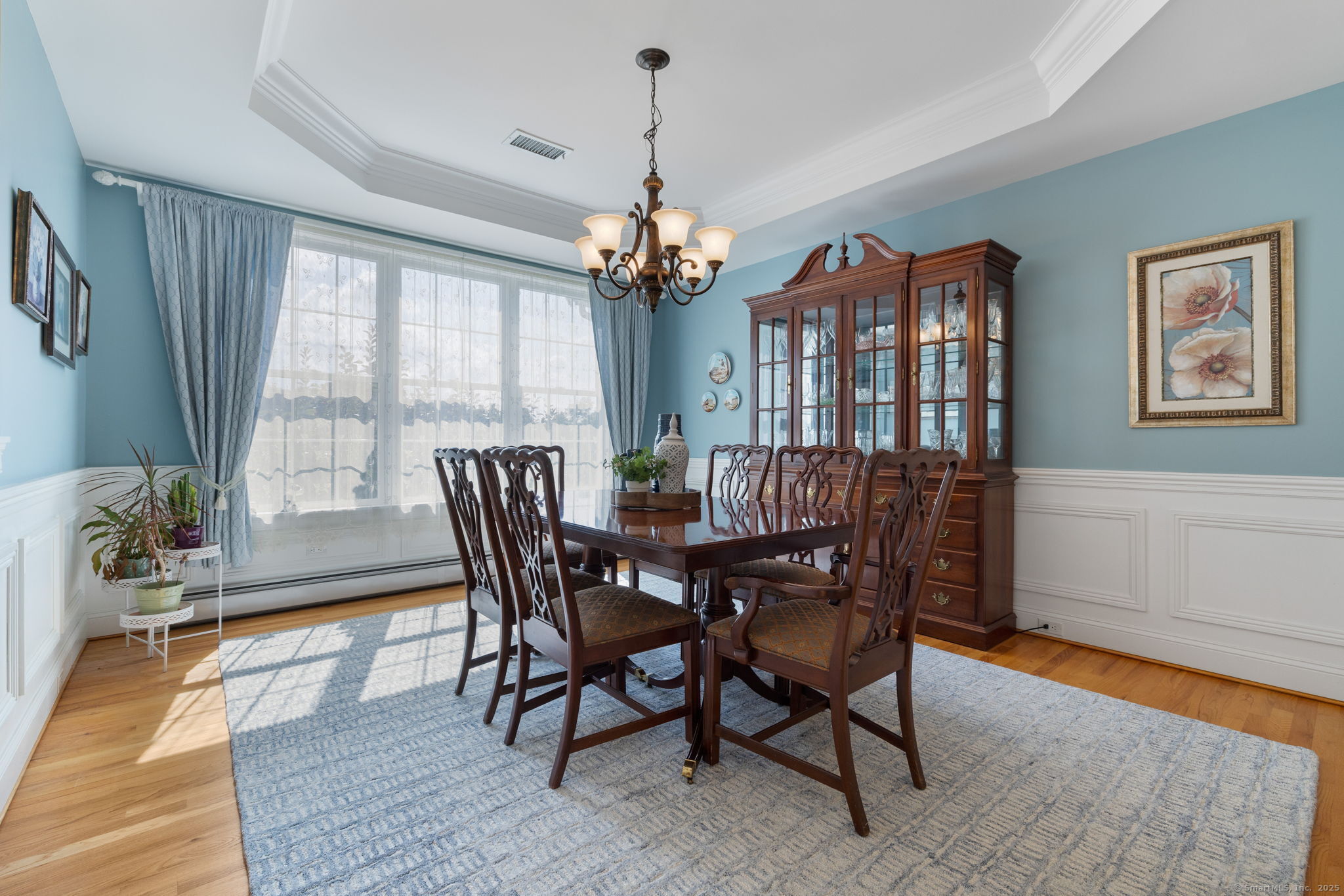 Indulge in timeless elegance, classic craftsmanship, and refined design in this distinguished Santini-built Colonial with a wrap-around porch, set on a 3-home subdivision. Built in 2009, this 3,344 sq. ft. residence showcases 4 BDRMS, 3.1 baths, with a harmonious blend of sophistication and comfort. Inside, dramatic architectural elements abound: a grand two-story foyer with a motorized chandelier, an elegant formal DR ideal for hosting, a private office framed by French doors accented with a coffered ceiling. The gourmet eat-in kitchen is a chef's dream, featuring rich cherry cabinetry, granite counters a generous center island, gas cooktop, double wall ovens and a pantry closet. A double-sided gas FP creates an inviting ambiance, seamlessly connecting the kitchen and FR. Step outside to your private resort like sanctuary, complete with an in-ground heated pool, expansive deck with a retractable awning, a stone trimmed patio with a built in firepit - perfect for entertaining or relaxing in style. The upper level is the home to the lavish primary suite offering a cozy sitting area, a spa inspired bath with a walk-in tiled shower, soaking tub, dual sink vanity and a w/in closet. A 2nd ensuite BDRM with its own w/in closet and f/bath provides an additional retreat while 2 bedrooms share a well-appointed Jack & Jill bath. Nestled within walking distance to Windermere Elementary School and Ellington Ridge Country Club, this exceptional home can be yours, don't delay!