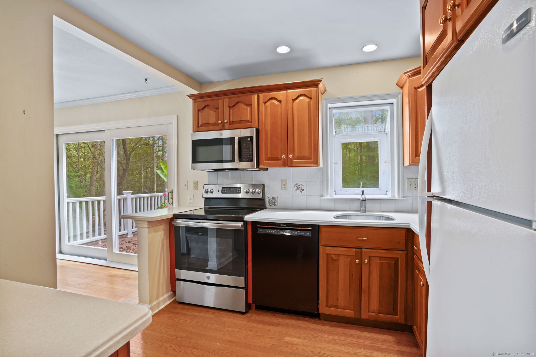 Discover this raised ranch nestled on a quiet cul-de-sac in very highly sought-after south Ridgefield. This home offers a fantastic opportunity for new owners to immediately make it their own, with ample living space on both the upper and lower levels. The property presents a clean slate for those looking to customize to their personal style. Step inside to a bright main level with hardwood floors, which includes the living room with wood burning fireplace, dining area with sliders to Trex deck and an updated kitchen. Loads of natural light fills the space, creating a warm and inviting atmosphere. There are three bedrooms, full hall bath and the primary bedroom with a half bath. The finished lower level expands the home's functional square footage, perfect for use as a family room or a home office offering an additional fireplace, half bath and laundry room. Portable generator hook-up. Attached two car garage. Enjoy the privacy of a large, one acre level property. Located in the tranquil setting of Ridgefield, the home offers peace and quiet while being just a short drive from the town's vibrant Main Street. Ridgefield is known for its excellent schools, community events, and easy access to shopping and dining. This home will convey "as-is".