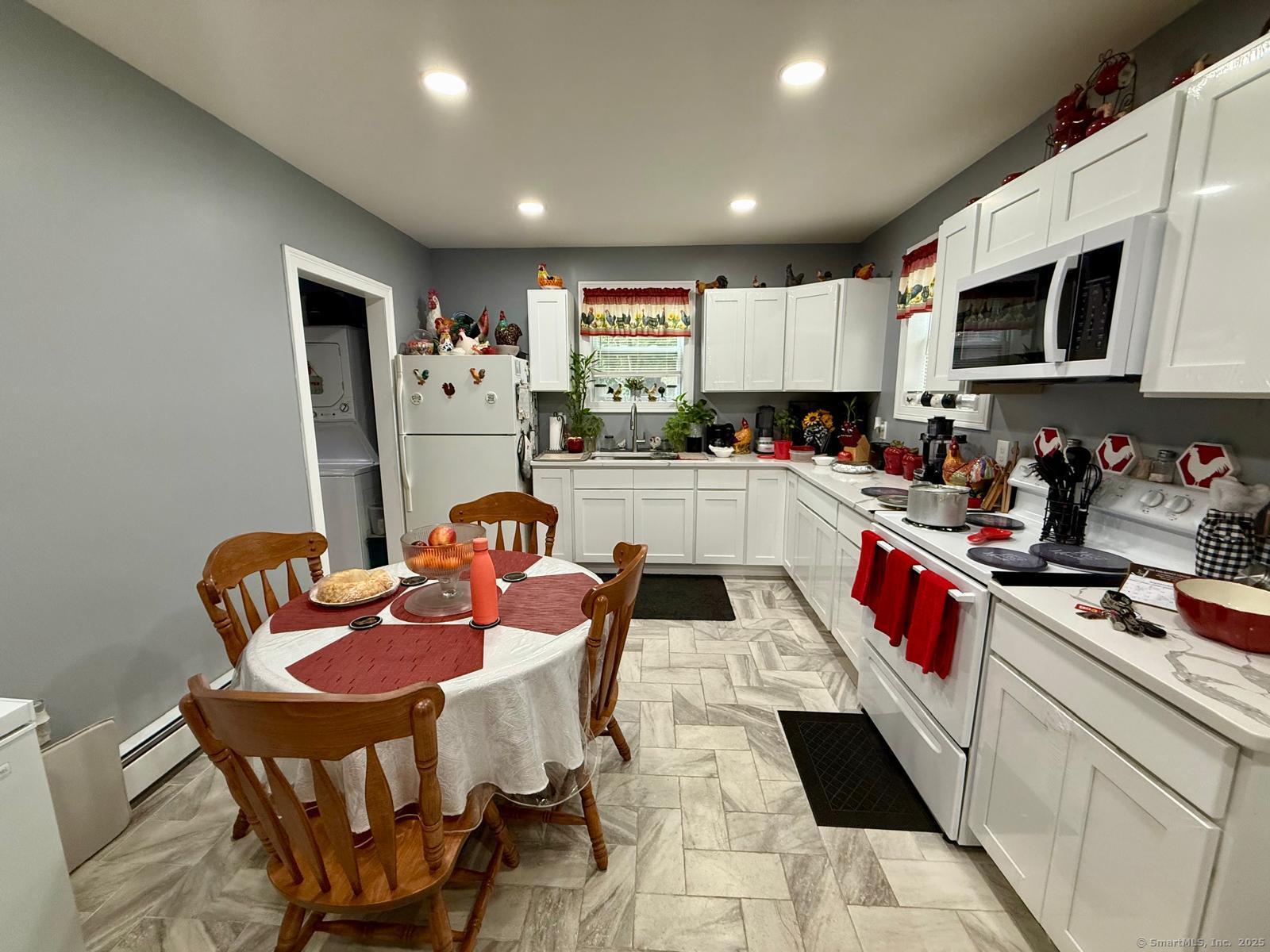 Welcome to 69 Putnam Street, a beautifully updated two-family home. With a full remodel inside and brand-new siding, this property combines modern comfort with classic charm. The first-floor unit offers 2 bedrooms, a bright living/dining room, a full eat-in kitchen with plenty of cabinet and counter space, a full bathroom, and an in-unit laundry area. The second unit spans the second and third floors, creating an ideal setup for extra space. The second floor includes 2 bedrooms, a full kitchen, a full bathroom, and laundry area. The third floor adds 2 more bedrooms, another full bathroom, and a flexible open area that can serve as a home office, playroom, or lounge. Additional highlights include a large backyard, a basement perfect for storage, and brand-new boilers for peace of mind. The property is close to local parks, shopping, and major highways, making it convenient for commuting and everyday living. This is a rare opportunity to own a turn-key multi-family in Meriden with modern updates and strong rental potential.
