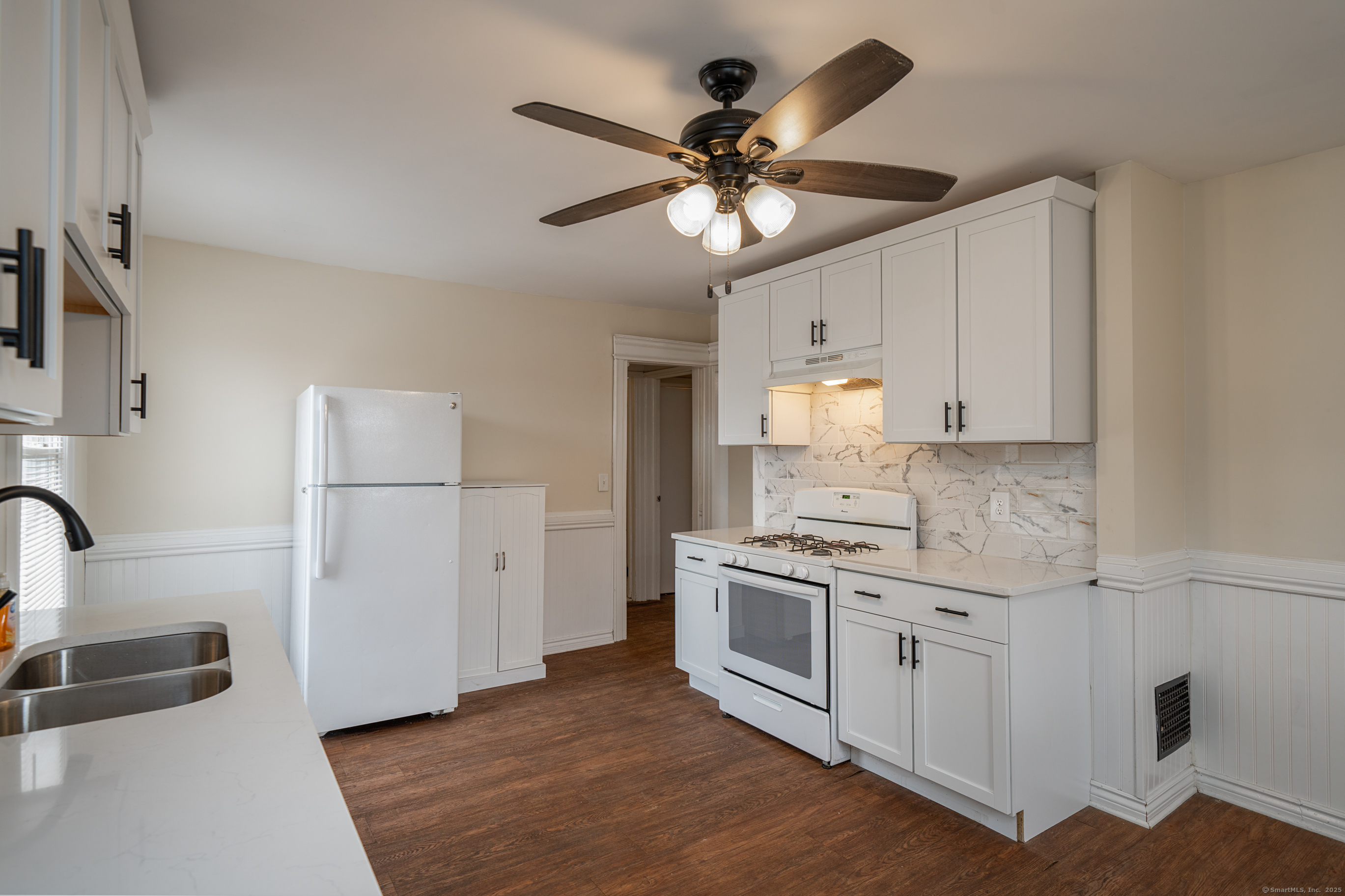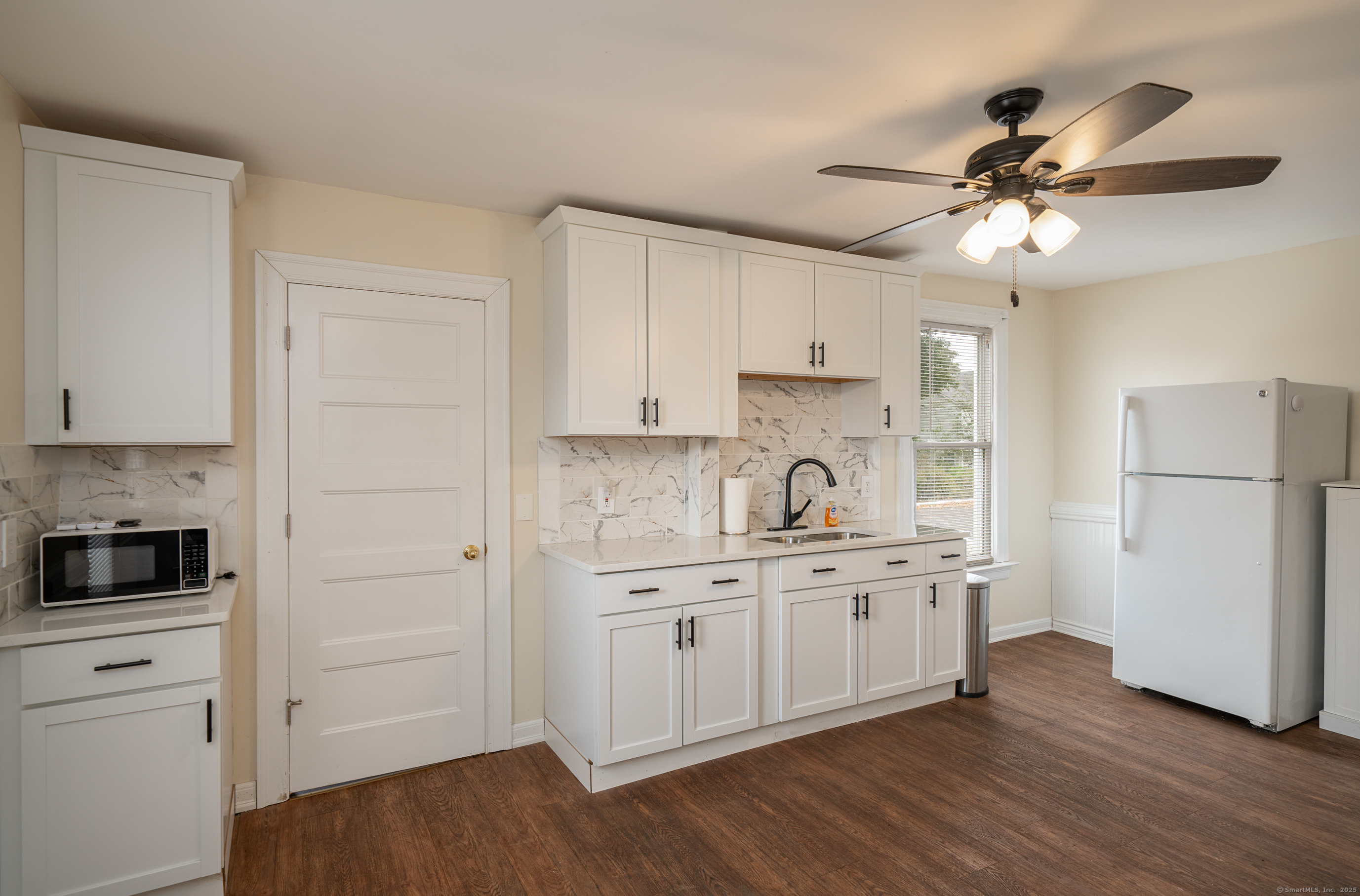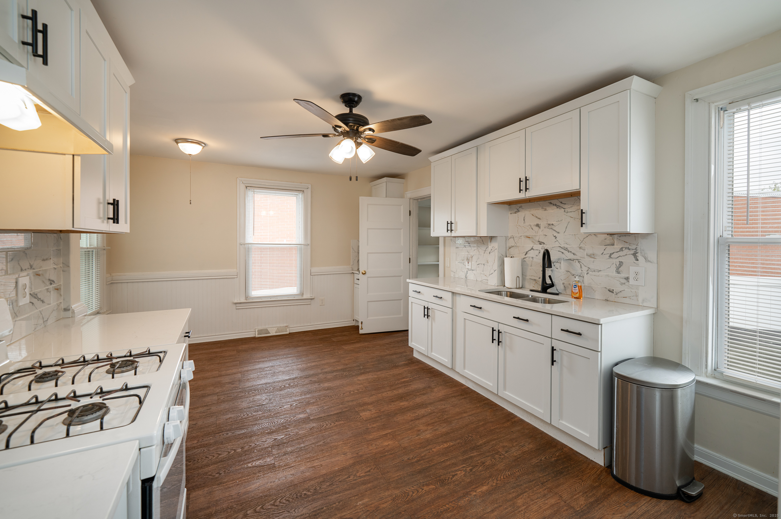 Beautifully updated and freshly painted, this first-floor, one-level rental apartment in the heart of East Haven offers spacious living with hardwood floors throughout and a generous one-bedroom, one-bath layout. The renovated kitchen includes modern finishes, and washer/dryer hookups are available on the premises. Enjoy a covered front porch overlooking the green, perfect for morning coffee or evening relaxation. With natural gas, city water and sewer, easy access to highways, and a short walk to shopping and dining, this apartment combines modern comfort with a highly convenient Main Street location.