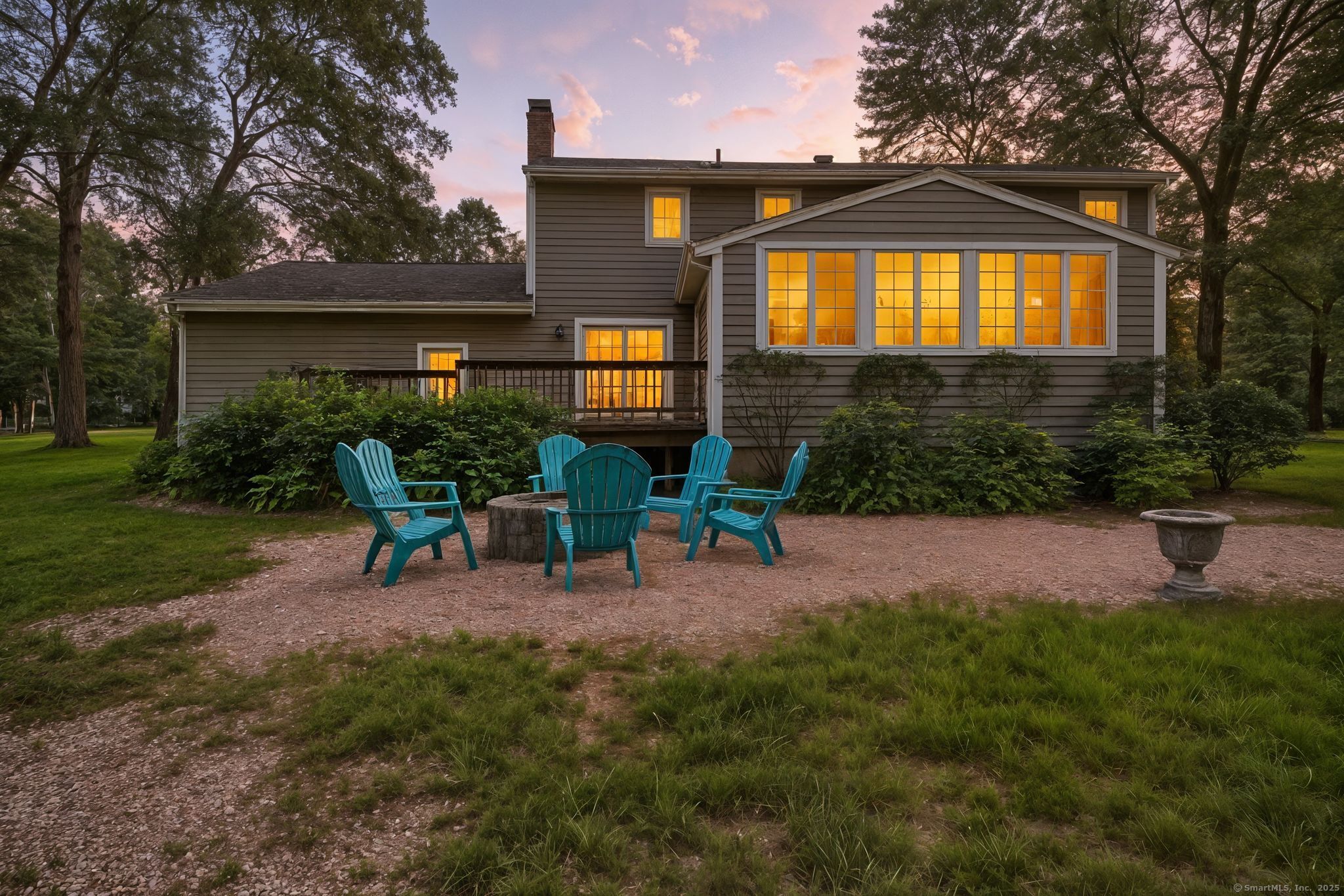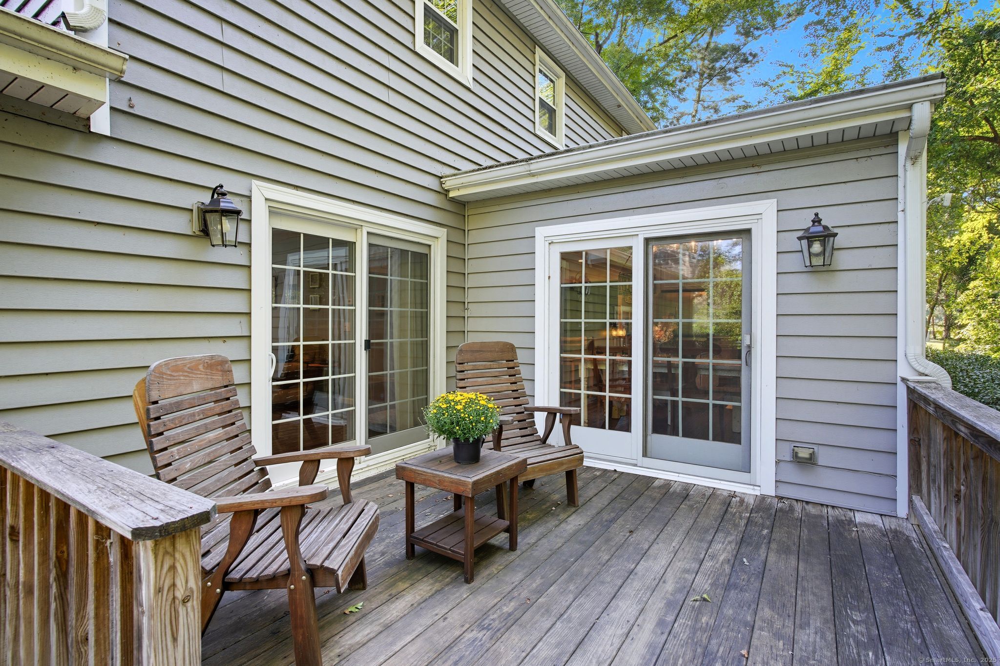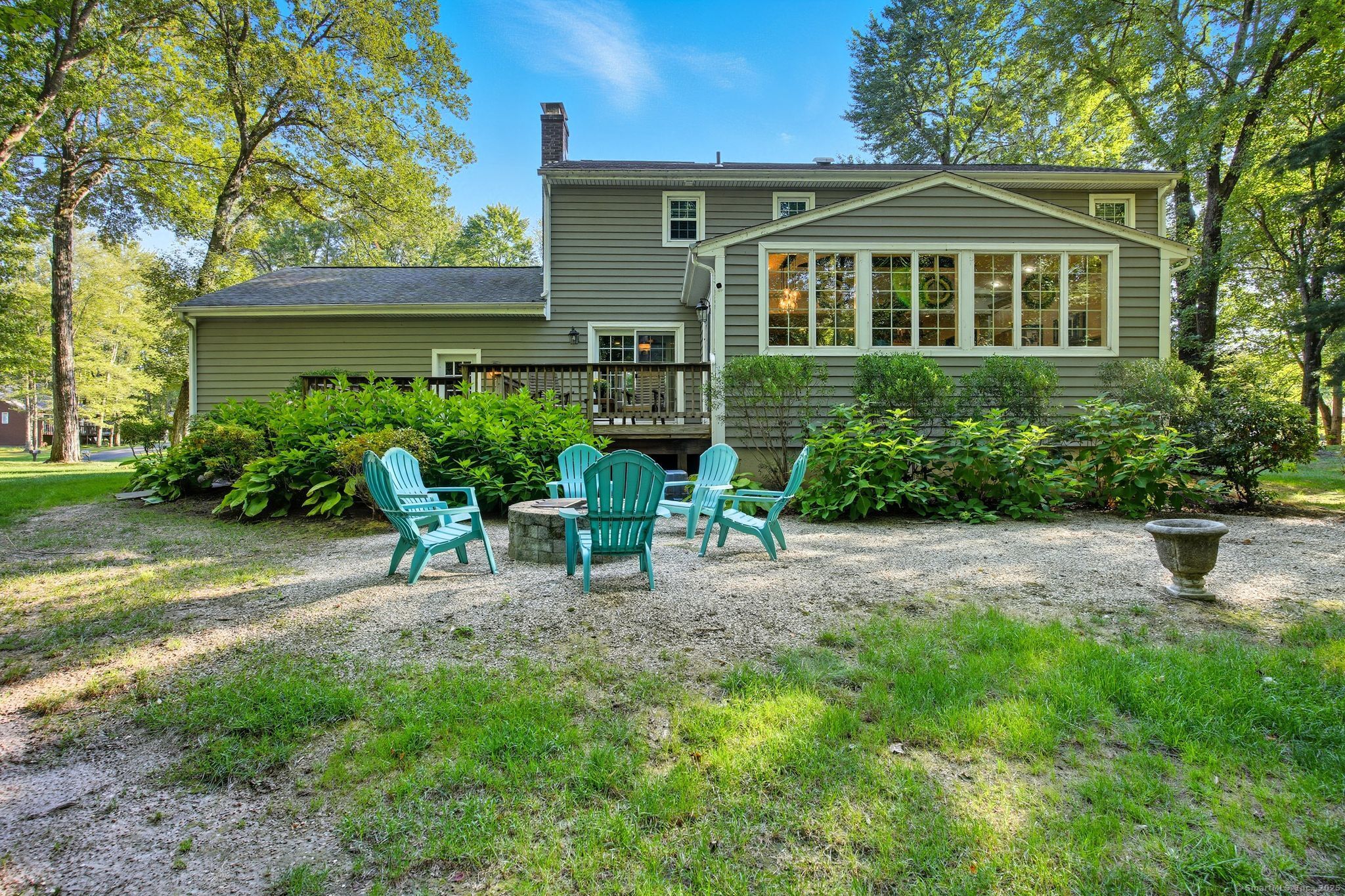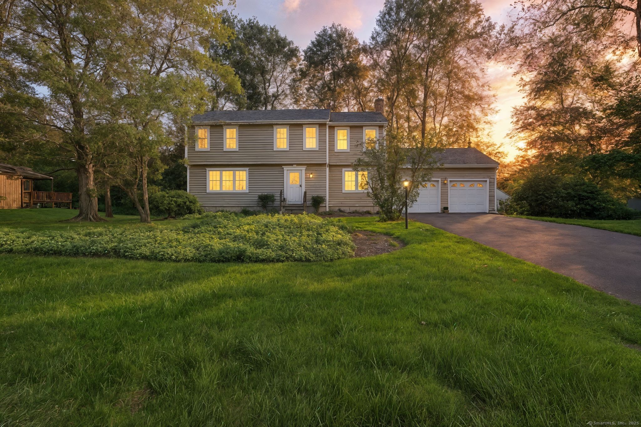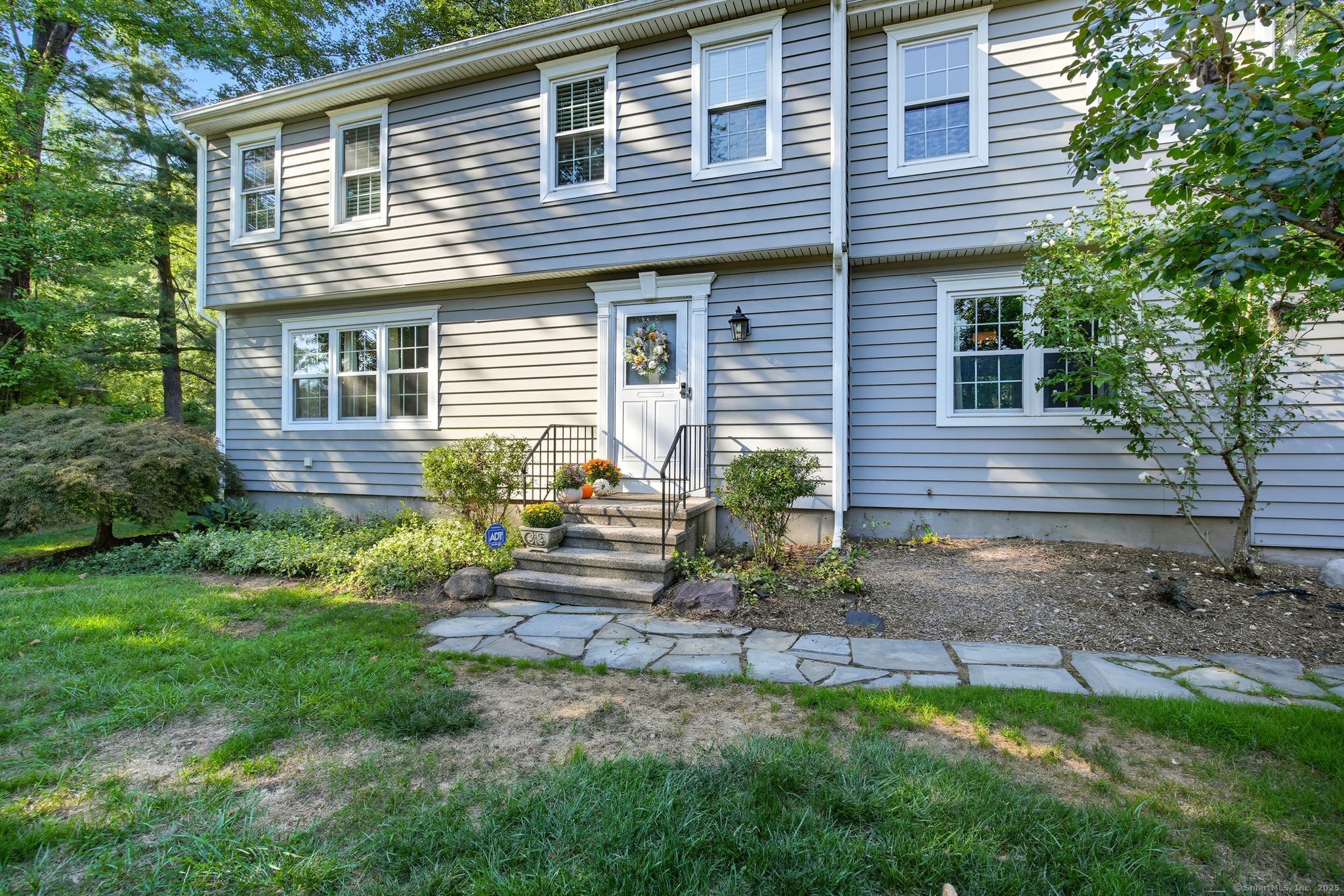 This stunning 10-room Colonial offers 2,500+ sq. ft. of living plus 1,000+ sq. ft. of finished lower level (2022 APO). Featuring 4 generously sized bedrooms and 2.5 stylish baths, it blends classic elegance with modern convenience for today's lifestyle. The first floor features a warm and welcoming flow filled with natural light. Enjoy the charming living room, formal dining room, and front-to-back family room anchored by a handsome brick fireplace. The show-stopping kitchen addition is a true centerpiece, boasting vaulted ceilings with wood beams, a grand center island, gleaming granite counters, stainless appliances, and a sun-drenched wall of windows overlooking the private backyard. A chic half bath and first of two laundries complete this level. Upstairs, the tranquil primary suite offers a renovated spa-like bath and custom closet system, plus 3 additional airy bedrooms. The expansive finished lower level includes a wet bar, recreation/playroom, fitness area, cozy sauna alcove, and second laundry with set tub. Highlights: hardwood floors, tastefully updated baths, fresh designer paint, landscaping. Outdoor living shines with a spacious deck and peaceful backyard backing to conservation land. Updates: roof (2015 APO), AC condenser (2023 APO), vinyl siding/windows (2014 APO), and new shed (2023 APO). Beautifully maintained and thoughtfully upgraded, this exceptional Colonial blends sophistication, comfort, and convenience in a highly desirable neighborhood.