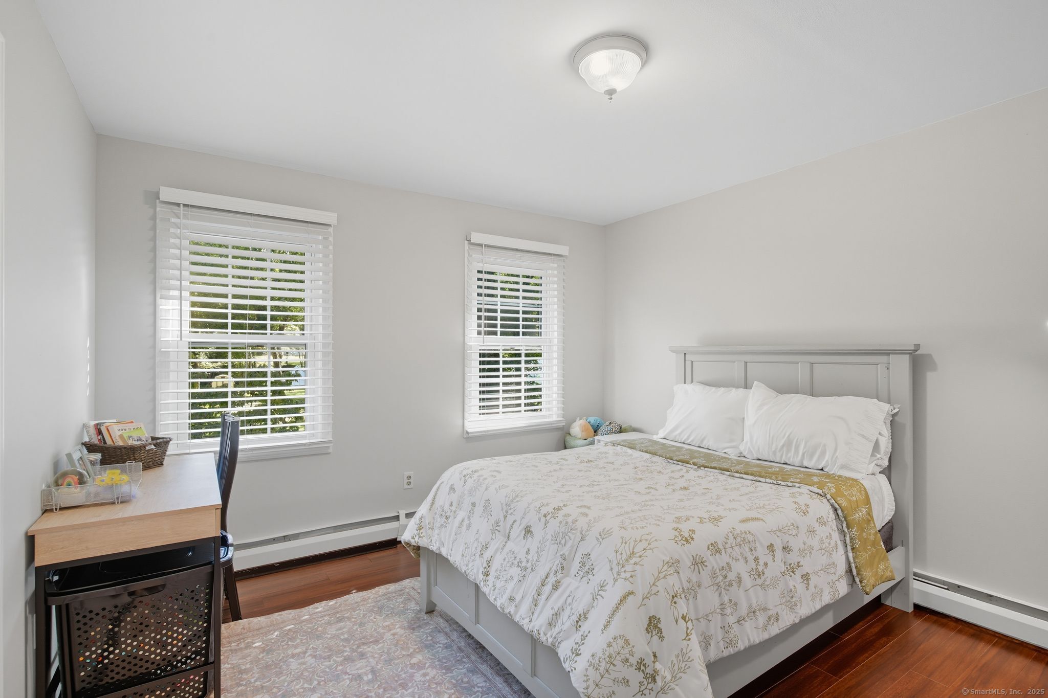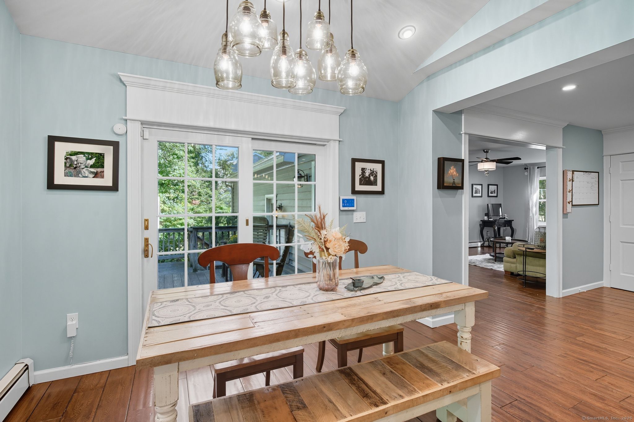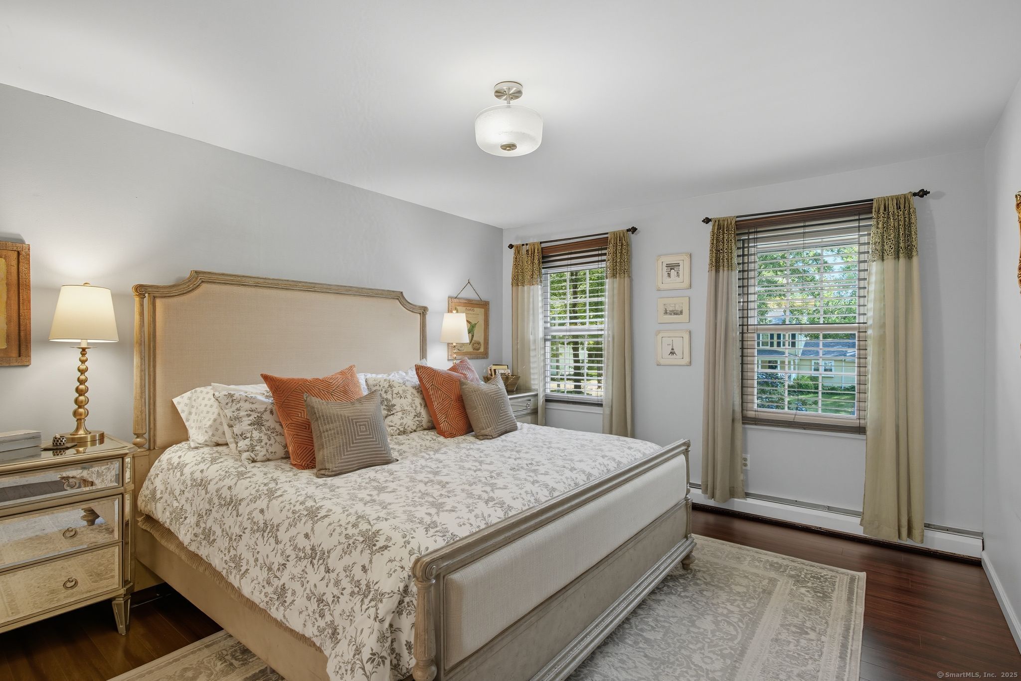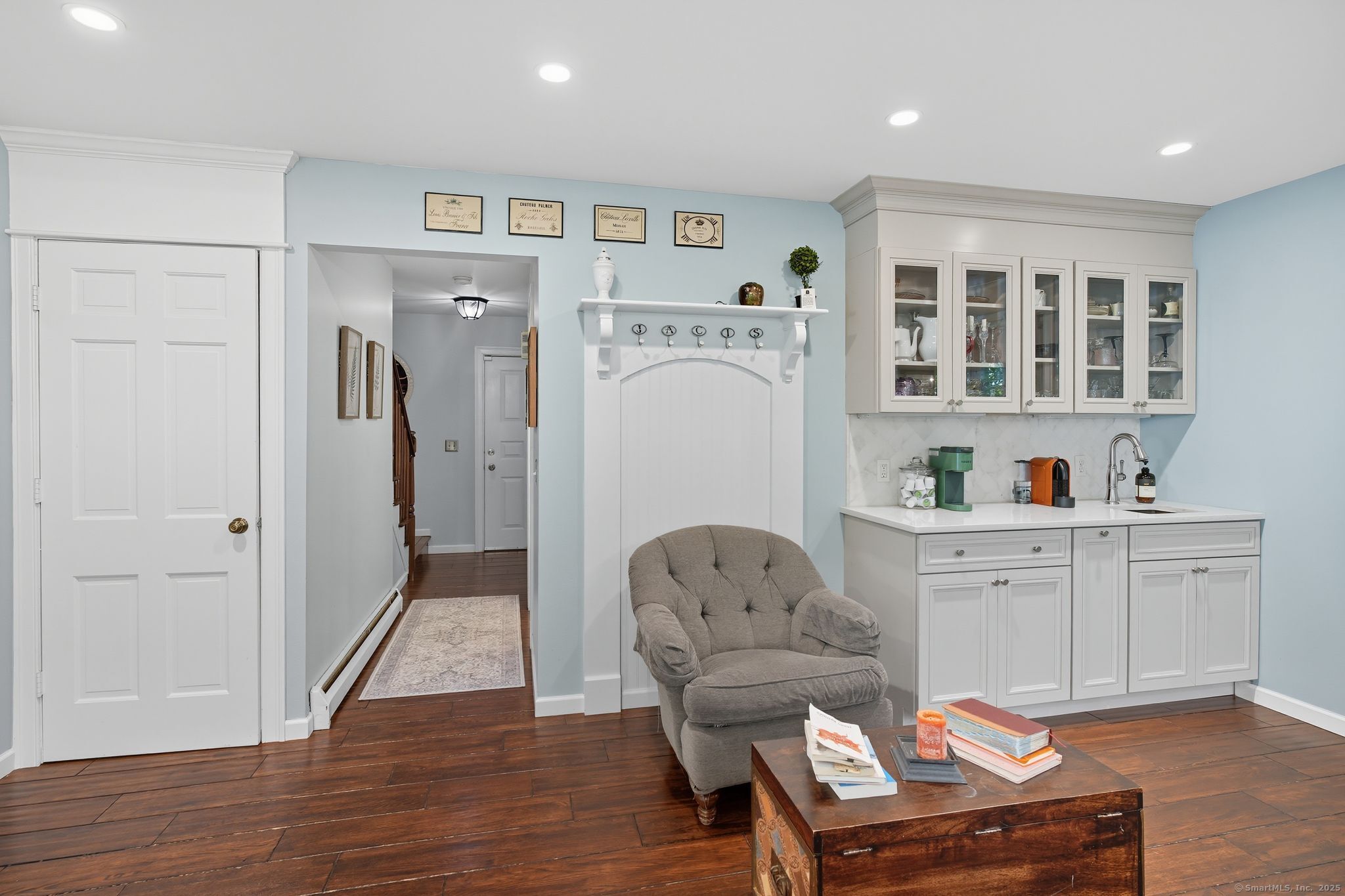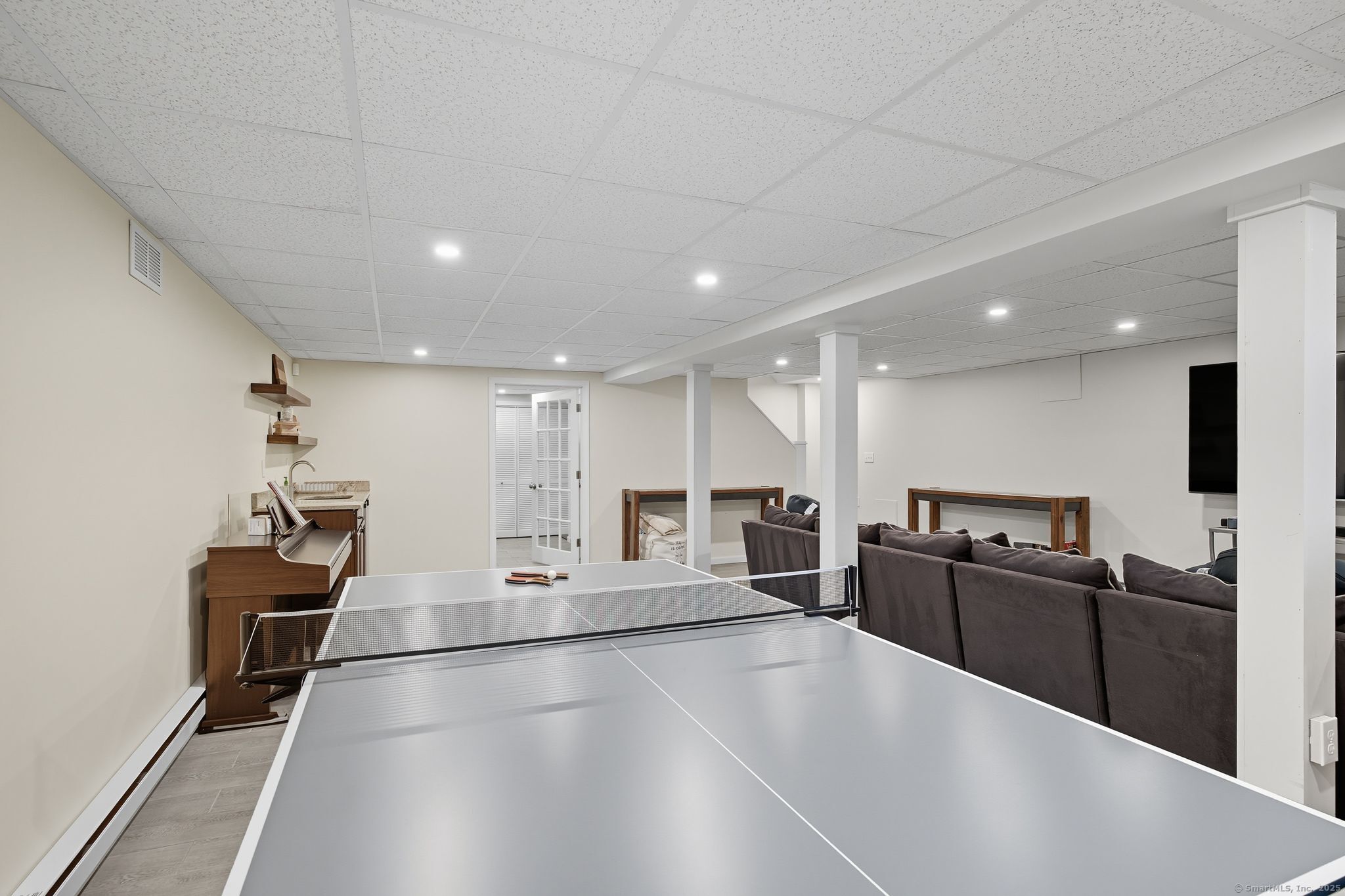 This stunning 10-room Colonial offers 2,500+ sq. ft. of living plus 1,000+ sq. ft. of finished lower level (2022 APO). Featuring 4 generously sized bedrooms and 2.5 stylish baths, it blends classic elegance with modern convenience for today's lifestyle. The first floor features a warm and welcoming flow filled with natural light. Enjoy the charming living room, formal dining room, and front-to-back family room anchored by a handsome brick fireplace. The show-stopping kitchen addition is a true centerpiece, boasting vaulted ceilings with wood beams, a grand center island, gleaming granite counters, stainless appliances, and a sun-drenched wall of windows overlooking the private backyard. A chic half bath and first of two laundries complete this level. Upstairs, the tranquil primary suite offers a renovated spa-like bath and custom closet system, plus 3 additional airy bedrooms. The expansive finished lower level includes a wet bar, recreation/playroom, fitness area, cozy sauna alcove, and second laundry with set tub. Highlights: hardwood floors, tastefully updated baths, fresh designer paint, landscaping. Outdoor living shines with a spacious deck and peaceful backyard backing to conservation land. Updates: roof (2015 APO), AC condenser (2023 APO), vinyl siding/windows (2014 APO), and new shed (2023 APO). Beautifully maintained and thoughtfully upgraded, this exceptional Colonial blends sophistication, comfort, and convenience in a highly desirable neighborhood.