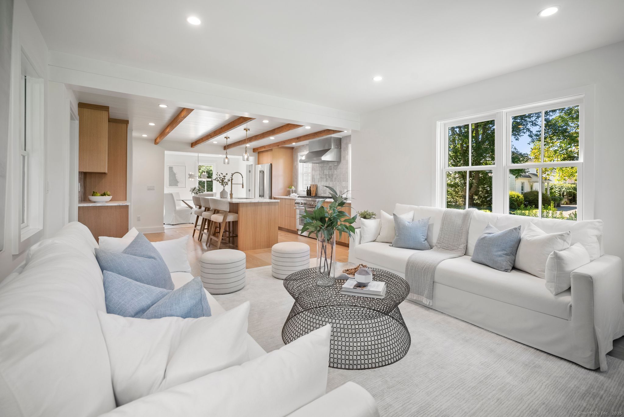 Every plank, beam, and finish in this 3BR, 2.5 bath was selected with intention. A masterclass in design with warmth, quality, and craftsmanship in every detail, and finishes typically reserved for homes at much higher price points. Reimagined by Alex Brandfon, founder of ZIBA Hardwoods, the home reflects a vision of luxury and ease, where reclaimed character and modern precision come together seamlessly. Taken down to the foundation, with only portions of the exterior walls remaining, this home is essentially brand new. At 1,800 SF, it lives larger than its footprint, with a layout that's open, airy, and light-filled. Wide-plank flooring, reclaimed beams, and lofted ceilings feel like a work of art. The kitchen is a showpiece with rift-sawn white oak cabinetry, a painted shiplap ceiling with exposed beams, and a Calacatta marble island that invites gathering and flows to the dining room. The living room centers around a gas fireplace framed in stone creating a cozy yet sophisticated focal point. Fabulous first-floor office, mudroom with custom built-ins, covered porch, landscaped gardens and spacious bluestone patio. Upstairs, retreat to the vaulted primary suite w/ spa-like bath and walk-in closet. Two additional bedrooms, full bath & laundry complete the level. The garage offers EV hookup and is generator-ready. Quiet street within short walking distance to town, this home offers convenience and privacy. More than a renovation, it's a transformation at its finest.