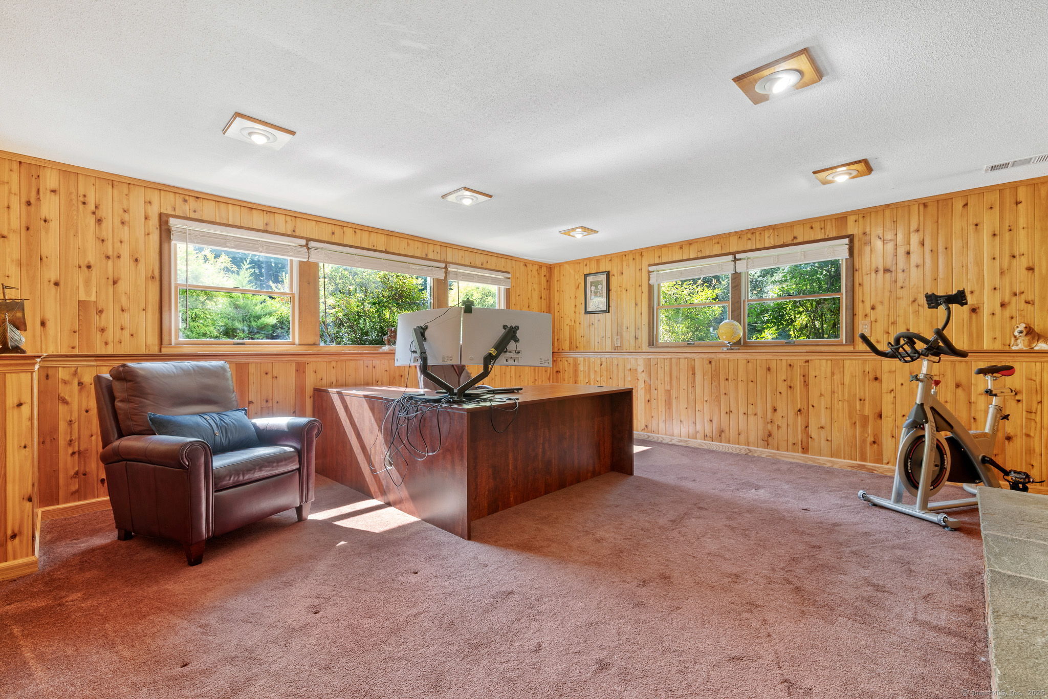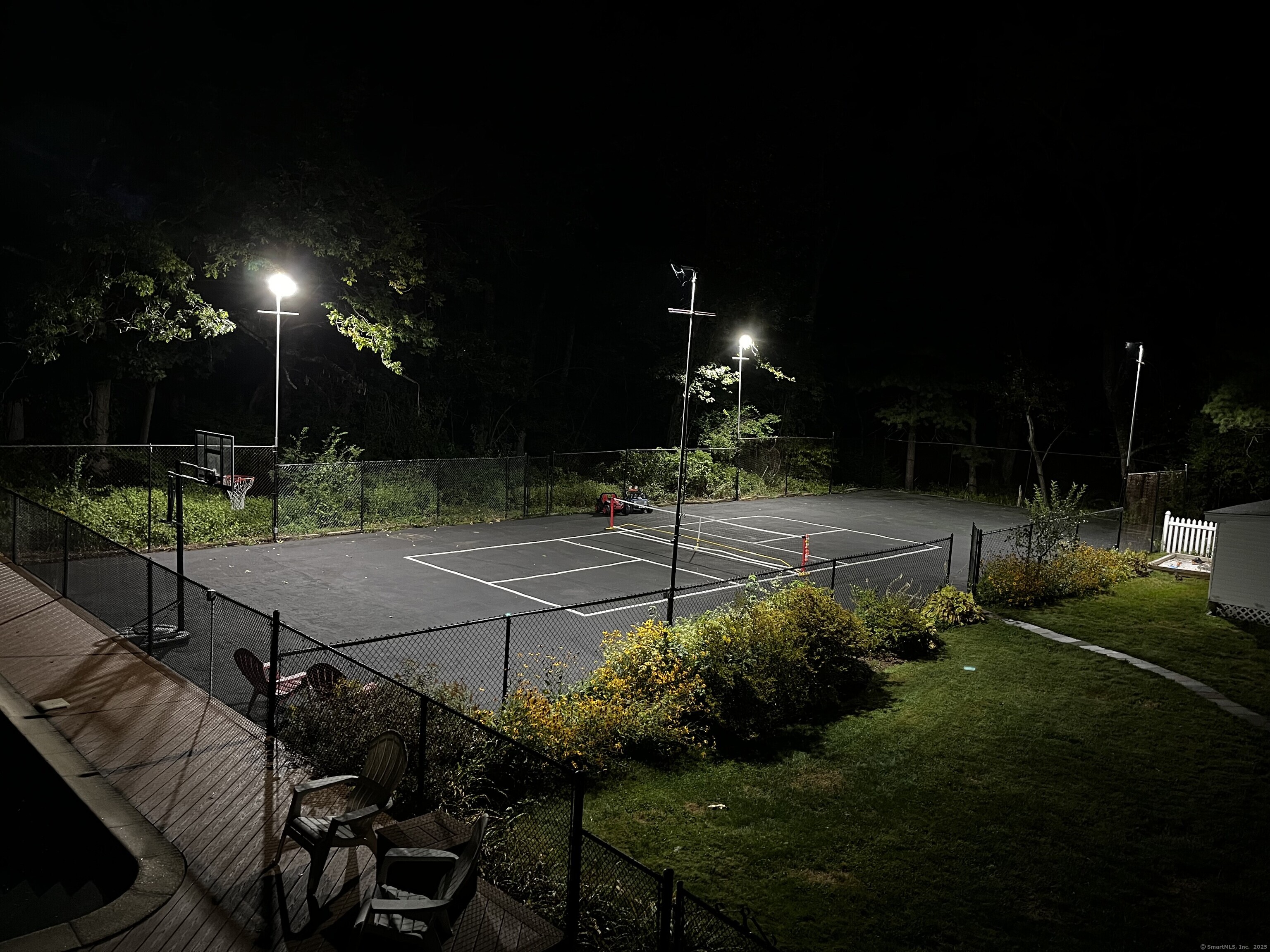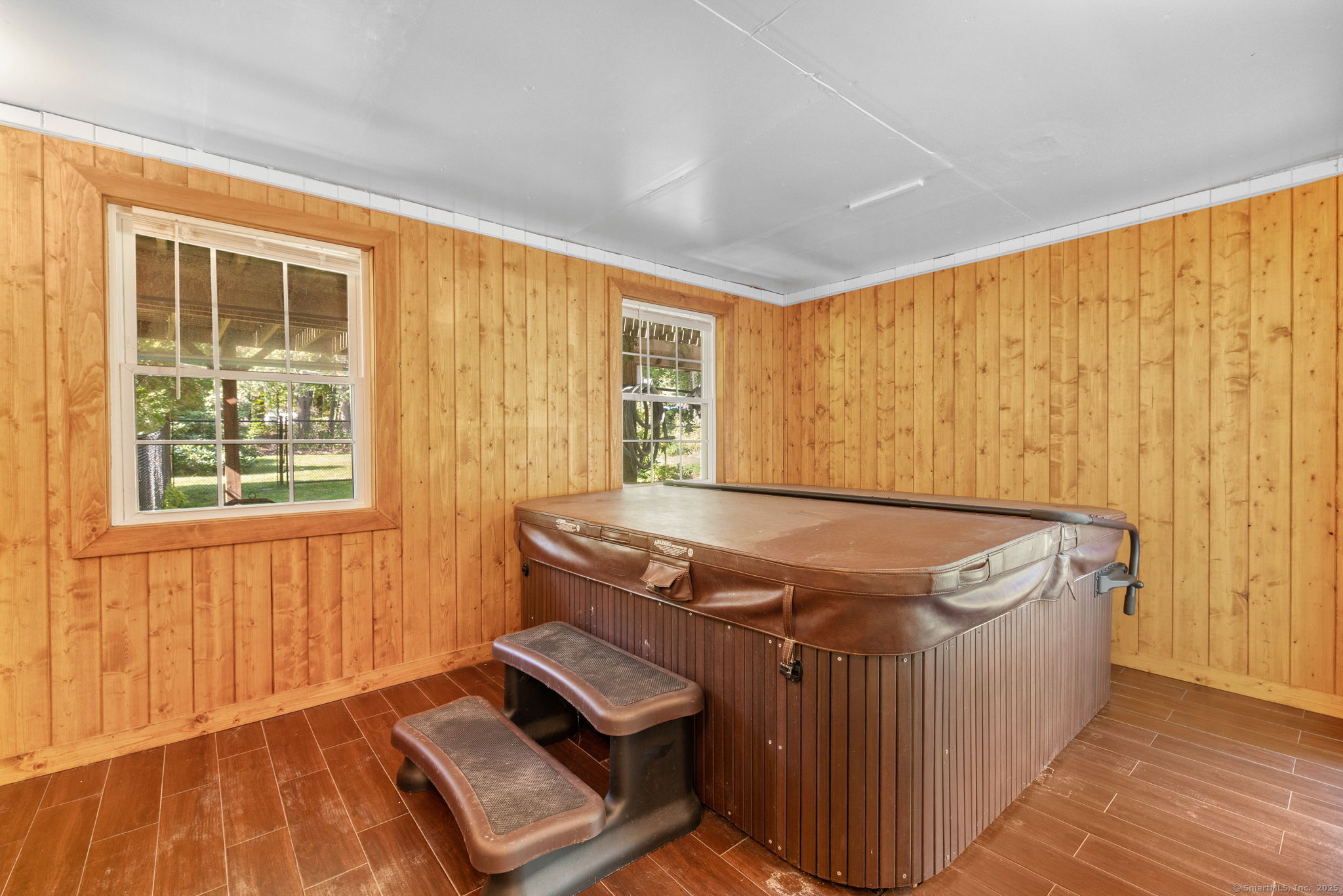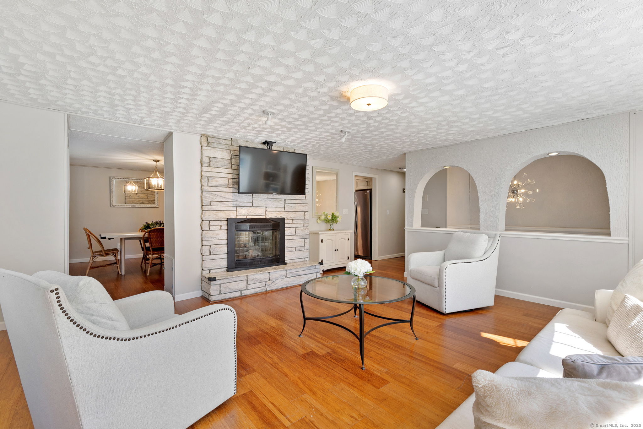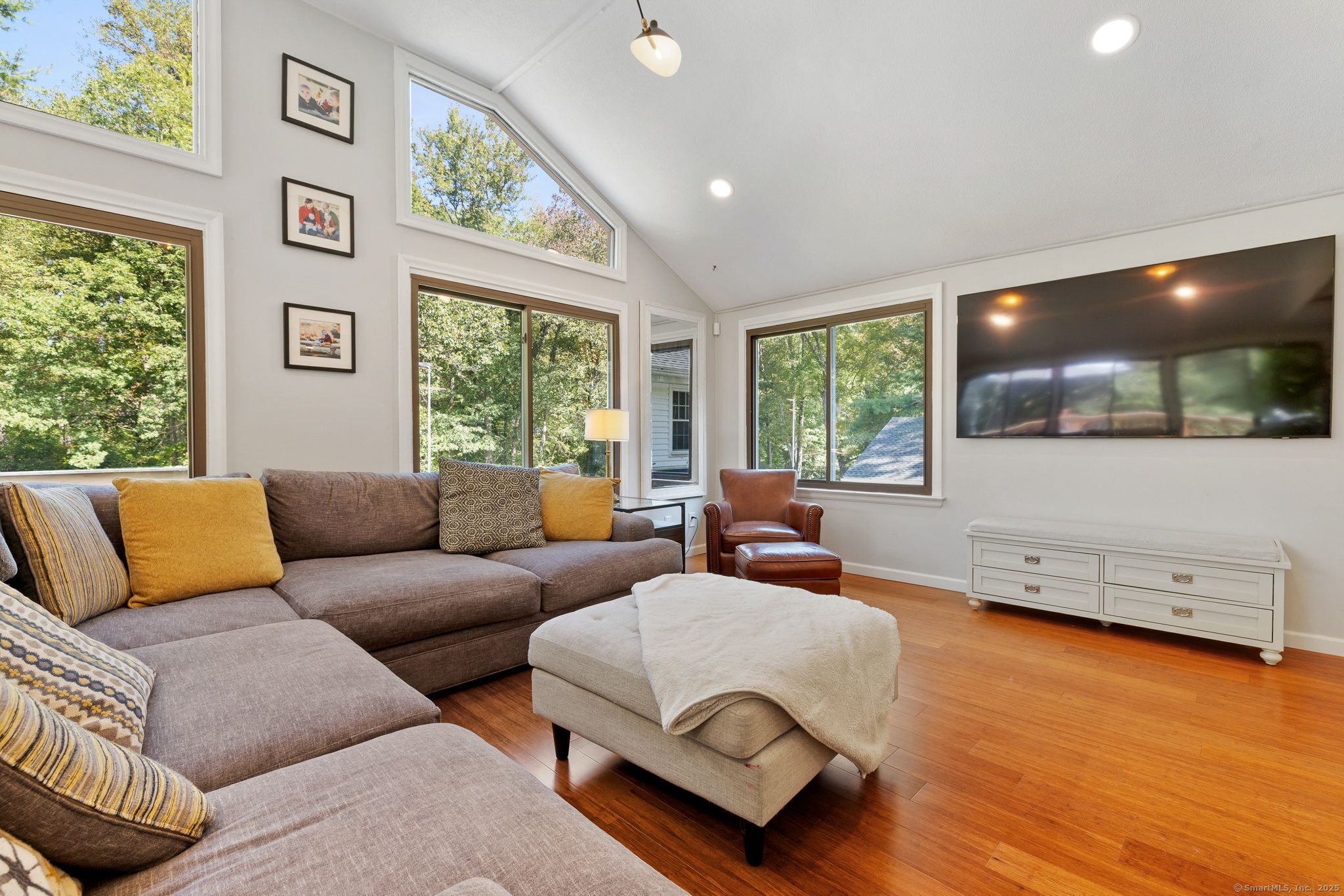 Live every day like you're on vacation in this stunning 3BR/3BA home with over 3,200 sq.ft. of beautifully updated living space! The gourmet kitchen features granite counters and stainless appliances, opening to a sun-drenched vaulted sunroom with natural gas hearth and gorgeous year-round views. Enjoy indoor/outdoor living with an expansive deck presiding over your private retreat.The open living/dining area includes a dual-sided gas fireplace. The main level also offers a serene primary suite with en-suite bath, two guest bedrooms, generous full bath, laundry room, and new bamboo flooring throughout. The walkout lower level is perfect for entertaining or an in-law suite-featuring a large rec room, gas stove, wet bar, fireplace, remodeled full bath, office/4th BR, den, cedar closet, and indoor Jacuzzi spa! Outside, unwind in your resort-like backyard with a heated saltwater pool, 2,500 sq.ft. of new composite decking, and tennis/pickleball court with brand new lighting. All set in a scenic neighborhood near UConn, highways, shopping & dining. A true staycation dream!