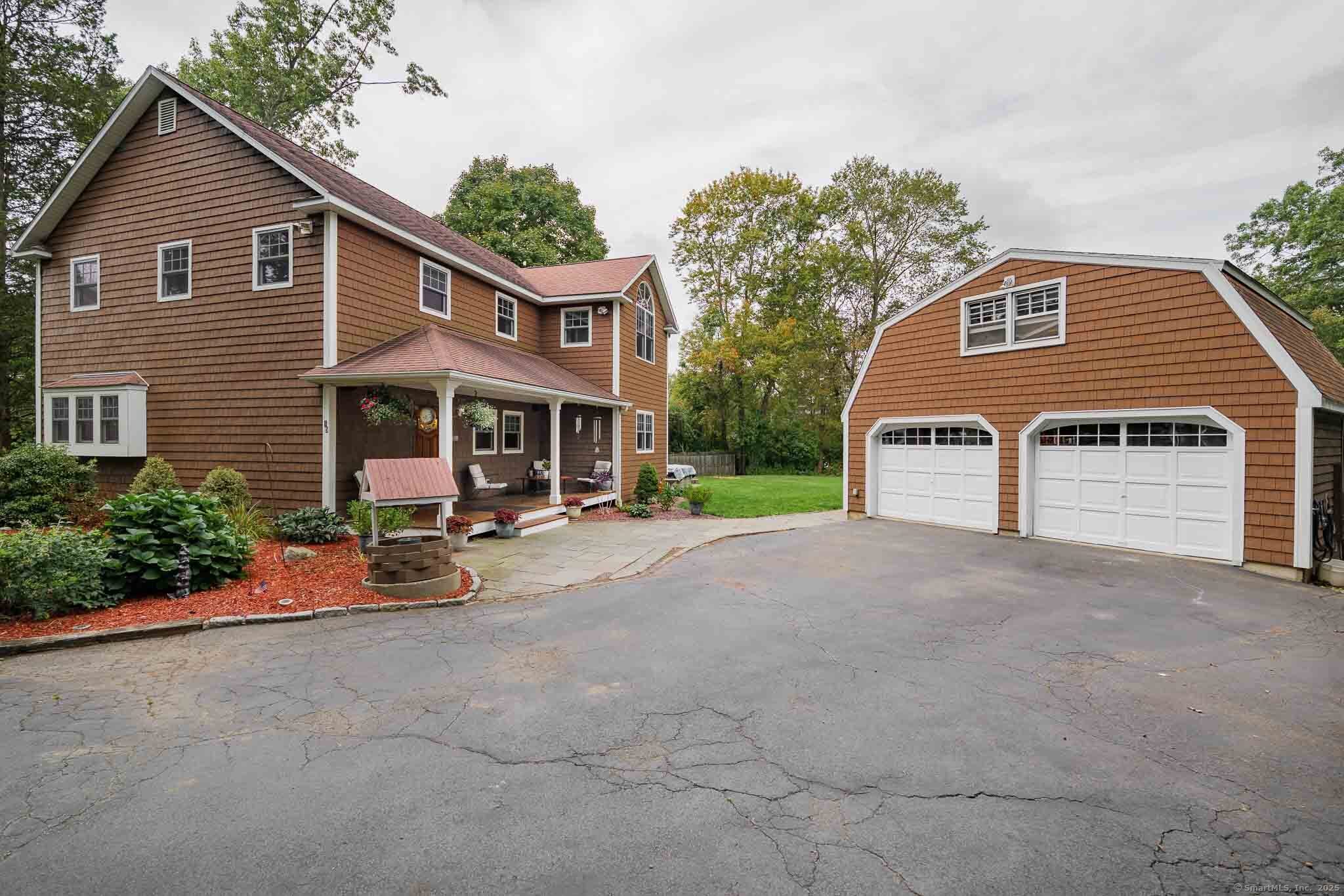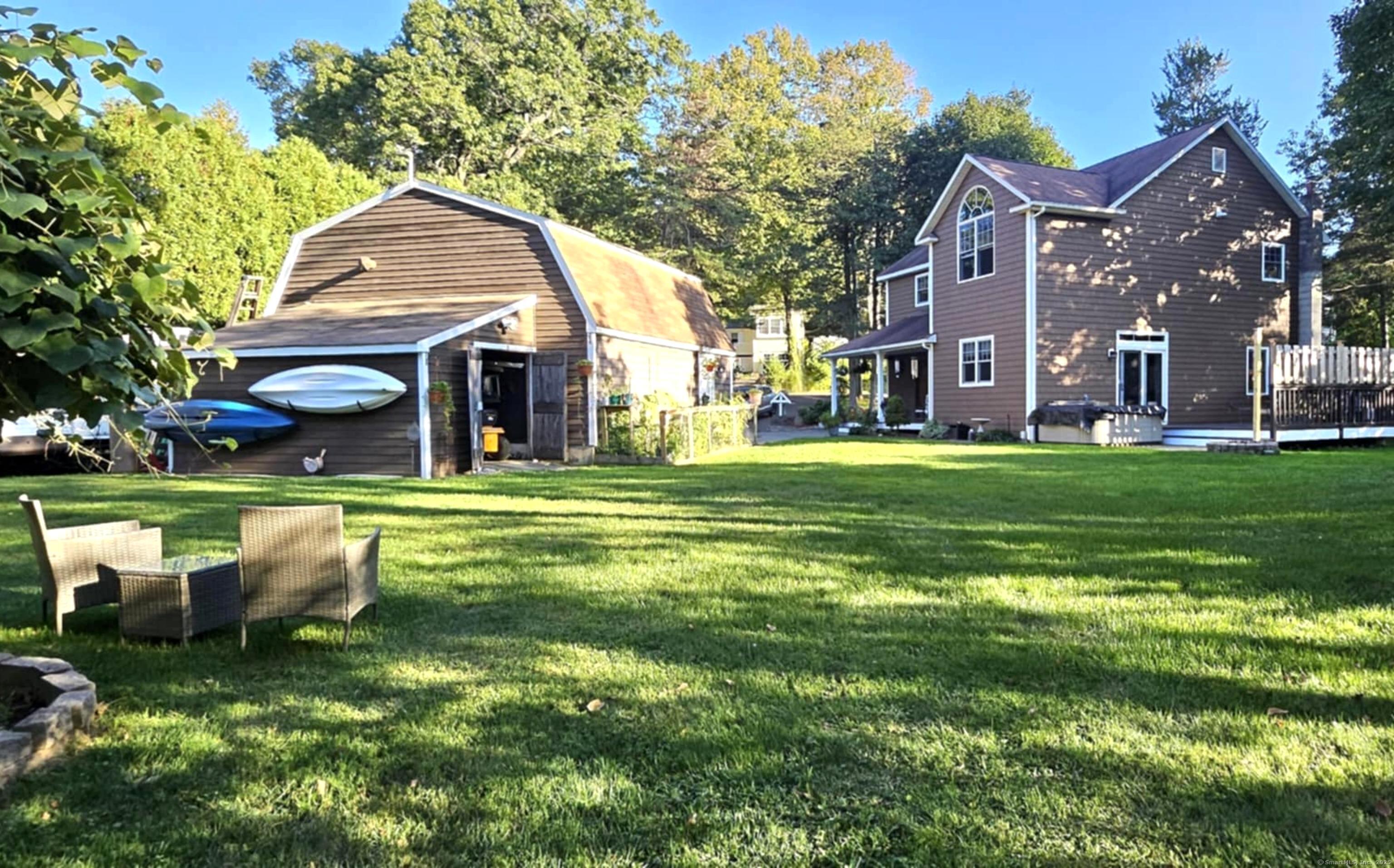 PERFECTION! Updated sunny home is a delight... 3 BIG bedrooms upstairs plus a sunny office on main level, 3 UPDATED full baths. Professionally designed LARGE & BRIGHT upscale kitchen features: custom lighting, leather finish granite on island, smooth granite for counters... Room for everyone around the wide kitchen island featuring endless storage and built-in microwave. Open and LEVEL grassy yard with shed, garden area, 2-story two-car detached garage/barn with large "man cave" or play/work room above garage. Hot tub on oversized deck off living room for your enjoyment. Very attractive and WELL MAINTAINED home... move-in ready! Welcome to New Fairfield, Connecticut. MUST SEE TO APPRECIATE! Lovely neighborhood.