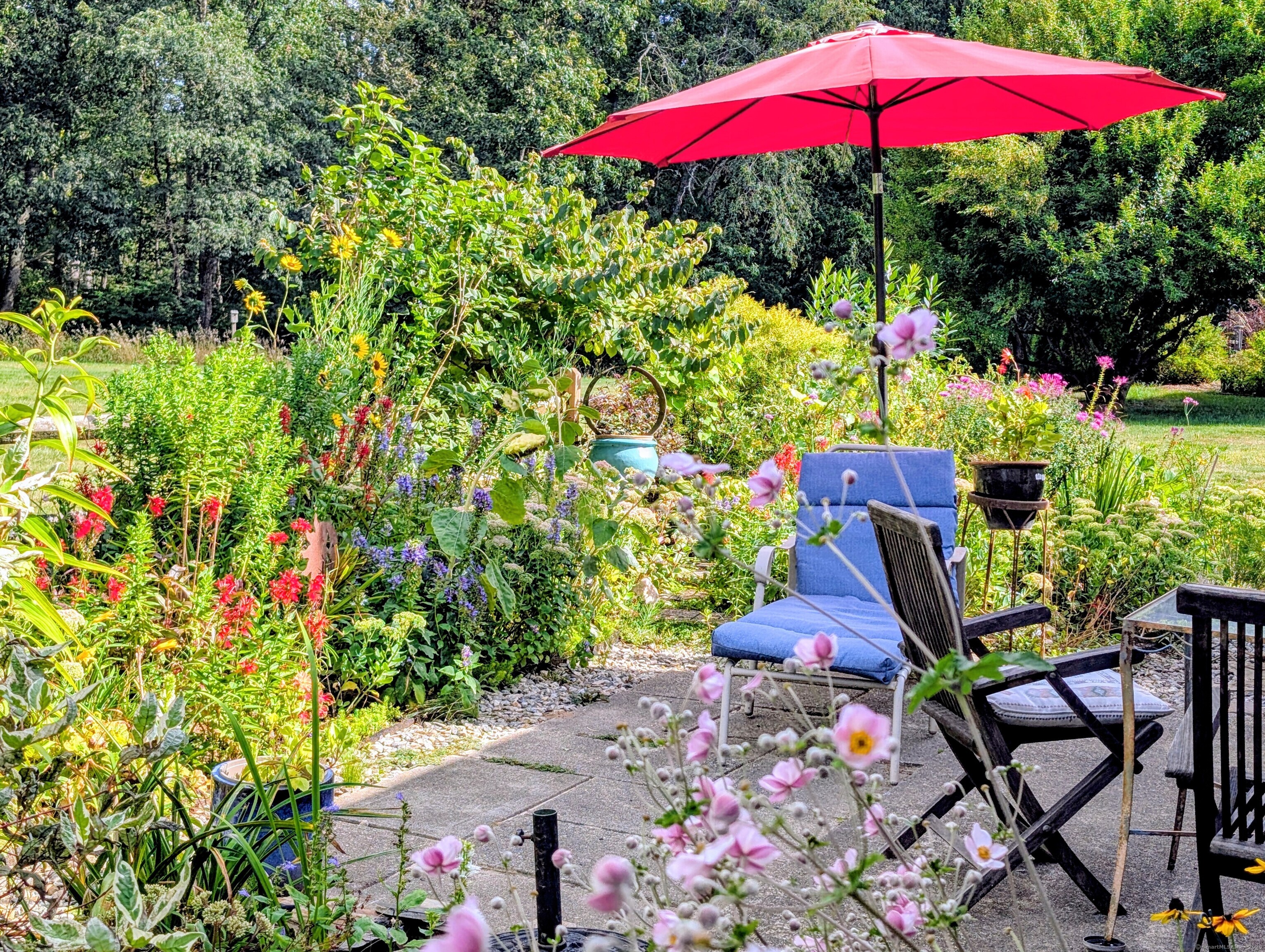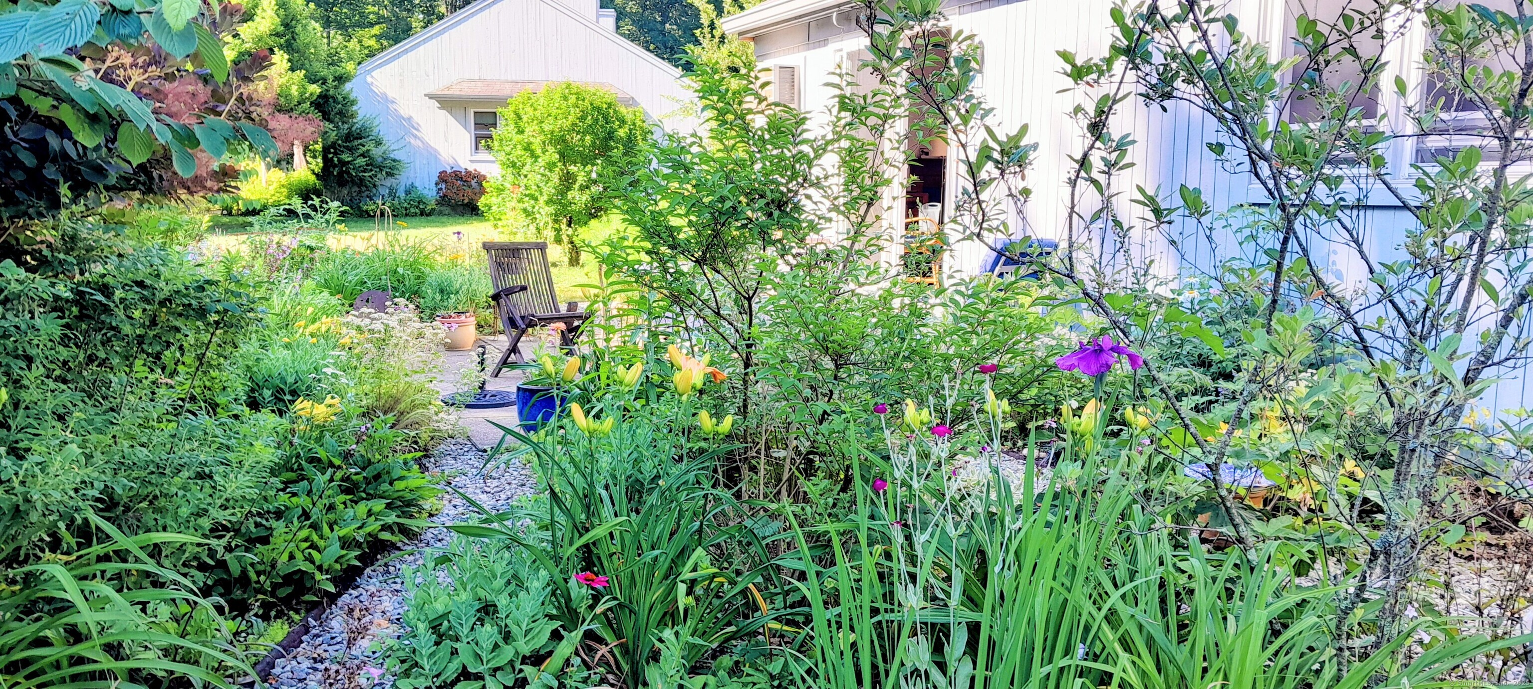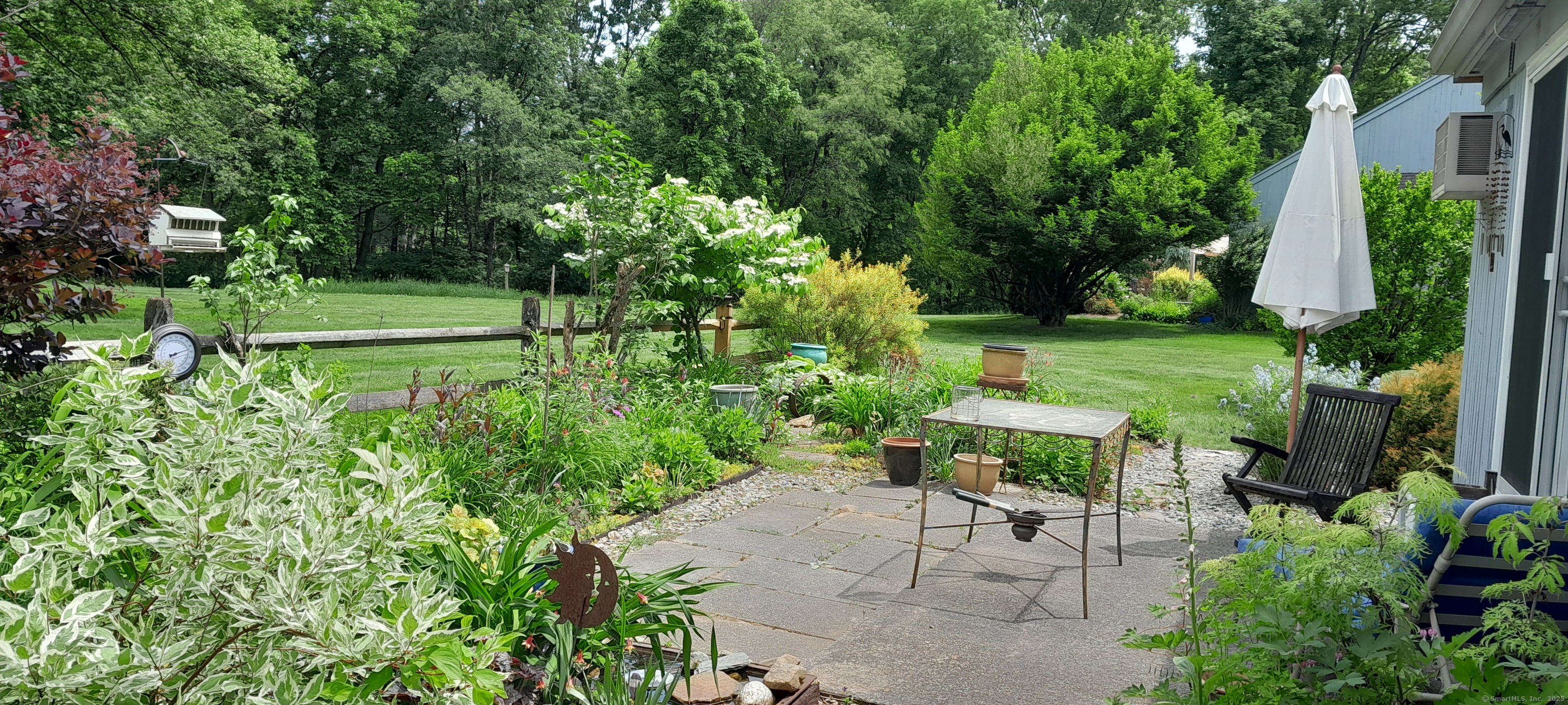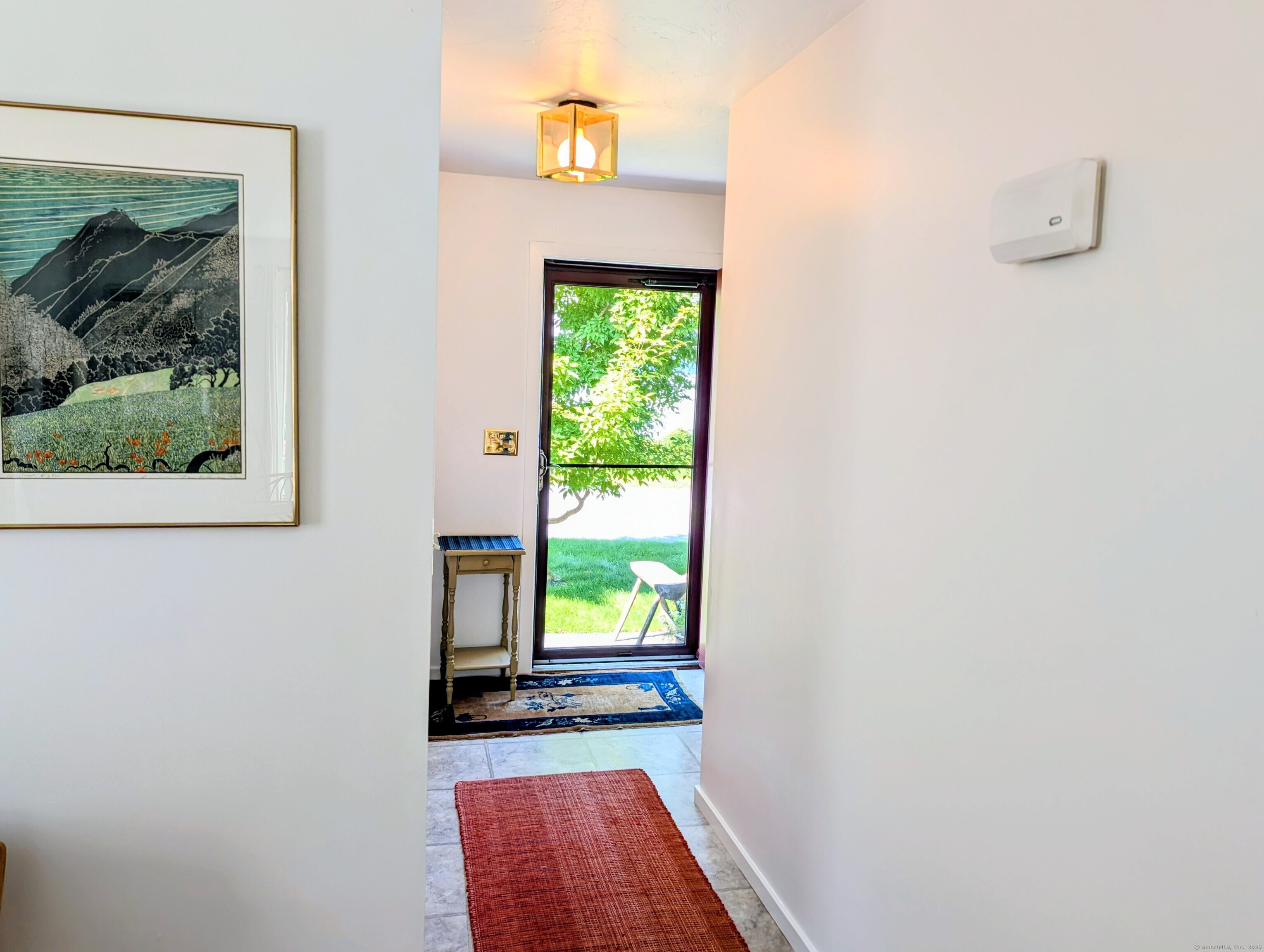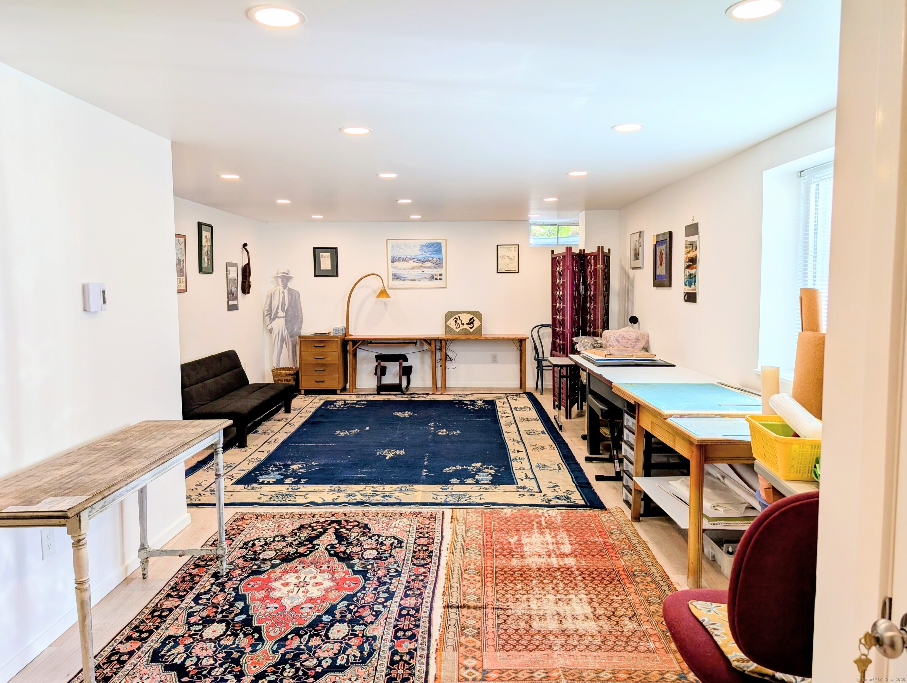 No more leaf-raking, mowing, gutter clean-outs or snowplowing for you! Experience the ease of the friendly Woodstock Meadows condo community within walking distance to Roseland Park & Golf course, and only ten minutes to Putnam shops and hospital. This is the "Cape" style, one level, south-facing end unit of a duplex, with two large bedrooms, two full baths. The primary bedroom has two large closets, and ensuite bathroom with a shower/bath. The second bedroom is next to another full bathroom with a double walk-in shower. All windows are easy clean energy efficient. The bright kitchen has new updated cupboards and counter tops. The large open plan living/dining room area features oak hardwood flooring, a working fireplace, and Anderson sliding doors out to a patio surrounded by a lovely garden and common area green space beyond. A carpeted staircase leads to the huge 31x15' bonus room downstairs. This room was built in 2022, and features a 4x4' window with a 6x6' egress window well to the outside, bringing in great natural light and creating another 455sq.ft. of heated living space. There is still another approximate 455' of unfinished basement space providing loads of totally dry secure storage. This end unit faces due south, with all day sunlight. There is a detached one-car garage, automatic garage door opener, electricity hookups and light. This is a quiet pet-friendly community in a lovely treed rural setting.