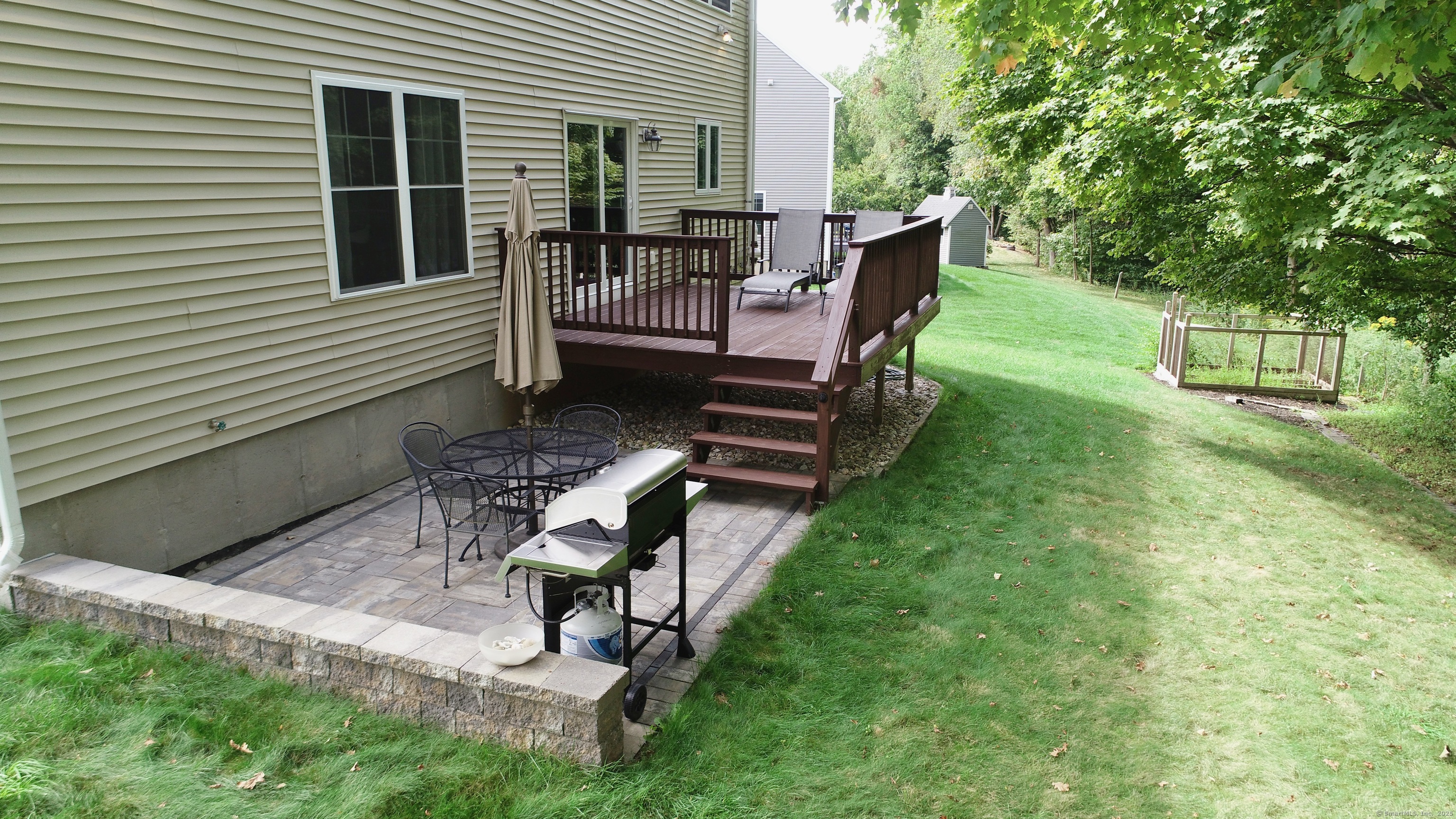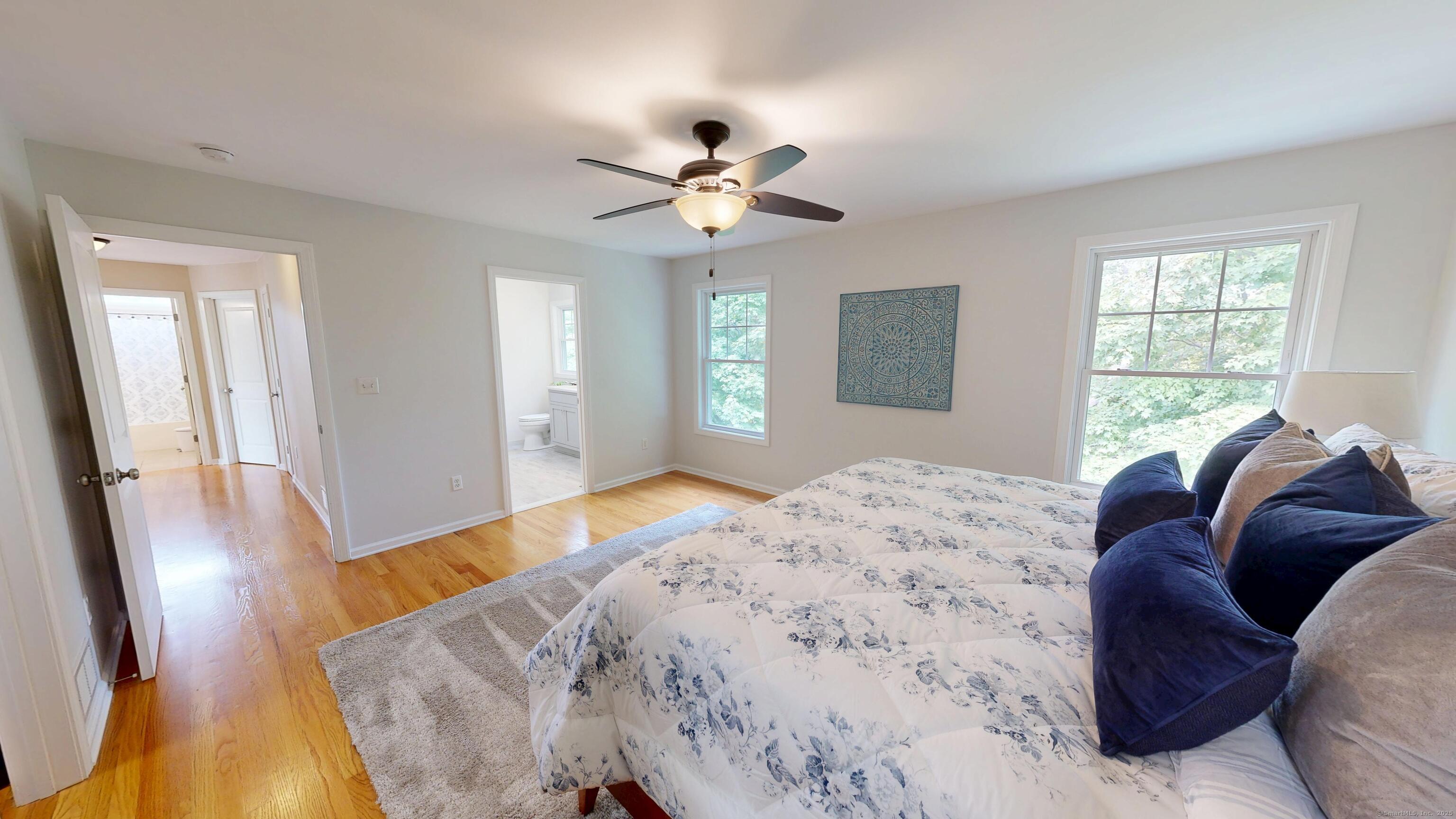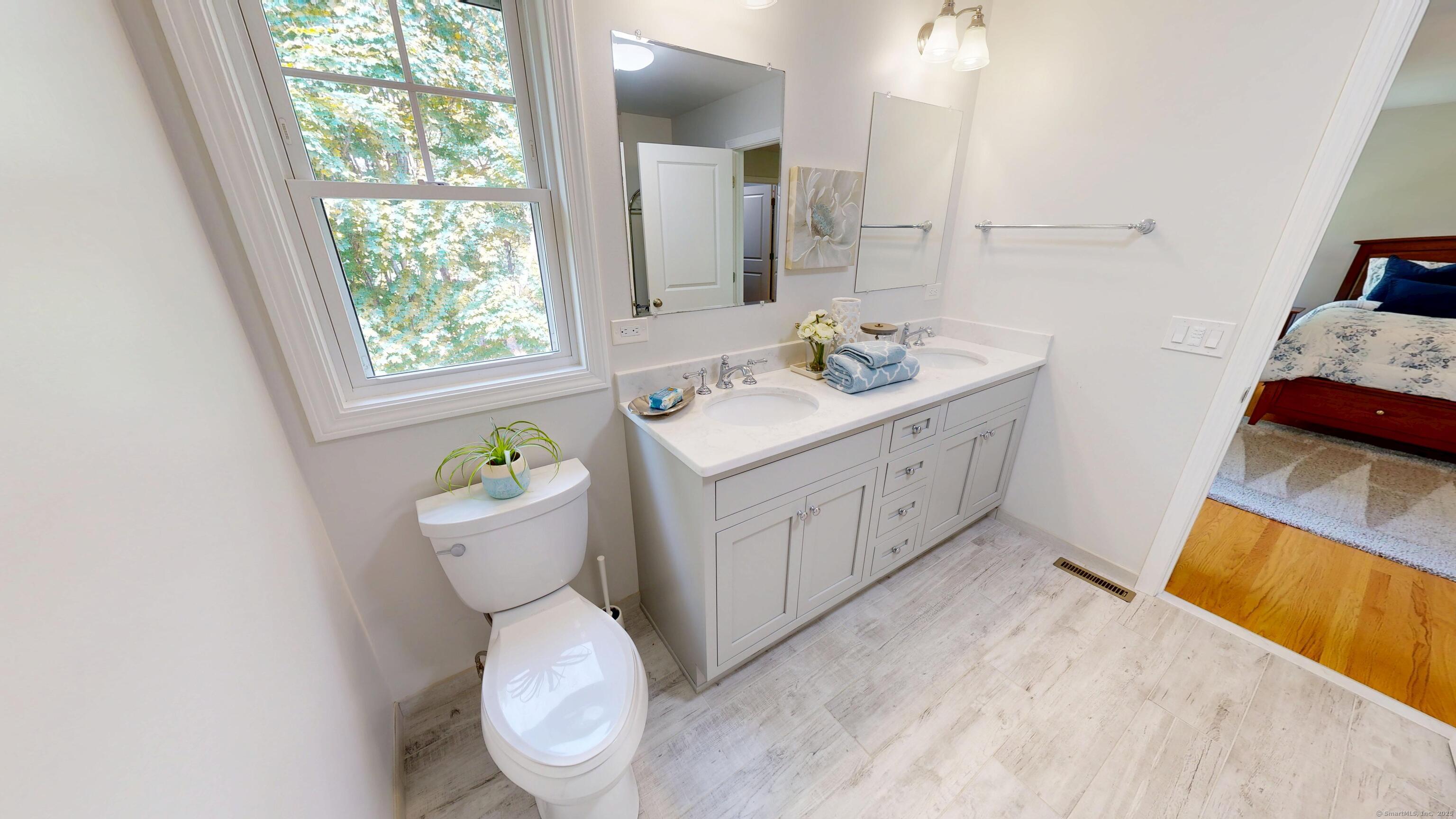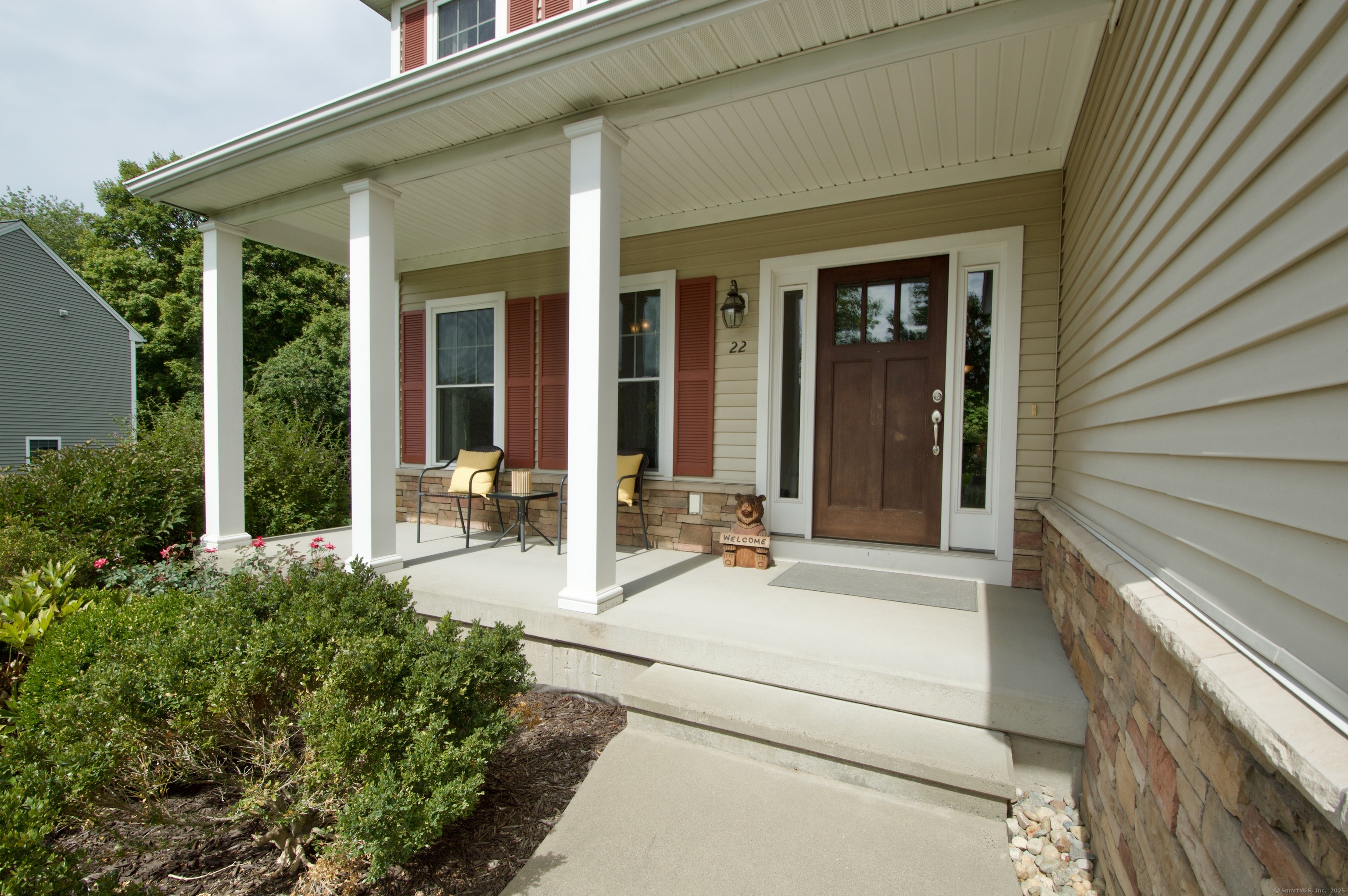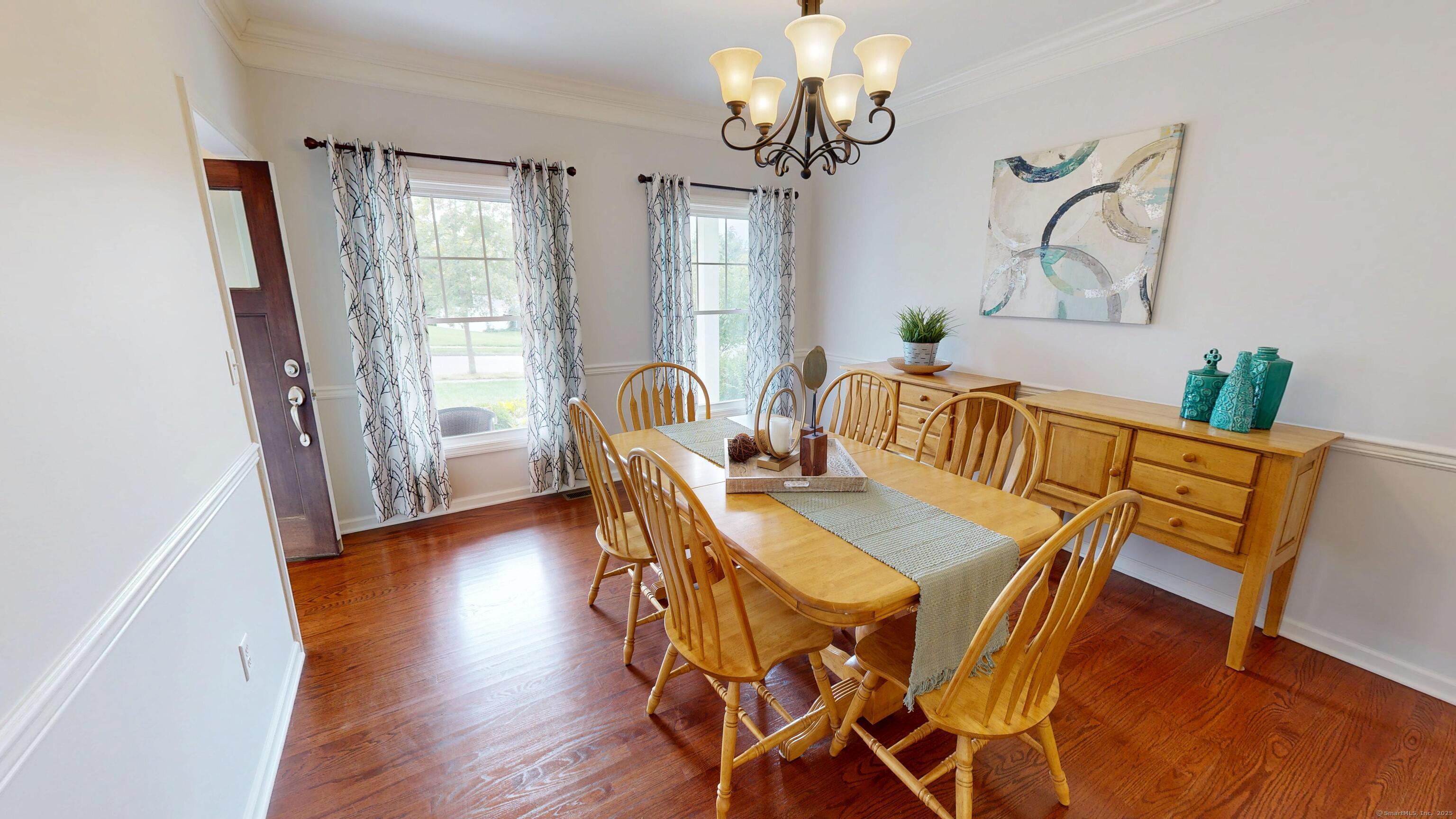 Well-maintained Colonial located in one of Wallingford's most sought-after cul-de-sac neighborhoods. This home offers an inviting open floor plan with a spacious kitchen featuring granite countertops, glass tile backsplash, center island, pantry, and eating area with sliders leading to a deck and newer patio overlooking a wooded lot for privacy. The kitchen opens seamlessly to the family room with a gas fireplace, perfect for gatherings. A freshly painted dining room with crown molding and chair rail adds elegance, while stunning mahogany-stained oak hardwood floors run throughout the first floor. The second level offers hardwood flooring throughout, a spacious primary suite with two walk-in closets, and a fully remodeled bathroom with double vanity. Two additional bedrooms, including one with a large walk-in closet, a full bath, and a laundry room complete the upstairs. The lower level provides excellent potential for future expansion. Additional highlights include a two-car garage with extra storage and a sidewalk-lined neighborhood close to Rt. 68, I-91, Rt. 15, shopping, restaurants, and more.