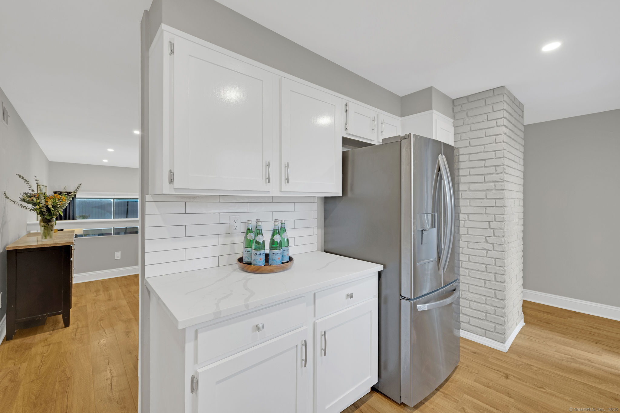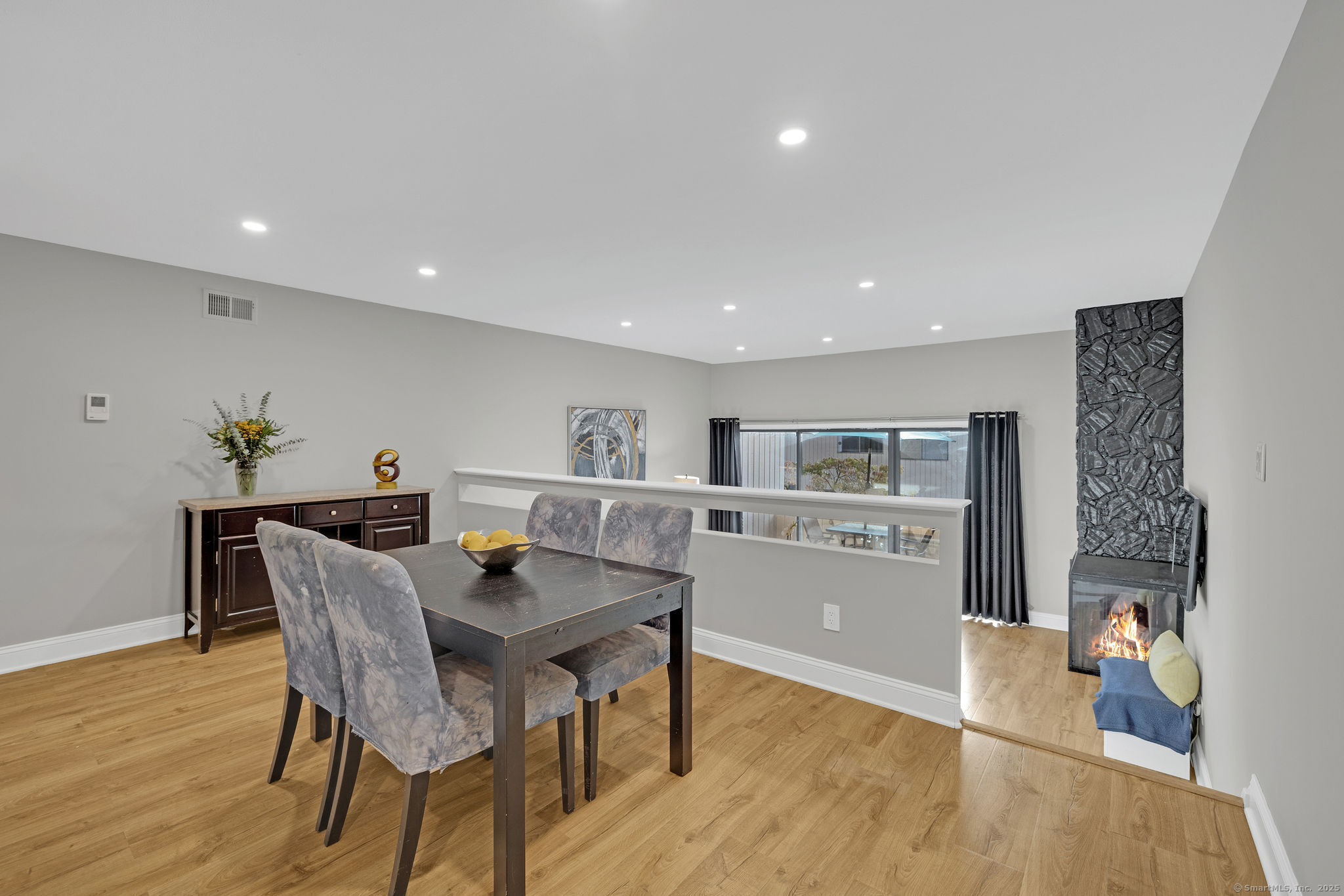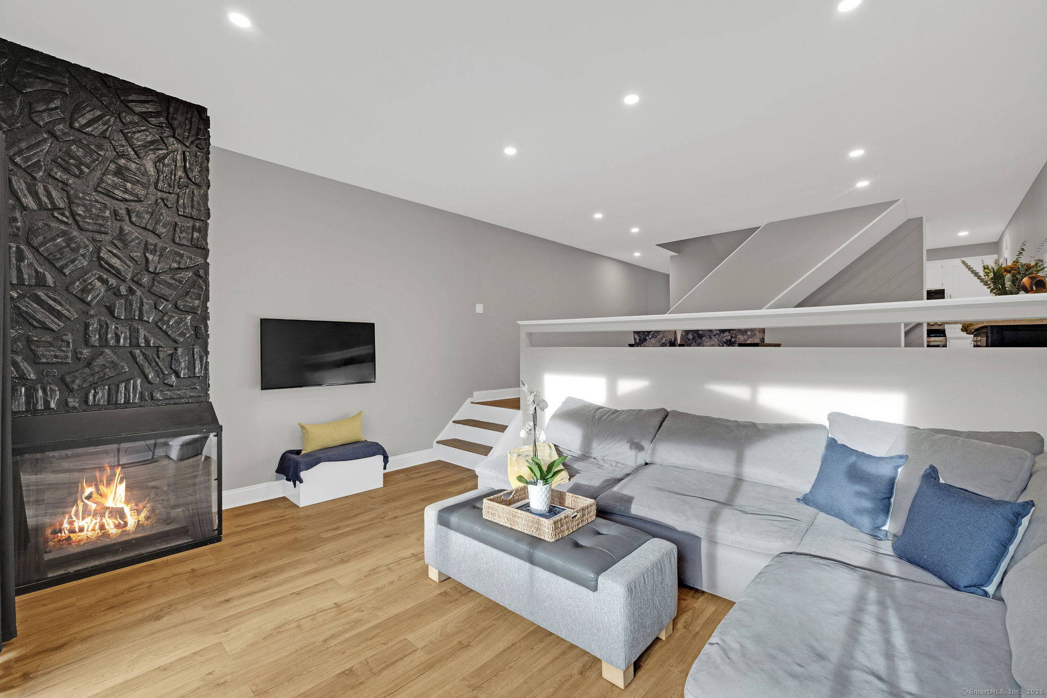 Welcome to 100 Hope street Unit 8, this updated tri-level condo offers over 1,800 square feet of living space with 2 bedrooms, 3 full bathrooms, and a layout designed for today's lifestyle. Modern finishes, vaulted ceilings, and abundant natural light make this home both stylish and comfortable. The main level features an airy living room anchored by a dramatic stone fireplace wall. Large sliders open to a private balcony, blending indoor and outdoor living and creating the perfect spot to relax or entertain. Just above, the dining area overlooks the living space, offering a contemporary feel and effortless flow. The kitchen boasts white cabinetry, a subway tile backsplash, and stainless steel appliances, combining clean design with everyday functionality. Upstairs, the vaulted-ceiling primary suite is complete with a private deck, spacious closet, and updated en-suite bathroom. A second bedroom, also with vaulted ceilings, is served by a stylish full bath down the hall-perfect for guests, family, or a home office. The finished lower level expands the living space with a flexible family room, office nook, and another full bathroom. This area can easily serve as a guest suite, gym, or playroom, offering versatility to meet changing needs.
