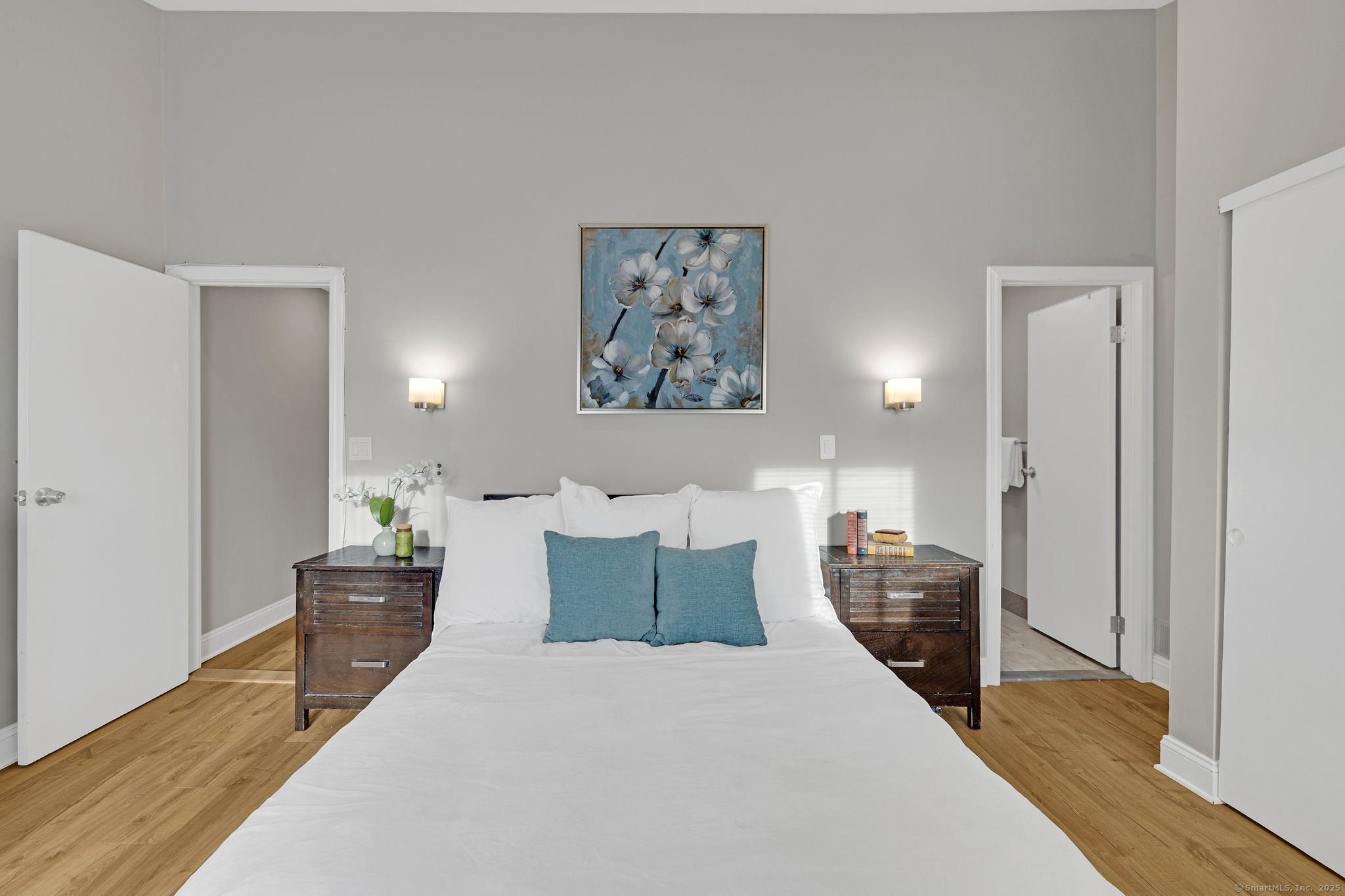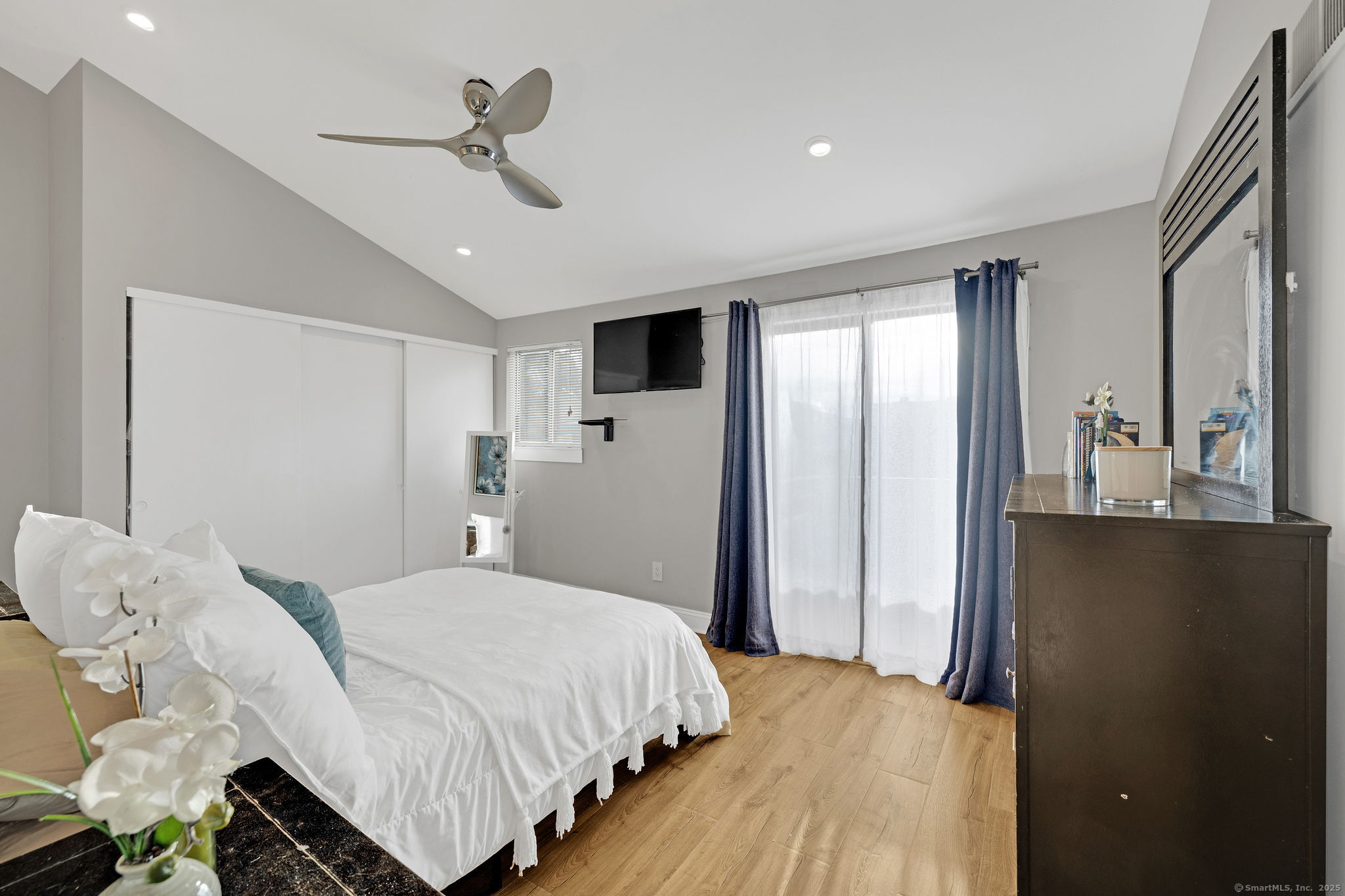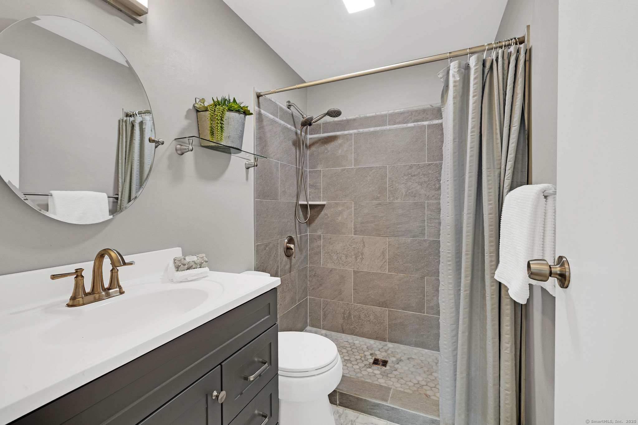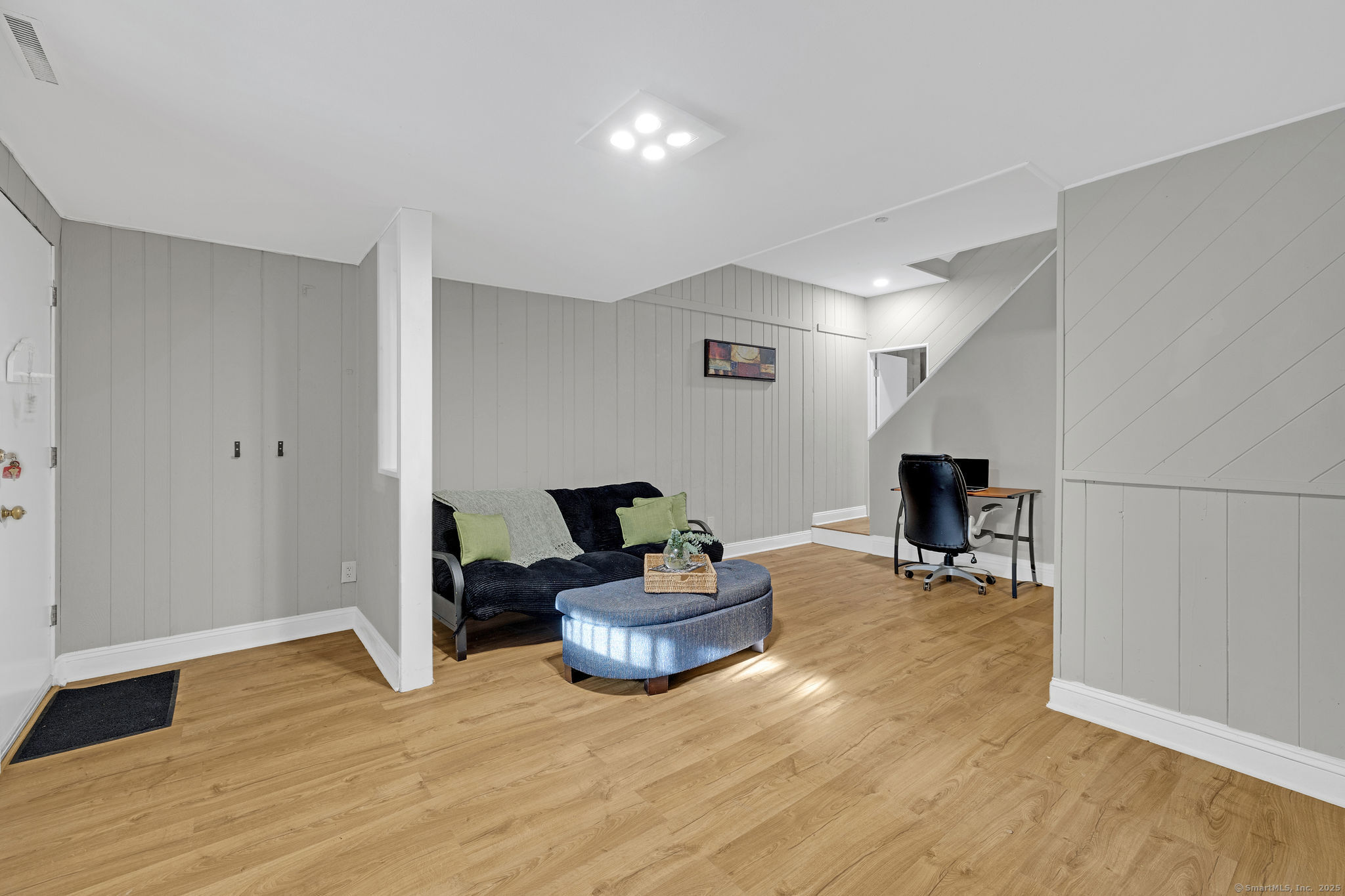Welcome to 100 Hope street Unit 8, this updated tri-level condo offers over 1,800 square feet of living space with 2 bedrooms, 3 full bathrooms, and a layout designed for today's lifestyle. Modern finishes, vaulted ceilings, and abundant natural light make this home both stylish and comfortable. The main level features an airy living room anchored by a dramatic stone fireplace wall. Large sliders open to a private balcony, blending indoor and outdoor living and creating the perfect spot to relax or entertain. Just above, the dining area overlooks the living space, offering a contemporary feel and effortless flow. The kitchen boasts white cabinetry, a subway tile backsplash, and stainless steel appliances, combining clean design with everyday functionality. Upstairs, the vaulted-ceiling primary suite is complete with a private deck, spacious closet, and updated en-suite bathroom. A second bedroom, also with vaulted ceilings, is served by a stylish full bath down the hall-perfect for guests, family, or a home office. The finished lower level expands the living space with a flexible family room, office nook, and another full bathroom. This area can easily serve as a guest suite, gym, or playroom, offering versatility to meet changing needs.