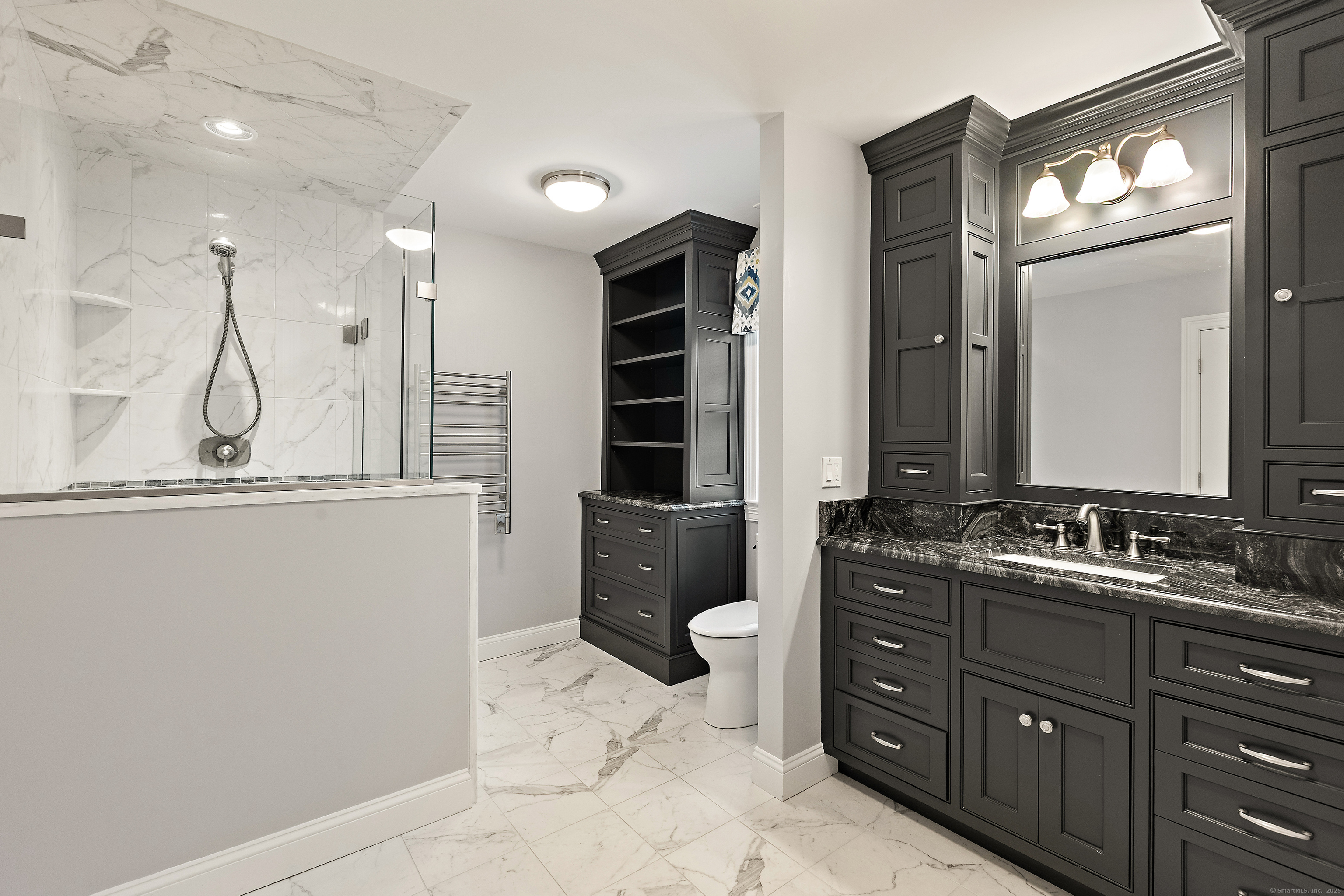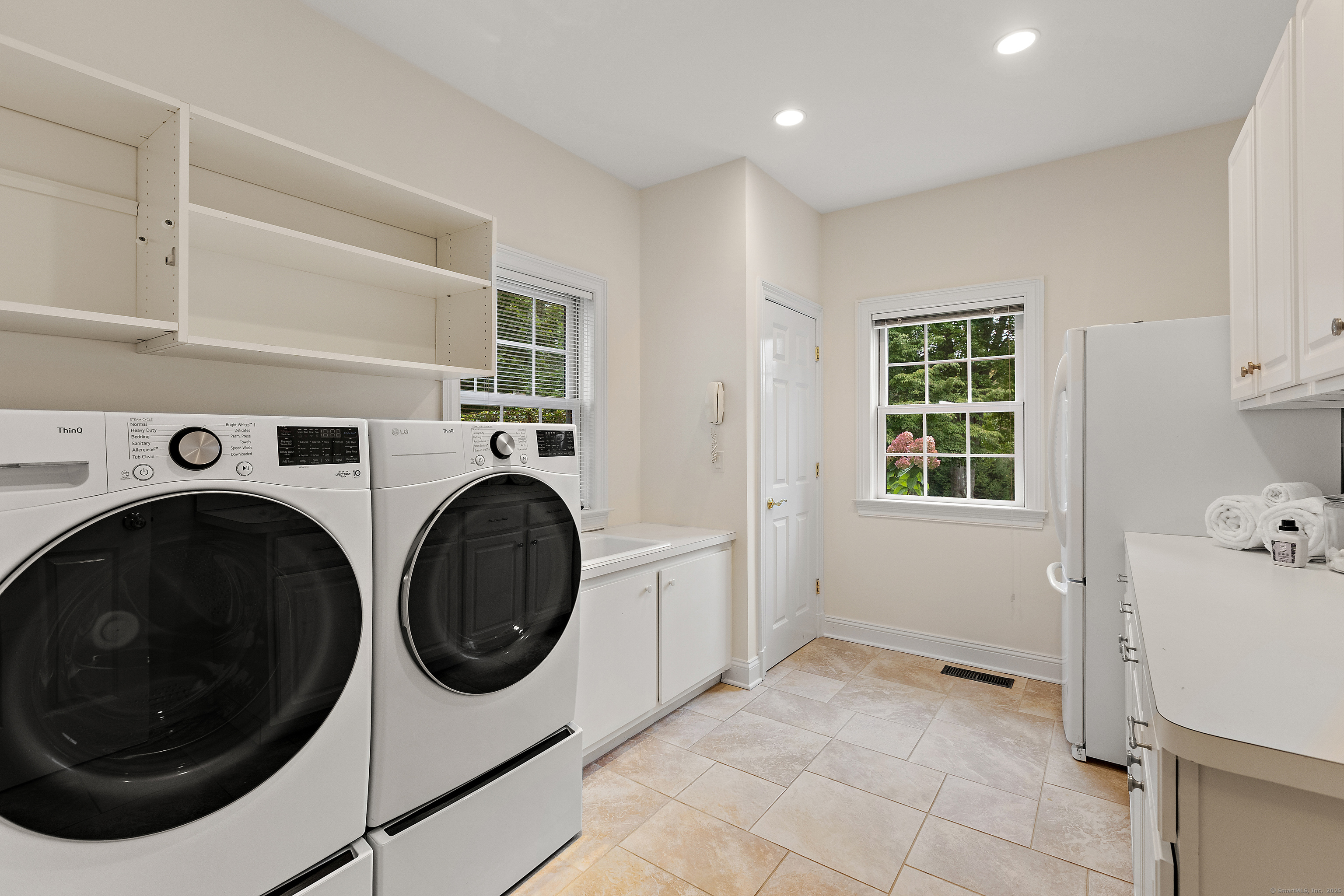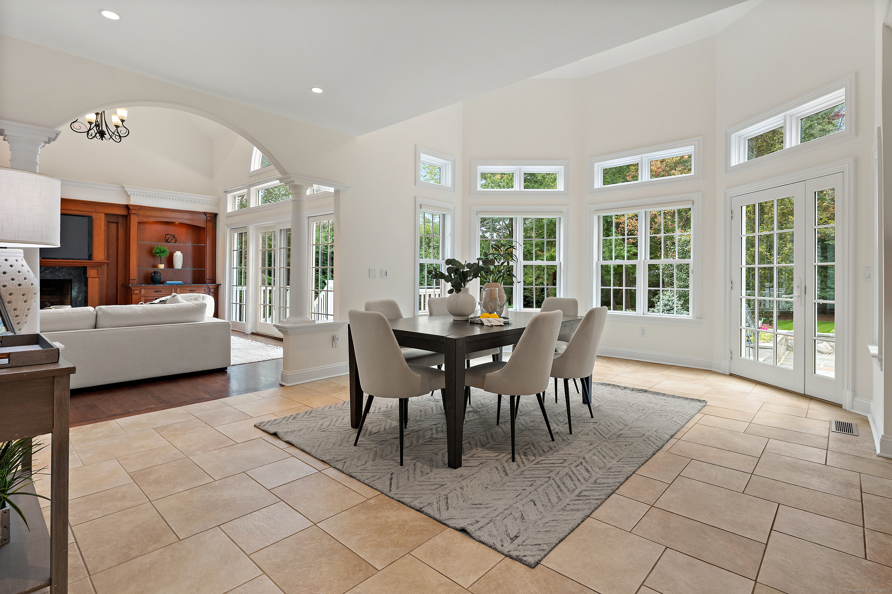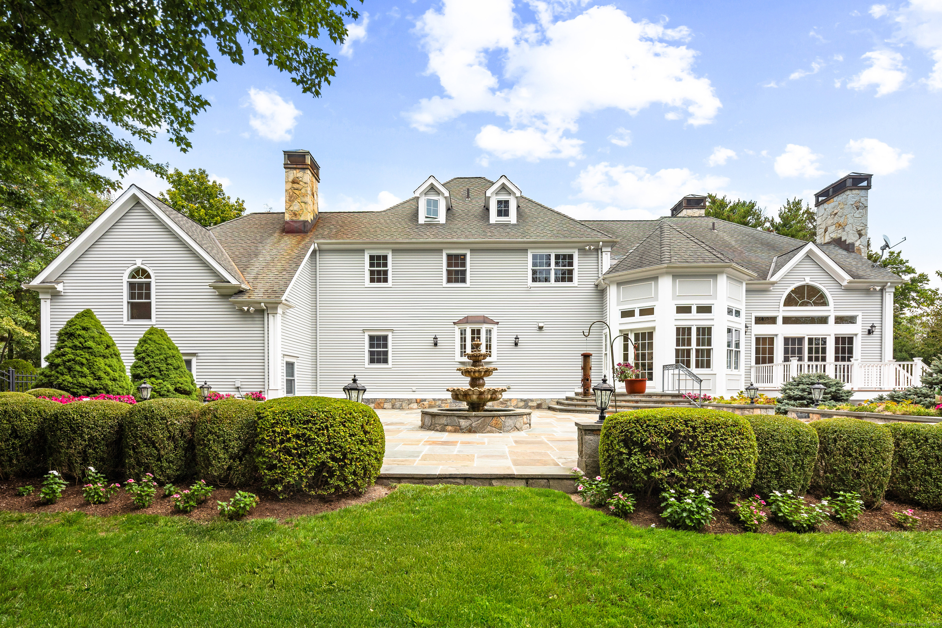 Just off Ponus Ridge and moments from Talmadge Hill Train Station, this exceptional Colonial home offers easy access to the Merritt and downtown amenities. Set on 1.67 acres of beautifully landscaped, gated grounds, the property boasts a newly renovated, resort-style gunite pool and spa, an oasis for outdoor living. The professionally manicured backyard is complemented by a stunning bluestone patio, complete with a dramatic fountain centerpiece, ideal for entertaining. This home welcomes you with a grand two-story foyer, leading to an open-concept Kitchen's By Deane chef's kitchen featuring high-end appliances, including dual refrigerator/freezers, a butler's pantry, and a sun-filled breakfast nook. The adjacent family room offers a cozy gas fireplace and French doors that open to a balcony overlooking the serene pool area. The second floor showcases a sophisticated primary suite with custom built-ins, a spacious walk-in closet, and an updated, spa-inspired bath complete with a heated floor and towel rack. Three additional bedrooms and two full baths provide ample family space. A private staircase leads to a bedroom suite, complete with a sitting room and full bath, ideal for an in-law or au pair suite. The lower level has 2334 addt'l finished SqFt with a gym area, a living space with a cozy fireplace, and a wine cellar. In addition, there is a 3-car garage, a full house generator and separate storage shed. This meticulously maintained estate is truly an extraordinary prope