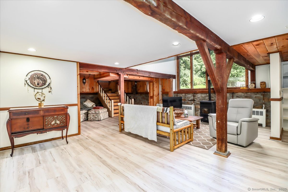 Escape to the Country-Without the Chores! Where you can slow down and enjoy the world around you. Have you ever dreamed of living on a farm, surrounded by nature, but without the daily upkeep? Bella Alpaca Farm offers a rare opportunity to enjoy the serenity of farm life in a beautifully updated 2-bedroom, 2-bath home-no chores required. The main floor features a harmonious blend of natural stone and wainscoting, creating a warm and inviting atmosphere. The office, located on the main level, boasts rich wood floors and elegant wainscoting, offering a peaceful space to work or relax. Step into the great room, where two-story windows flood the space with natural light and provide stunning views of the fields and alpacas. The open-concept layout flows seamlessly into the oversized kitchen, complete with exposed wood beams and a professional-grade 6-burner gas stove-perfect for entertaining or cozy nights in. This home offers two spacious primary suites, each with its own full bathroom. One suite is located upstairs, accessible via the great room, and includes an additional attached room-ideal for a sitting area, studio, or guest space. The second suite is located through the kitchen, offering privacy and comfort. Nature lovers will delight in the abundance of wildlife, including alpacas, deer, hummingbirds, rabbits, and friendly farm cats. The property is surrounded by healing herbs and lush plantings, providing peace, fresh air, and a true connection to the land.