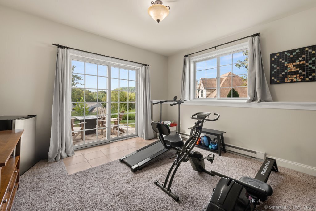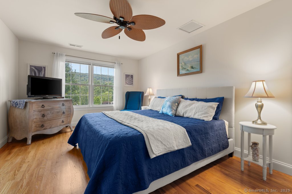 This stand-alone condo in an age-restricted New Milford community offers an inviting blend of comfort and simplicity. Most living can be enjoyed on the main floor , where a dramatic family room with cathedral ceilings and a gas fireplace creates a warm centerpiece and hardwood throughout the entire home. The dining room and kitchen are spacious, designed for both everyday ease and gatherings. The main-level primary suite feels like a retreat with its soaking tub, separate shower, double vanity, and walk-in closet. A sunroom, perhaps the most cherished space, frames mountain views and changing foliage, a peaceful spot in every season. For fresh air views step out on the deck and admire the beauty while grilling or entertaining. A half bath and laundry room on this level add to the convenience. Upstairs, a loft overlooks the family room, joined by a second bedroom with walk-in closet and shared bath access, plus a generous office/flex room with an oversized storage closet. The lower level offers light-filled, flexible space with walk-out access to the yard, ready for hobbies, guests, or quiet retreat. Here, low-maintenance living meets comfort at every turn. Pride of ownership abounds in every inch of this home that you have to see to appreciate!