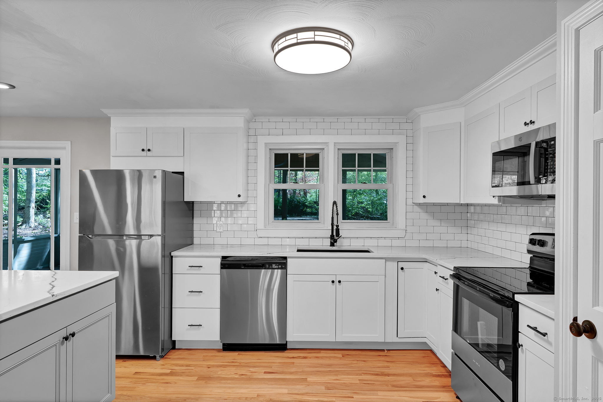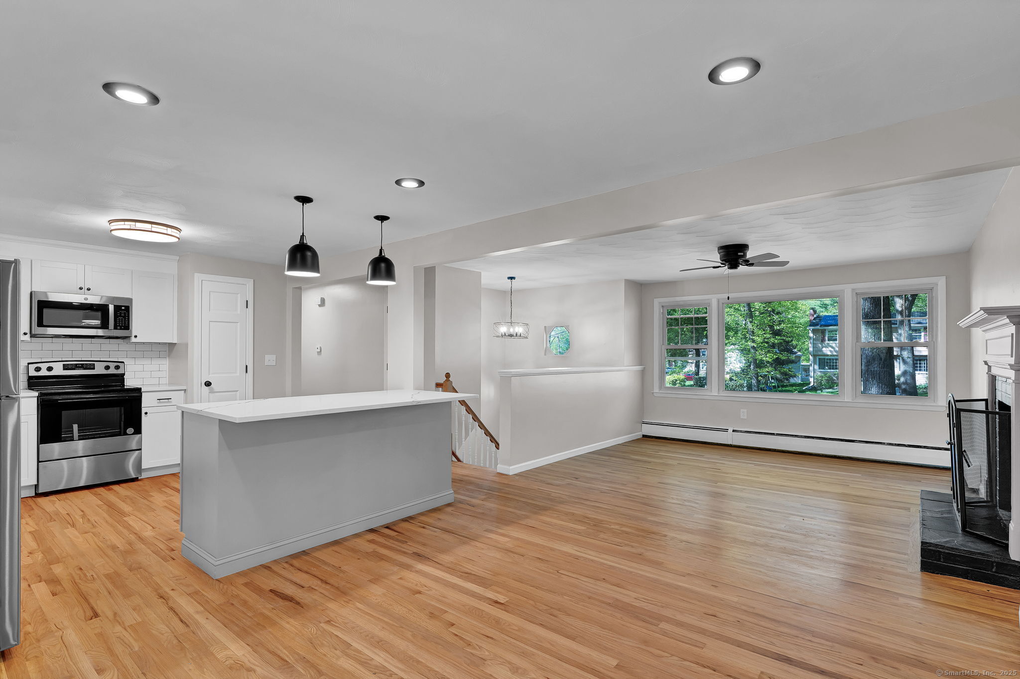 Welcome to 9 West Drive - a beautifully updated 4-bedroom, 1.5-bath home that combines modern finishes with everyday functionality. The open-concept main floor sets the stage, featuring a fully renovated kitchen with a center island, stainless steel appliances, and stylish updates that flow seamlessly into the living and dining areas-perfect for entertaining or casual family living. Both bathrooms have been tastefully remodeled, including a full bath with a double vanity for added convenience. Updates are showcased throughout the home, with thoughtful details that elevate every space. A bright rear porch room provides flexible bonus space and opens to the backyard, where a spacious lot awaits. The large yard includes a patio and built-in fire pit, ideal for summer barbecues, fall evenings, and year-round gatherings. Additional highlights include an attached one-car under-house garage with built-in shelving for parking and storage. Conveniently located near schools, parks, and shopping, this move-in-ready home offers a rare combination of updates, outdoor living, and timeless charm.