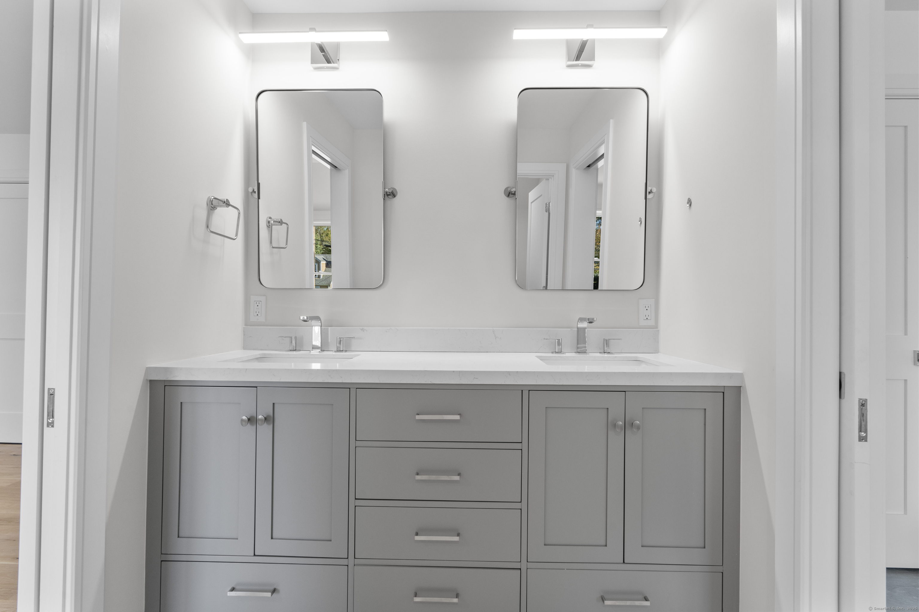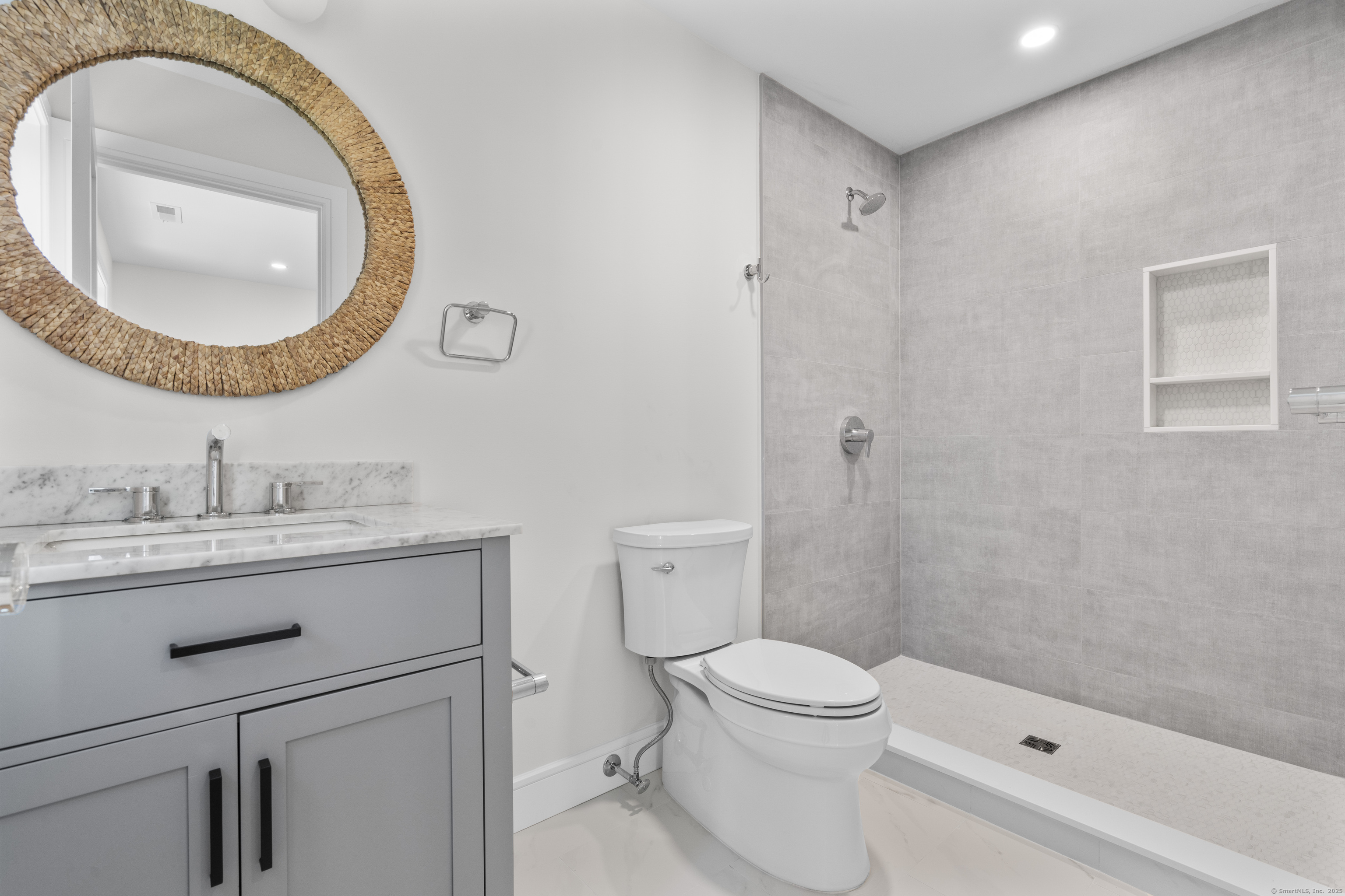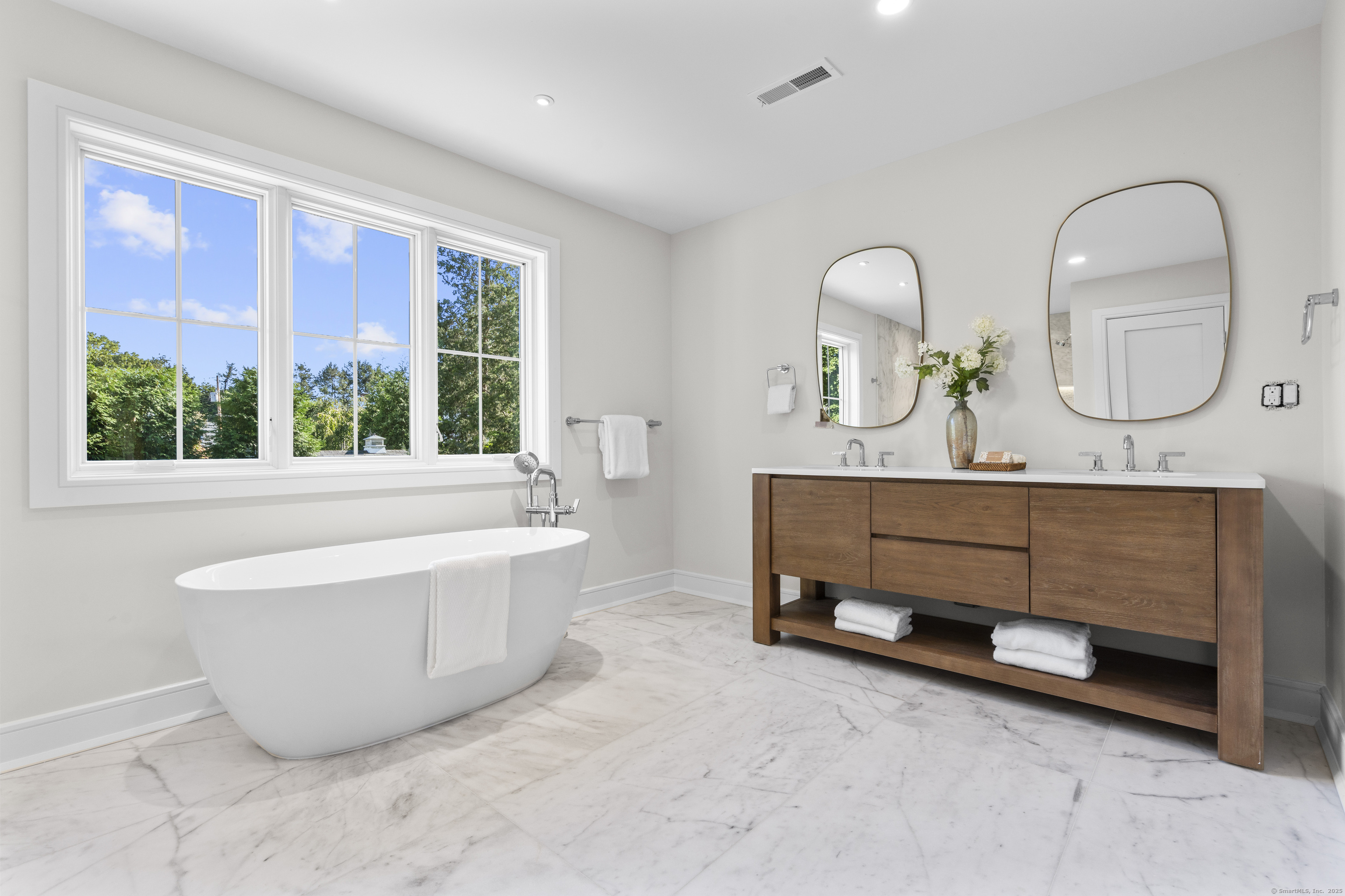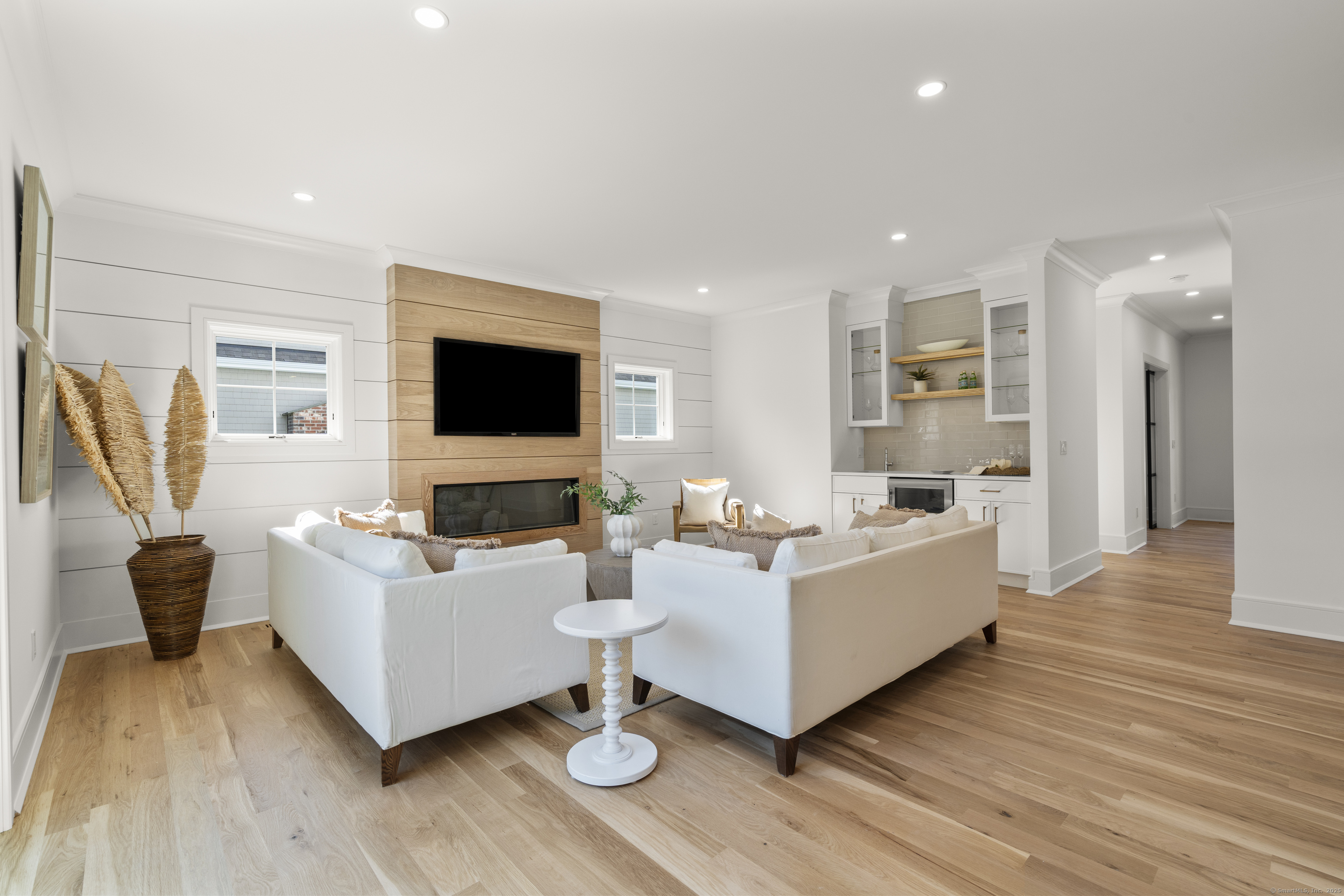 **Open house 10/11-10/12 CANCELLED** Absolutely GORGEOUS new construction, /elegantly crafted, that blends modern sophistication with coastal -charm in this 5-BDR, 5 Full Bath home. The main level offers a -balance of open-concept living and defined spaces, featuring 9' ceilings, white oak floors, custom millwork, and curated designer fixtures. The gourmet kitchen is a showstopper, featuring Thermador Pro appliances, quartz countertops, and a custom white oak island, flowing seamlessly into a sun-drenched family room with a statement custom designed fireplace and 8' sliding doors leading to a private patio and landscaped yard-spacious enough to accommodate a pool. A home office on the main floor offers functionality and flexibility to be converted to a bedroom. Upstairs, the impressive primary suite with designer accent wall, oversized walk-in closet'S', and a spa-like bath with soaking tub, and radiant heated floors.. Add'l BDRS include private or Jack & Jill baths. The finished lower level offers flexibility for a gym, playroom, or media room. Smart home-ready with Leviton smart-capable panel. Low maintenance exterior. Convenient to downtown restaurant row, lakes, beaches, shopping, 2 train stations, and easy access to Merritt; I95.