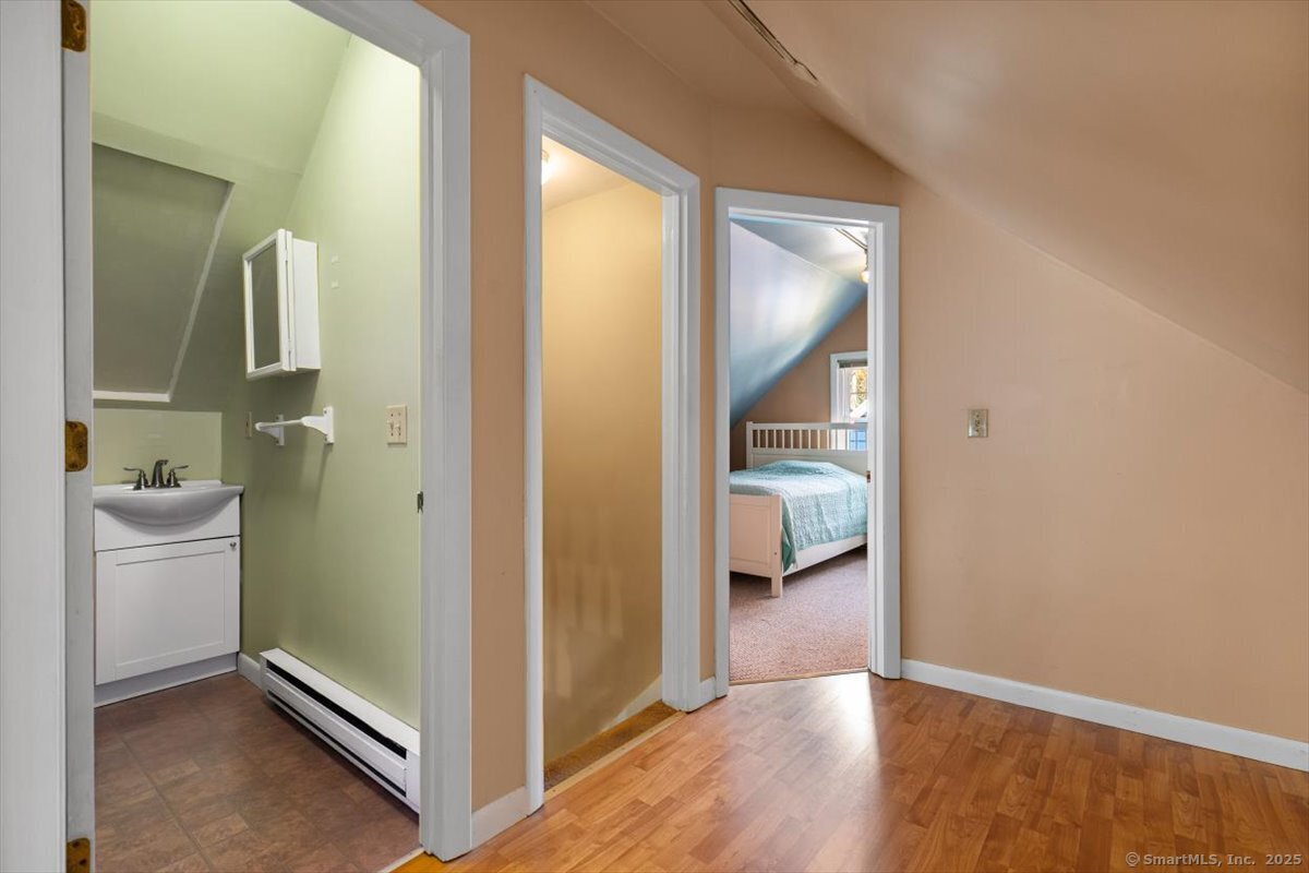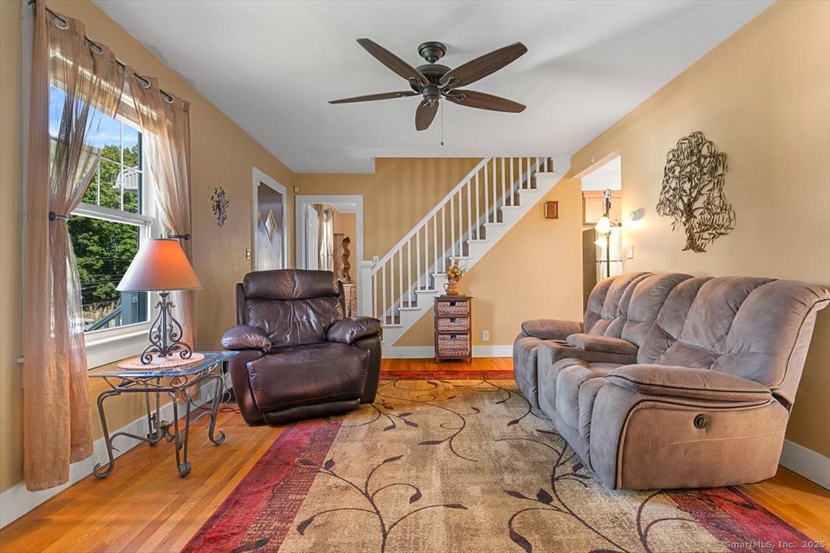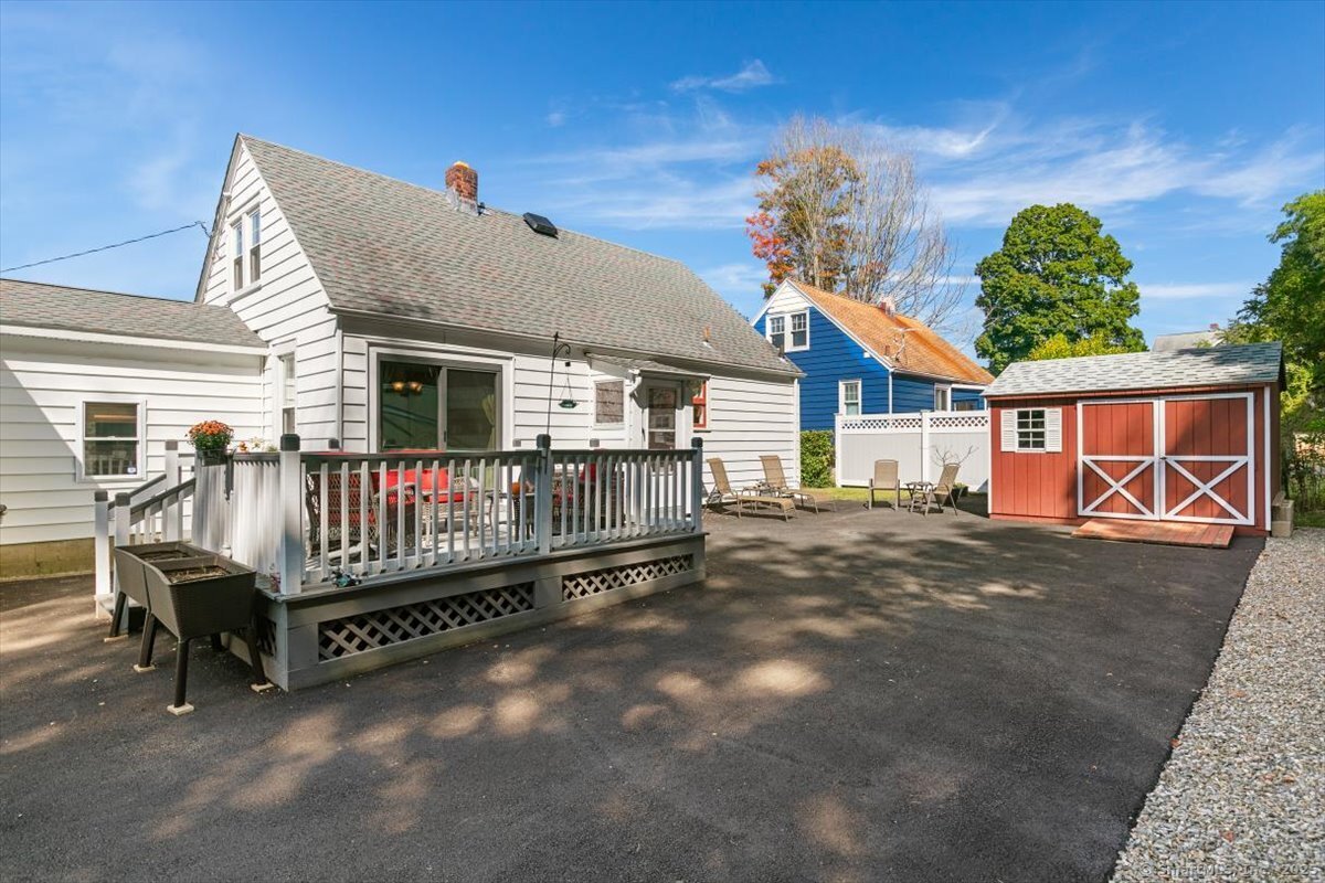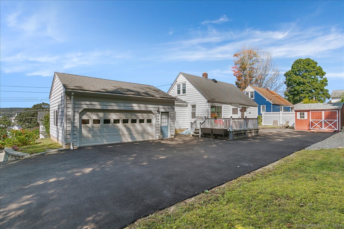 Welcome to this beautifully maintained Cape-style home offering 3 spacious bedrooms and 2 full baths, one on each level for added convenience. Step inside to find gleaming hardwood floors throughout the living room, dining area, and primary bedroom, creating a warm and inviting atmosphere. This home features a flexible floor plan with an additional office or den space-perfect for remote work or a quiet retreat. The attached two-car garage offers ample storage and has easy potential for conversion to an in-law suite. Enjoy the outdoors in your private backyard with a slider leading to a lovely deck, ideal for entertaining or relaxing. An oversized shed provides extra storage, while the newly paved driveway offers plenty of parking for guests. Whether you're looking for comfortable daily living or multi-generational potential, this home offers it all in a quiet, convenient setting. Home is being sold As Is.