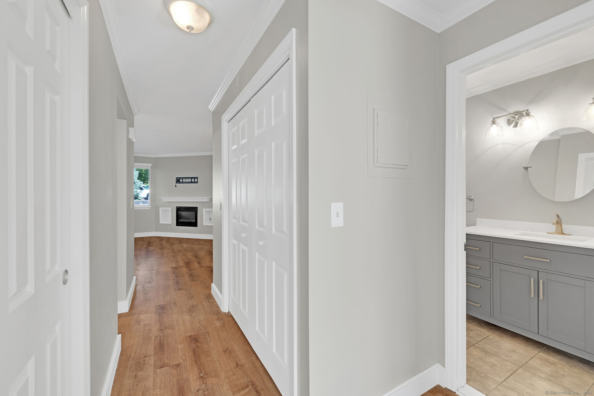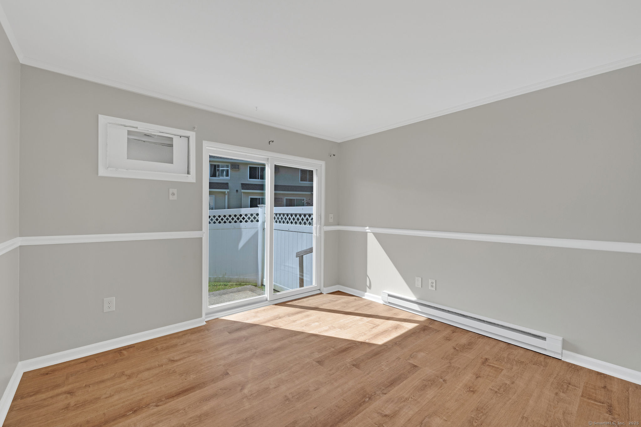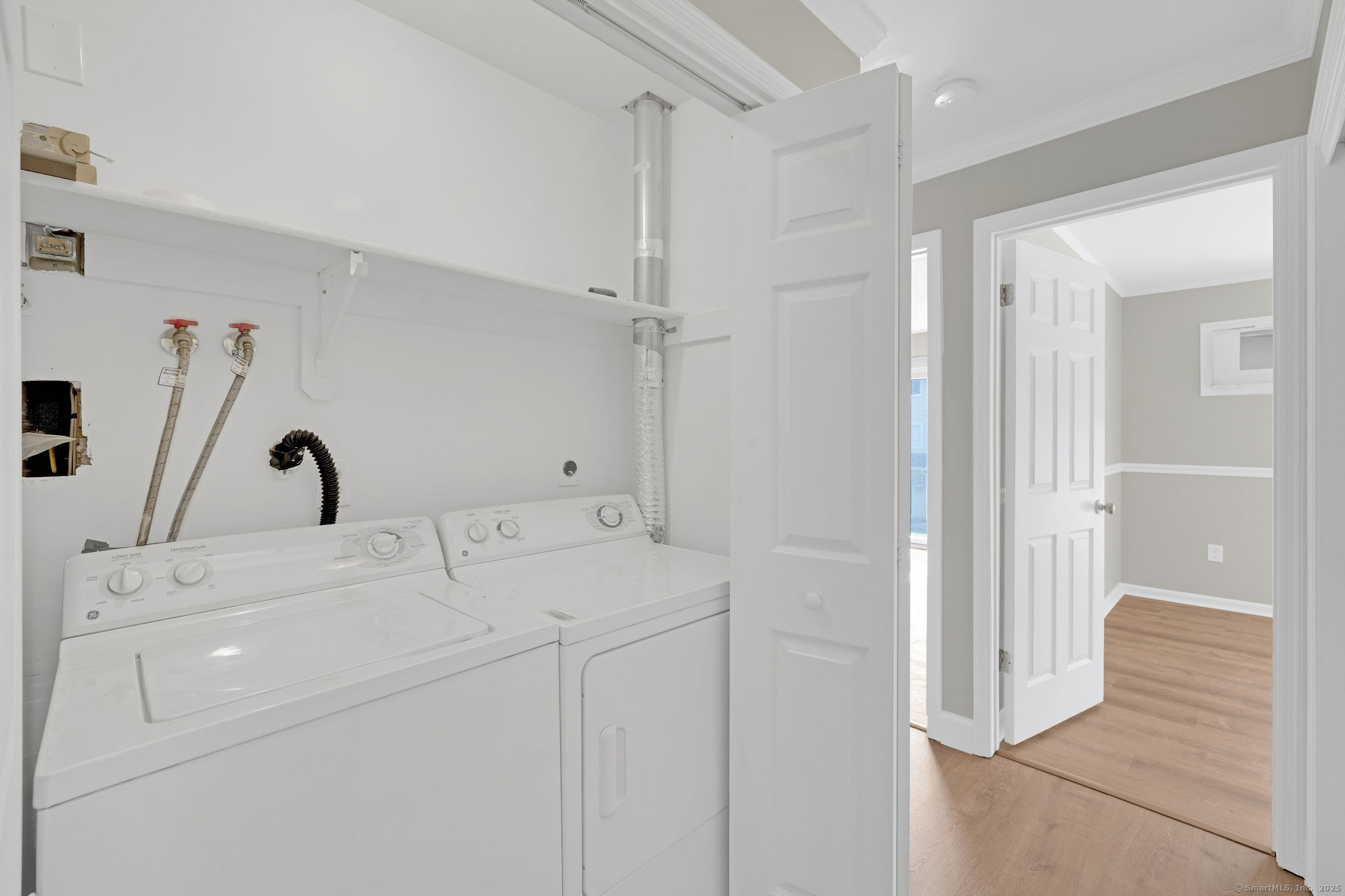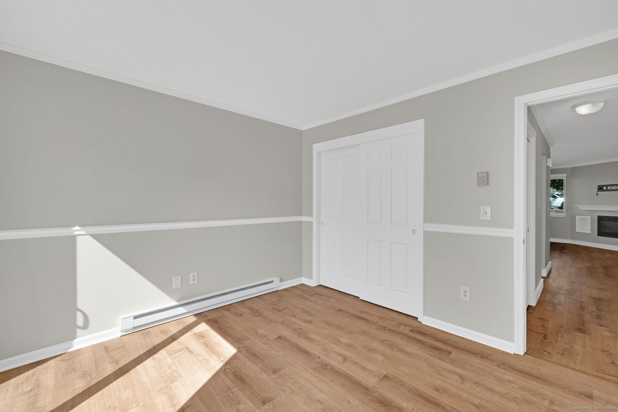 FANTASTIC END UNIT! This beautifully maintained & updated main level ranch in desirable Willow Springs offers the best of the best! Freshly painted in the perfect hue of grey, the custom crown moldings and trims add a touch of class & traditional feel. Spacious living room with dining area, gleaming wood laminate flooring with a classic look throughout. Fantastic kitchen features nice appliances, plenty of cabinetry, pantry and breakfast bar for an open feel. Updated hot water heater & electrical throughout! The primary bedroom has a huge walk-in closet for ultimate organization! Next bedroom is roomy and bright with pretty shelved closet. BRAND NEW energy efficient vinyl sliders have just been installed! The sparkling, renovated bathroom is light, bright with a walk-in shower, newer vanity & fixtures SO GORGEOUS! Laundry room includes washer & dryer. Your outdoor backyard with dual patio is nice for an electric BBQ, seating & umbrella. Lovely Willow Springs with low taxes, plus nice southern location in New Milford is a sought after complex offering a glistening inground pool, clubhouse with kitchen, game room, pool table for entertaining a large group of friends & family. Close to highways, NY & all your shopping needs. The New Milford Town Green offers you "downtown charm" minutes from your new home. You will love seeing this home so schedule your showing today....IMMACULATE, CLASSY & SPARKLING....WON'T LAST!