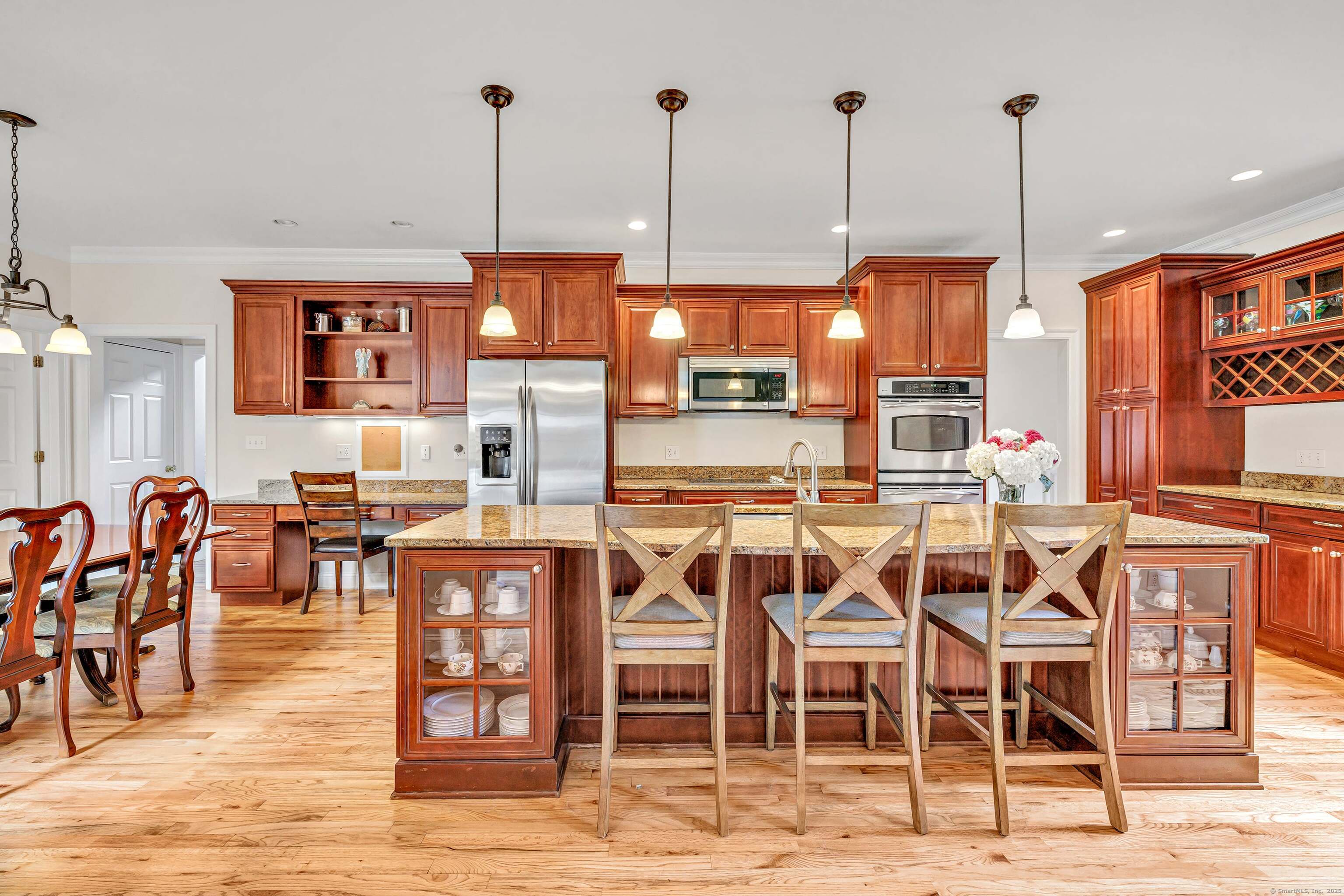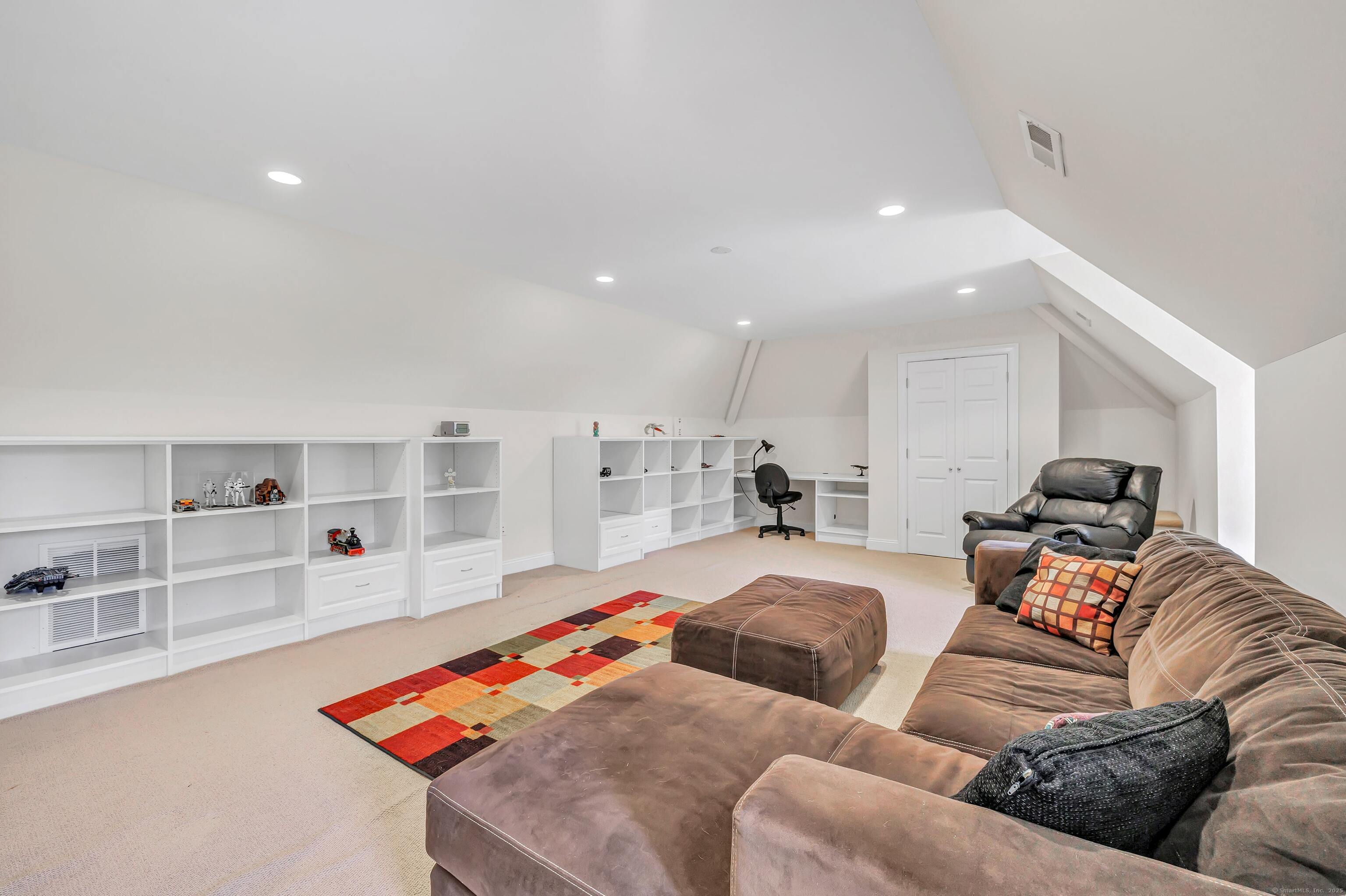 Few things are more inviting than a front porch, and 327 Lucille St delivers that and more in terms of curb appeal, which this home has in spades. This Colonial pairs classic architectural beauty with almost 5,000 sq ft across 4 levels, offering 4 bedrooms, an office, 4.5 baths, 2 car garage, and a fenced-in .46 acre yard. Inside, the foyer is flanked by the dining and living rooms, both with hardwood floors and custom millwork. The eat-in kitchen boasts granite counters, double ovens, SS appliances, an island, breakfast nook, and clear views into the sun-lit family room. A half bath and an en-suite guest room/office completes the first floor. Upstairs, the primary bedroom features a vaulted ceiling, walk-in closet, and a spacious, spa-inspired bathroom. A 2nd en-suite bedroom, 2 additional bedrooms with a jack-and-jill bathroom, and the laundry room completes the second floor. The finished 600 sq ft third floor bonus room offers endless possibilities, while the partially finished LL offers plenty of room for a gym, game room or workshop. The backyard is an entertainer's dream, perfect for dining al fresco while enjoying the peaceful privacy. This neighborhood is known for its wide, tree-lined streets, welcoming community & unbeatable location! Walk to the elementary school, park & library, explore Lake Mohegan & Black Rock Tpke, or enjoy the beaches or downtown, all minutes away. 327 Lucille St is a statement of refined living, where convenience and timeless design collide.