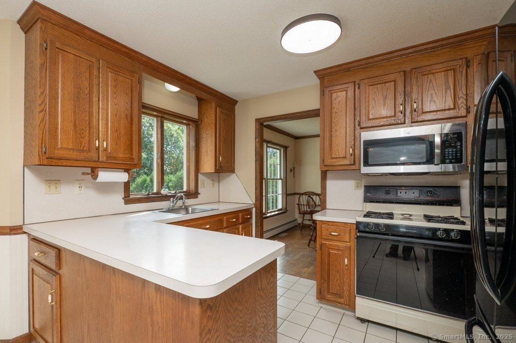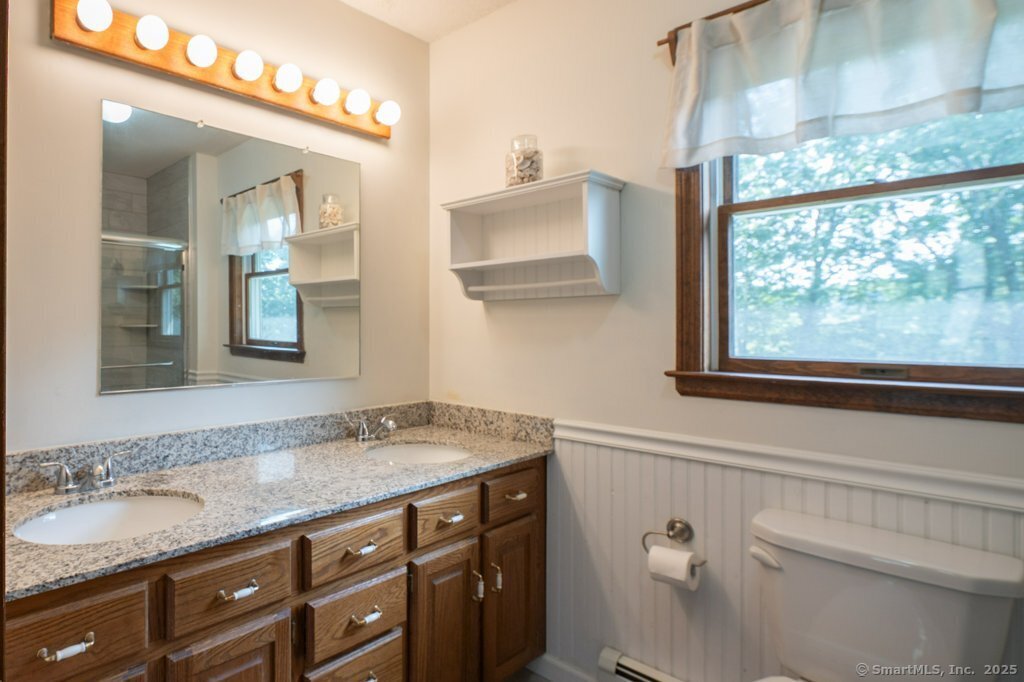 Beautifully maintained Colonial home located on the East End in sought after area. Living Room perfect for formal entertaining. Dining Room has hardwood flooring and adequate size for gatherings. The Kitchen has an abundance of oak cabinets and counter space as well as eating space in the Kitchen. New Harvey slider from the Kitchen to the deck. First floor Family Room with gas fireplace. The Primary Bedroom offers a large walk-in closet and upgraded bathroom with granite counter. The two remaining bedrooms are both very good size with one also offering a walk-in closet. The main bathroom on the upper level has been remodeled with granite counter. All bathrooms have new ceramic tile flooring. Solid wood 6 panel doors. Walk-out finished lower level recreation room. Central air conditioning. Lots of natural light.