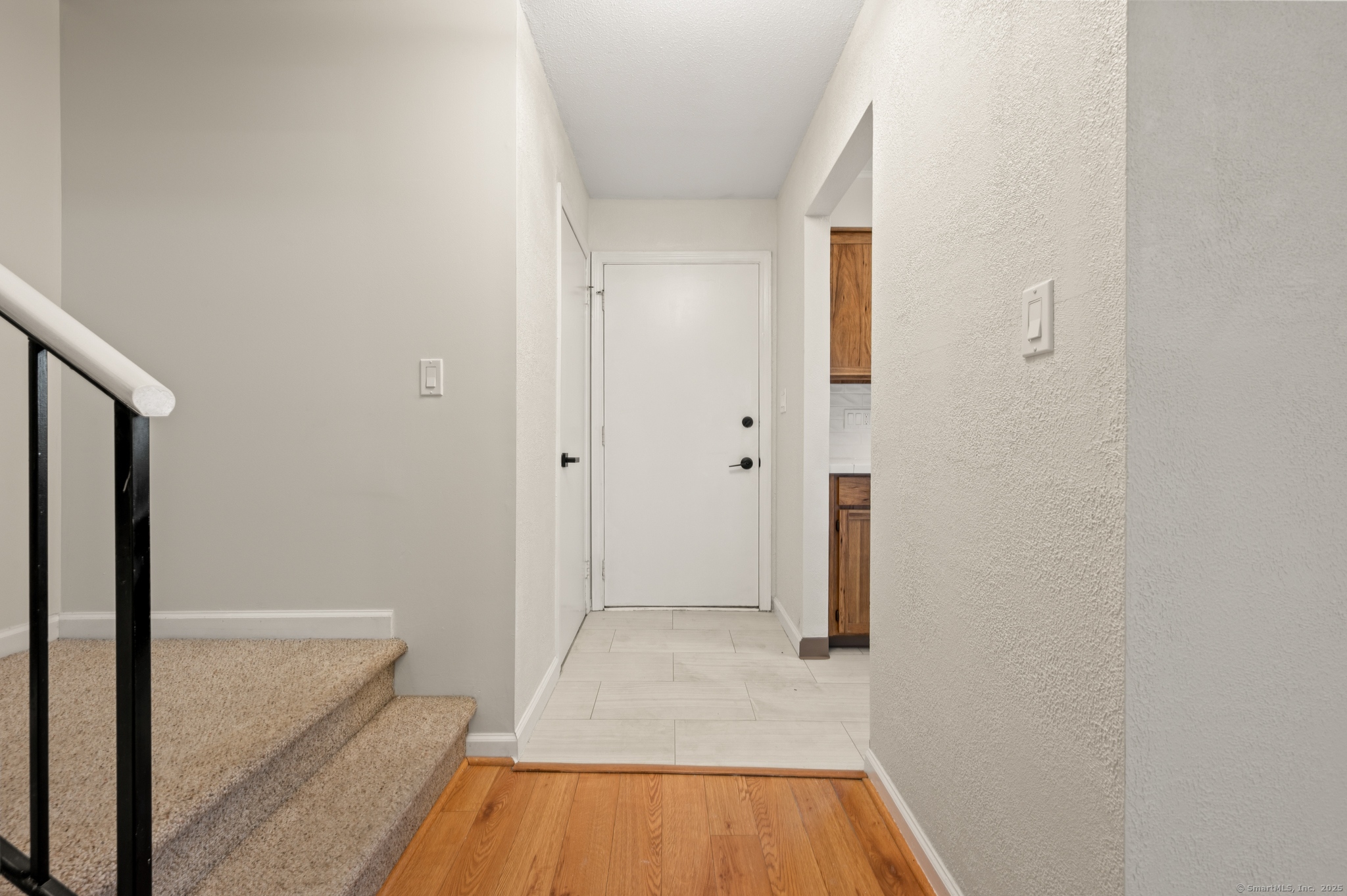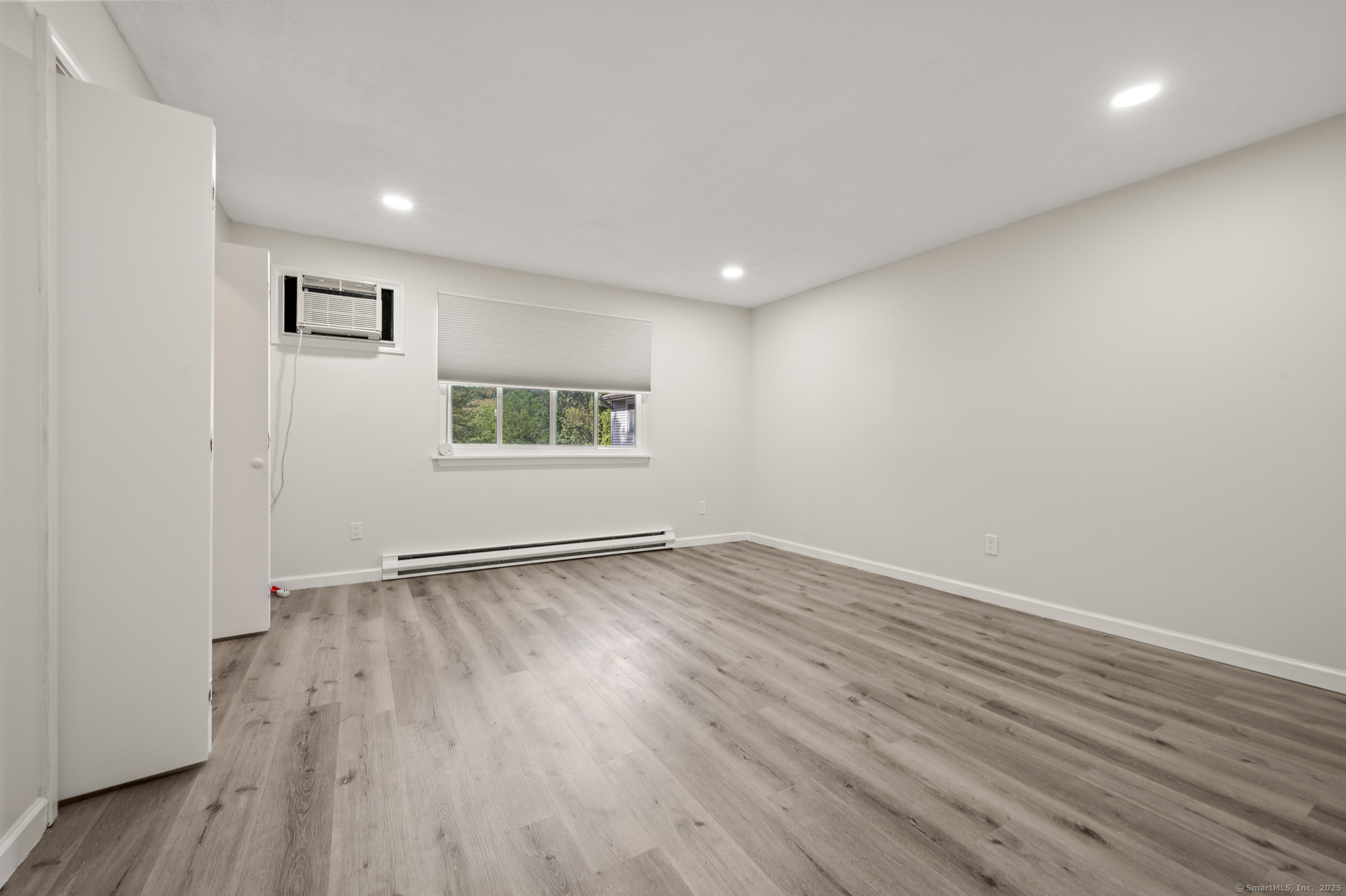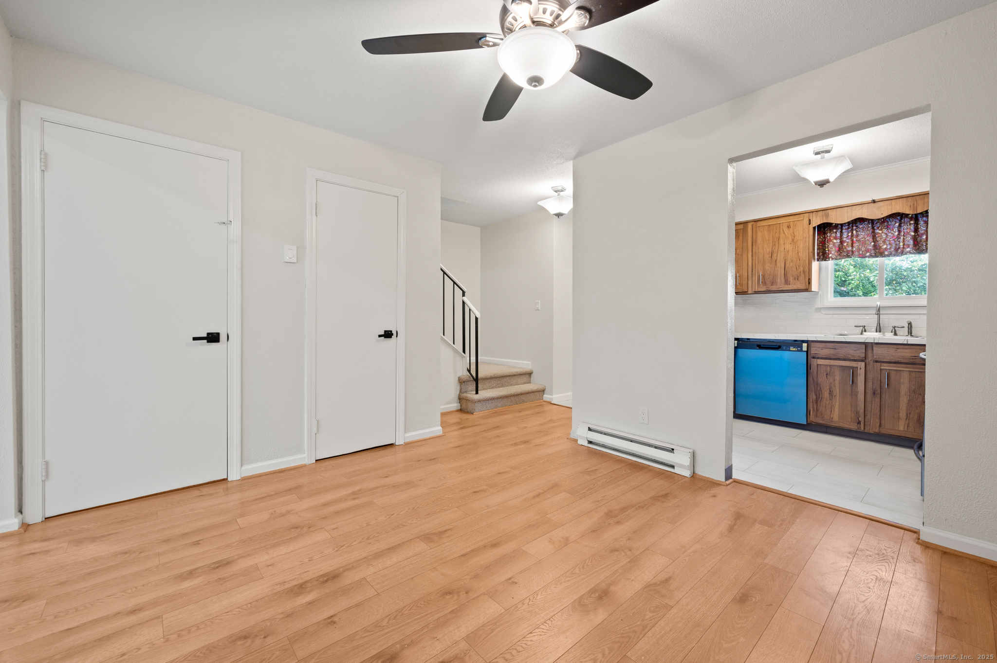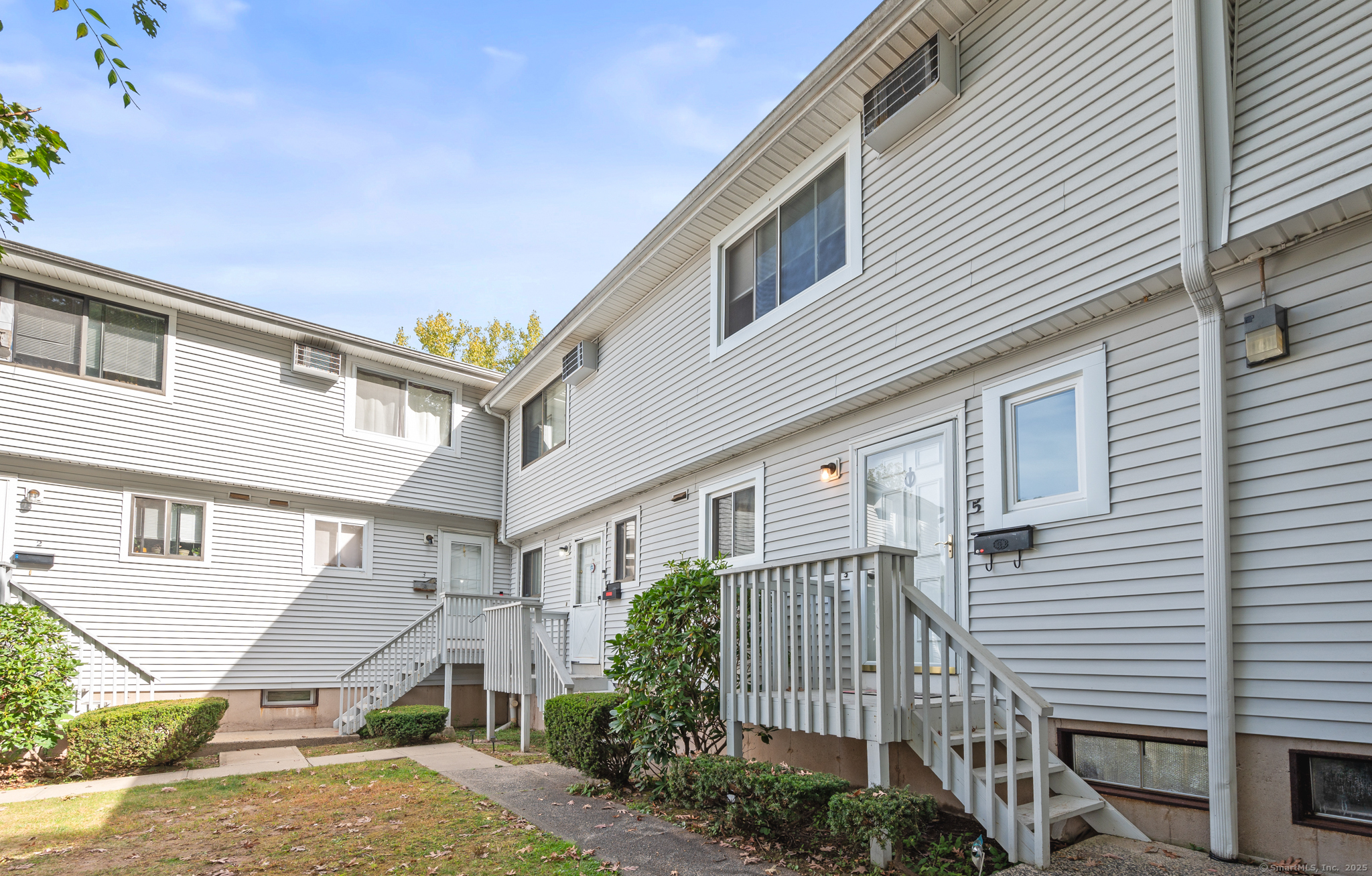 Come take a look at this spacious condo tucked away in the quiet neighborhood of East End of Waterbury offering 2 bedrooms, 1 full bath,1 half bath, kitchen with SS appliances, dining and living/family room, as well as a full finished basement for extra space and usage of your needs. As you enter the unit will notice new tile flooring, extended thru the updated kitchen, which includes all new SS appliances, cabinets with new hardware and new backsplash tiles. Dining area has a hardwood flooring, ceiling fan and is combined with the living area which has A/C wall unit and a newer sliding door, (installed in 2021 together with all windows) leading to the outside deck area. Upstairs you will find the full bath with new tiled floor as well as 2 bedrooms with LVT flooring. Primary bedroom has A/C wall unit. Need more space? The full finished basement has a lot of it, including laundry hookup area. New hardware, electrical switches are changed thru out the unit. Ready to move in as an owner occupant or to be rented out. Make your appointment today, easy to show!