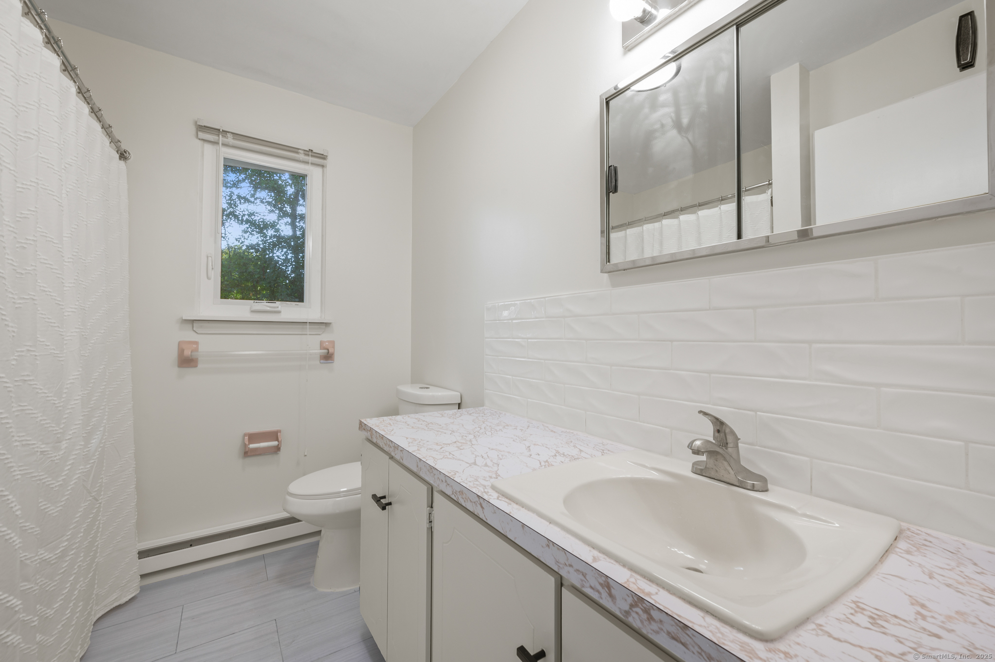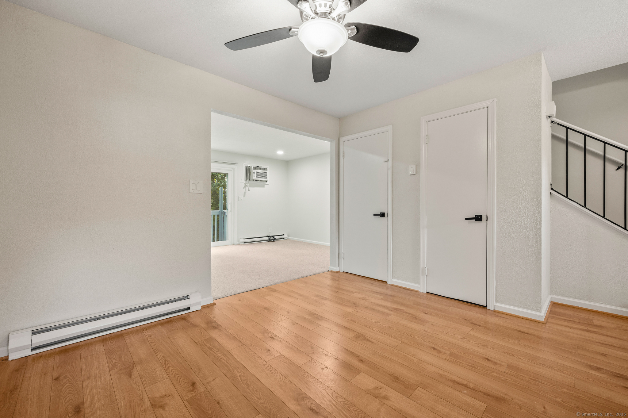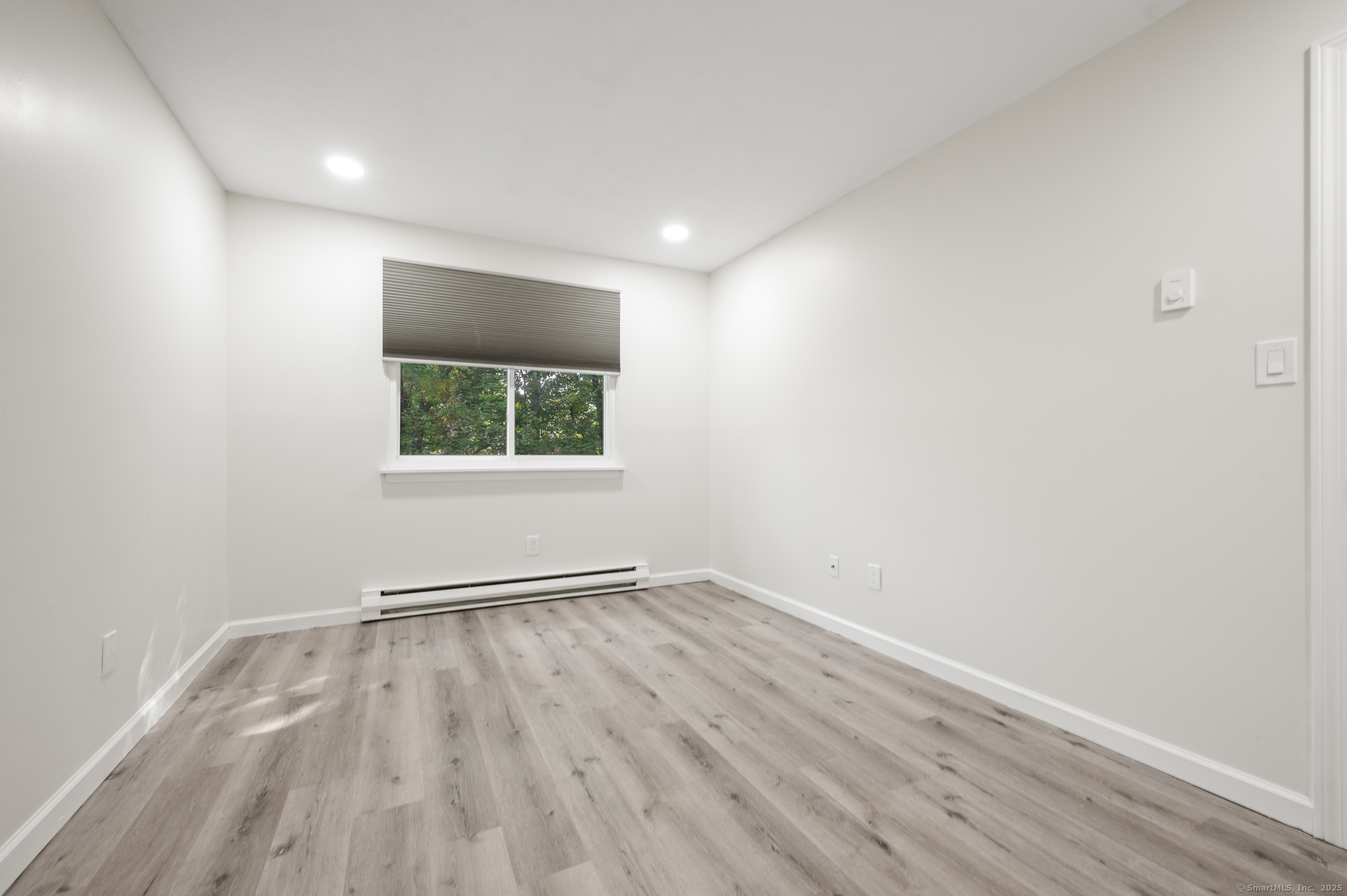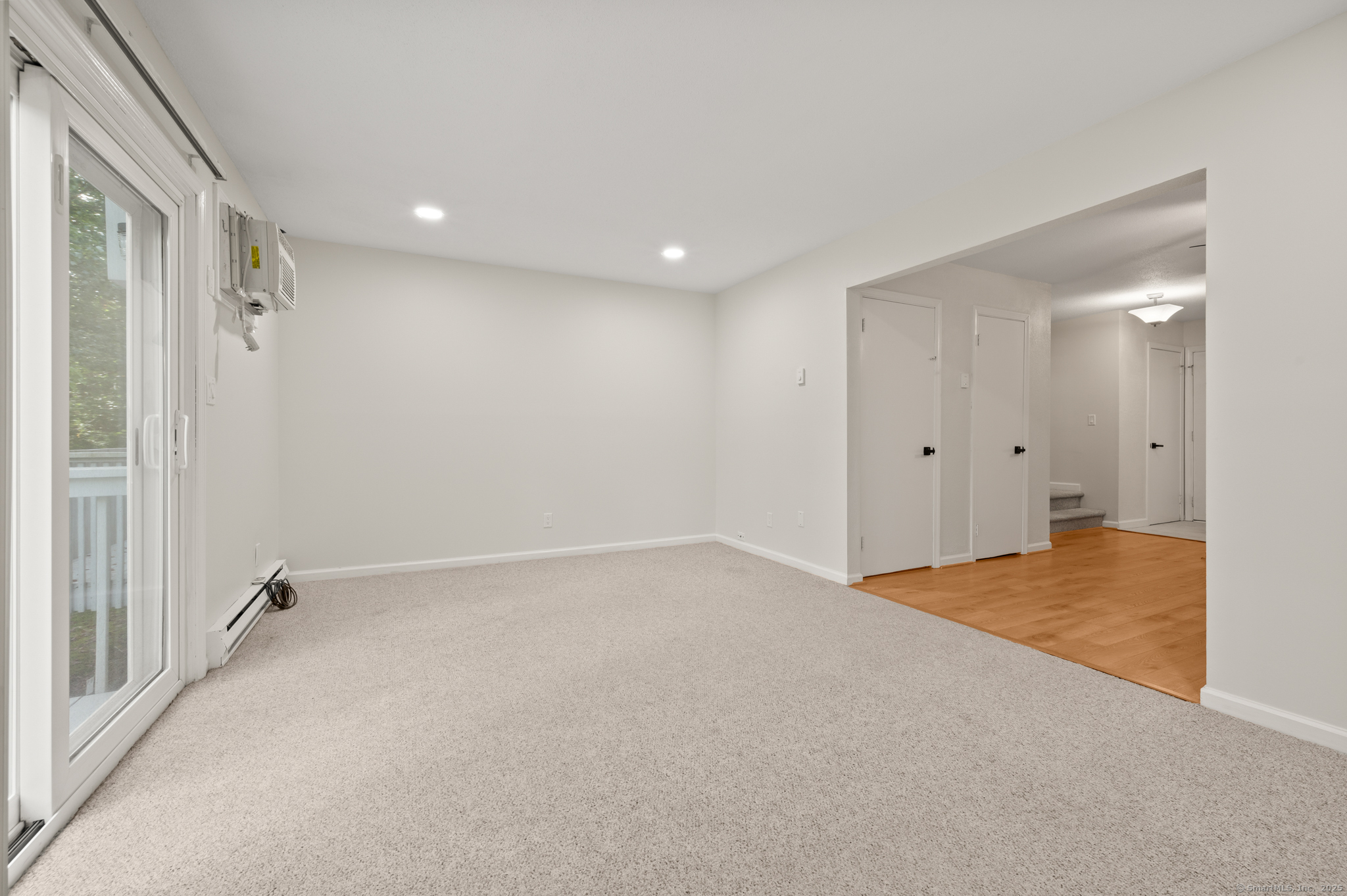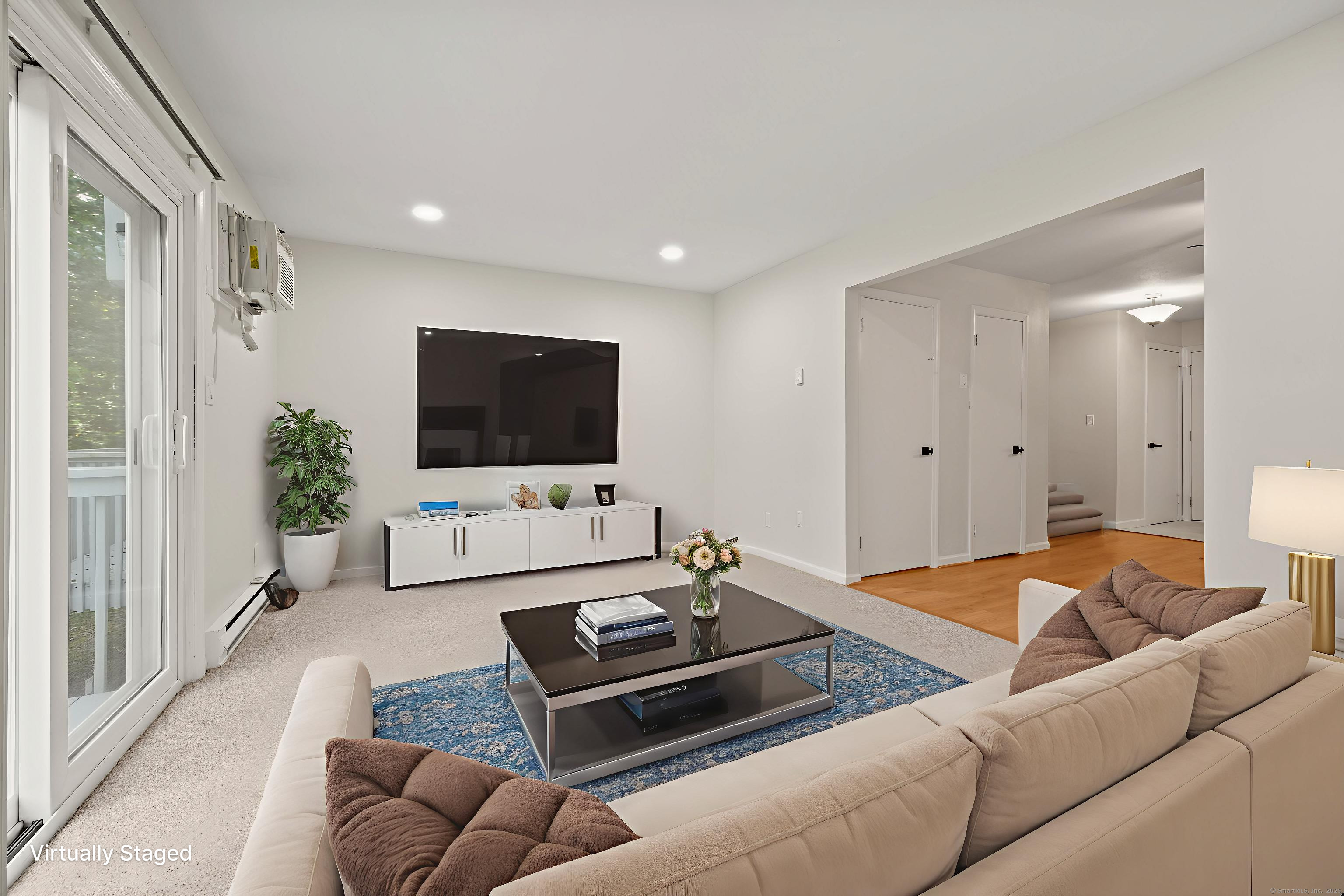 Come take a look at this spacious condo tucked away in the quiet neighborhood of East End of Waterbury offering 2 bedrooms, 1 full bath,1 half bath, kitchen with SS appliances, dining and living/family room, as well as a full finished basement for extra space and usage of your needs. As you enter the unit will notice new tile flooring, extended thru the updated kitchen, which includes all new SS appliances, cabinets with new hardware and new backsplash tiles. Dining area has a hardwood flooring, ceiling fan and is combined with the living area which has A/C wall unit and a newer sliding door, (installed in 2021 together with all windows) leading to the outside deck area. Upstairs you will find the full bath with new tiled floor as well as 2 bedrooms with LVT flooring. Primary bedroom has A/C wall unit. Need more space? The full finished basement has a lot of it, including laundry hookup area. New hardware, electrical switches are changed thru out the unit. Ready to move in as an owner occupant or to be rented out. Make your appointment today, easy to show!