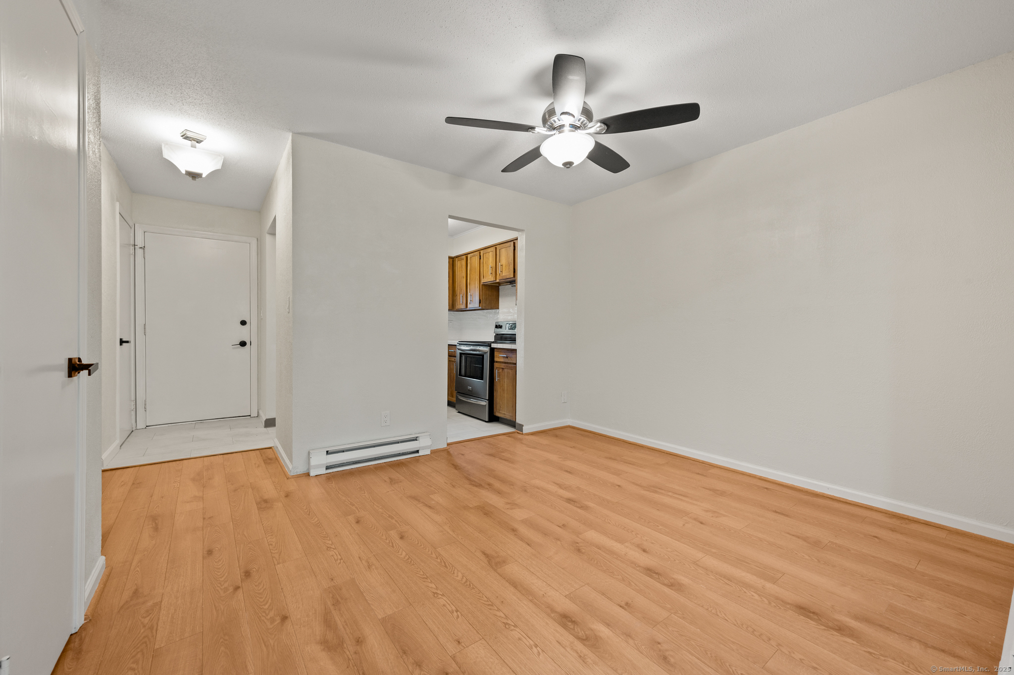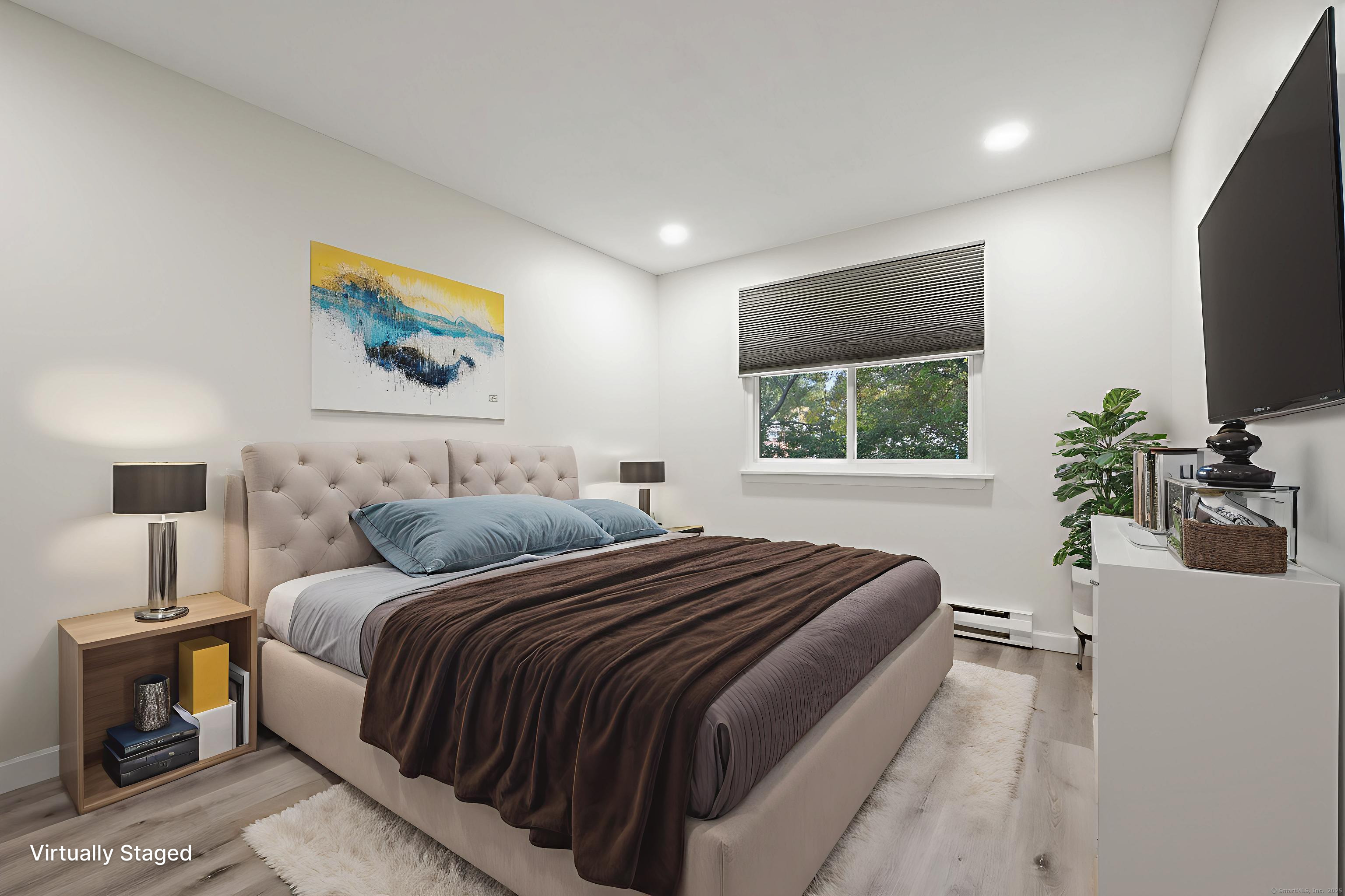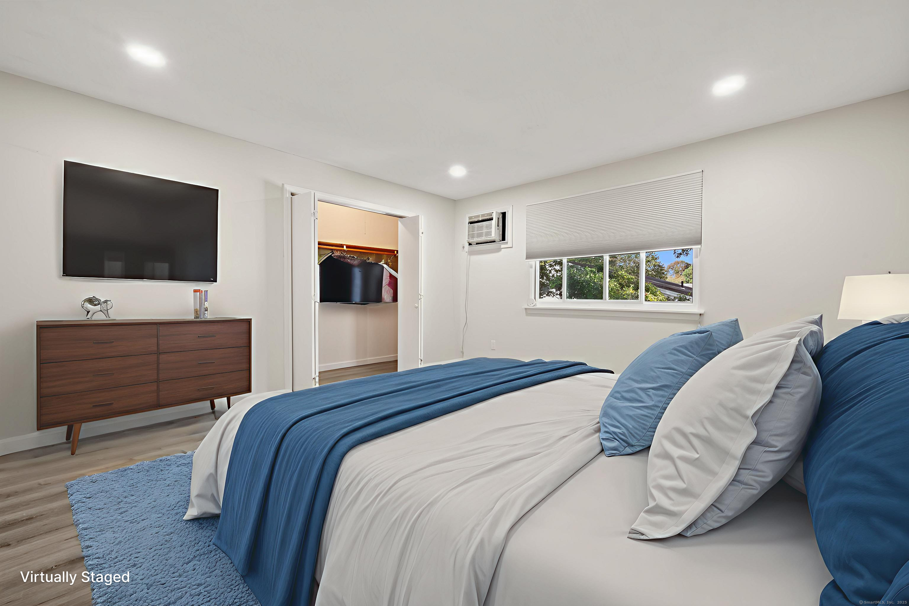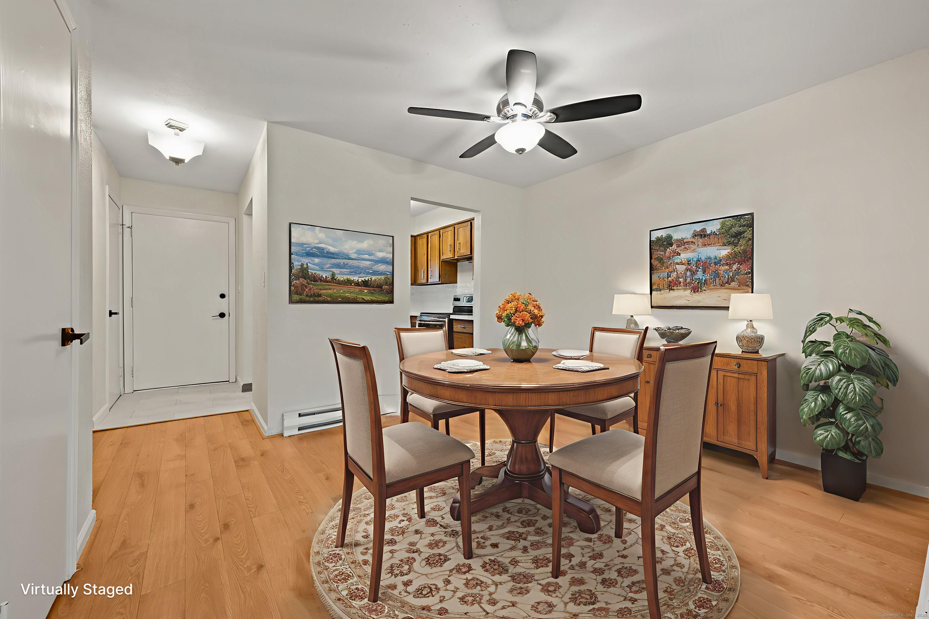 Come take a look at this spacious condo tucked away in the quiet neighborhood of East End of Waterbury offering 2 bedrooms, 1 full bath,1 half bath, kitchen with SS appliances, dining and living/family room, as well as a full finished basement for extra space and usage of your needs. As you enter the unit will notice new tile flooring, extended thru the updated kitchen, which includes all new SS appliances, cabinets with new hardware and new backsplash tiles. Dining area has a hardwood flooring, ceiling fan and is combined with the living area which has A/C wall unit and a newer sliding door, (installed in 2021 together with all windows) leading to the outside deck area. Upstairs you will find the full bath with new tiled floor as well as 2 bedrooms with LVT flooring. Primary bedroom has A/C wall unit. Need more space? The full finished basement has a lot of it, including laundry hookup area. New hardware, electrical switches are changed thru out the unit. Ready to move in as an owner occupant or to be rented out. Make your appointment today, easy to show!