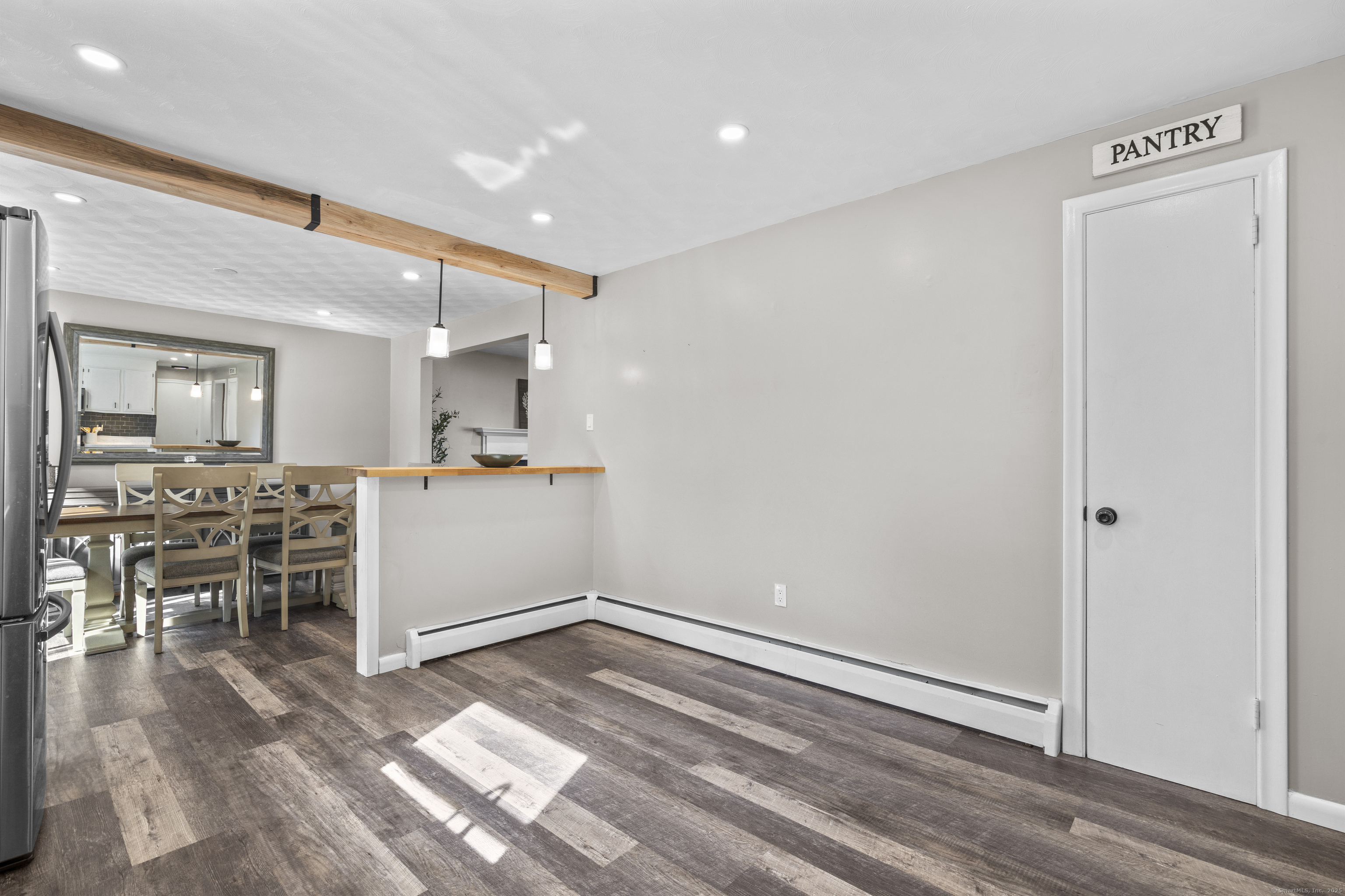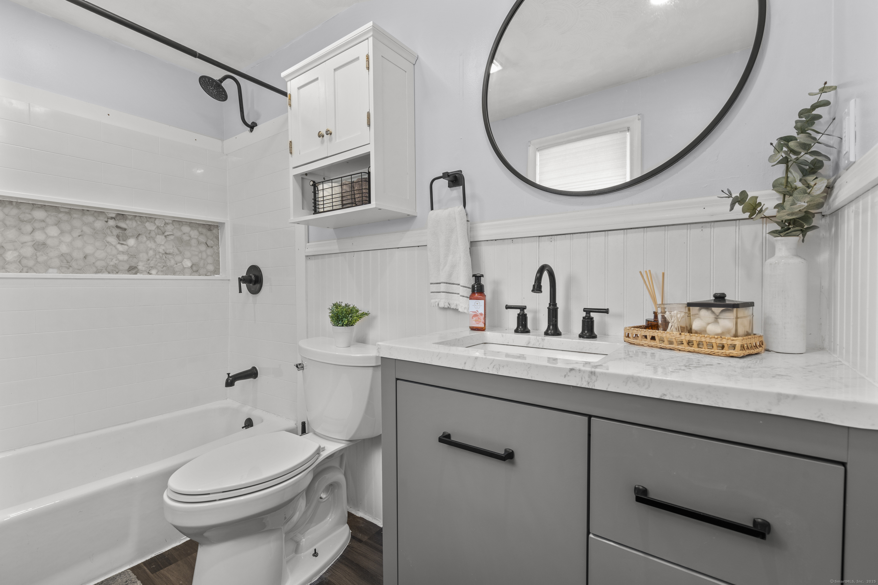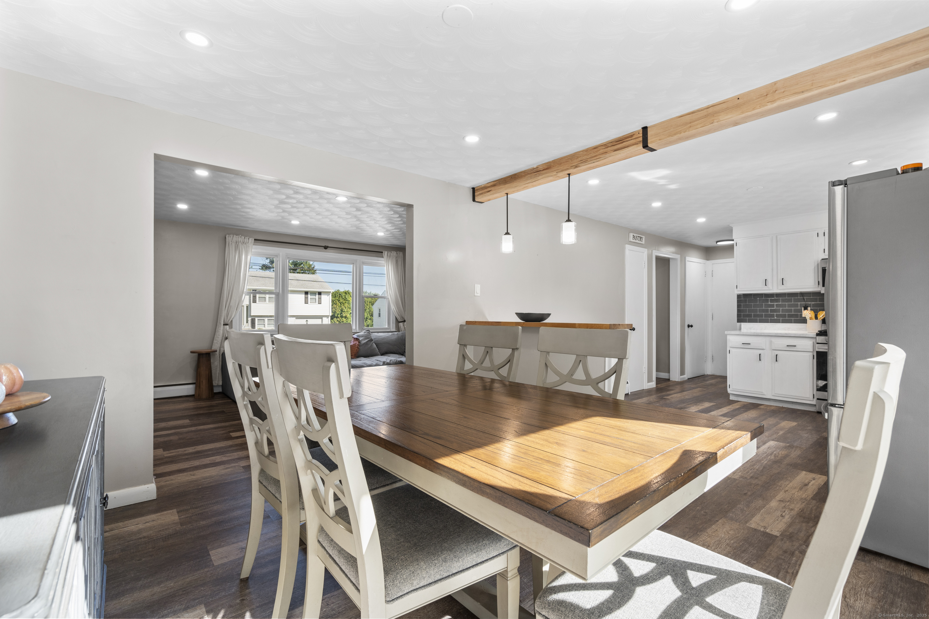 Welcome to 200 Belridge Road, a beautifully remodeled colonial in New Britain offering comfort, style, and modern upgrades throughout. This 3-bedroom, 1.5-bath home has been completely renovated on both the first and second floors, showcasing a blend of tasteful design and functional improvements. Step inside to find gleaming floors on both levels, with the first floor enhanced by wood-vinyl covering for a sleek, modern touch. The open living and dining areas flow seamlessly into a remodeled kitchen, where professionally installed recessed lighting with smart controls creates a warm, inviting atmosphere - a feature extended across the living room, dining room, kitchen, garage, and bedrooms. The living room is entertainment-ready, boasting a Samsung 77" OLED 4K UHD TV paired with a Dolby home theater sound system - included with the property. The master suite is highlighted by a sliding barn door that opens to a spacious walk-in closet, while both bathrooms have been fully updated with modern finishes. The clean, spacious basement with sump pump offers excellent storage and flexibility. Outside, the home continues to impress with an extended driveway that accommodates multiple vehicles and a fully fenced backyard, perfect for pets or private gatherings. Located in a desirable section of New Britain with easy access to schools, parks, and shopping, this home is move-in ready and packed with thoughtful upgrades that add real value.