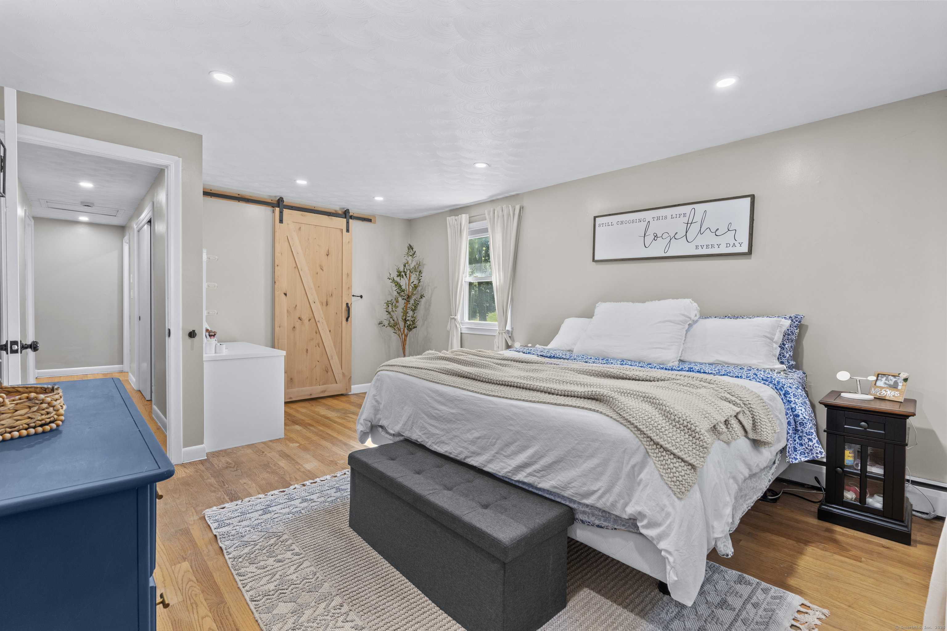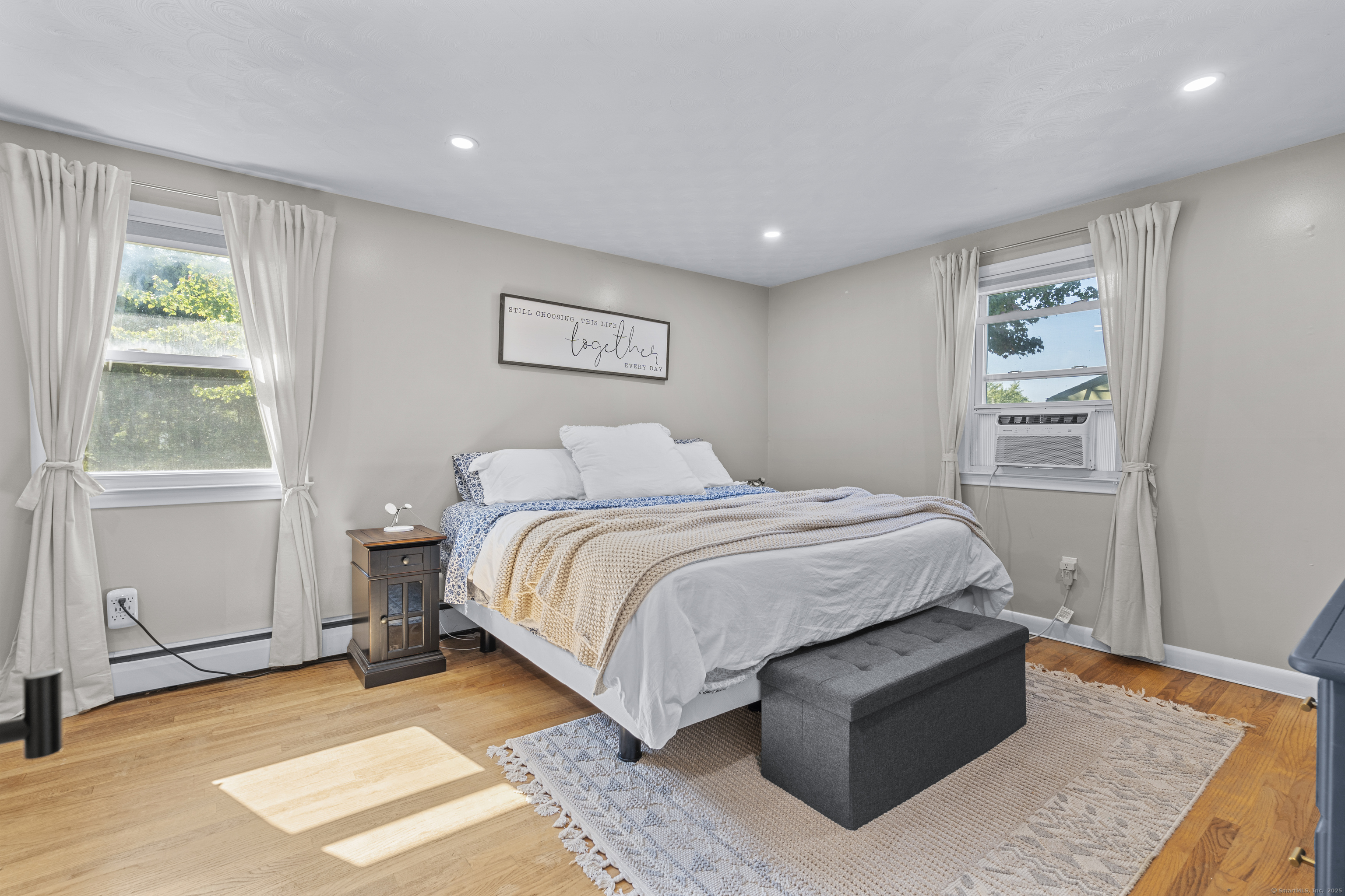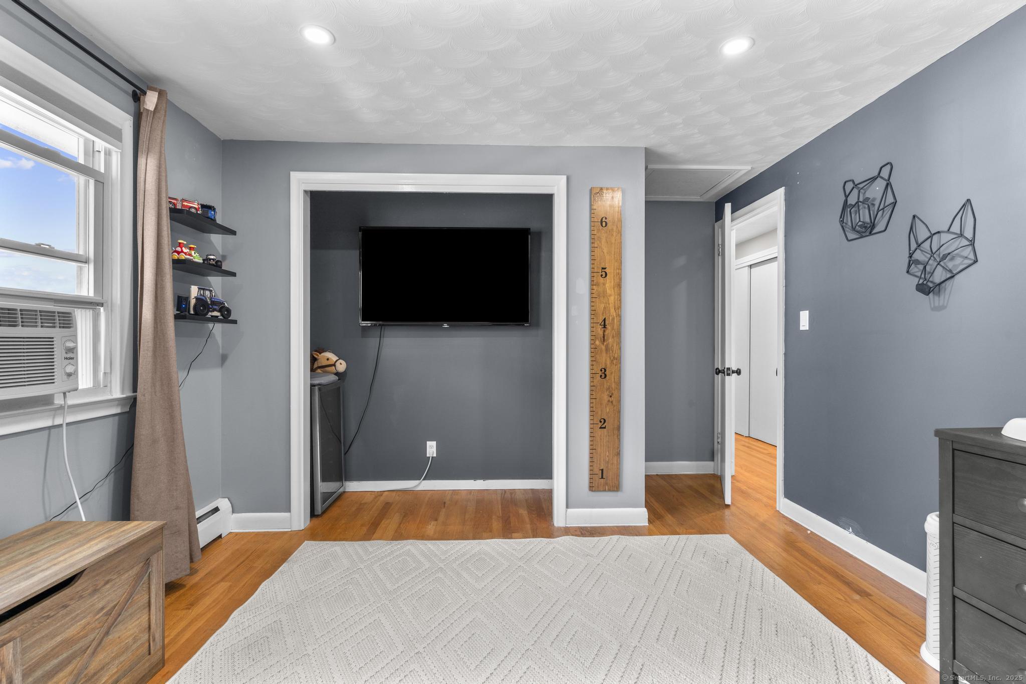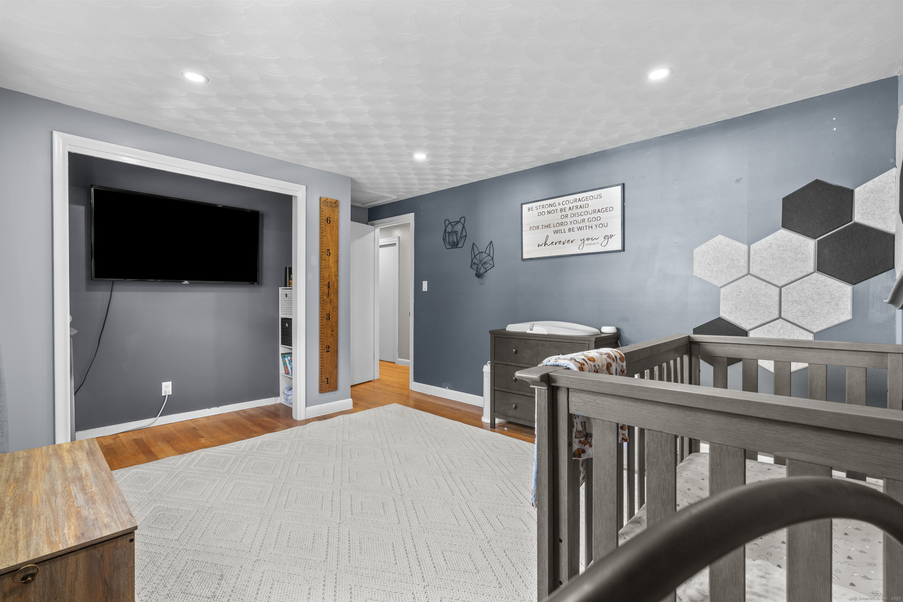 Welcome to 200 Belridge Road, a beautifully remodeled colonial in New Britain offering comfort, style, and modern upgrades throughout. This 3-bedroom, 1.5-bath home has been completely renovated on both the first and second floors, showcasing a blend of tasteful design and functional improvements. Step inside to find gleaming floors on both levels, with the first floor enhanced by wood-vinyl covering for a sleek, modern touch. The open living and dining areas flow seamlessly into a remodeled kitchen, where professionally installed recessed lighting with smart controls creates a warm, inviting atmosphere - a feature extended across the living room, dining room, kitchen, garage, and bedrooms. The living room is entertainment-ready, boasting a Samsung 77" OLED 4K UHD TV paired with a Dolby home theater sound system - included with the property. The master suite is highlighted by a sliding barn door that opens to a spacious walk-in closet, while both bathrooms have been fully updated with modern finishes. The clean, spacious basement with sump pump offers excellent storage and flexibility. Outside, the home continues to impress with an extended driveway that accommodates multiple vehicles and a fully fenced backyard, perfect for pets or private gatherings. Located in a desirable section of New Britain with easy access to schools, parks, and shopping, this home is move-in ready and packed with thoughtful upgrades that add real value.