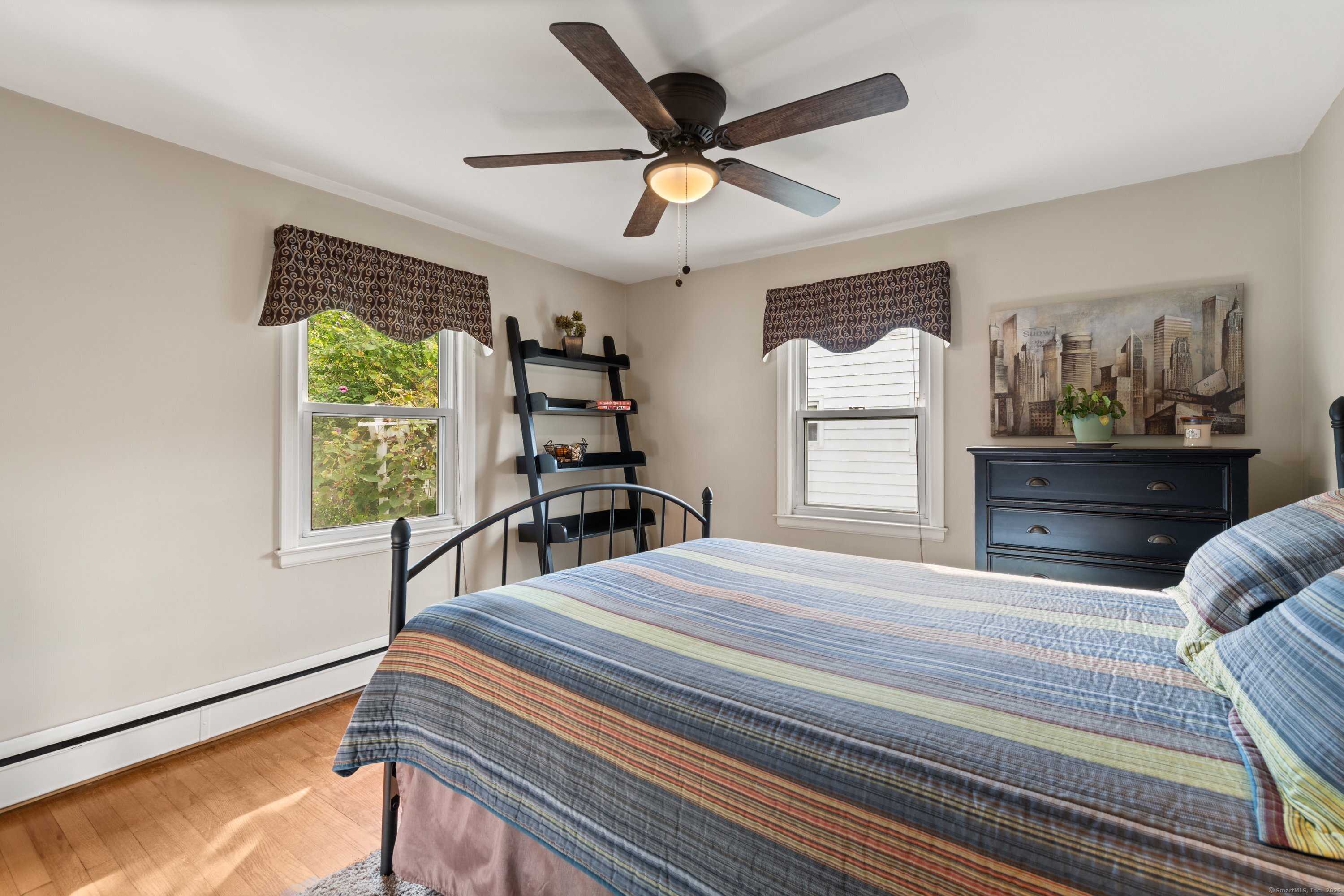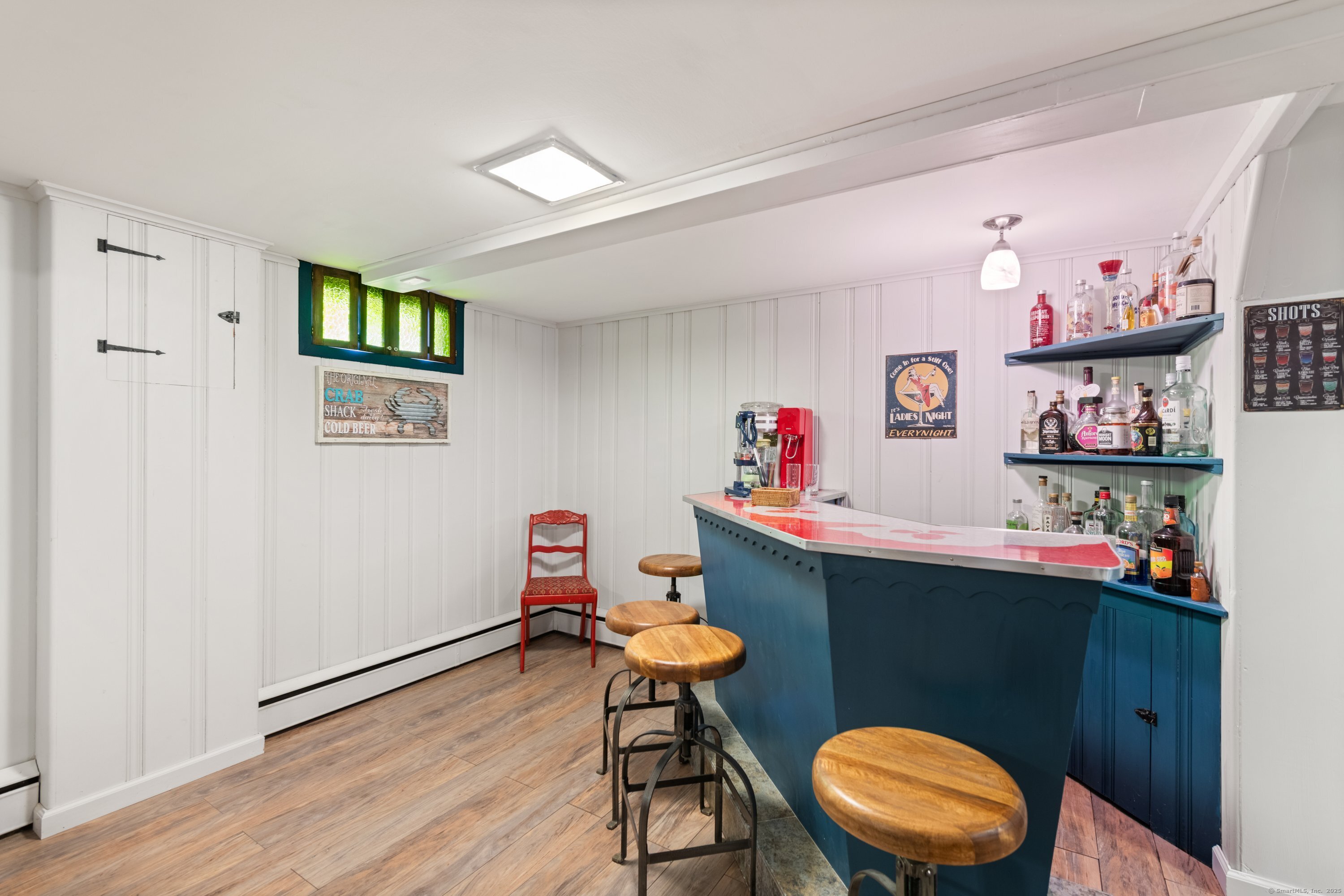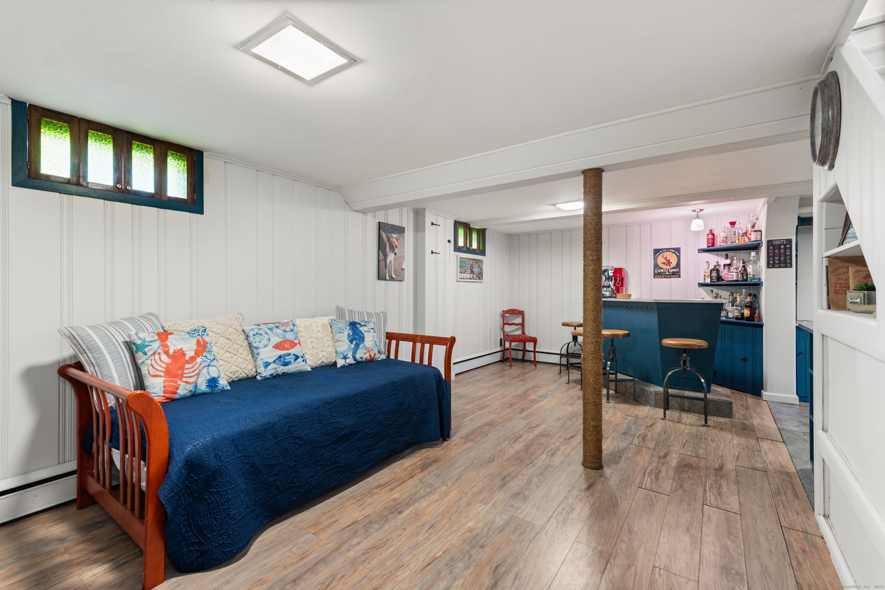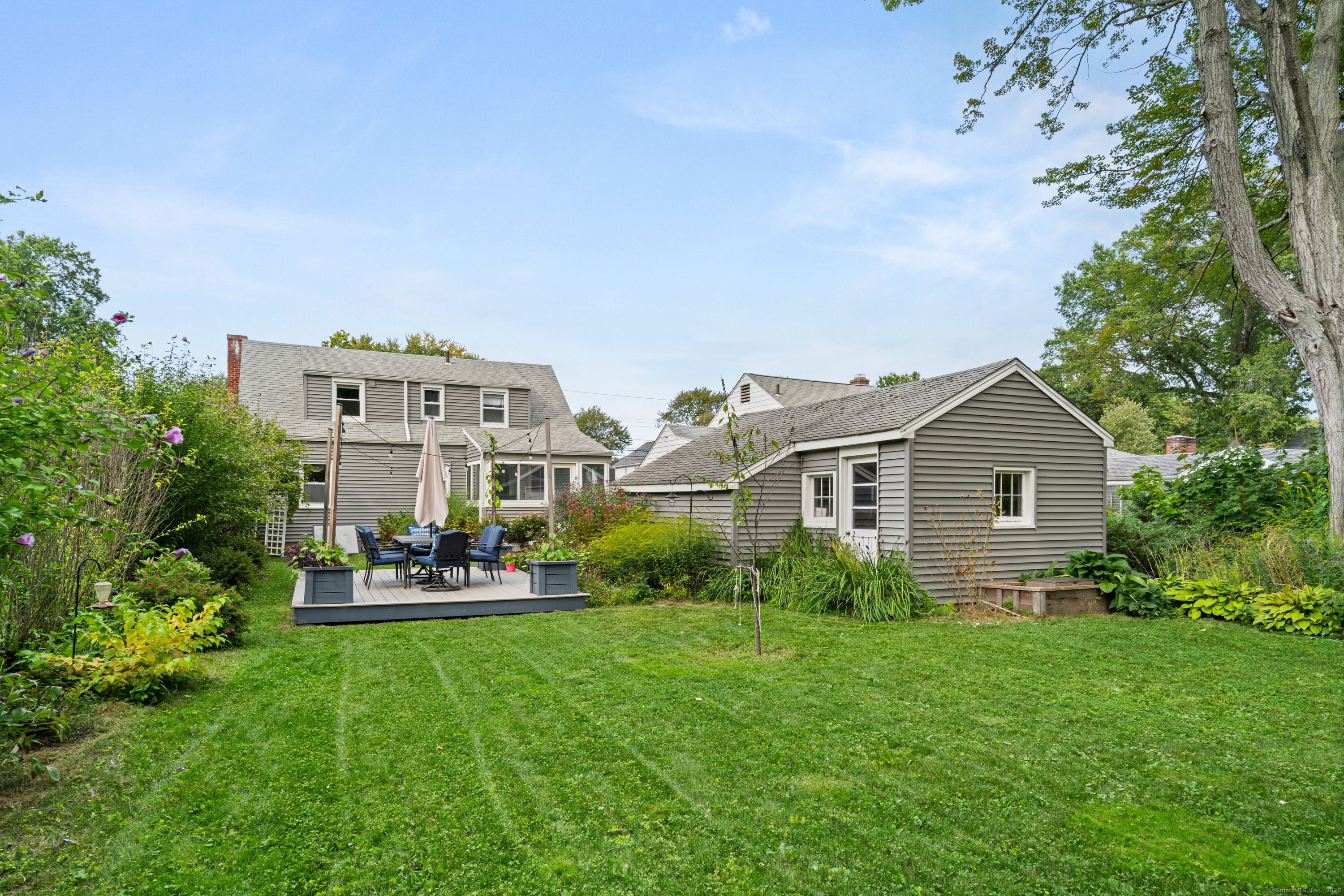Nestled within the coveted enclave of West Hartford, this meticulously reimagined two-bed, two-bath home embodies the perfect blend of modern & timeless charm. Thoughtfully curated living space has undergone a comprehensive transformation over the past decade and has the potential for one and/or two more additional bedrooms and/or extra living space. The heart of the home includes a gourmet eat-in kitchen that showcases granite countertops, subway tile backsplashes, and premium appliances, including a double oven/range-because sometimes one isn't enough for the culinary enthusiasts!! The primary bedroom & full bath are on the first floor for extra convenience. Host holiday dinners with ease or cozy up by the wood-burning fireplace on chilly New England fall nights. Both bathrooms in the home have been fully updated, featuring marble, subway tile work, and custom wood cabinetry. An additional 180sq ft of second-floor unfinished space awaits your creative vision, complete with insulation, electrical w/ access to plumbing. Infrastructure is ready for effortless expansion. The partially finished basement serves as your personal sanctuary, featuring a custom bar, laundry room, and currently serves as a home gym w/storage space. Step outside to discover your private outdoor oasis. Trex deck overlooking flourishing fruit trees, established gardens, and a serene koi pond that whispers tranquility.. Additional updates include...