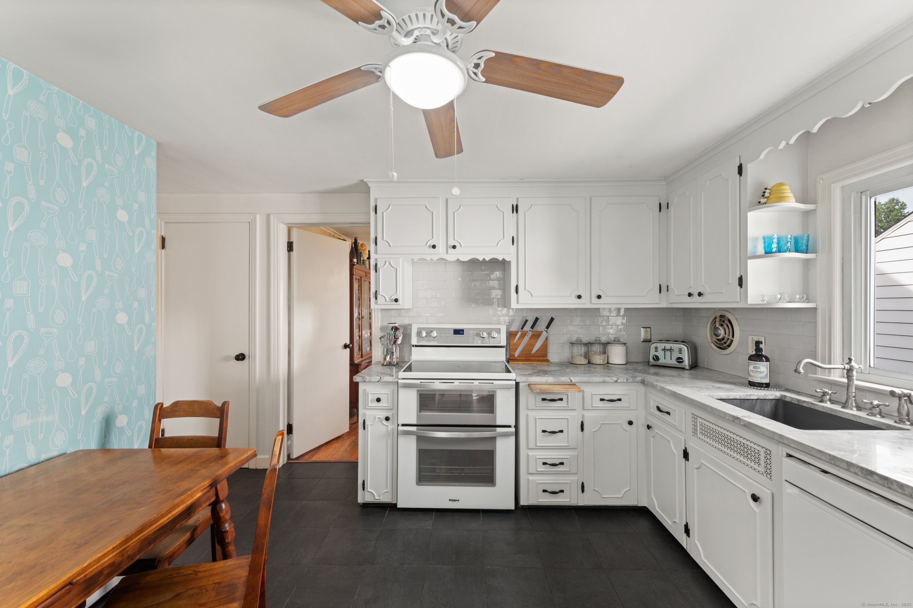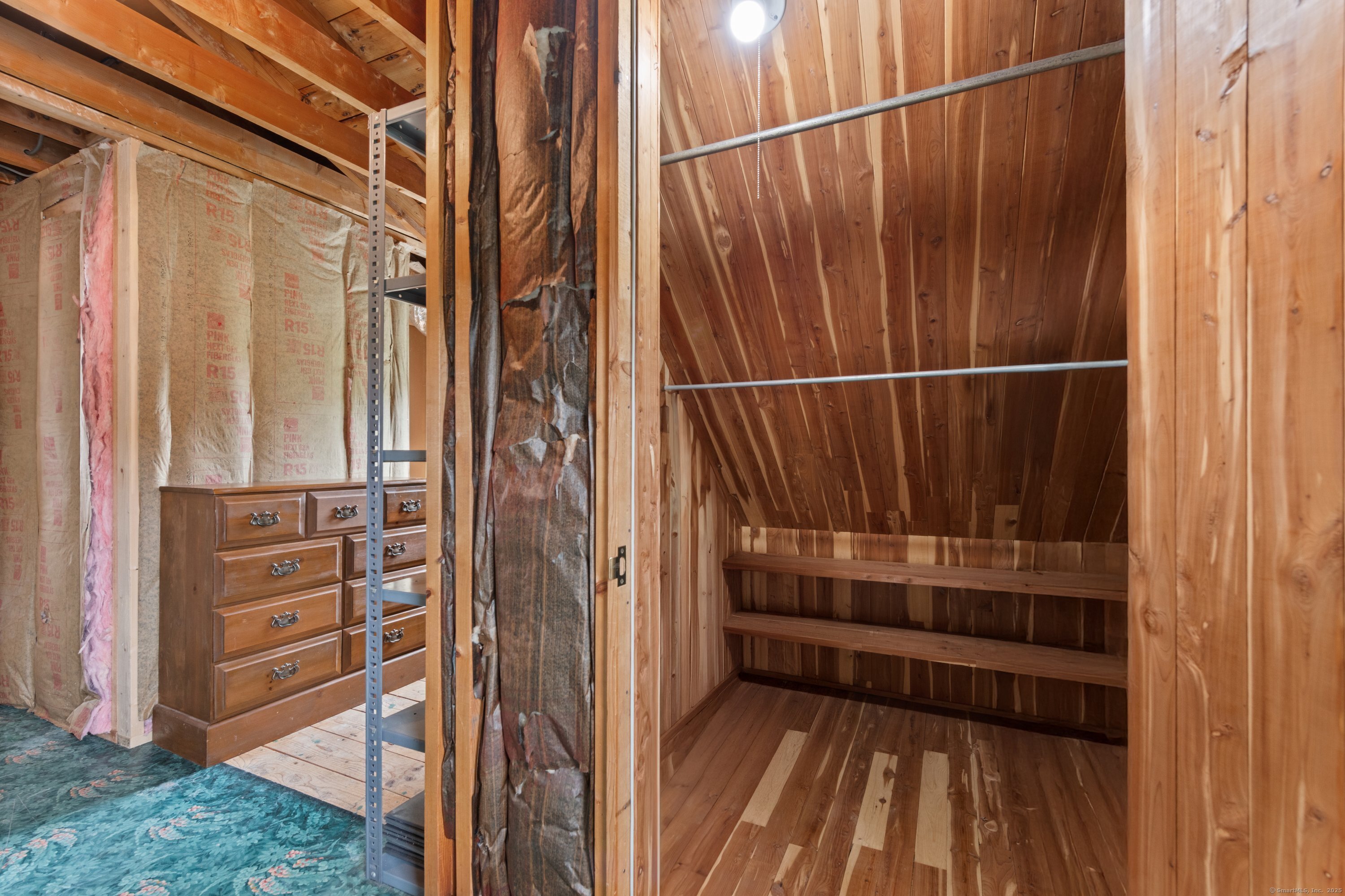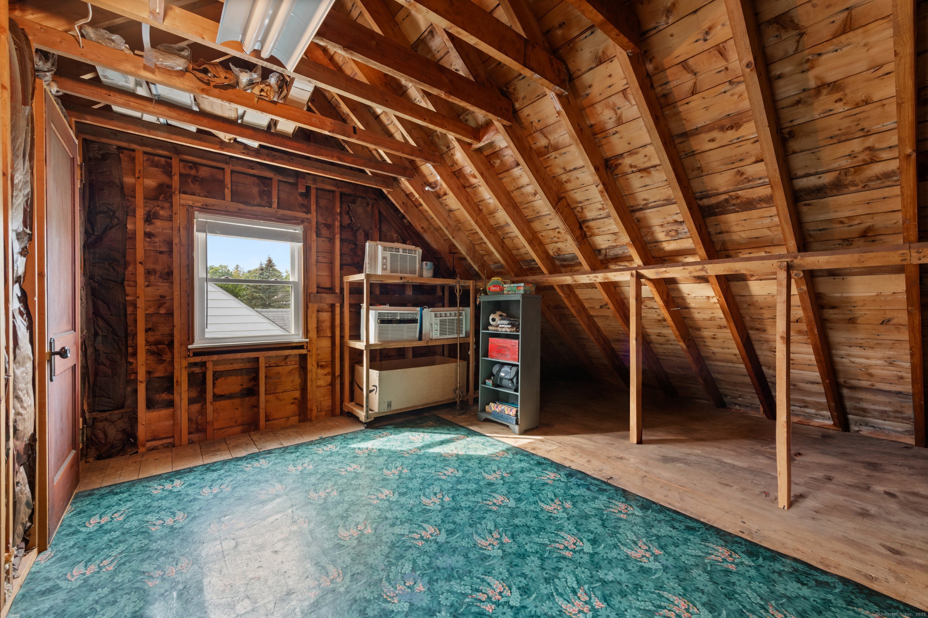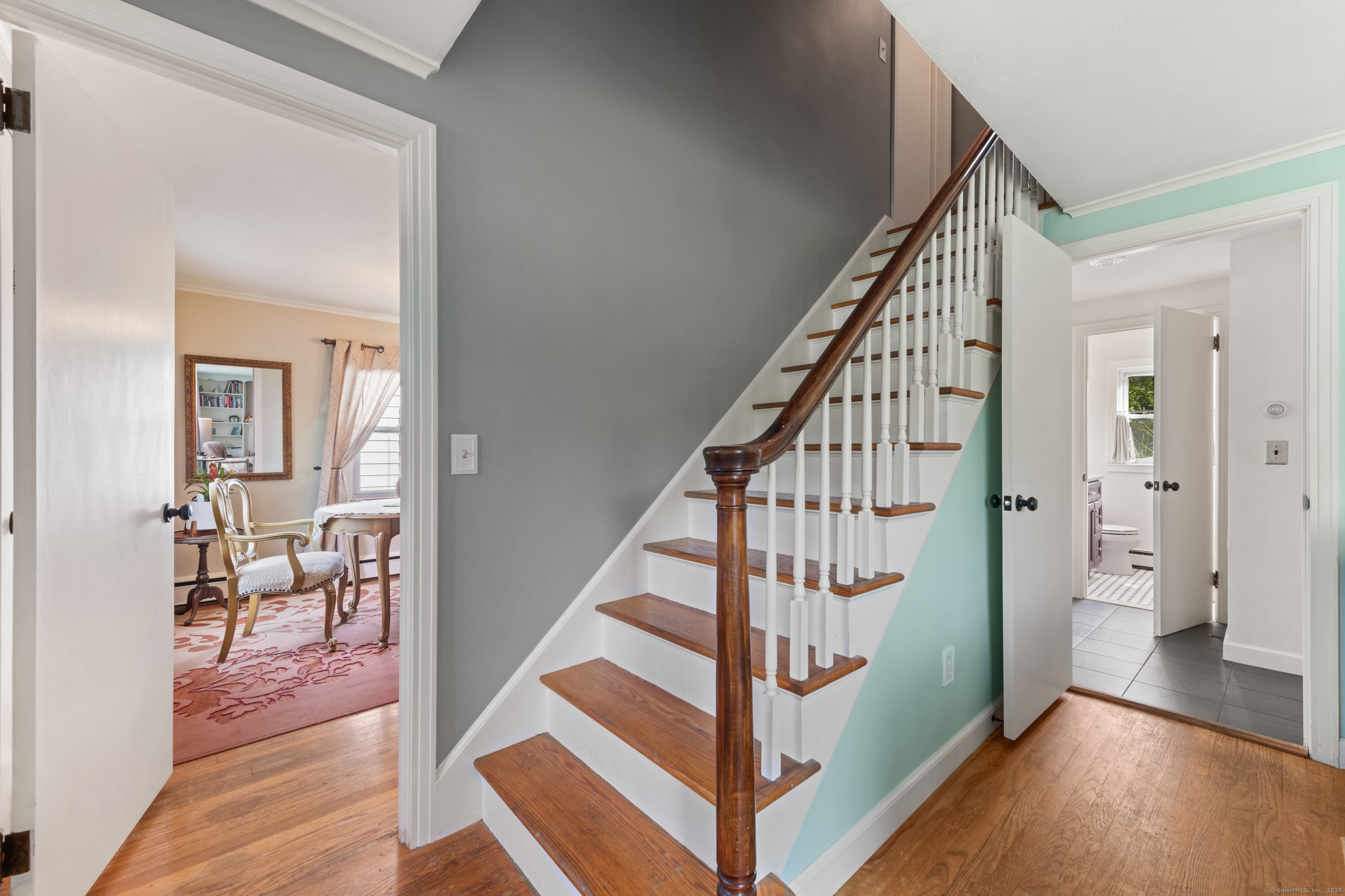 Nestled within the coveted enclave of West Hartford, this meticulously reimagined two-bed, two-bath home embodies the perfect blend of modern & timeless charm. Thoughtfully curated living space has undergone a comprehensive transformation over the past decade and has the potential for one and/or two more additional bedrooms and/or extra living space. The heart of the home includes a gourmet eat-in kitchen that showcases granite countertops, subway tile backsplashes, and premium appliances, including a double oven/range-because sometimes one isn't enough for the culinary enthusiasts!! The primary bedroom & full bath are on the first floor for extra convenience. Host holiday dinners with ease or cozy up by the wood-burning fireplace on chilly New England fall nights. Both bathrooms in the home have been fully updated, featuring marble, subway tile work, and custom wood cabinetry. An additional 180sq ft of second-floor unfinished space awaits your creative vision, complete with insulation, electrical w/ access to plumbing. Infrastructure is ready for effortless expansion. The partially finished basement serves as your personal sanctuary, featuring a custom bar, laundry room, and currently serves as a home gym w/storage space. Step outside to discover your private outdoor oasis. Trex deck overlooking flourishing fruit trees, established gardens, and a serene koi pond that whispers tranquility.. Additional updates include...