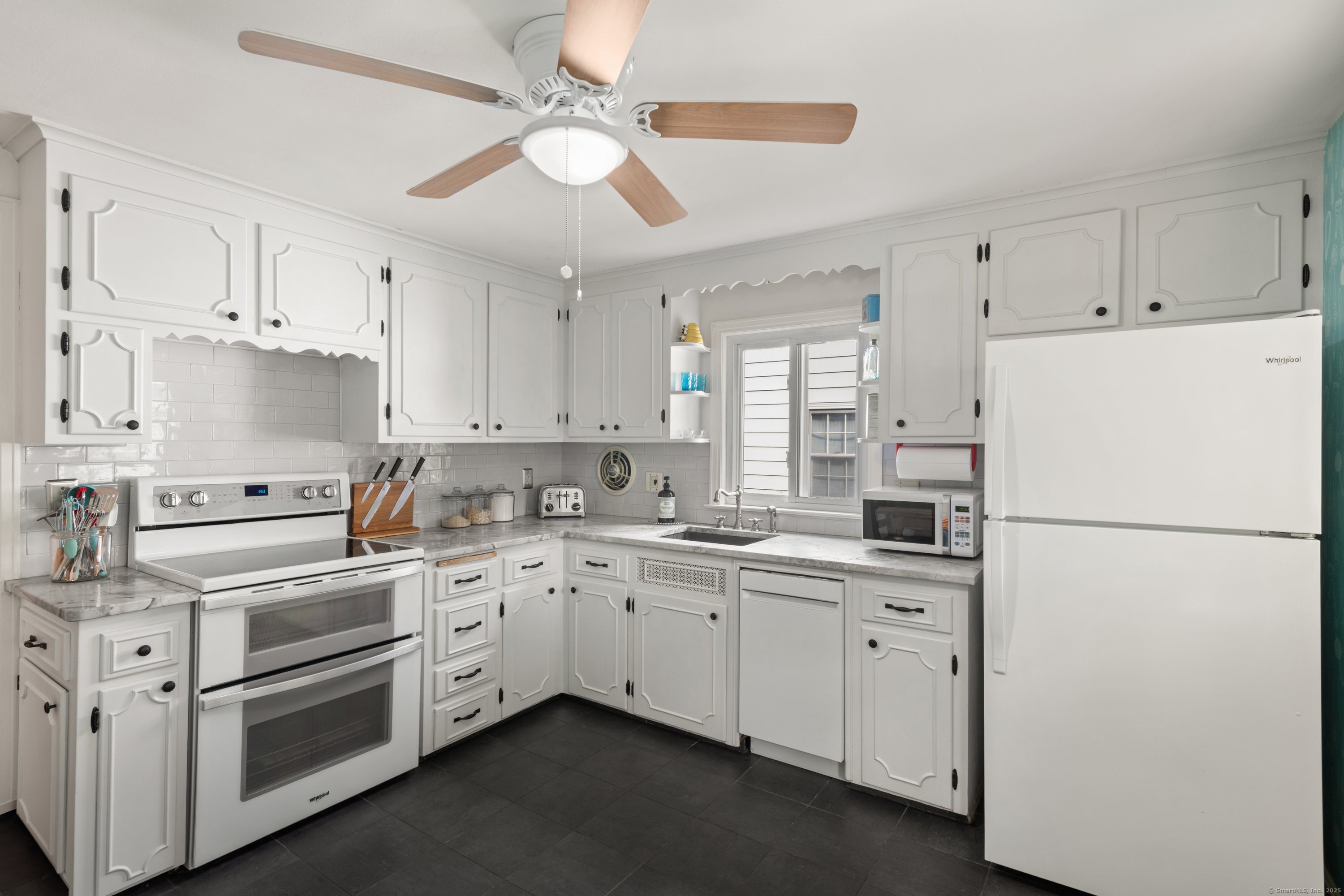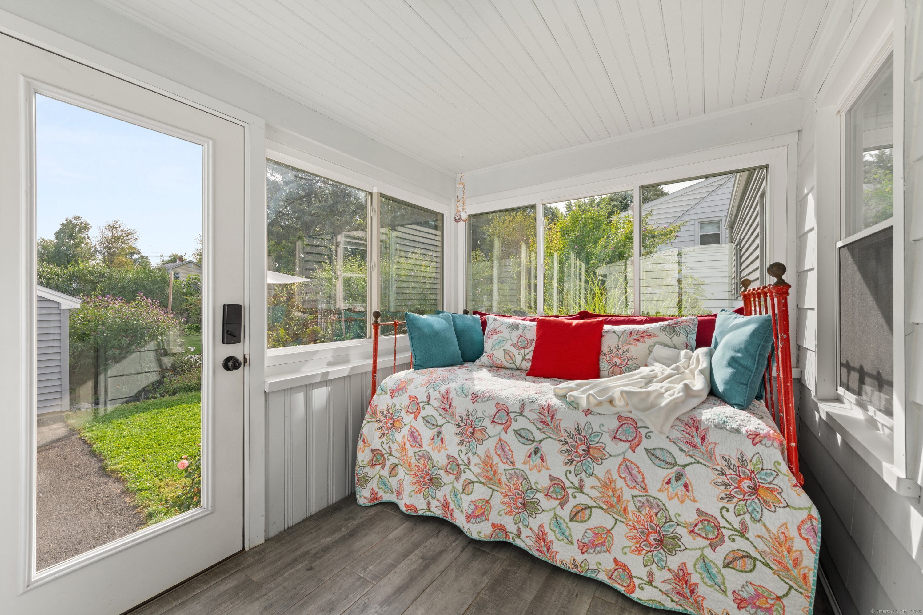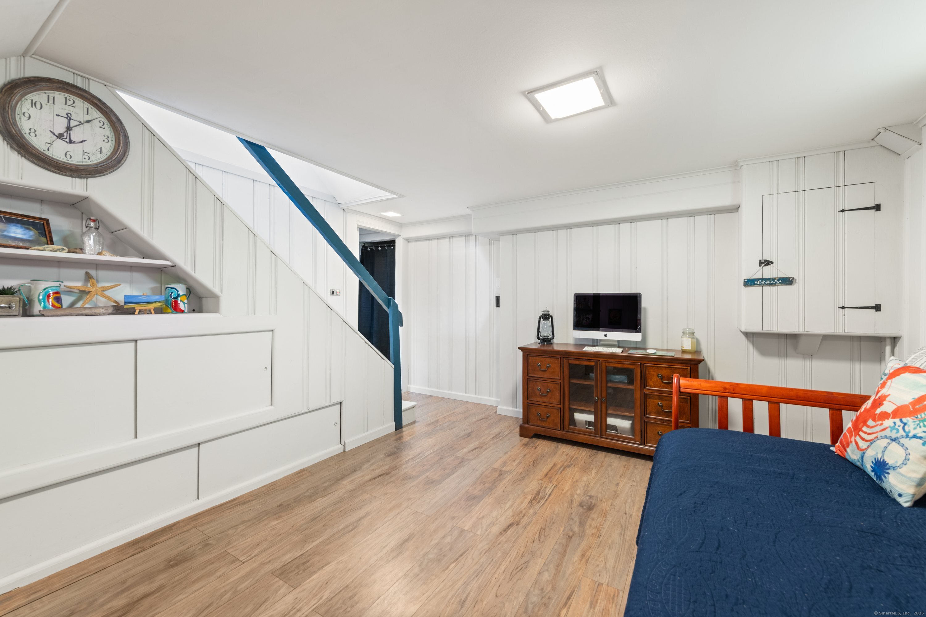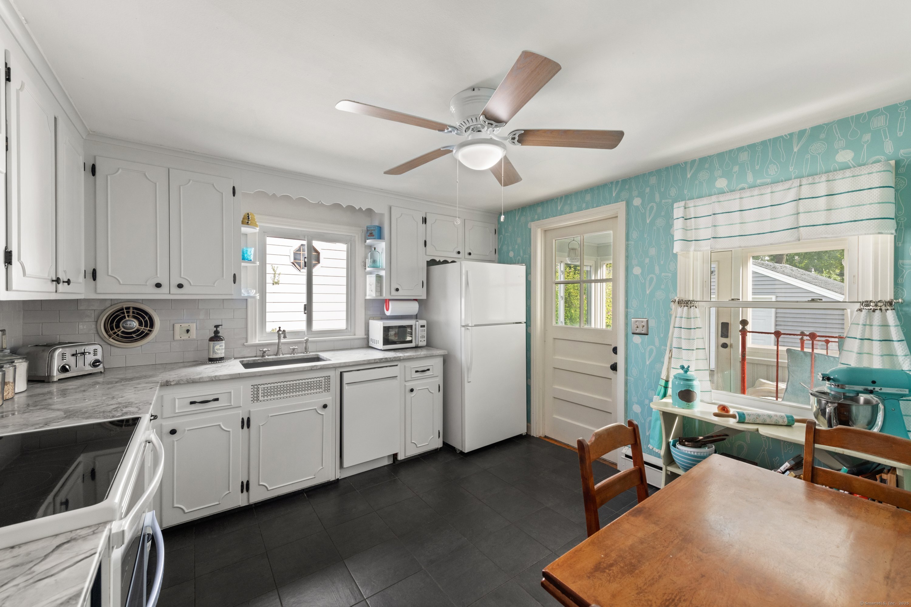 Nestled within the coveted enclave of West Hartford, this meticulously reimagined two-bed, two-bath home embodies the perfect blend of modern & timeless charm. Thoughtfully curated living space has undergone a comprehensive transformation over the past decade and has the potential for one and/or two more additional bedrooms and/or extra living space. The heart of the home includes a gourmet eat-in kitchen that showcases granite countertops, subway tile backsplashes, and premium appliances, including a double oven/range-because sometimes one isn't enough for the culinary enthusiasts!! The primary bedroom & full bath are on the first floor for extra convenience. Host holiday dinners with ease or cozy up by the wood-burning fireplace on chilly New England fall nights. Both bathrooms in the home have been fully updated, featuring marble, subway tile work, and custom wood cabinetry. An additional 180sq ft of second-floor unfinished space awaits your creative vision, complete with insulation, electrical w/ access to plumbing. Infrastructure is ready for effortless expansion. The partially finished basement serves as your personal sanctuary, featuring a custom bar, laundry room, and currently serves as a home gym w/storage space. Step outside to discover your private outdoor oasis. Trex deck overlooking flourishing fruit trees, established gardens, and a serene koi pond that whispers tranquility.. Additional updates include...