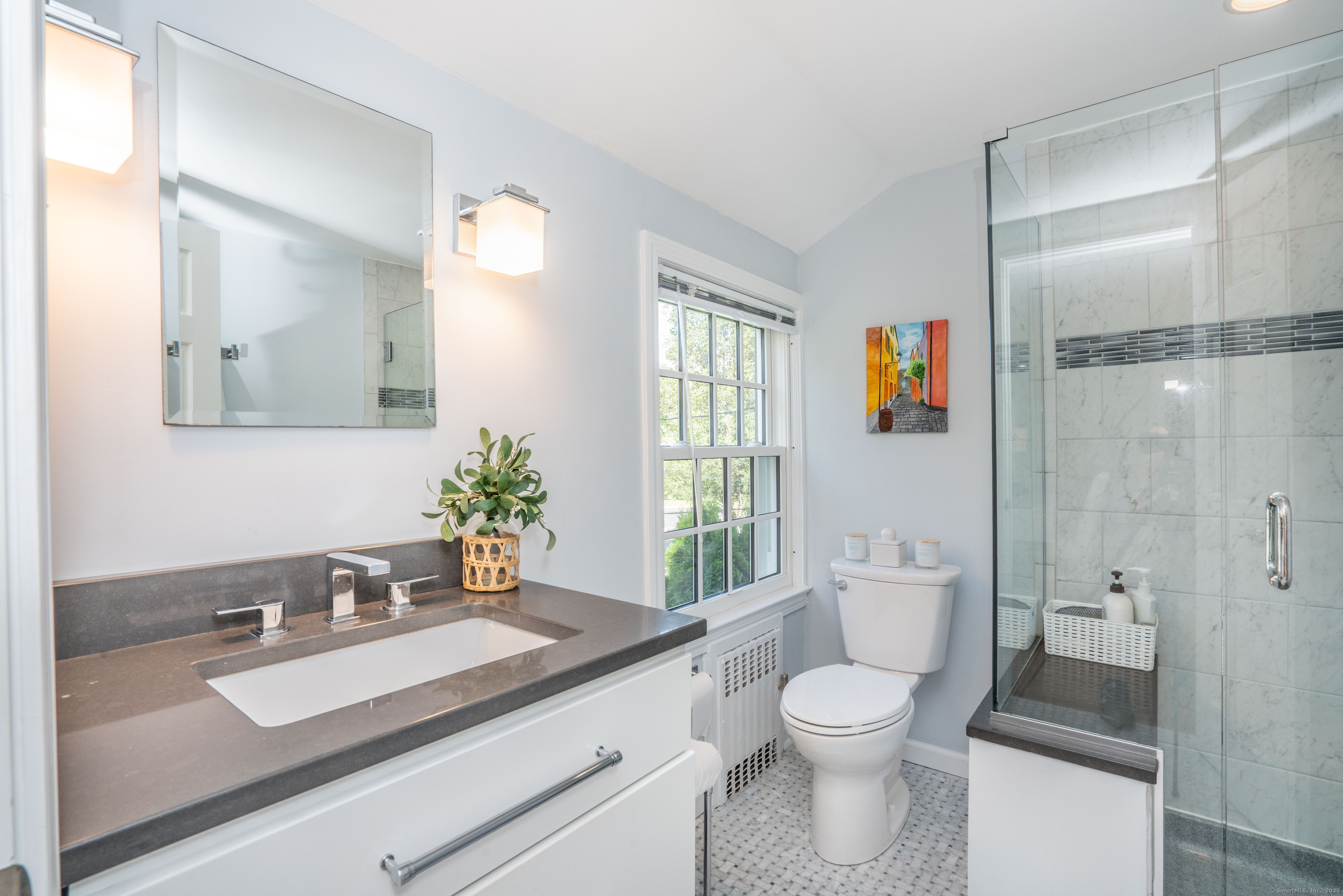 Step into this picture perfect blend of classic New England character and fresh modern updates in this completely renovated Colonial just 5 mins from West Hartford Center. With a light breezy feel that echoes a Nantucket beach house, this home offers calming, coastal inspired atmosphere paired with the elegance of timeless architecture. Inside, you'll find a gorgeous new kitchen, beautifully remodeled bathrooms, and gorgeous brand new windows that bathe every room in natural light. The home features 3 Bedrooms plus a charming upper level office -ideal for working from home or creating a cozy reading nook. The primary bedroom is a wonderful retreat with a spacious layout and a lovely en-suite bath. Relax and unwind on the fabulous back screened in porch, perfect for late summer evenings or crisp fall mornings, and enjoy movie nights, game days, or a home gym in the versatile finished lower level! Come see this beautiful "mini escape" where you can walk to the town swimming pool, ice rink, golf course or art league!