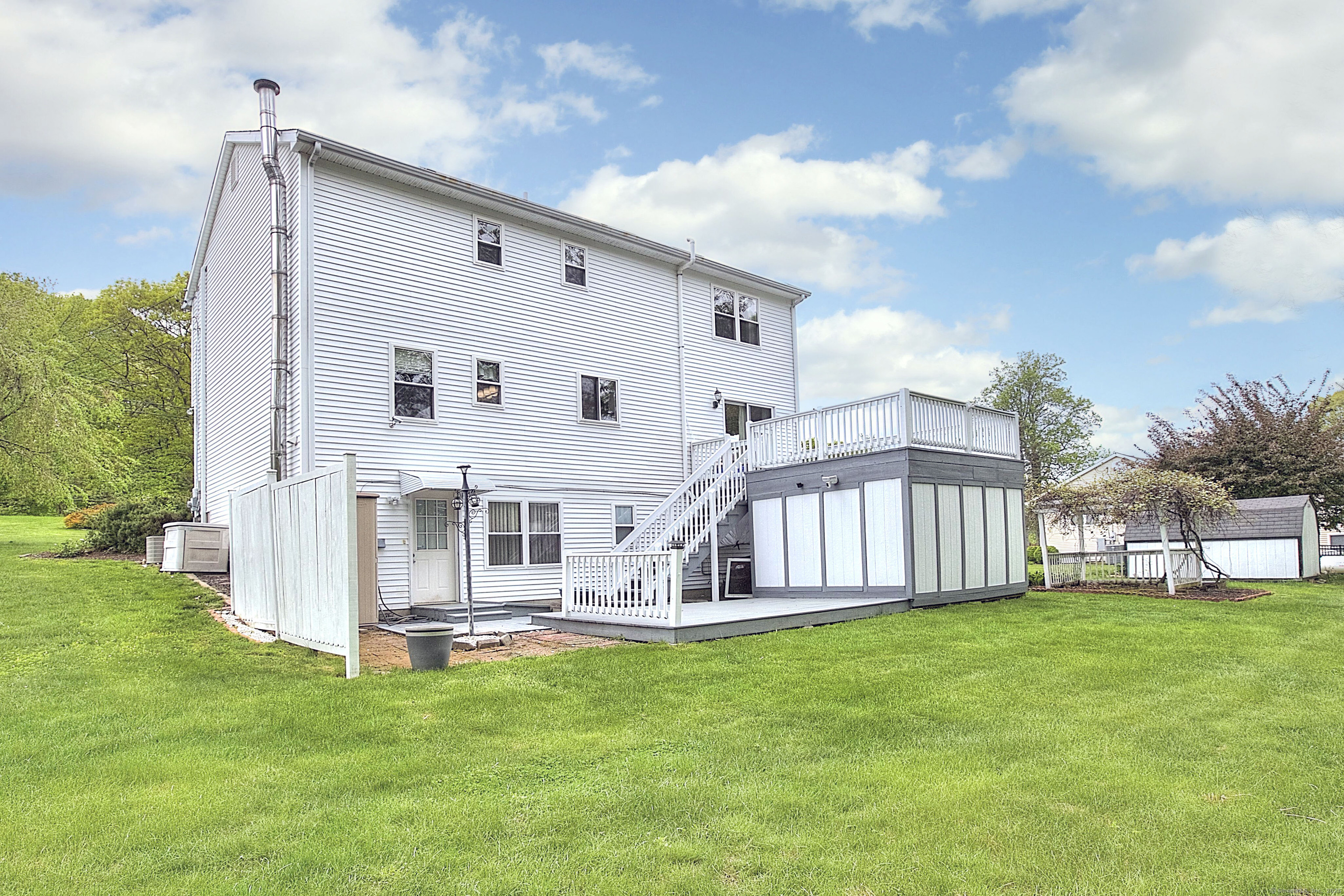 Welcome to the highly sought-after Great Hill section of Seymour! This spacious 4-bedroom, 3.5-bath center hall colonial offers a functional and inviting layout with excellent flow throughout. Upon entry, you're greeted by a generous family room to your right and a formal living room to your left. Straight ahead, you'll find the beautifully updated kitchen featuring quartz countertops, a stylish backsplash, refreshed cabinetry, and a newer stove. The interior has been freshly painted, creating a bright and welcoming ambiance. Just off the kitchen is the dining area, which opens to the backyard-perfect for entertaining. Situated on just under an acre, the property also includes a shed for extra storage of tools or outdoor equipment. Upstairs, the spacious primary suite features its own en-suite bathroom and a tucked-away office-ideal for remote work or a quiet retreat. The upstairs bathrooms have new vanities, and the hardwood floors throughout the home add warmth and character. The versatile lower level includes a finished living area, bedroom, full bath, and kitchenette, making it perfect for an in-law suite or guest space (total square footage is 3002), with convenient walkout access to the backyard. Additional features include a generator hookup and a location that's close to Routes 8 and 34, shopping, restaurants, and grocery stores. Don't miss this exceptional opportunity to own a beautiful home in one of Seymour's most desirable neighborhoods!
